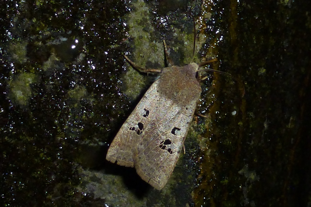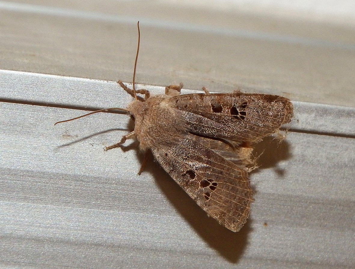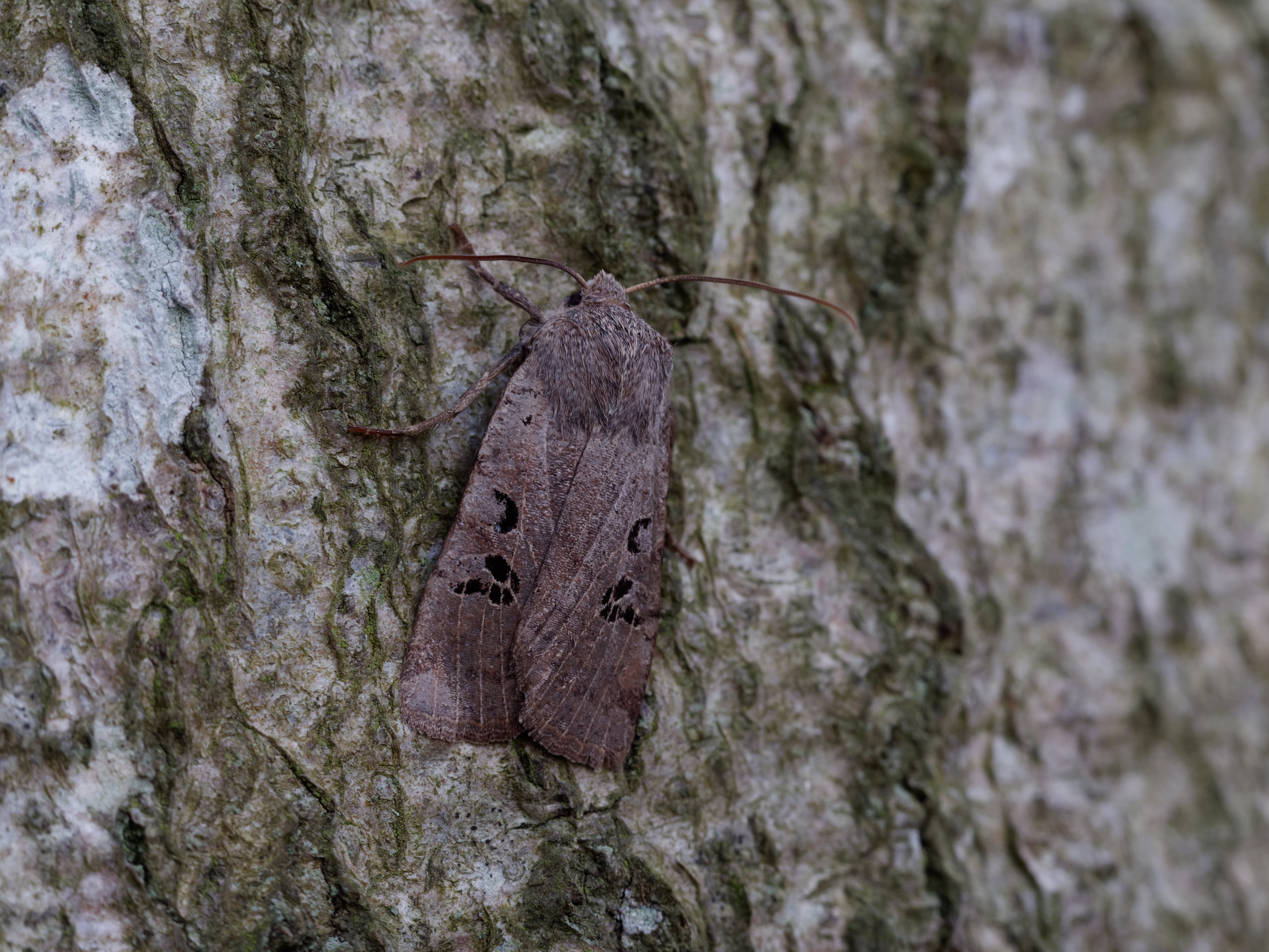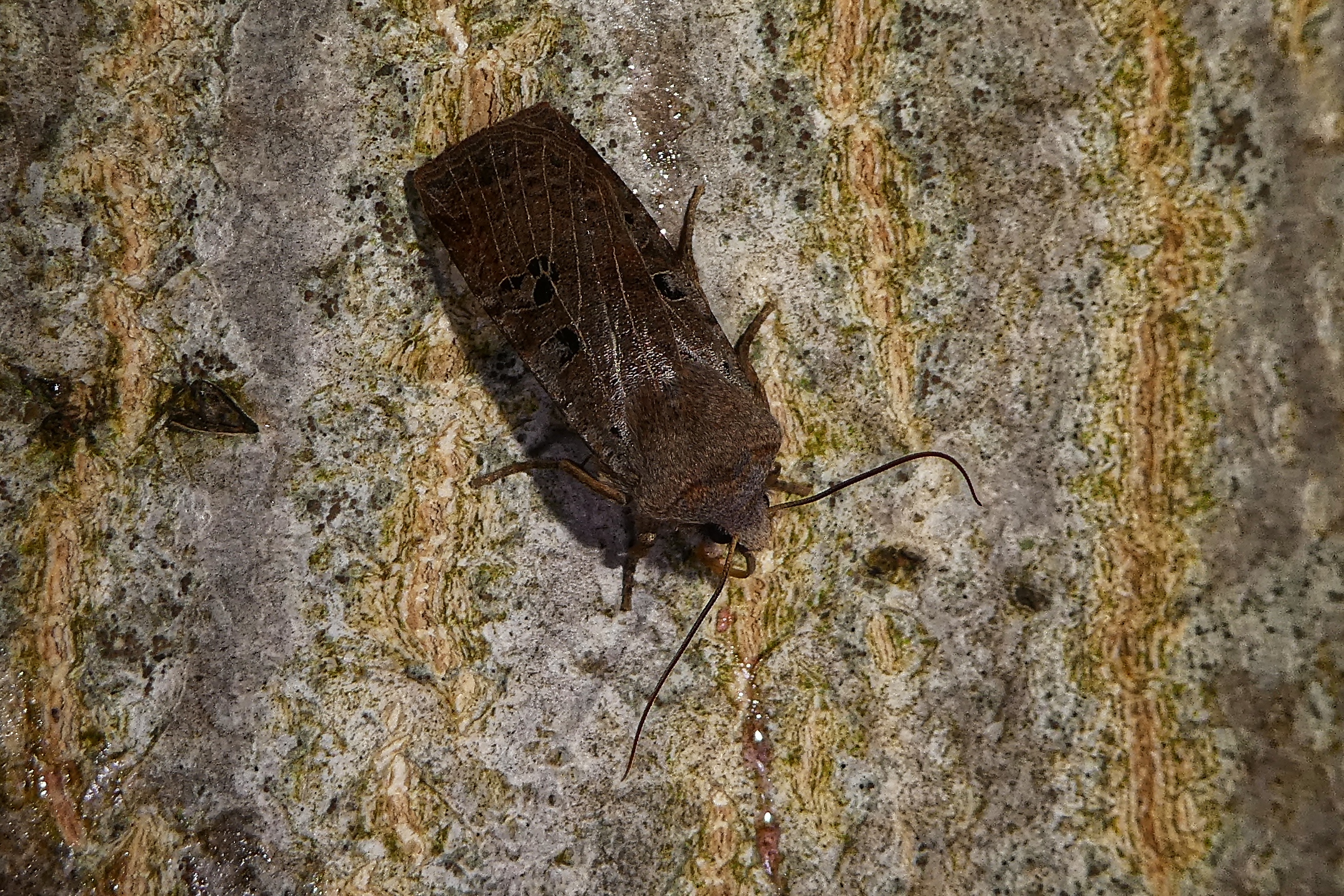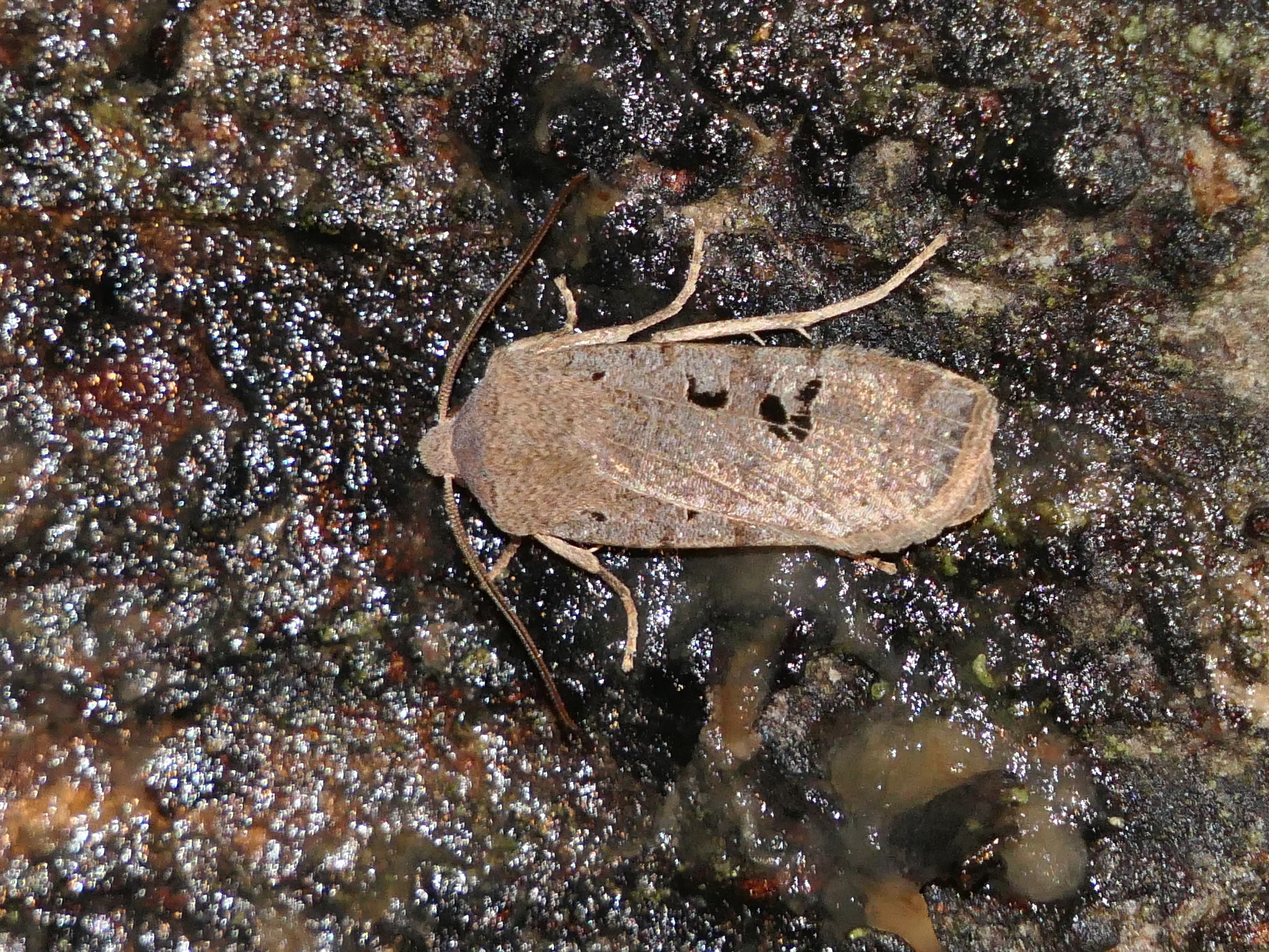Schwarzgefleckte Wintereule, Conistra rubiginosa, Ablichtung auf Hausterrasse, Leipzig-Gohlis-Mitte, 06. März 2024