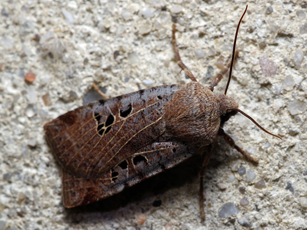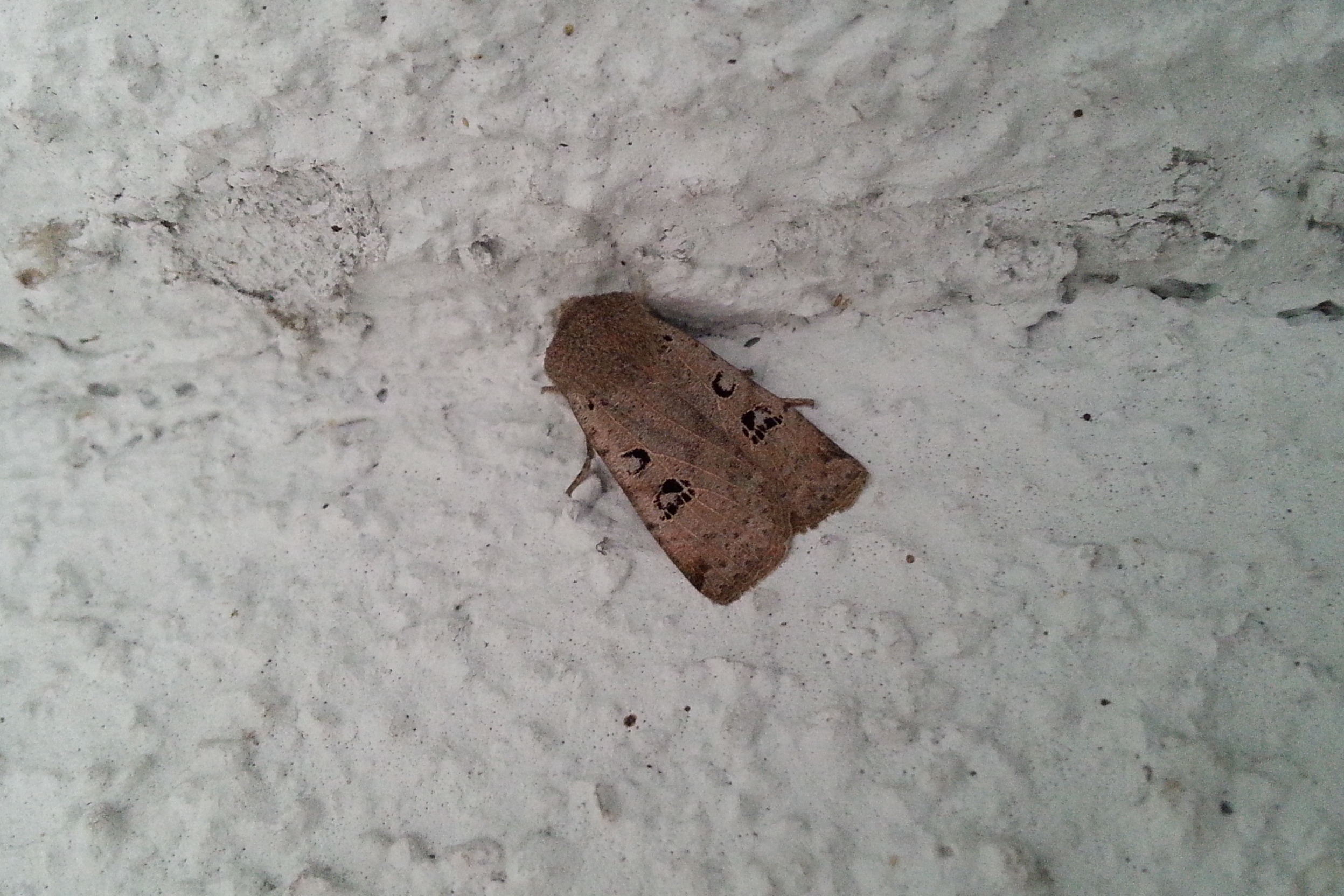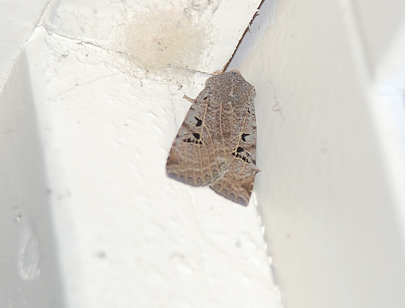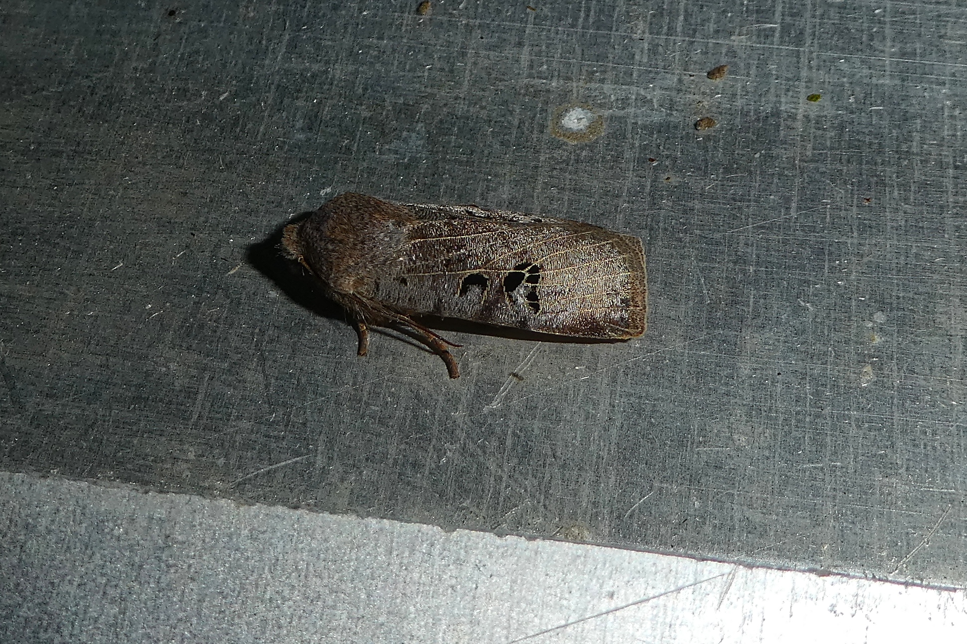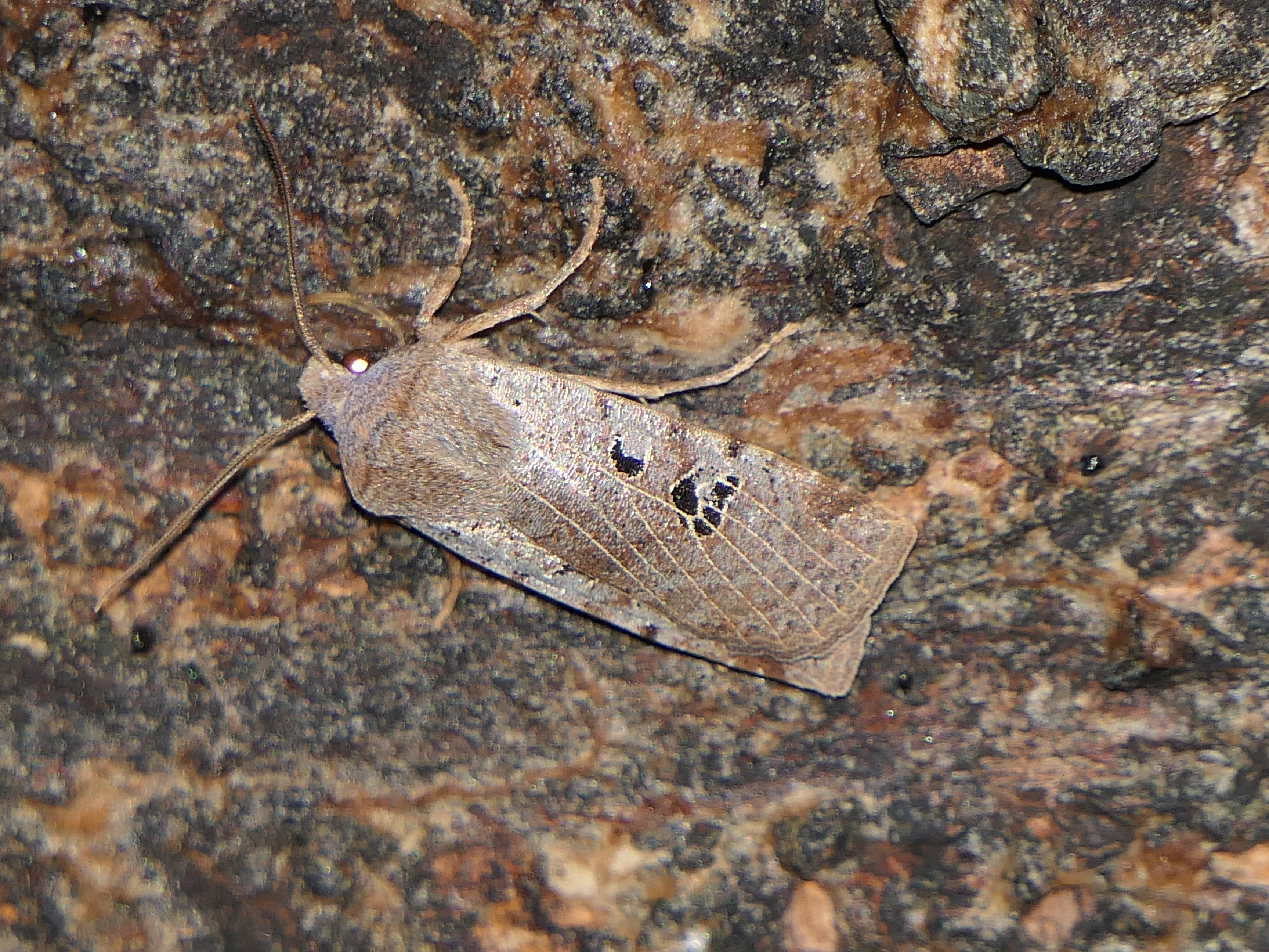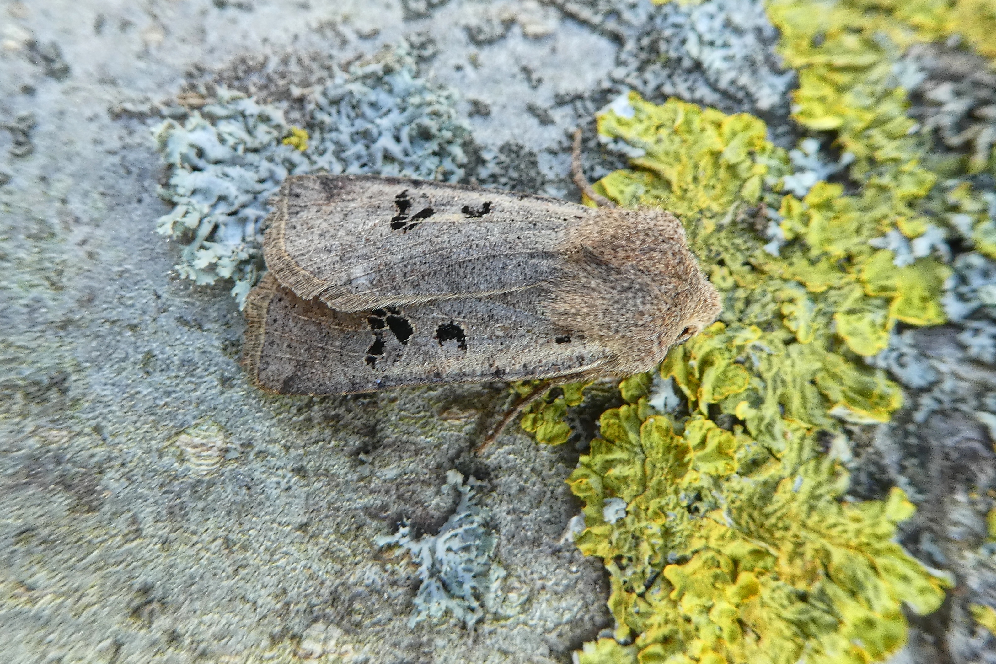 Schwarzgefleckte Wintereule, Conistra rubiginosa, Ablichtung auf Hausterrasse, Leipzig-Gohlis-Mitte, 06. März 2024