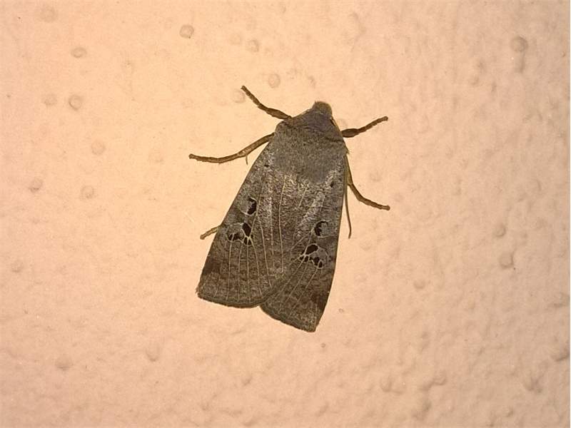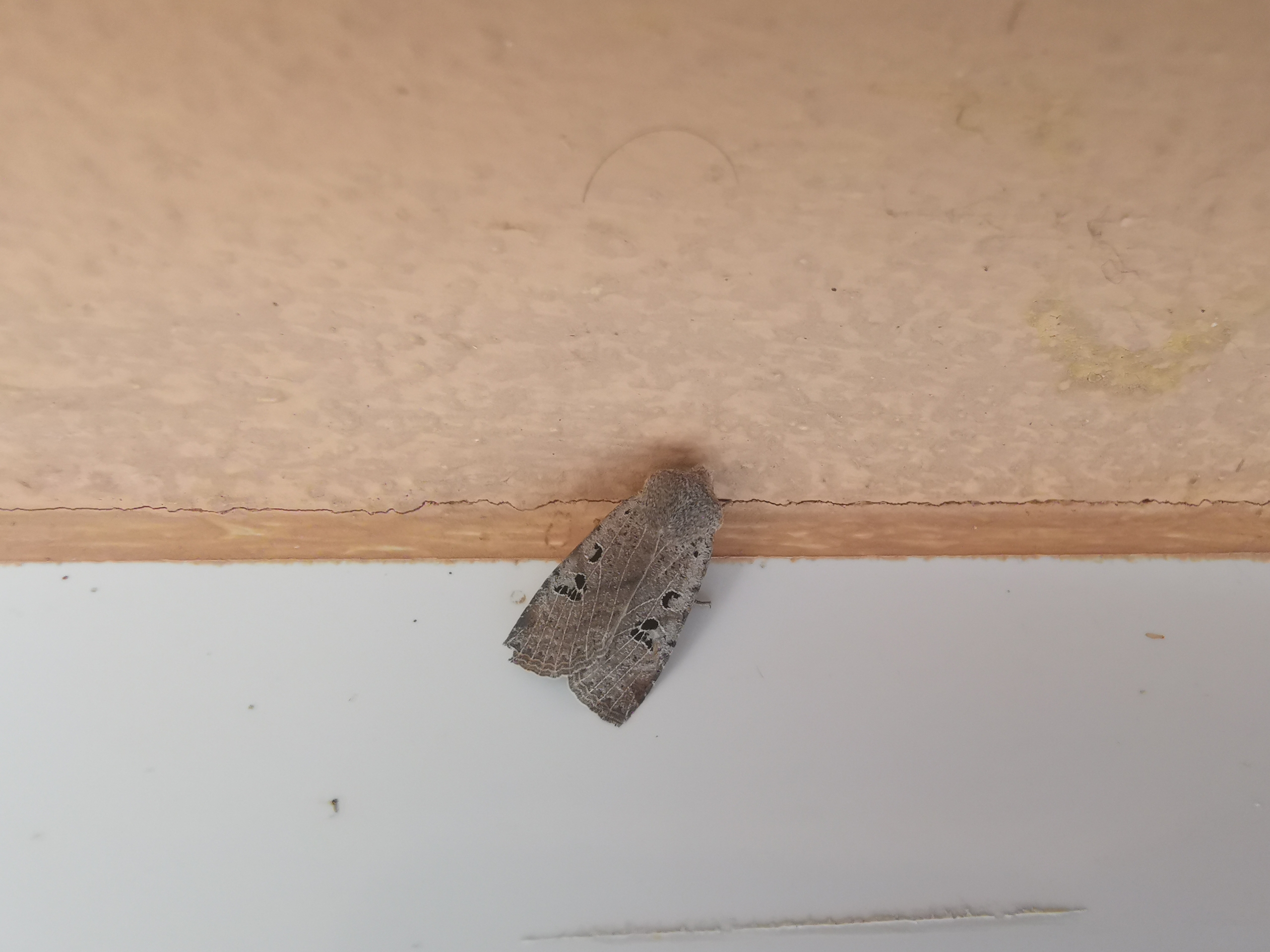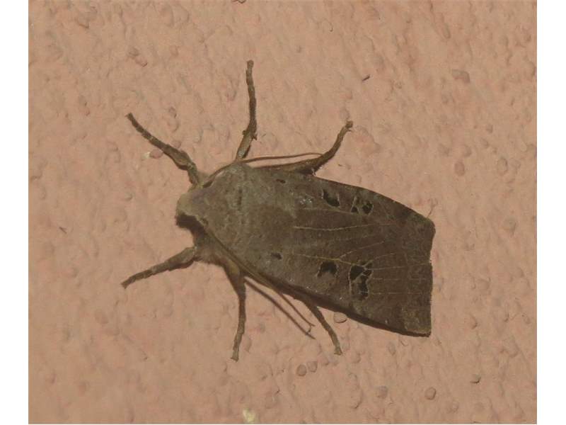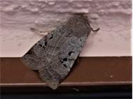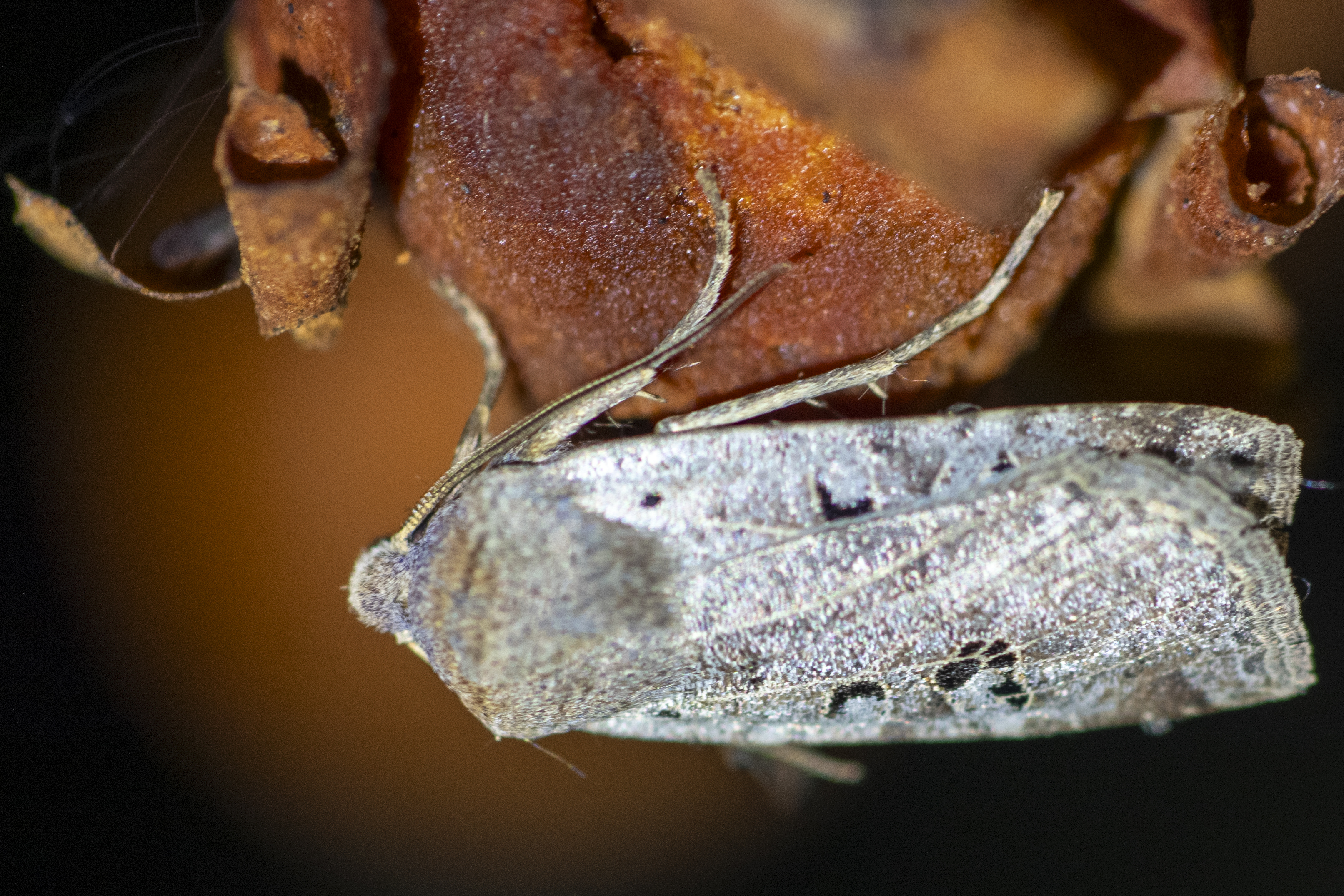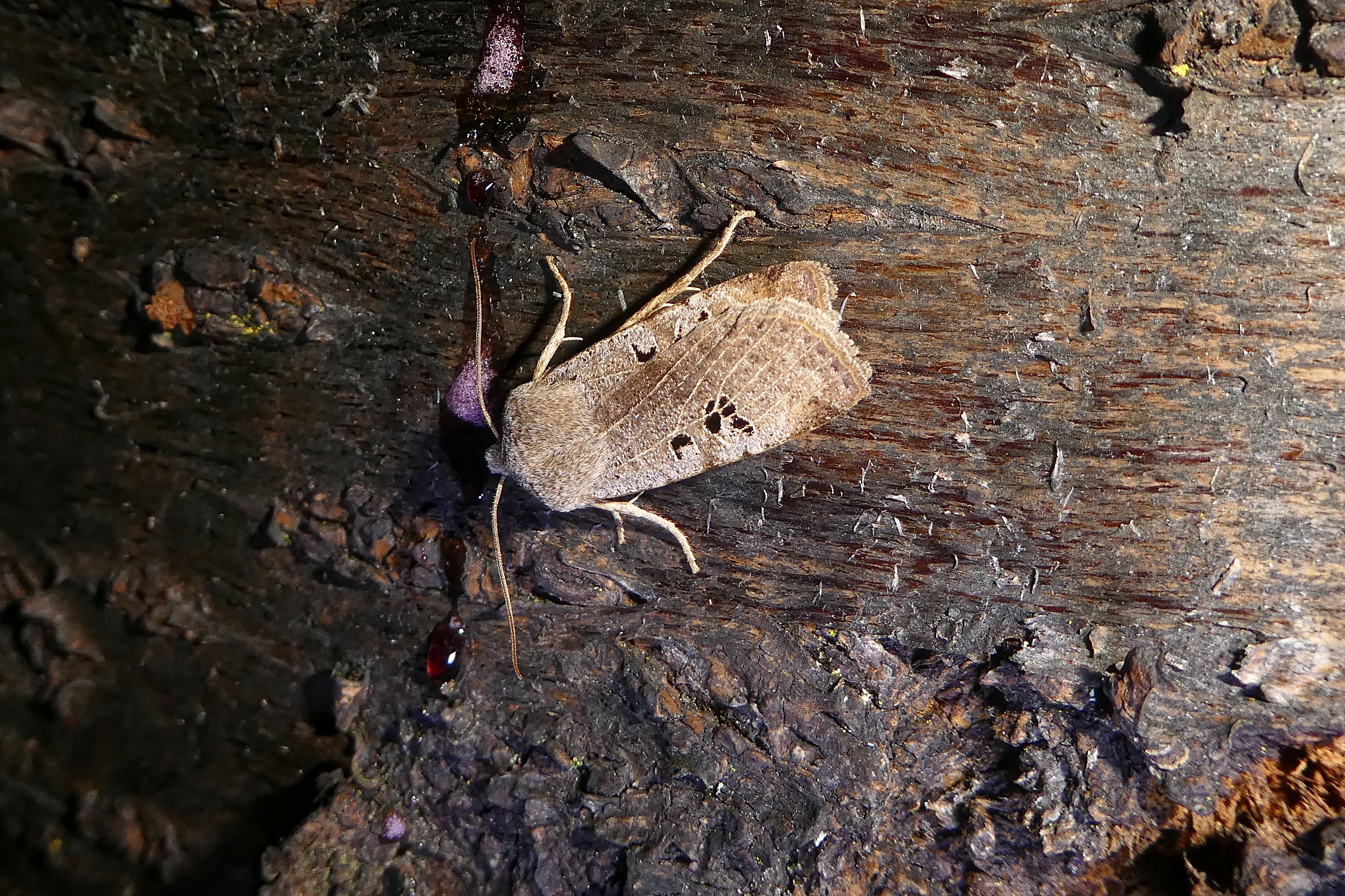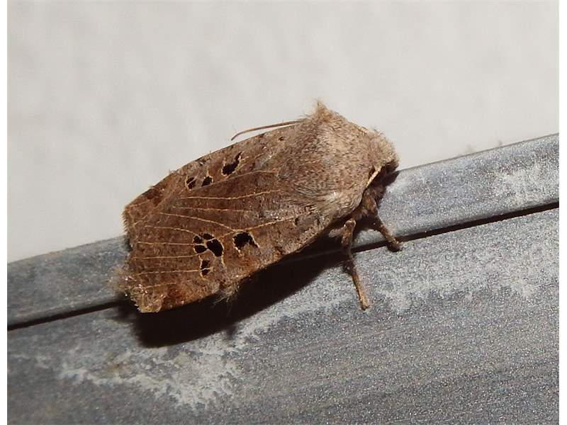 Schwarzgefleckte Wintereule, Conistra rubiginosa, Ablichtung auf Hausterrasse, Leipzig-Gohlis-Mitte, 06. März 2024