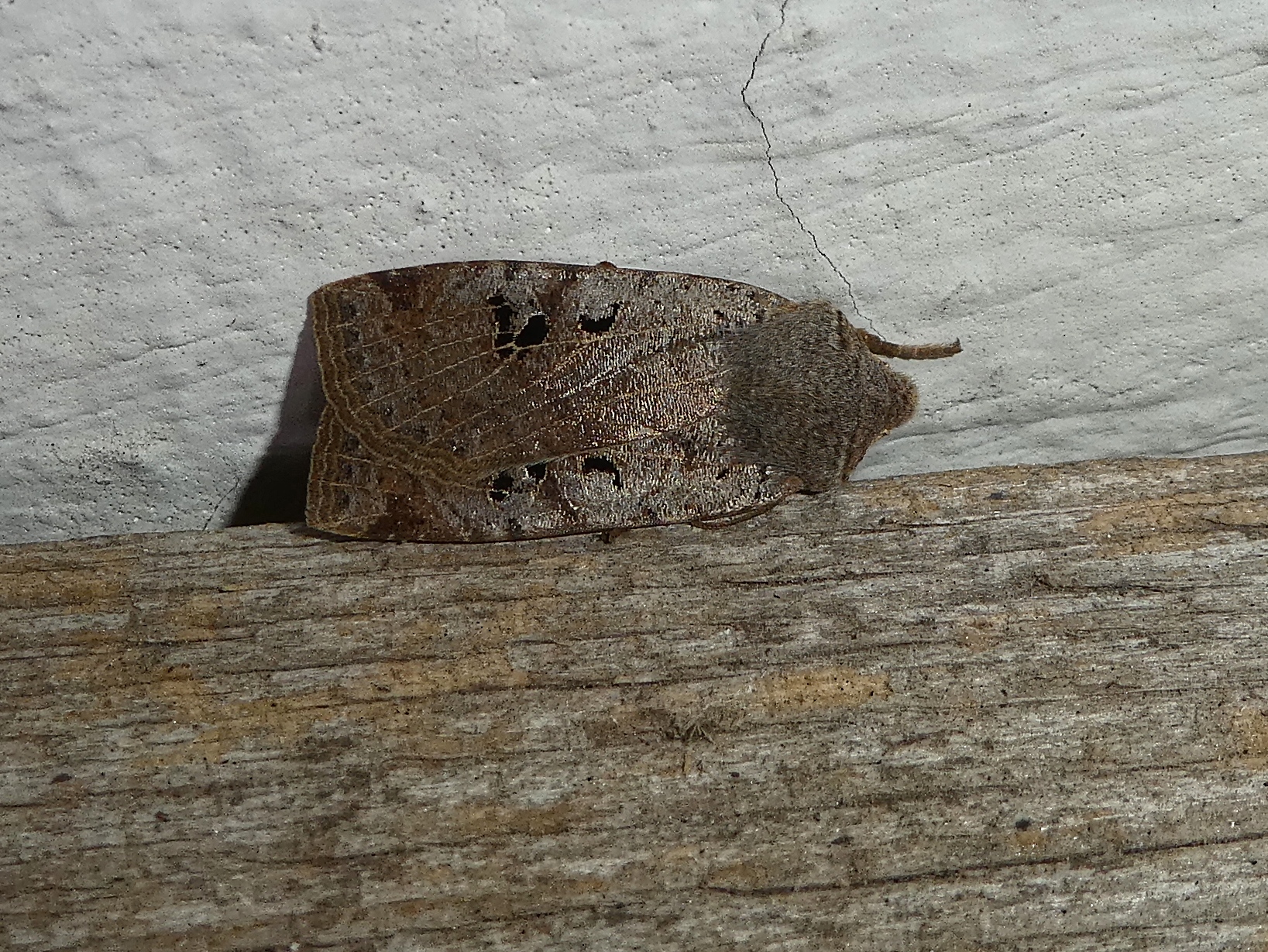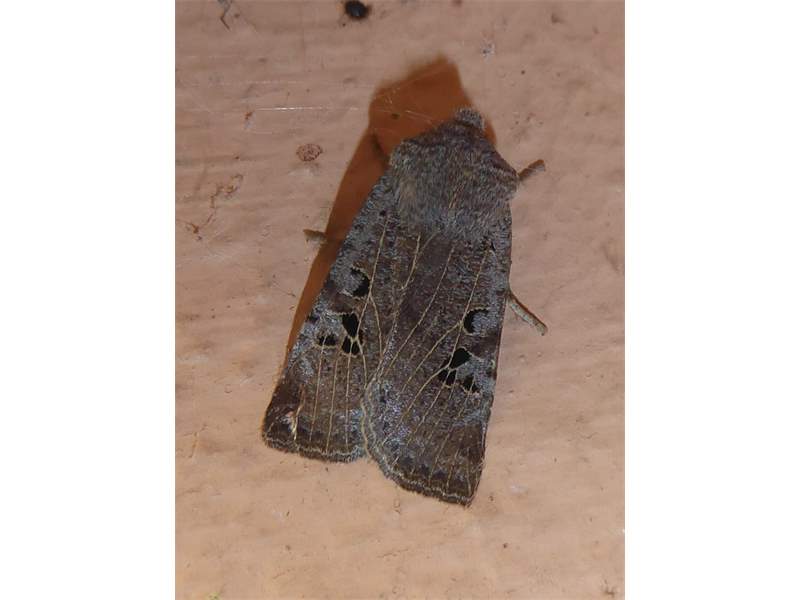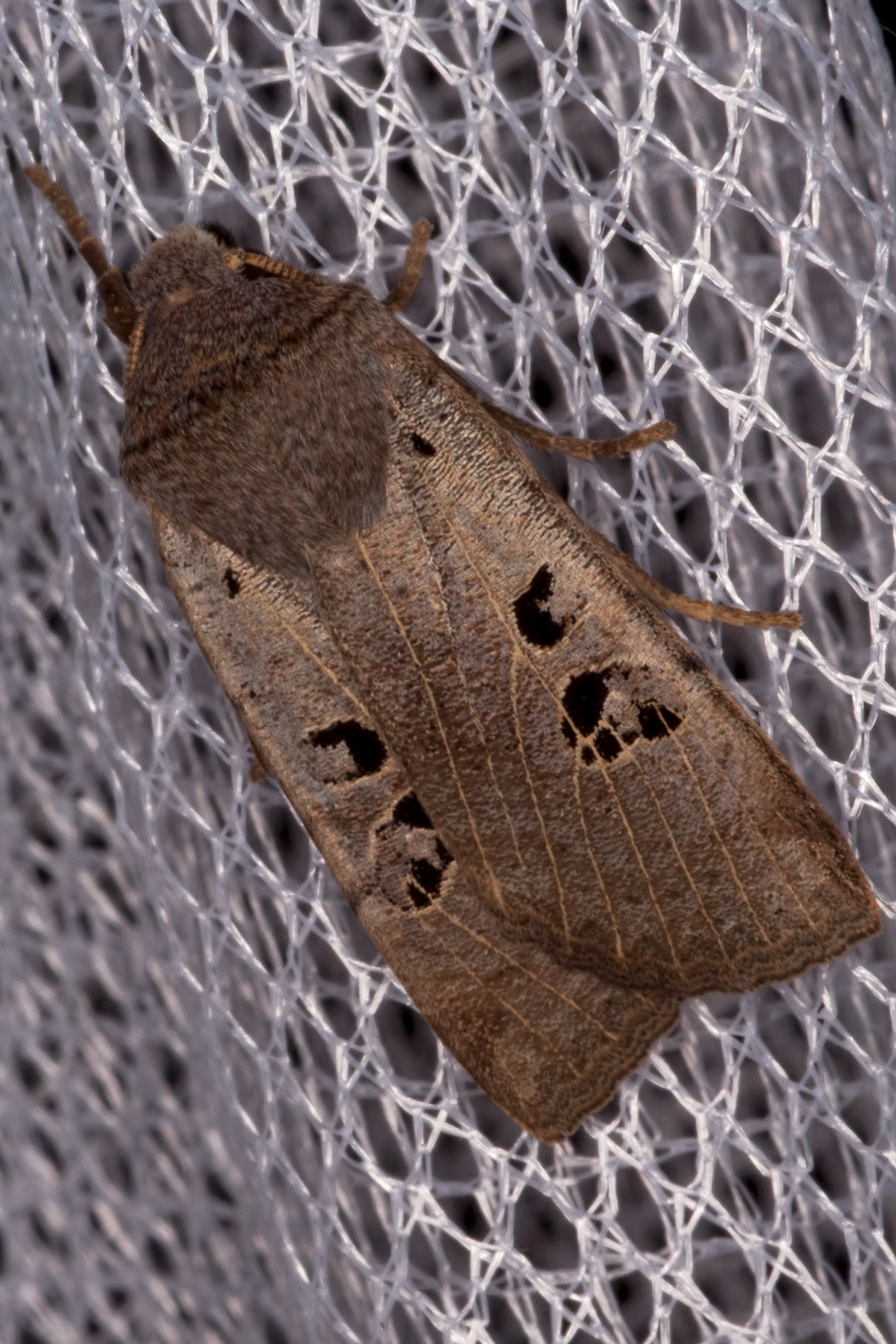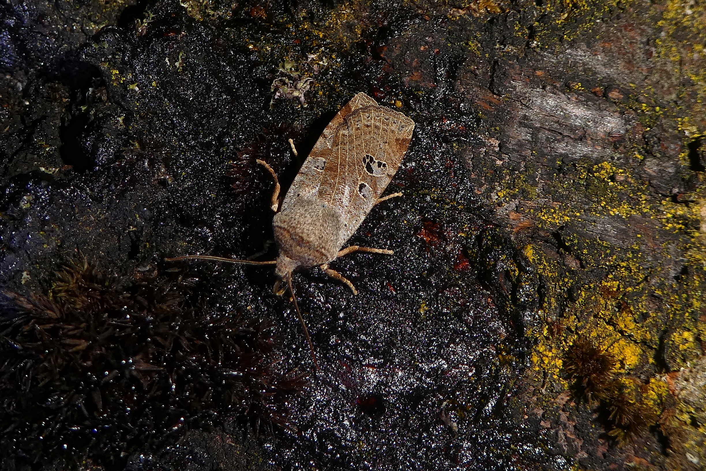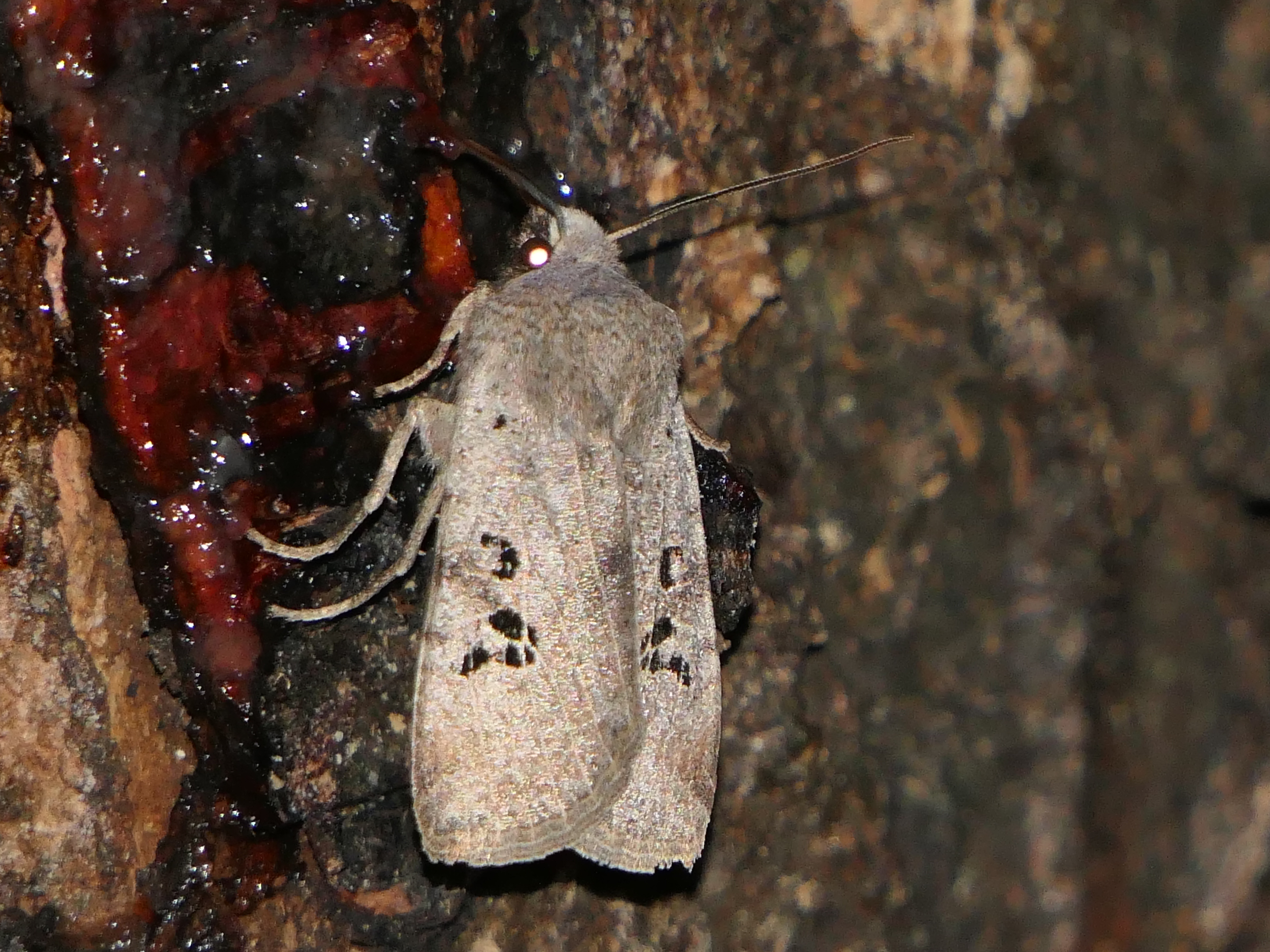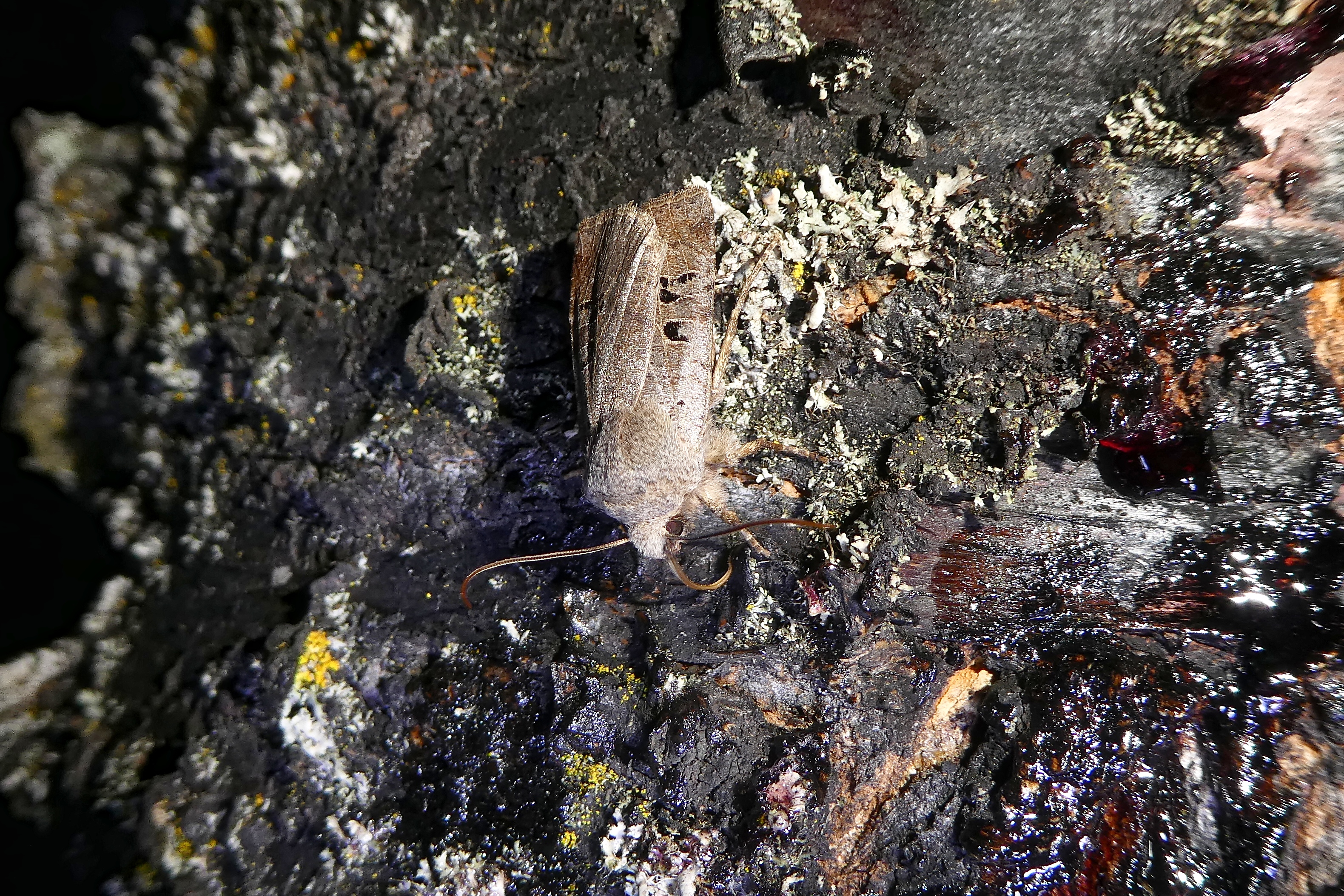 Schwarzgefleckte Wintereule, Conistra rubiginosa, Ablichtung auf Hausterrasse, Leipzig-Gohlis-Mitte, 06. März 2024