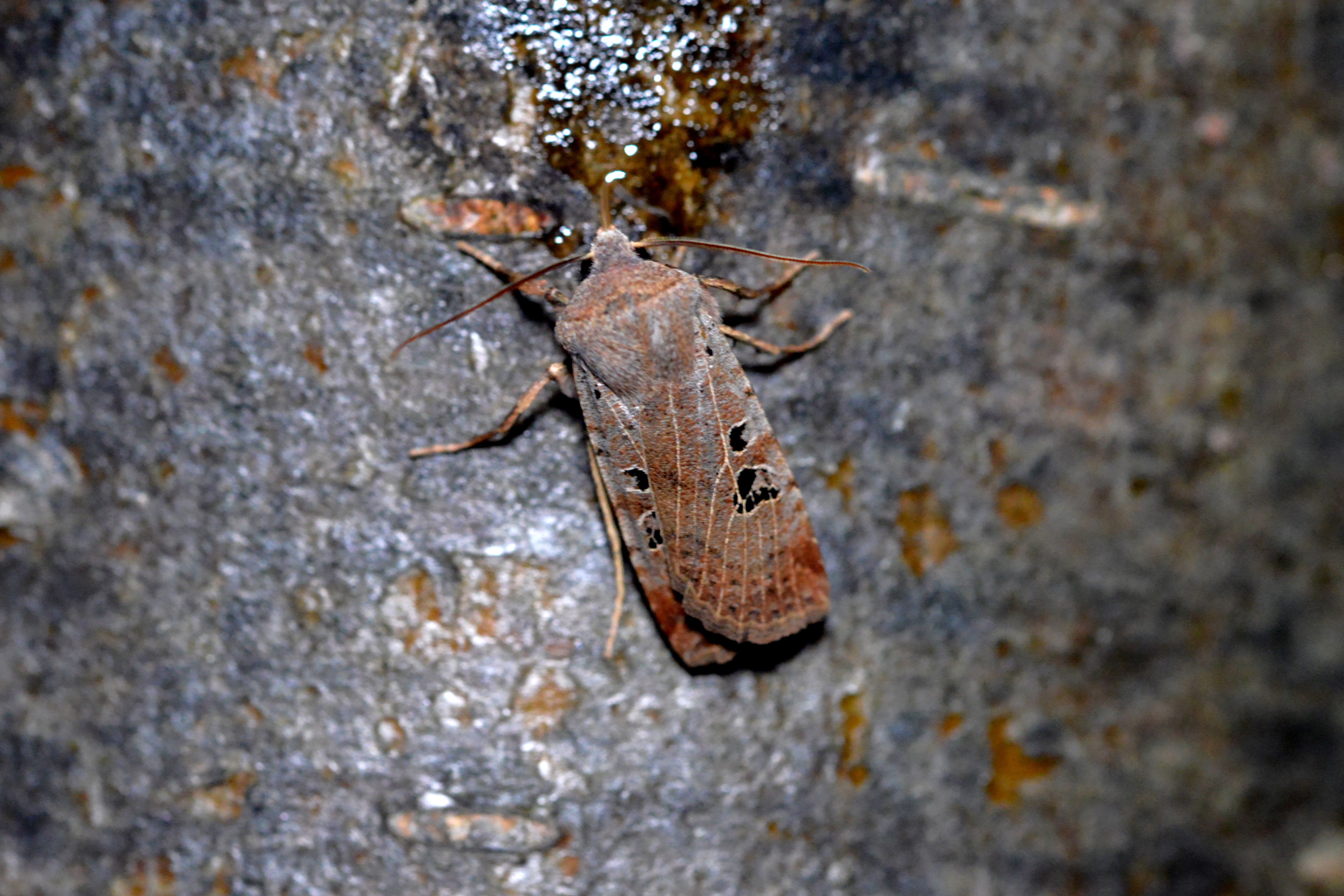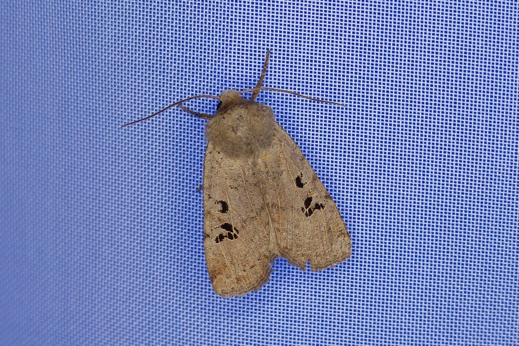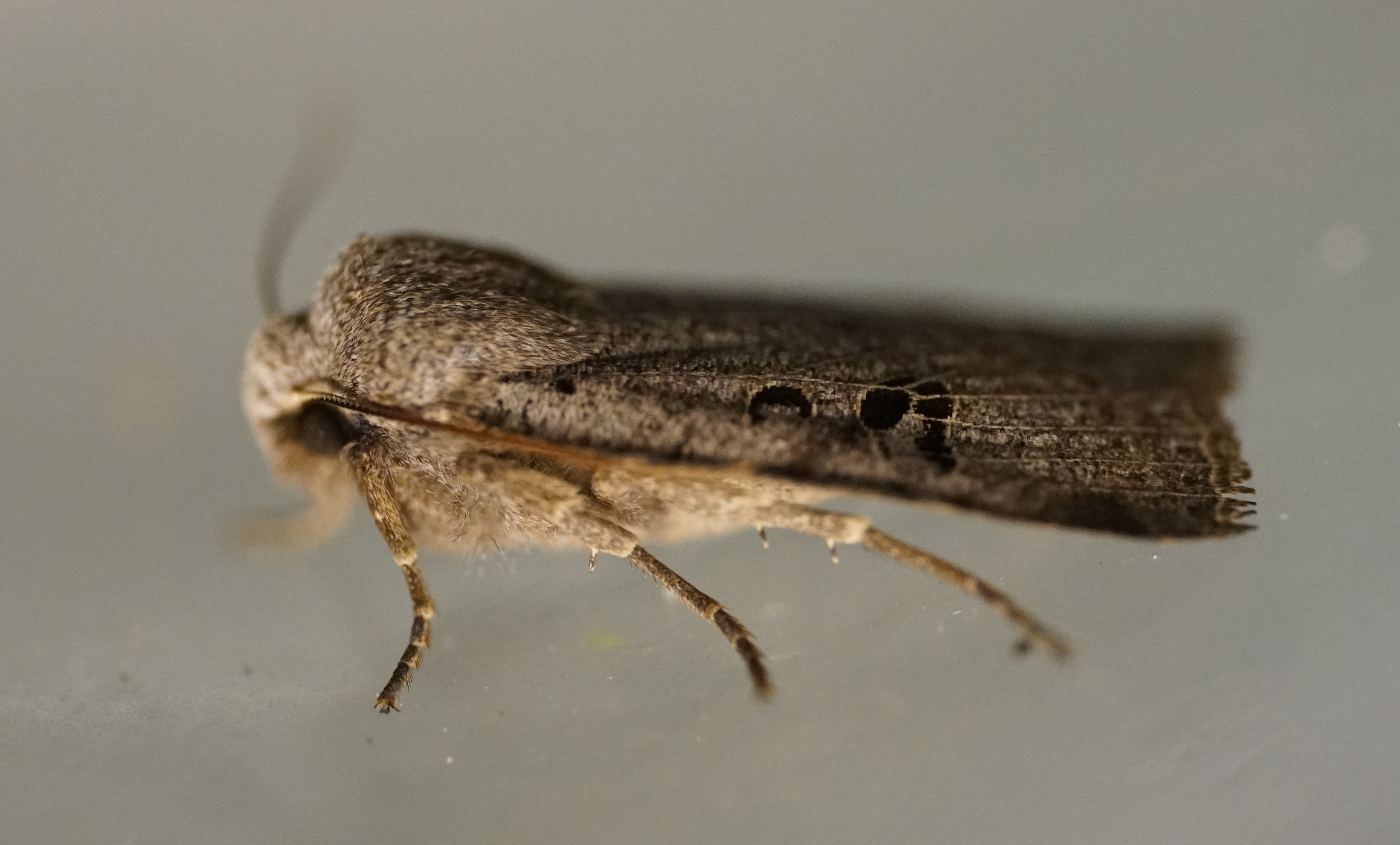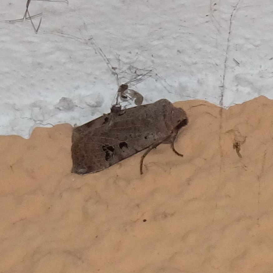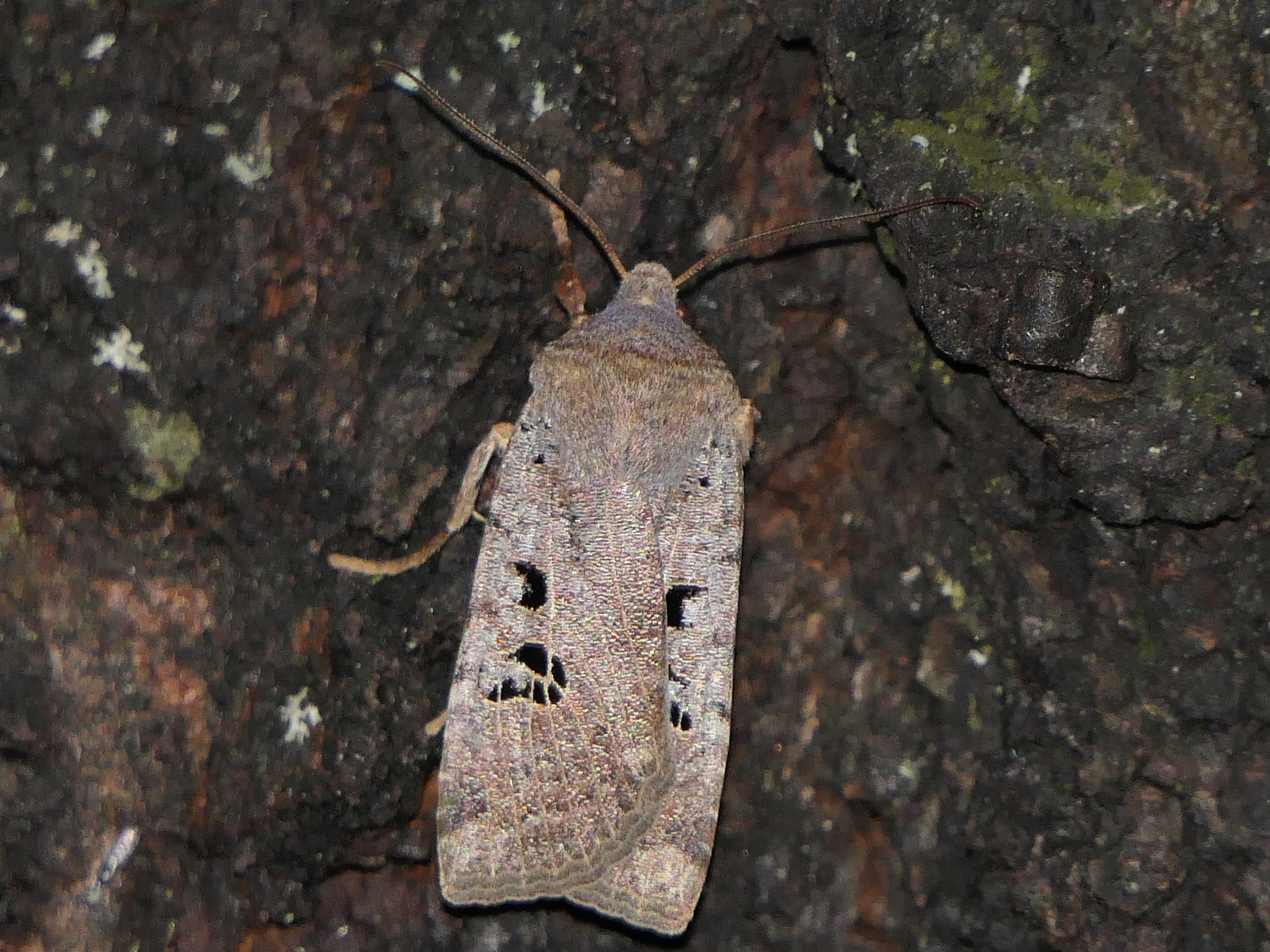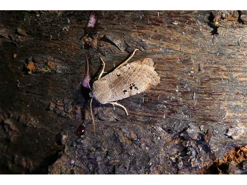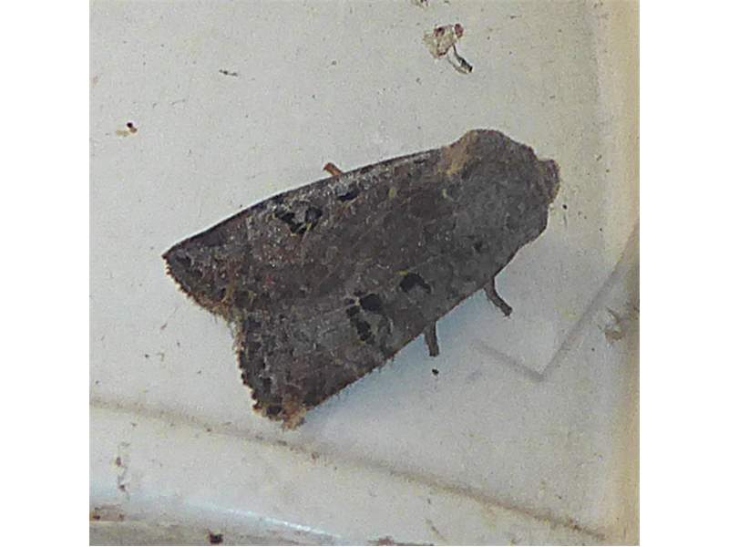 Schwarzgefleckte Wintereule, Conistra rubiginosa, Ablichtung auf Hausterrasse, Leipzig-Gohlis-Mitte, 06. März 2024