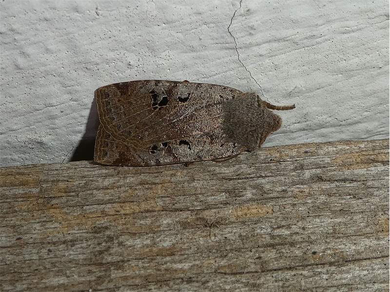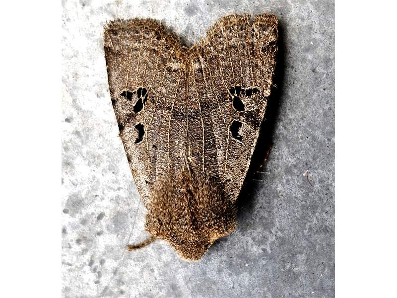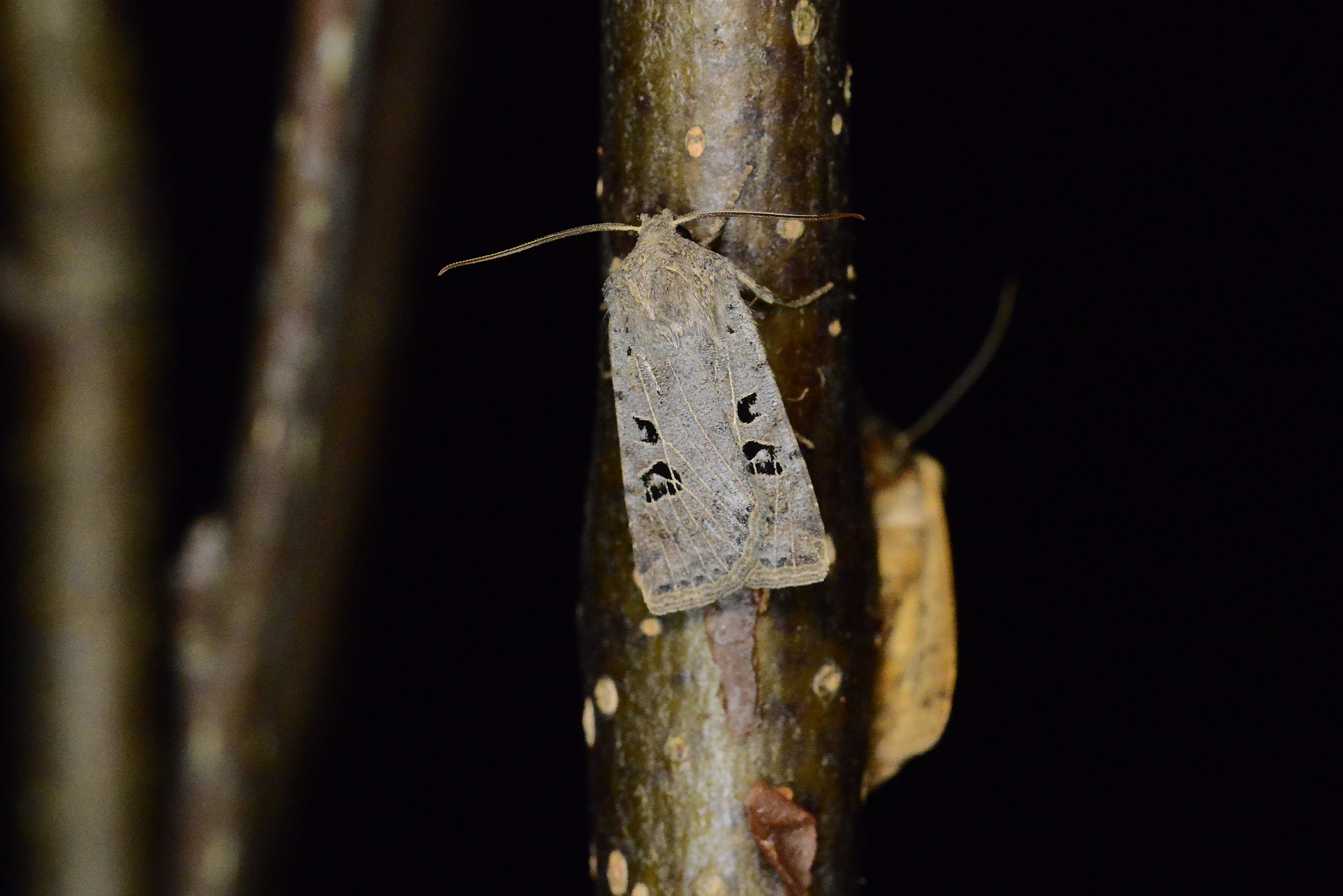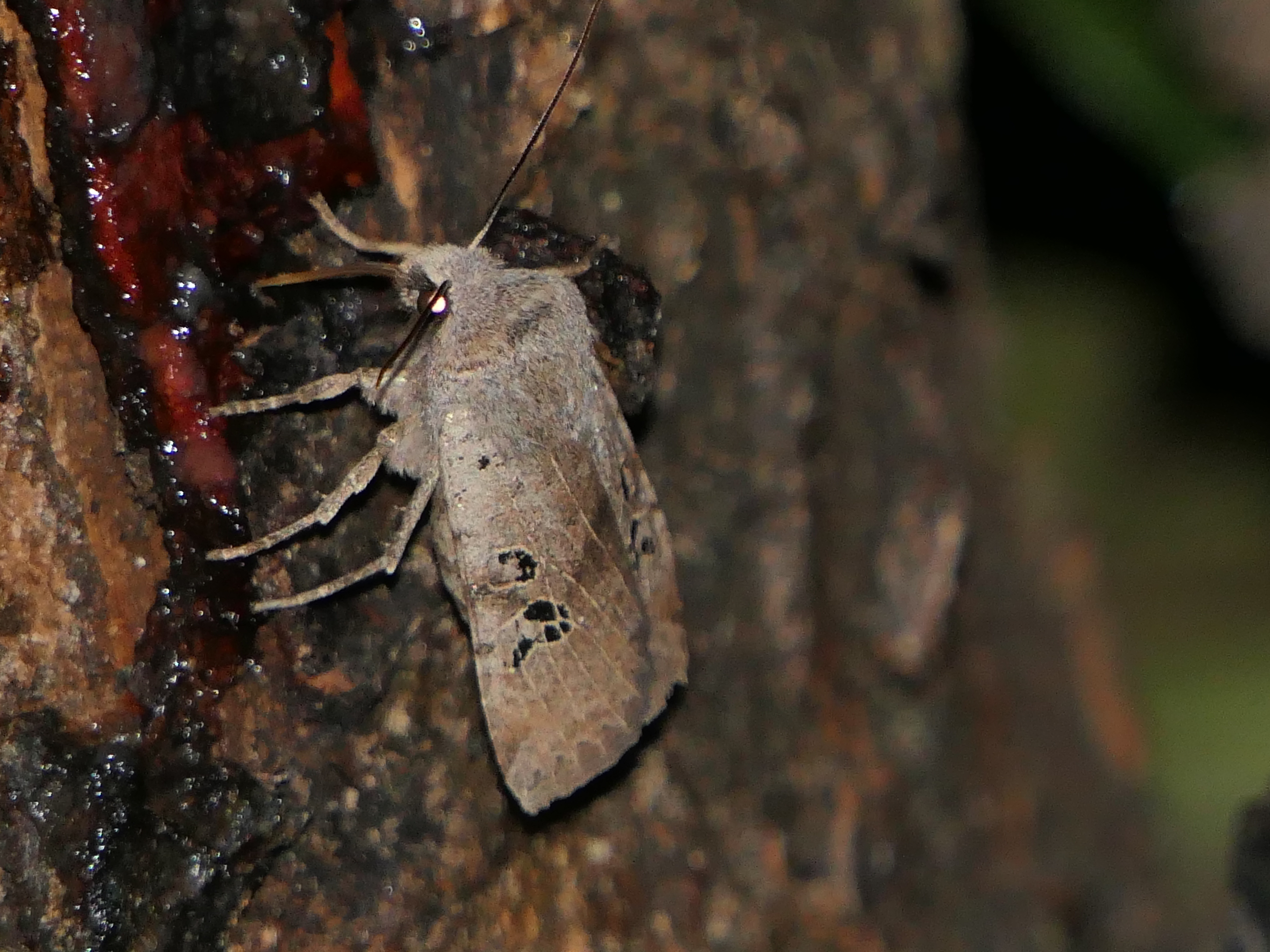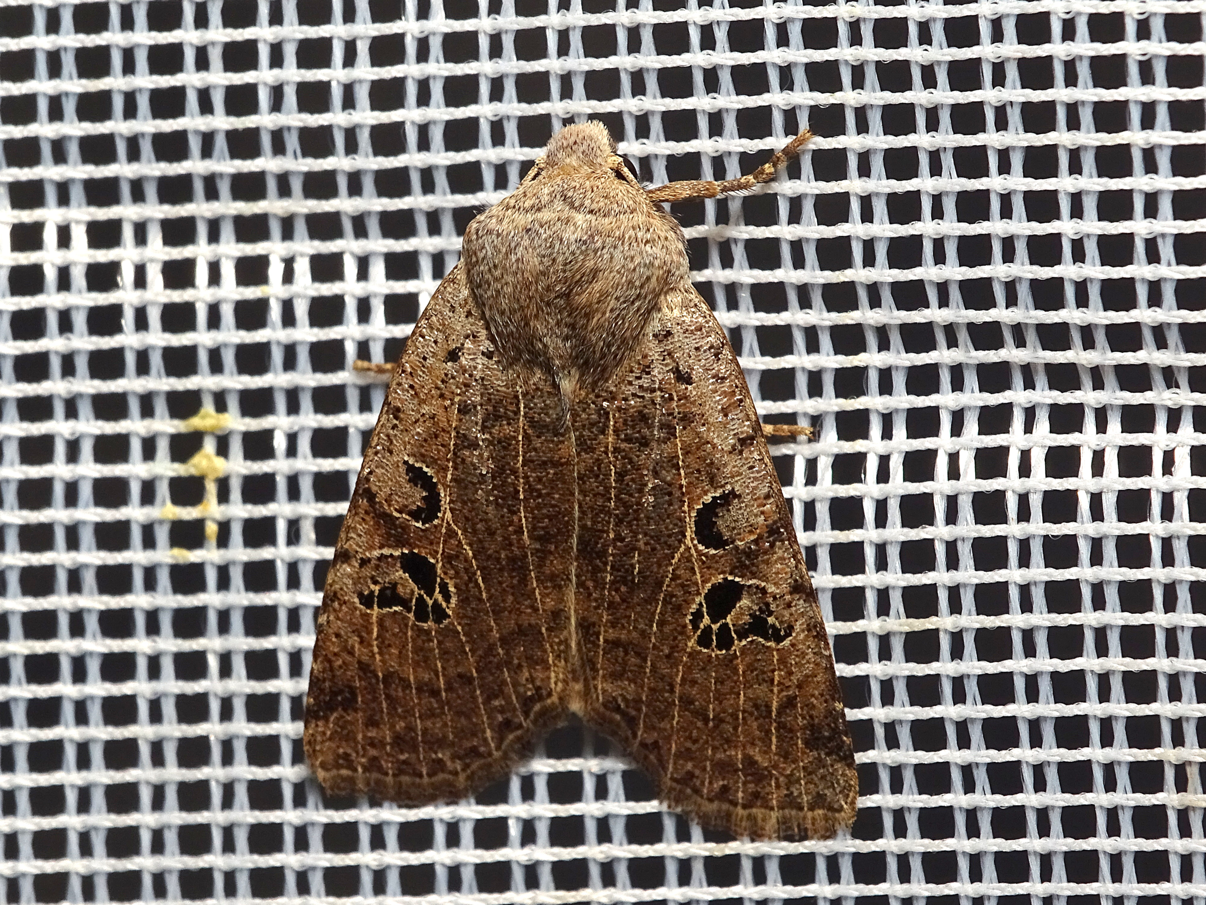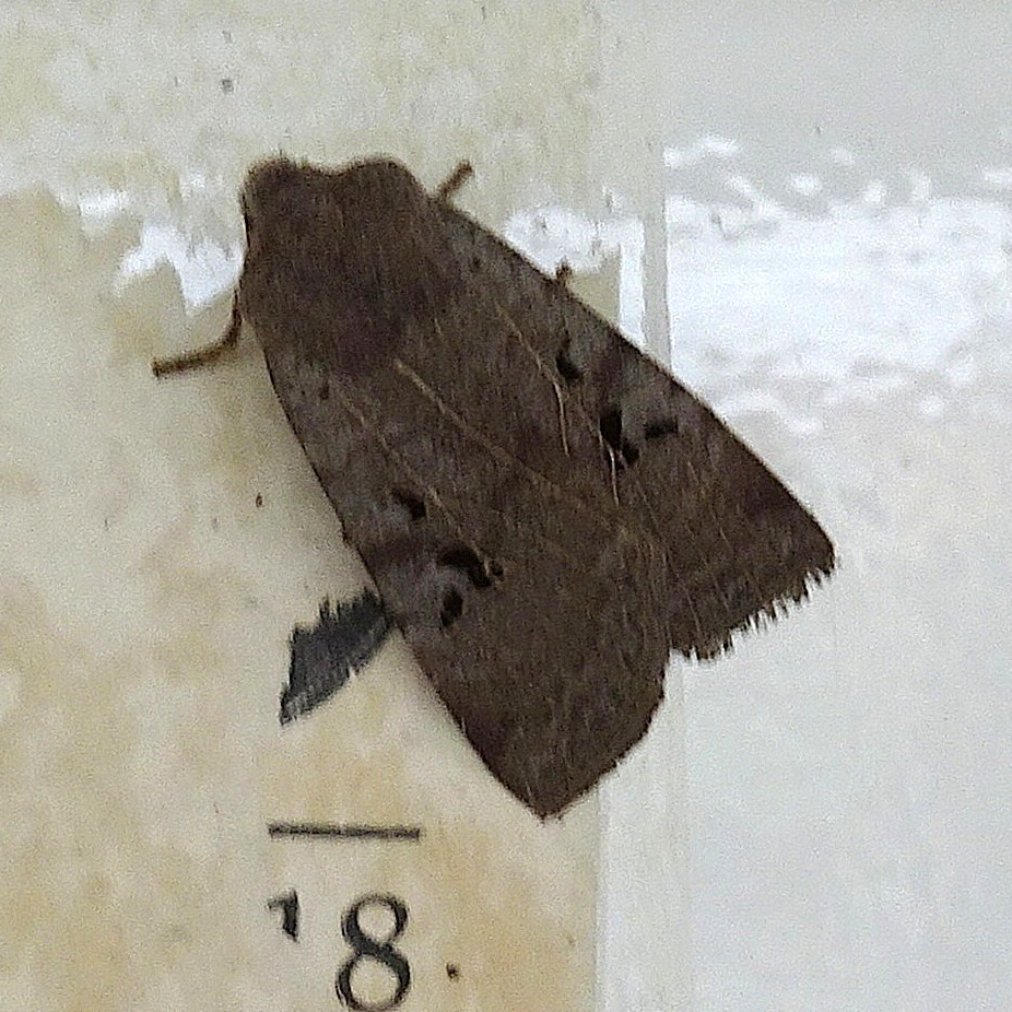 Schwarzgefleckte Wintereule, Conistra rubiginosa, Ablichtung auf Hausterrasse, Leipzig-Gohlis-Mitte, 06. März 2024
