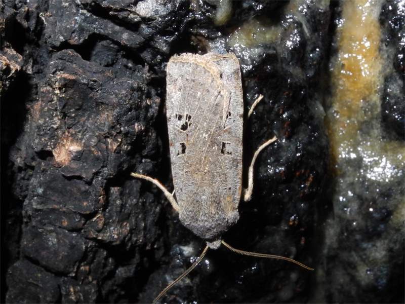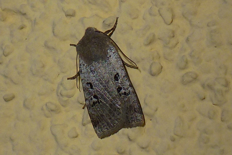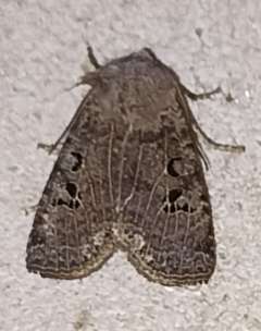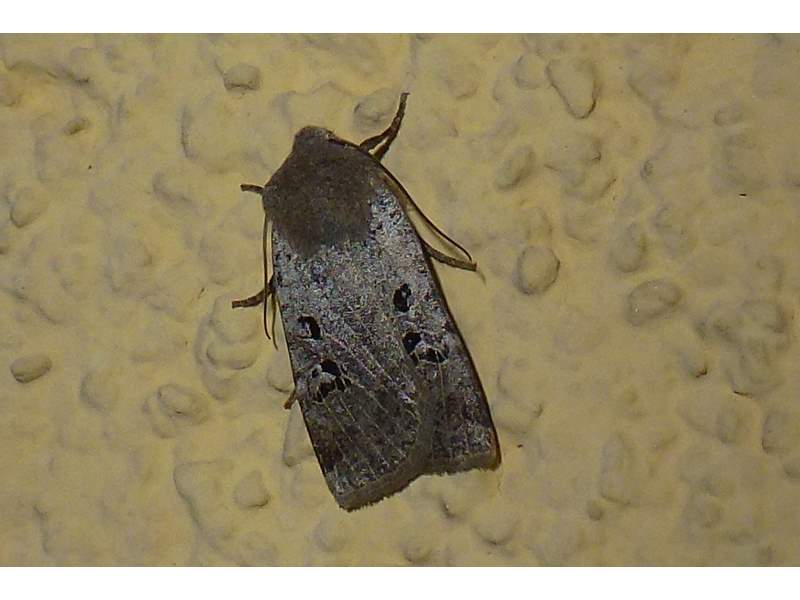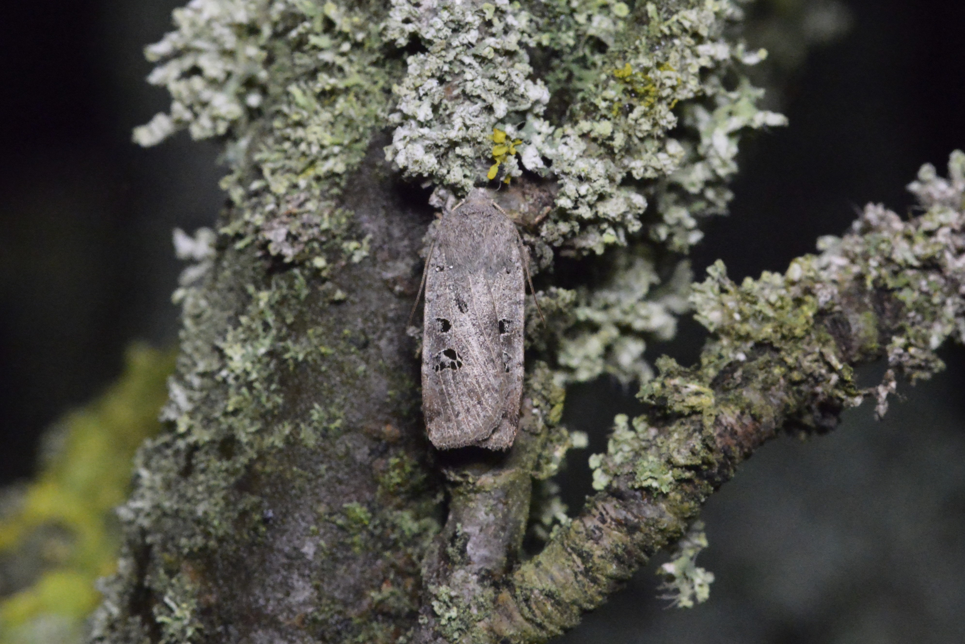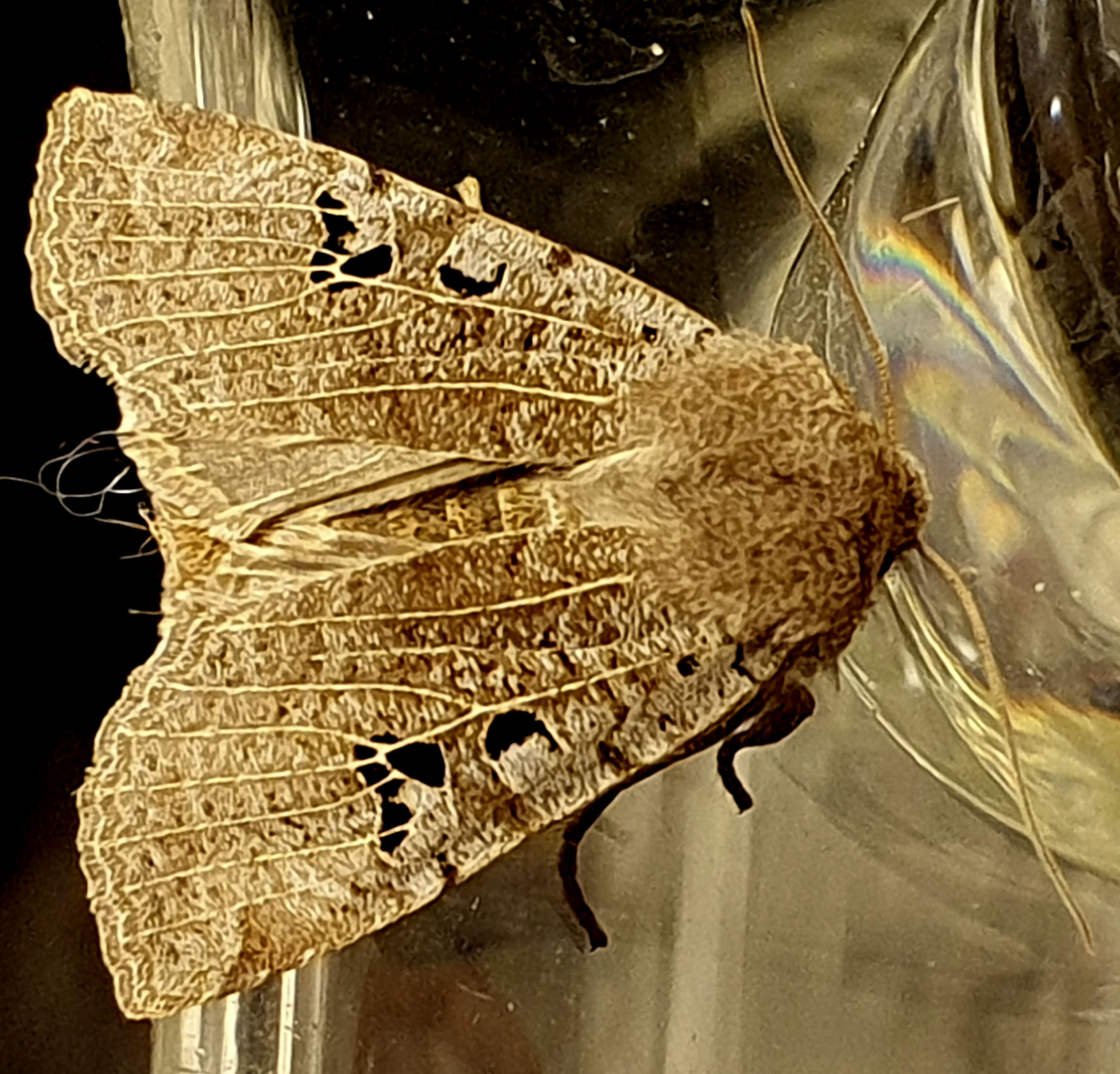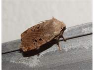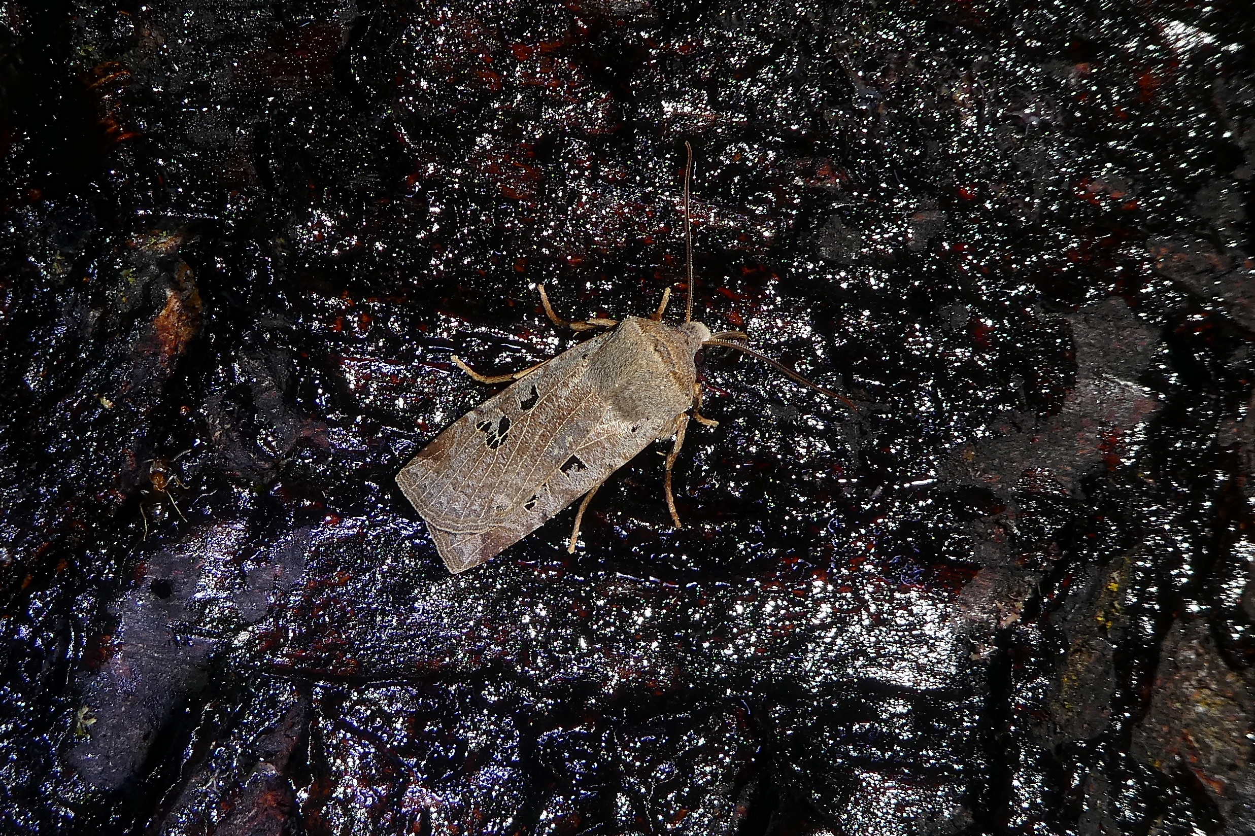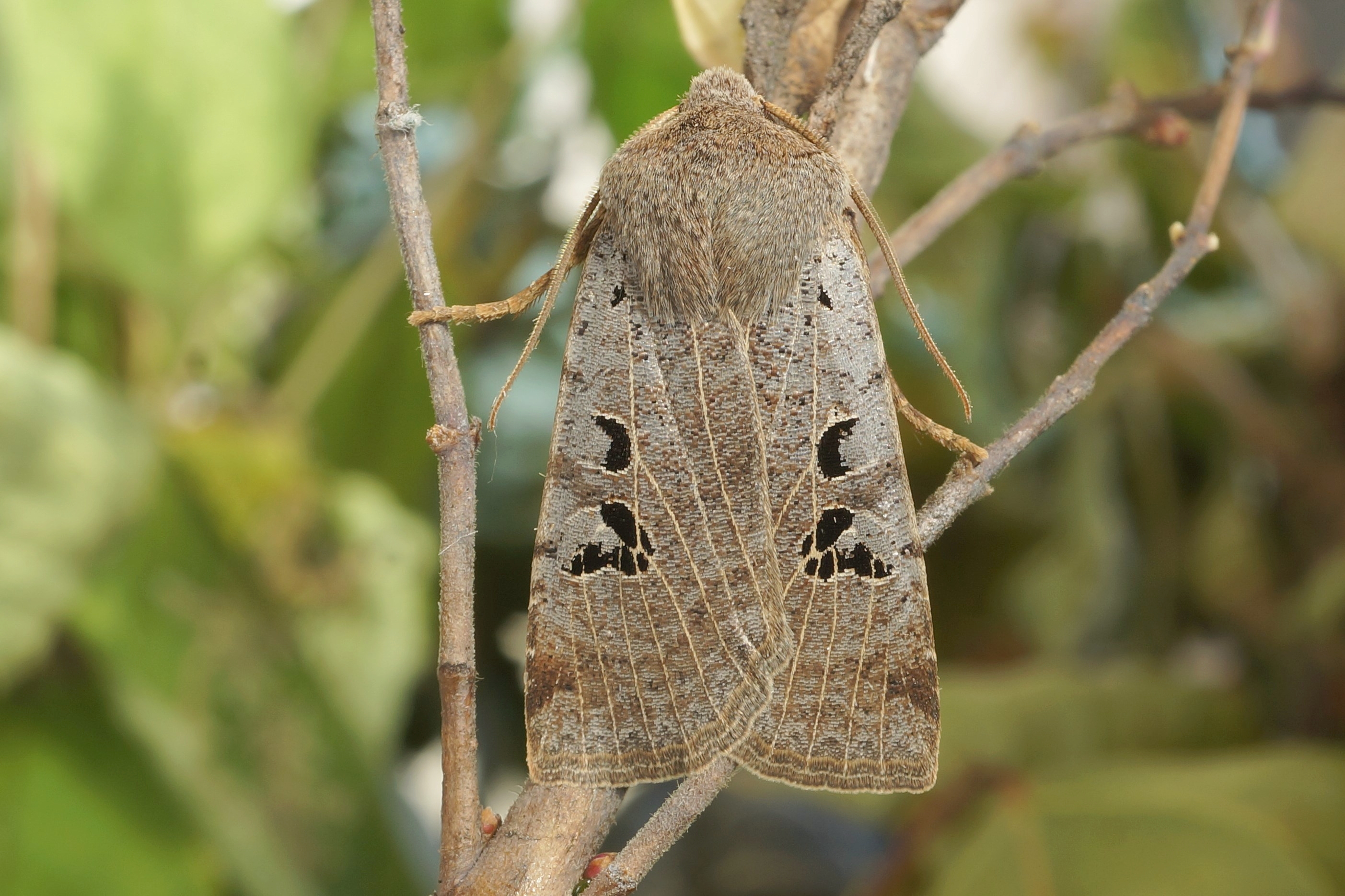 Schwarzgefleckte Wintereule, Conistra rubiginosa, Ablichtung auf Hausterrasse, Leipzig-Gohlis-Mitte, 06. März 2024