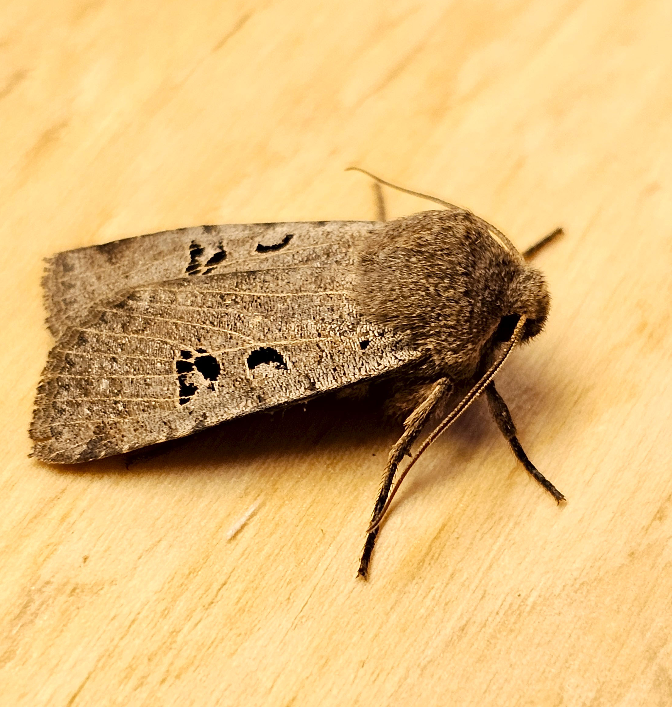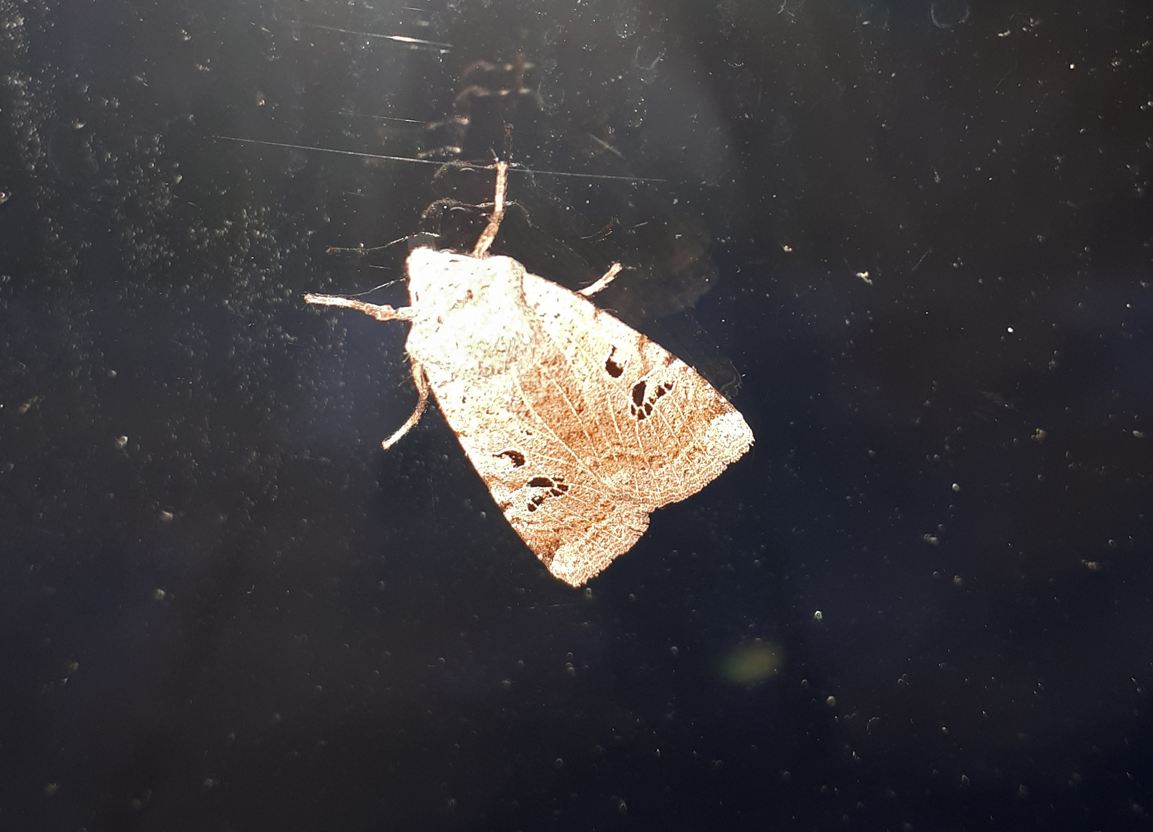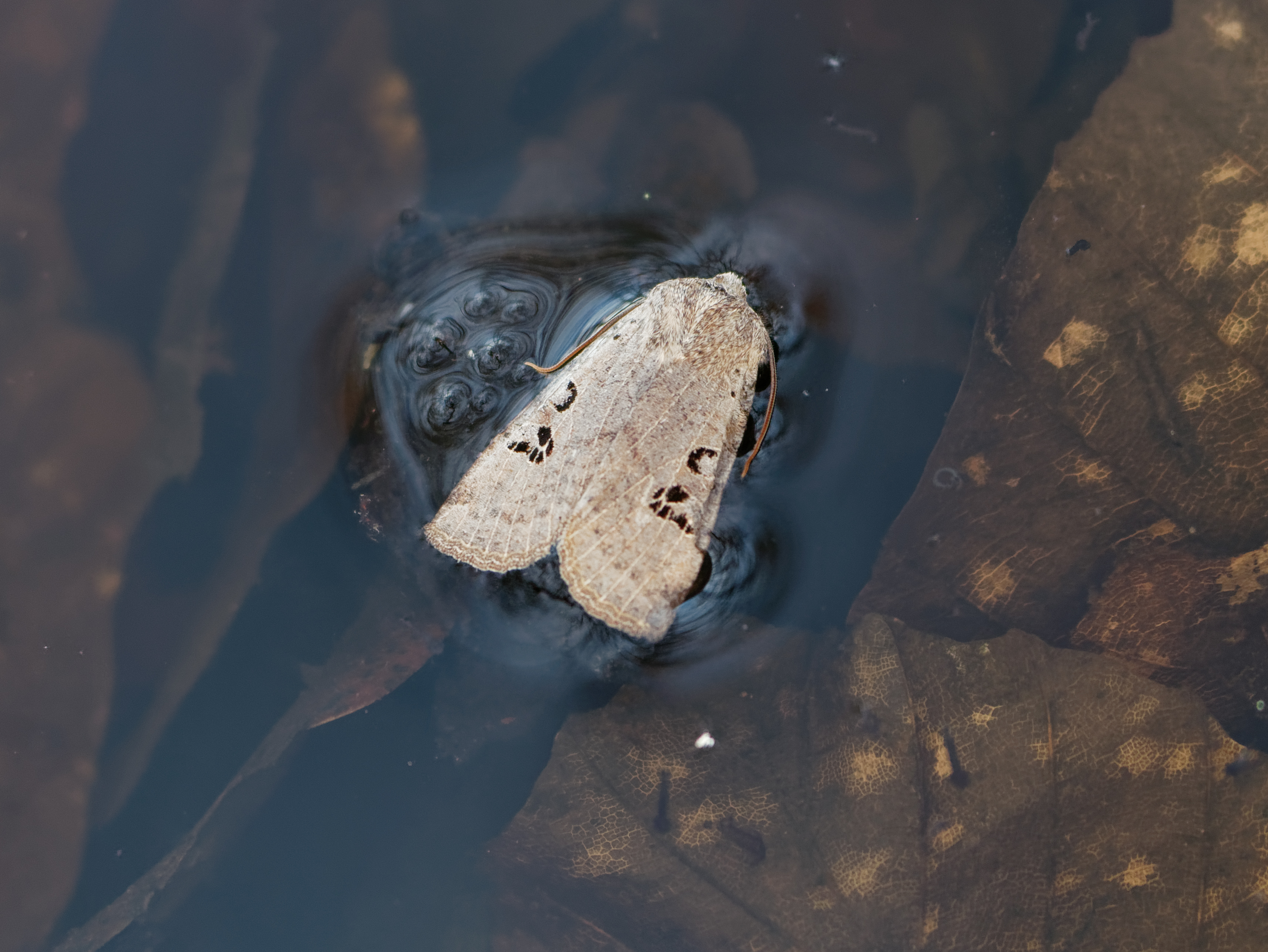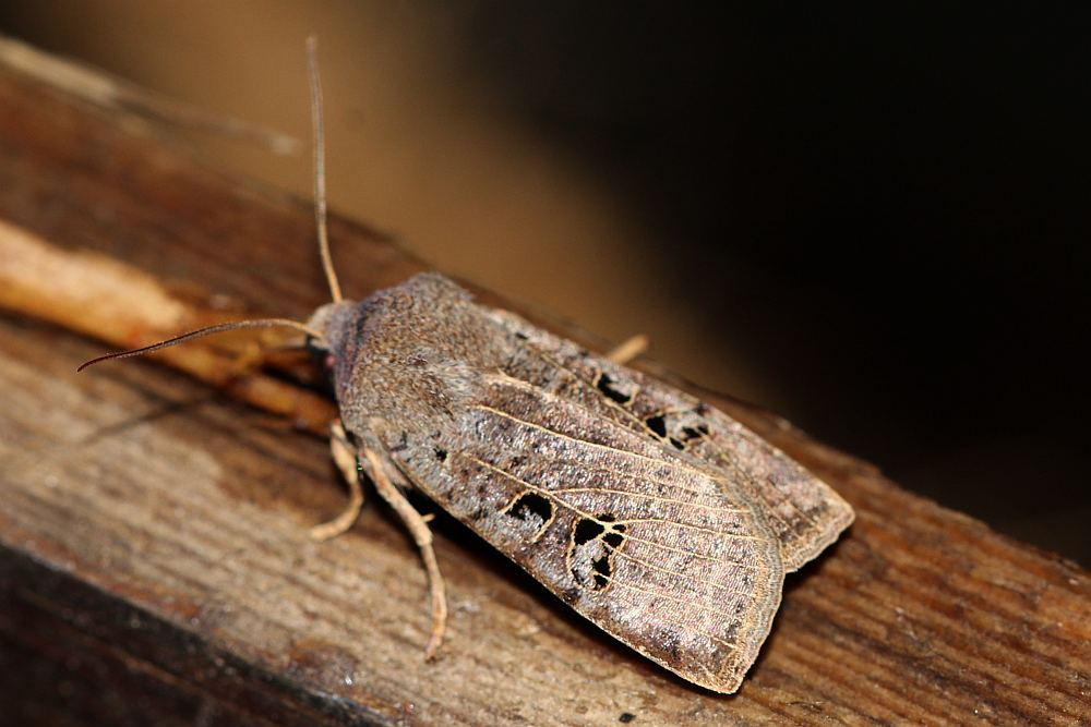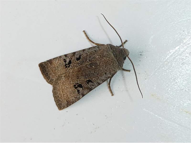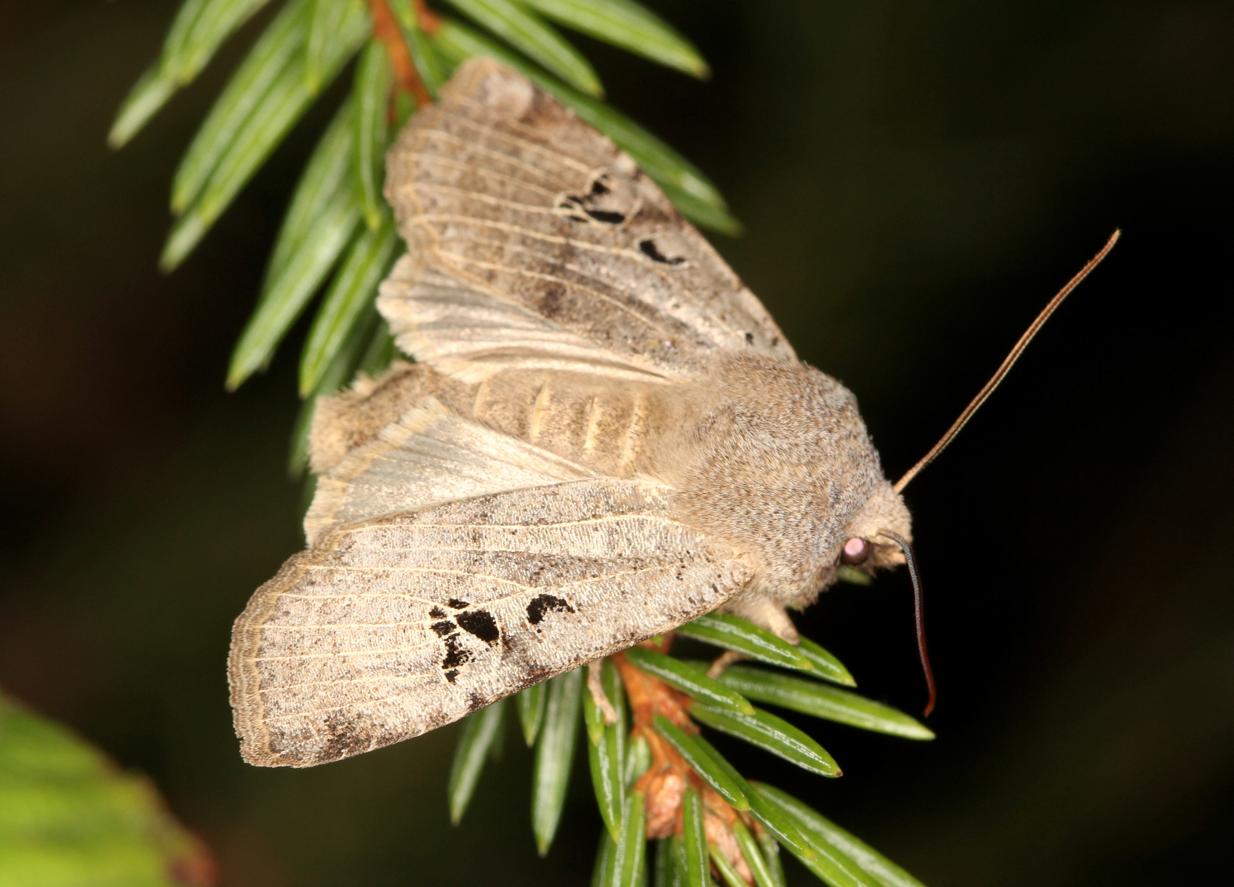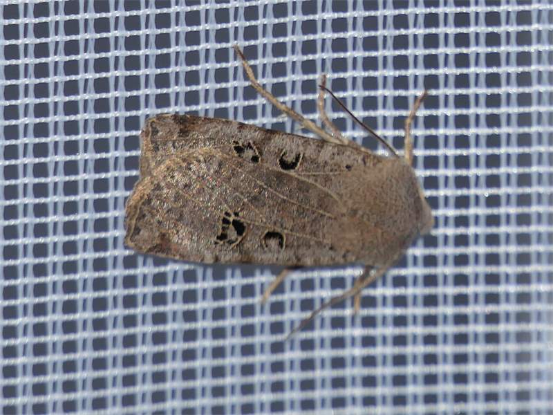 Schwarzgefleckte Wintereule, Conistra rubiginosa, Ablichtung auf Hausterrasse, Leipzig-Gohlis-Mitte, 06. März 2024