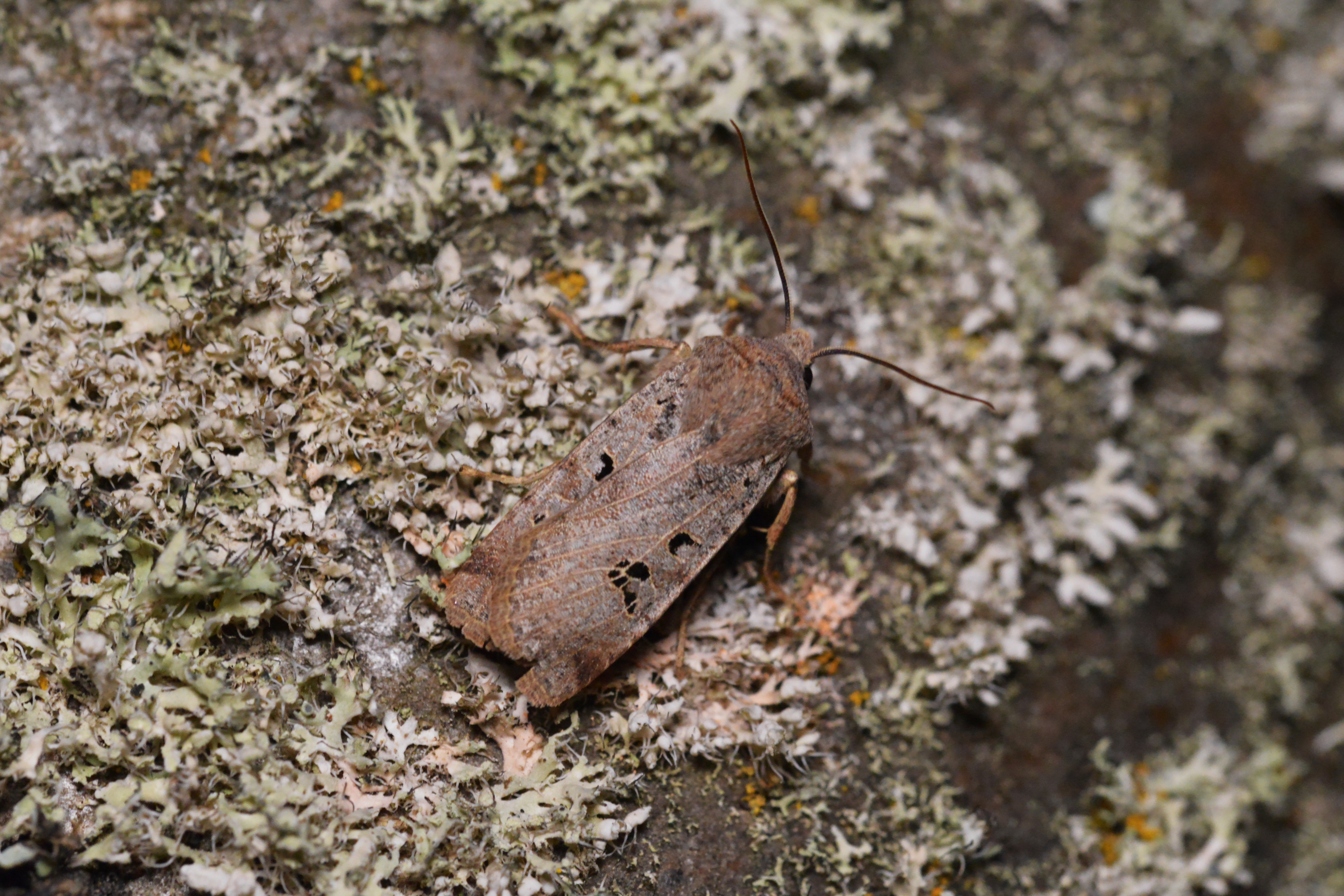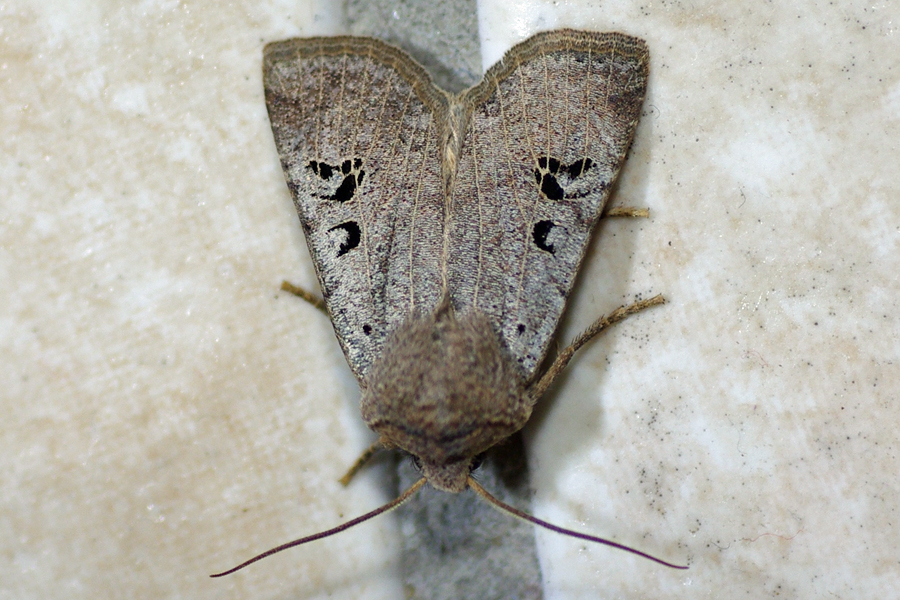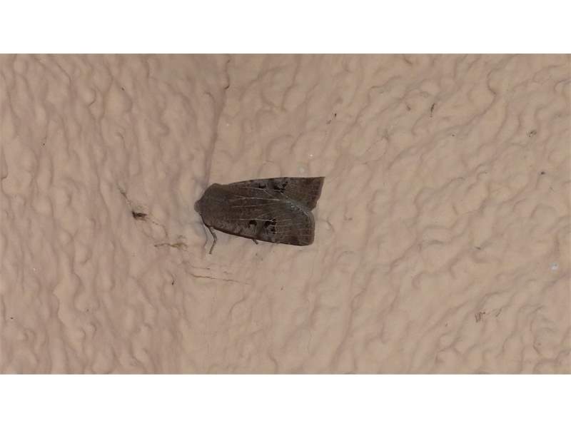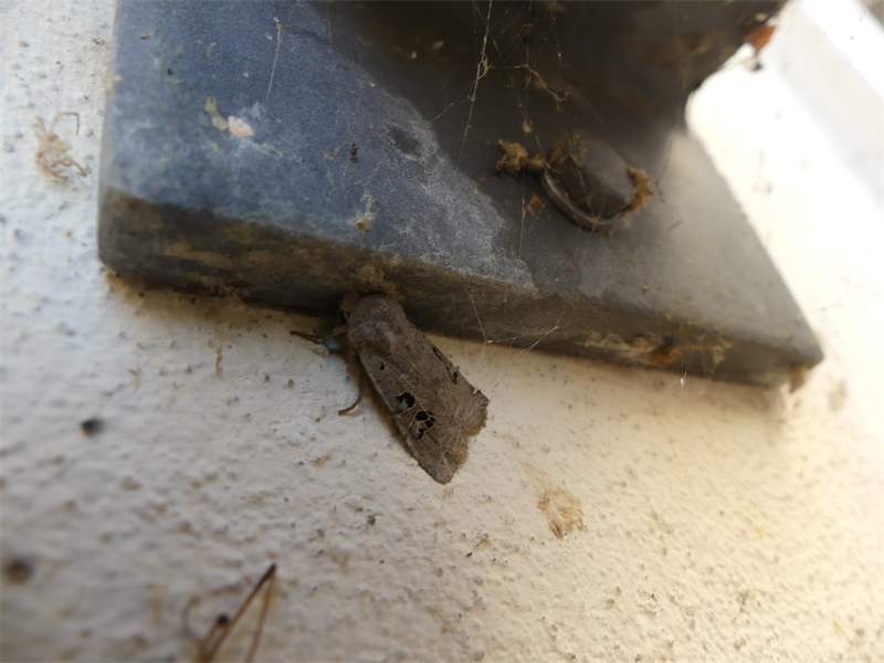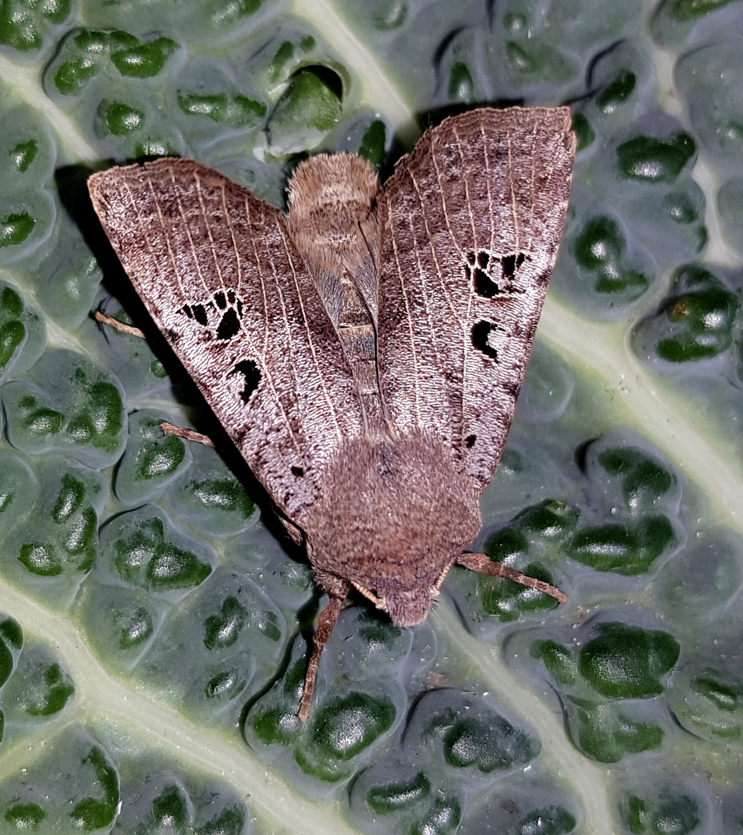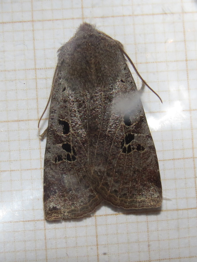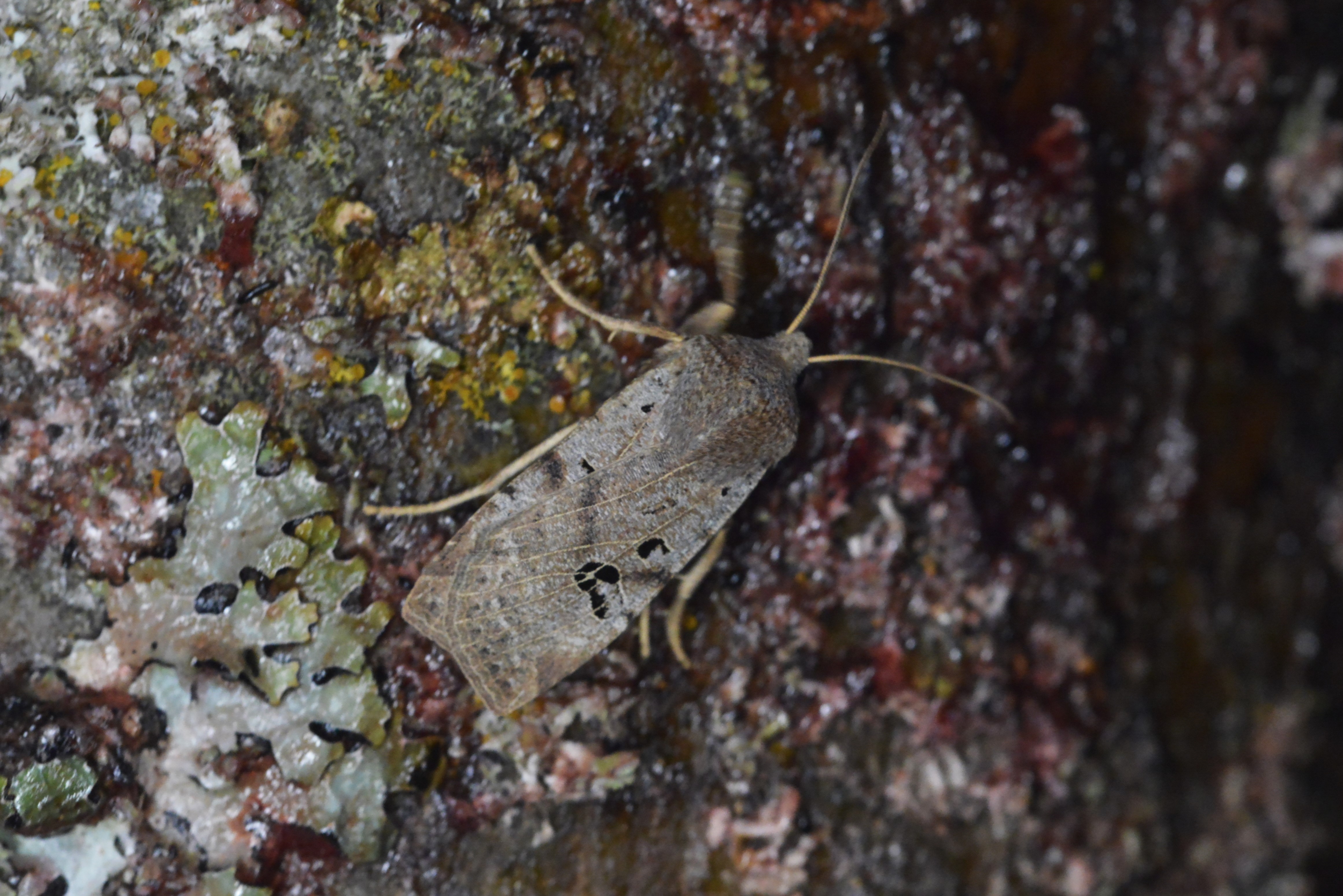 Schwarzgefleckte Wintereule, Conistra rubiginosa, Ablichtung auf Hausterrasse, Leipzig-Gohlis-Mitte, 06. März 2024