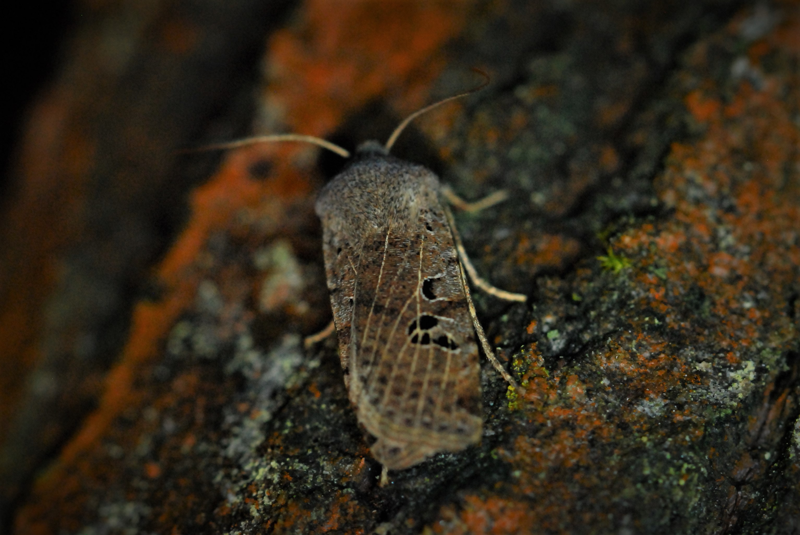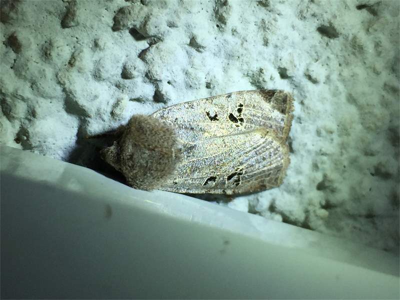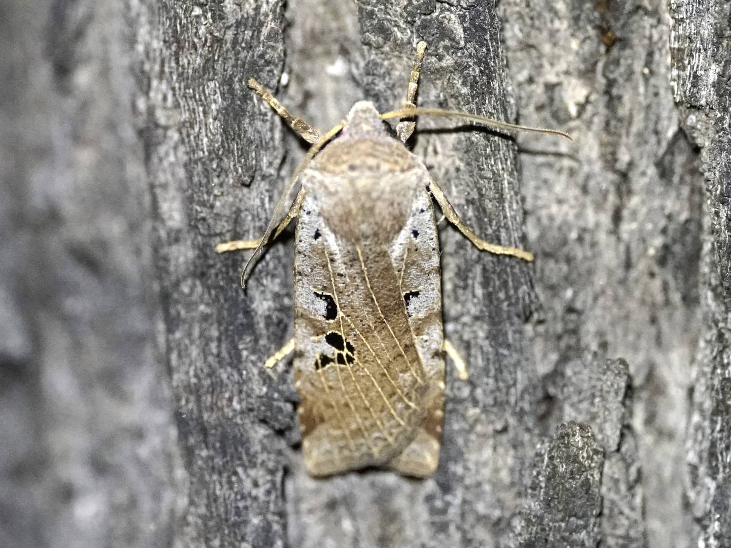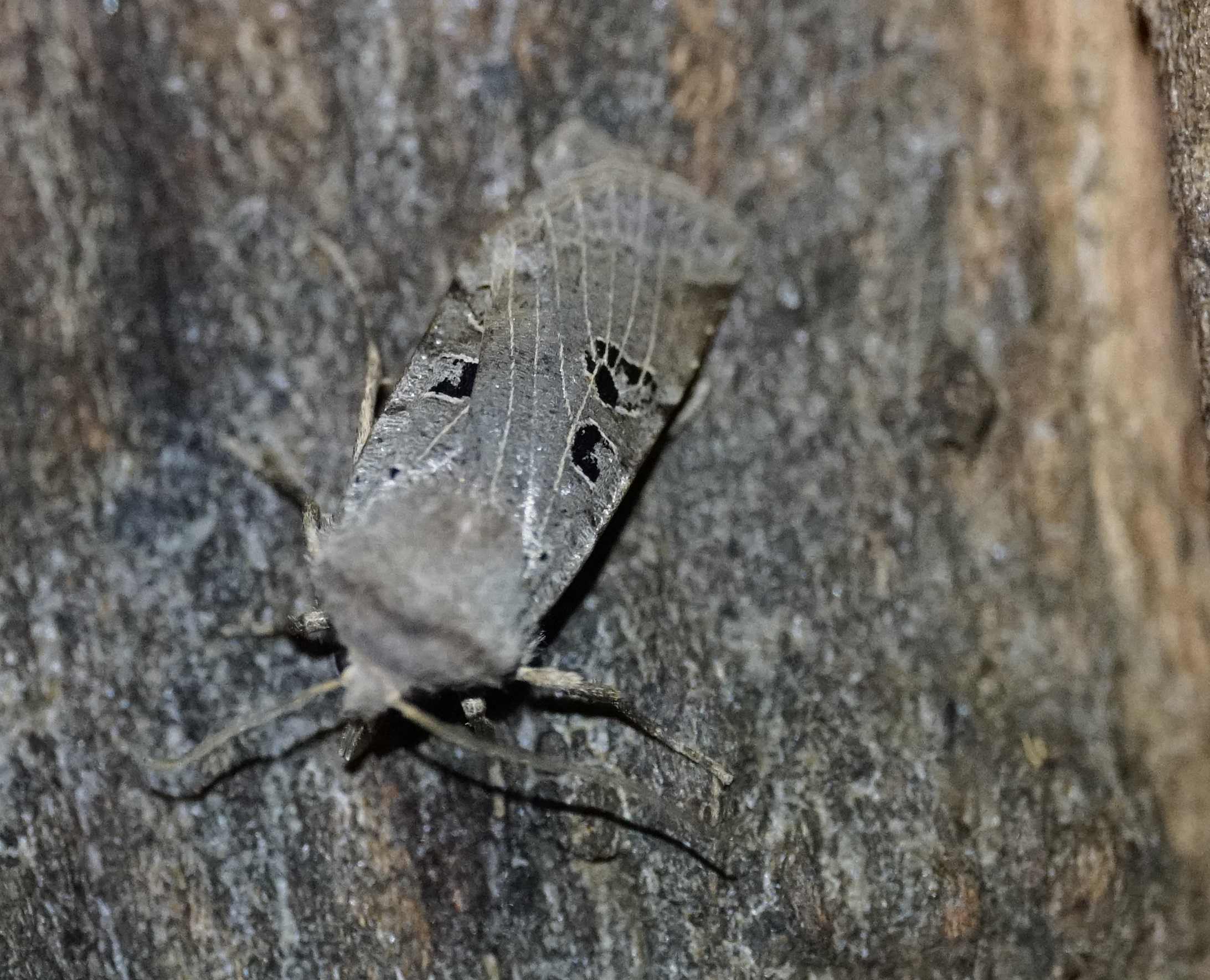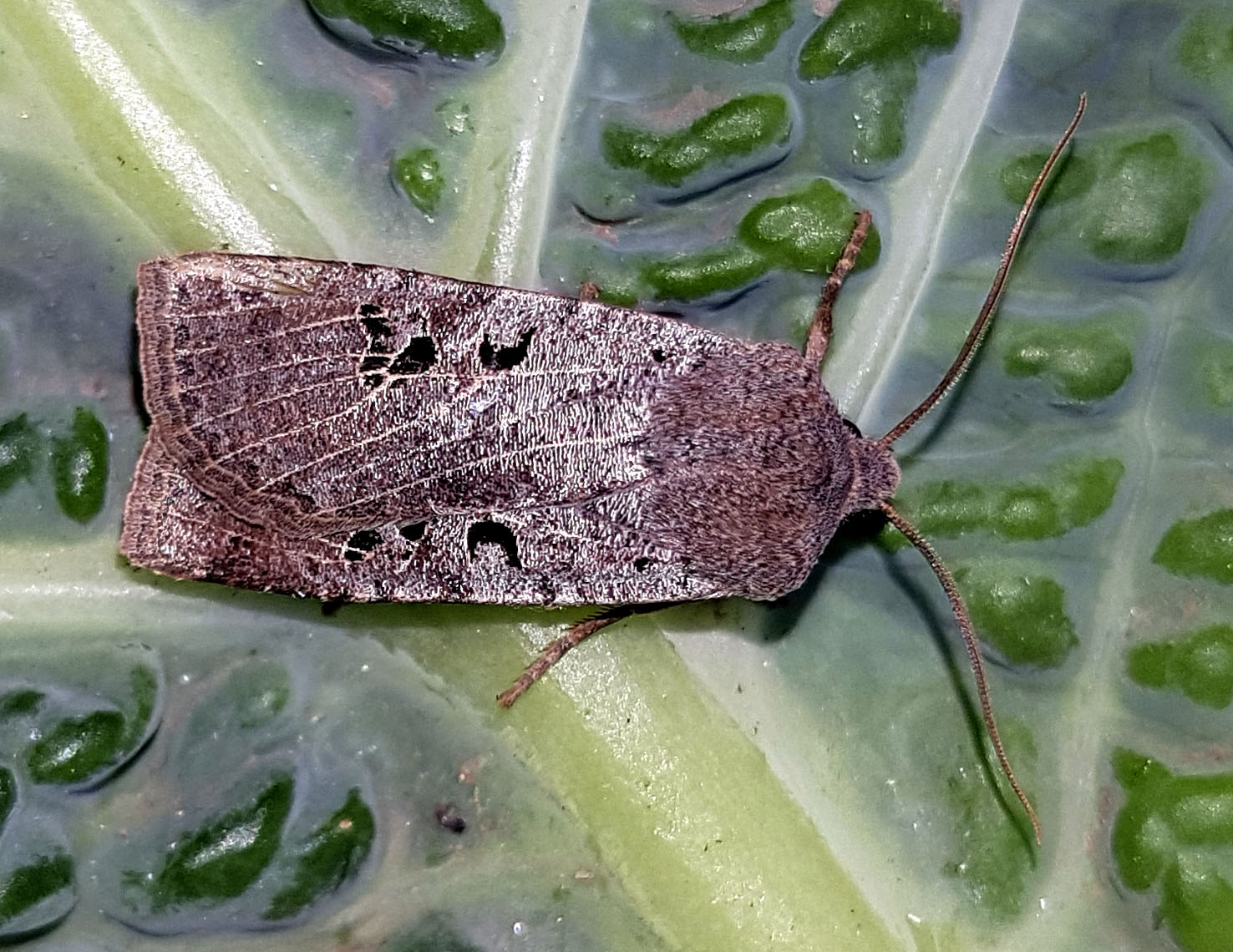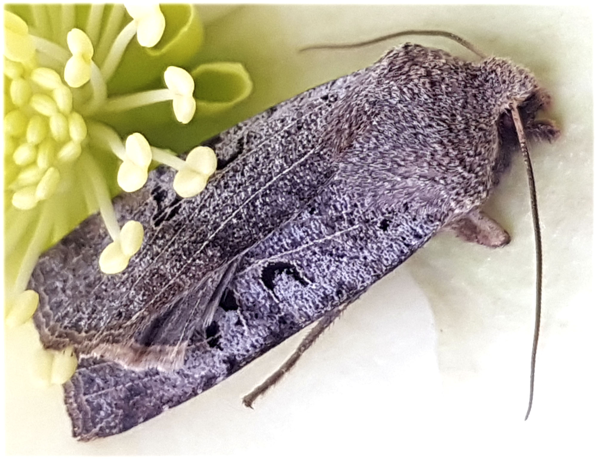 Schwarzgefleckte Wintereule, Conistra rubiginosa, Ablichtung auf Hausterrasse, Leipzig-Gohlis-Mitte, 06. März 2024