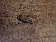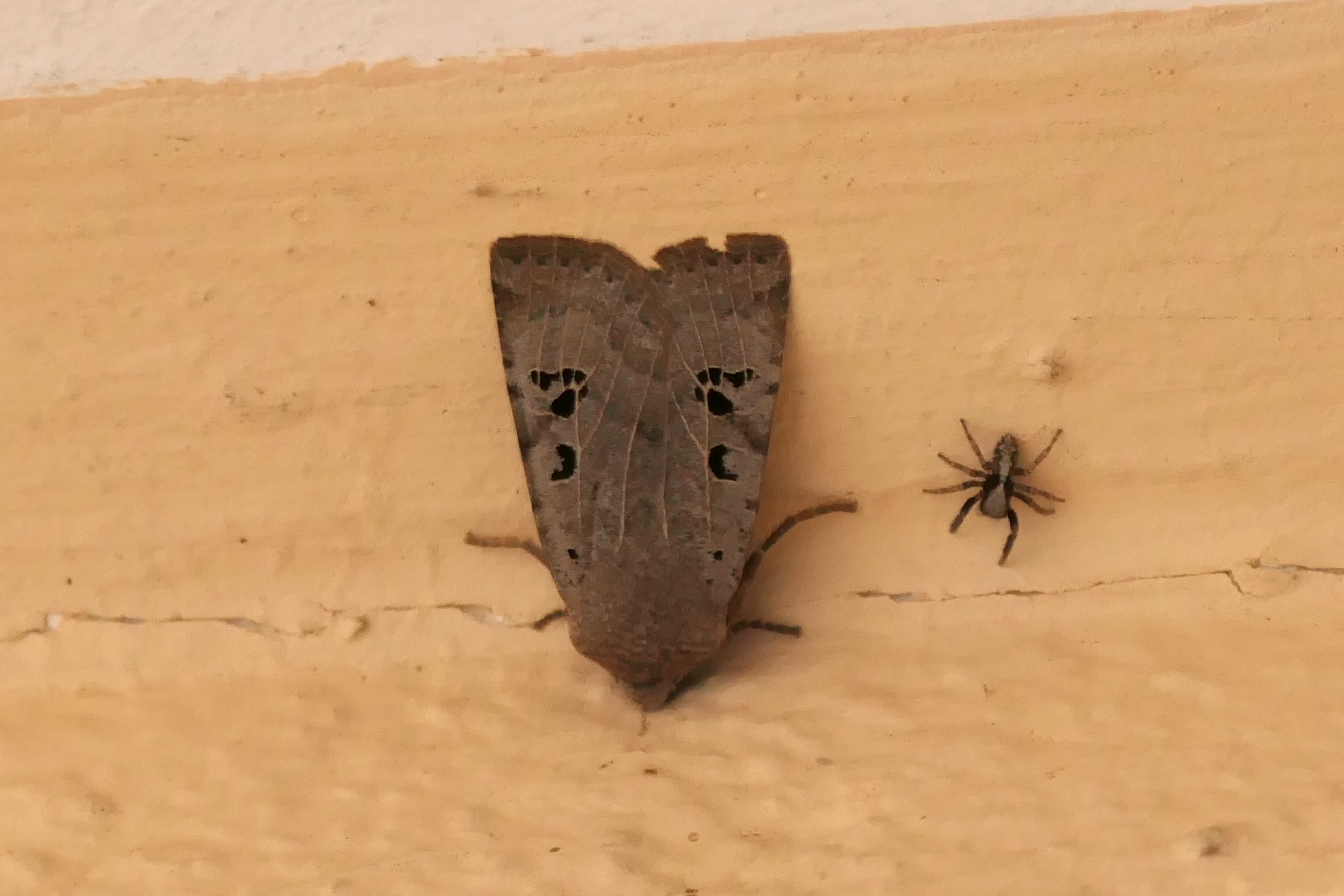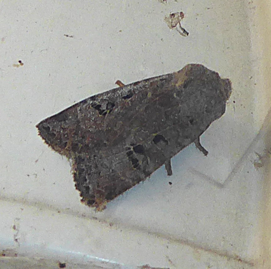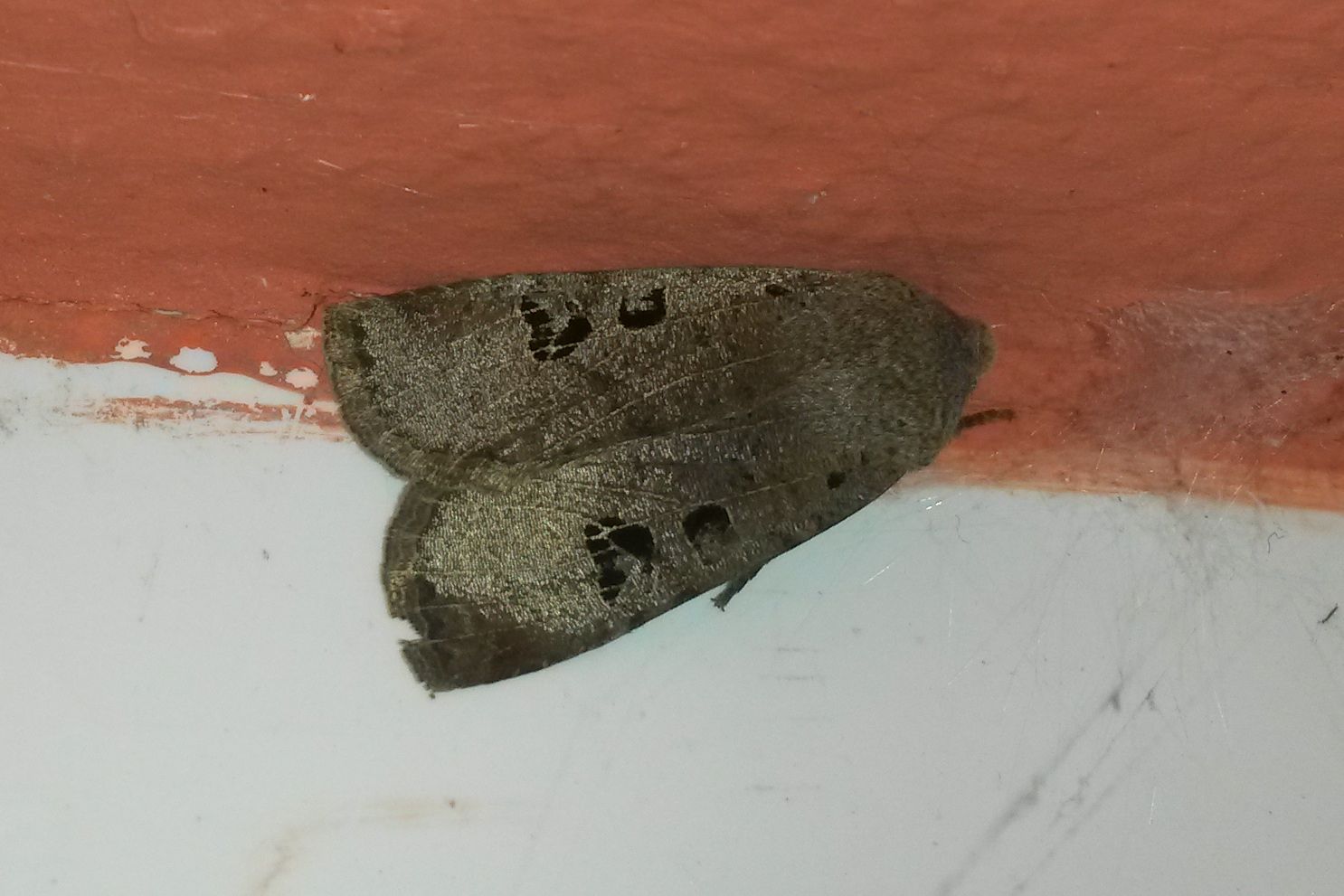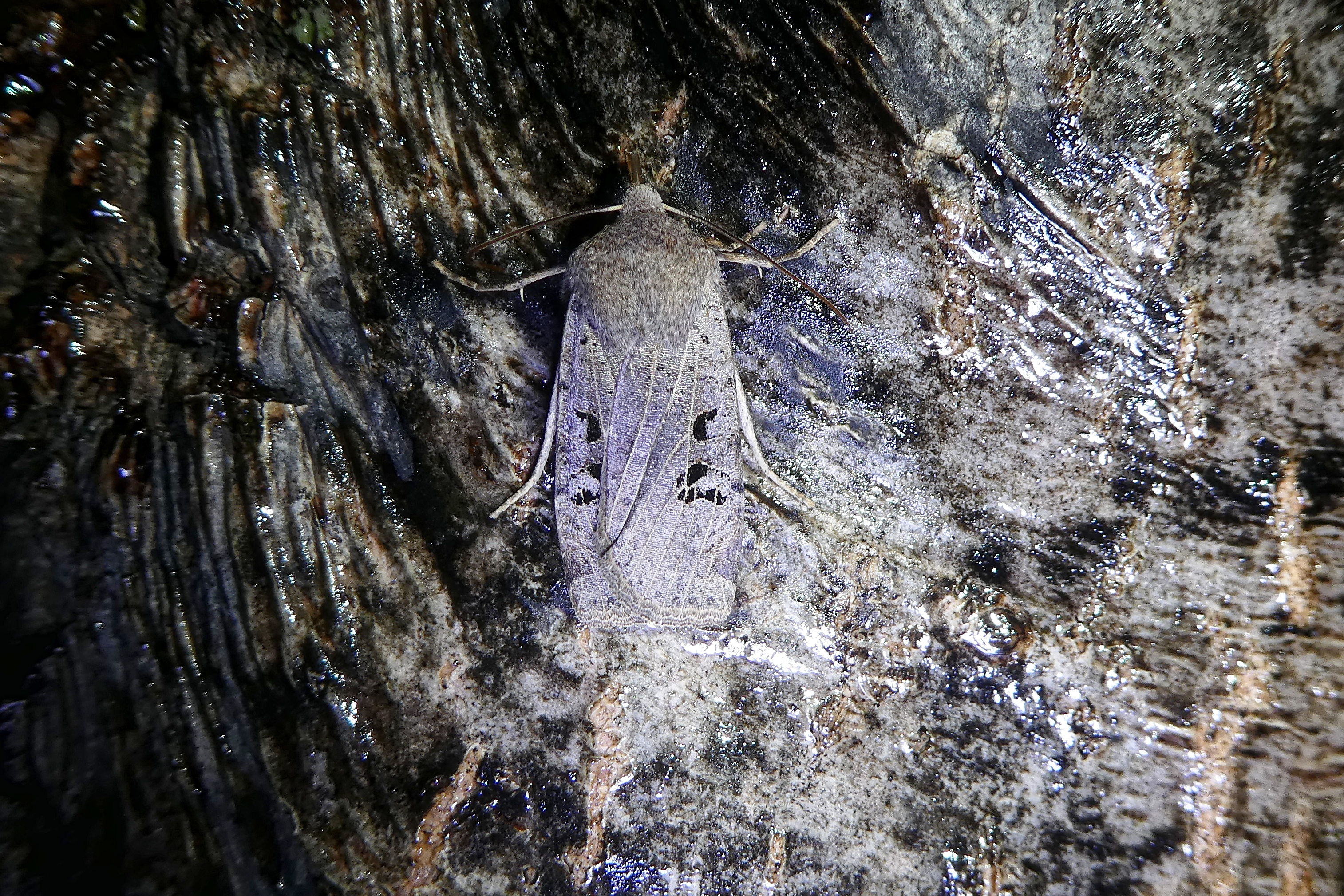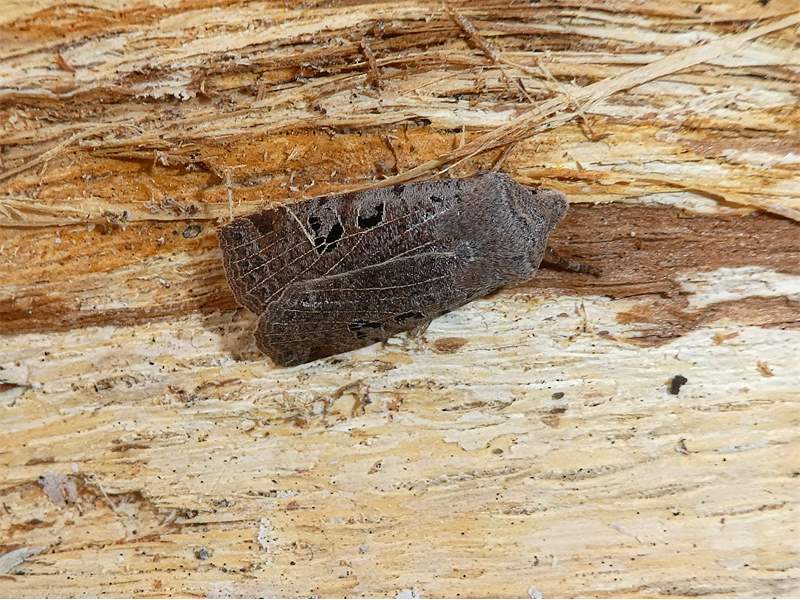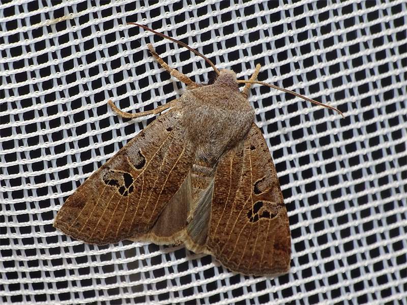 Schwarzgefleckte Wintereule, Conistra rubiginosa, Ablichtung auf Hausterrasse, Leipzig-Gohlis-Mitte, 06. März 2024