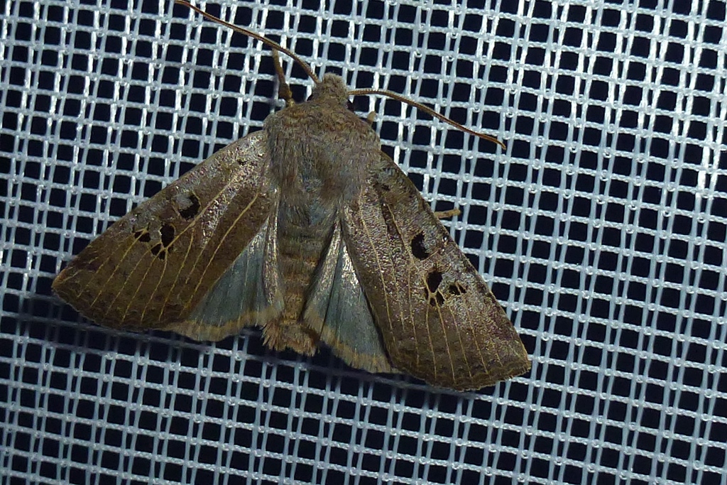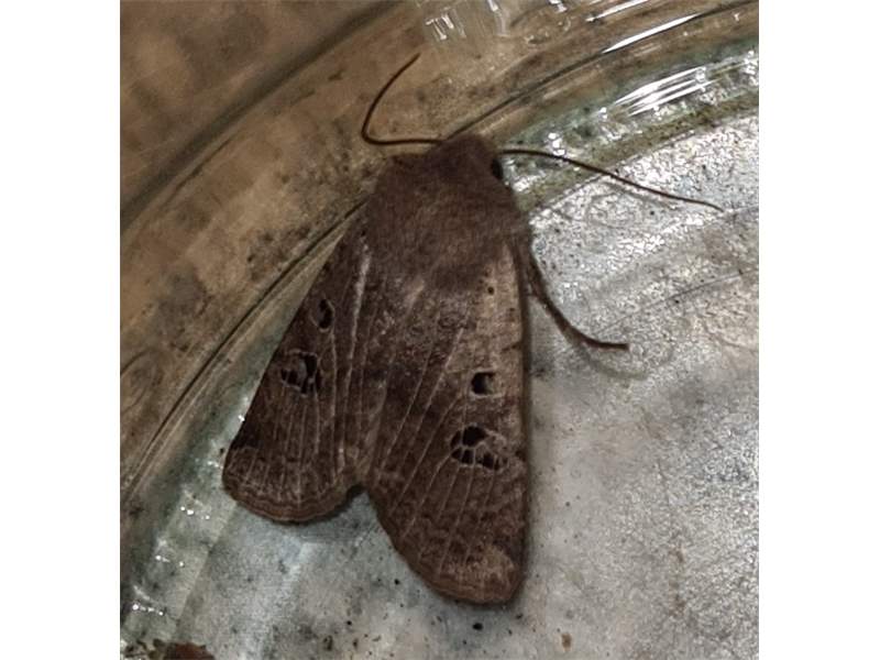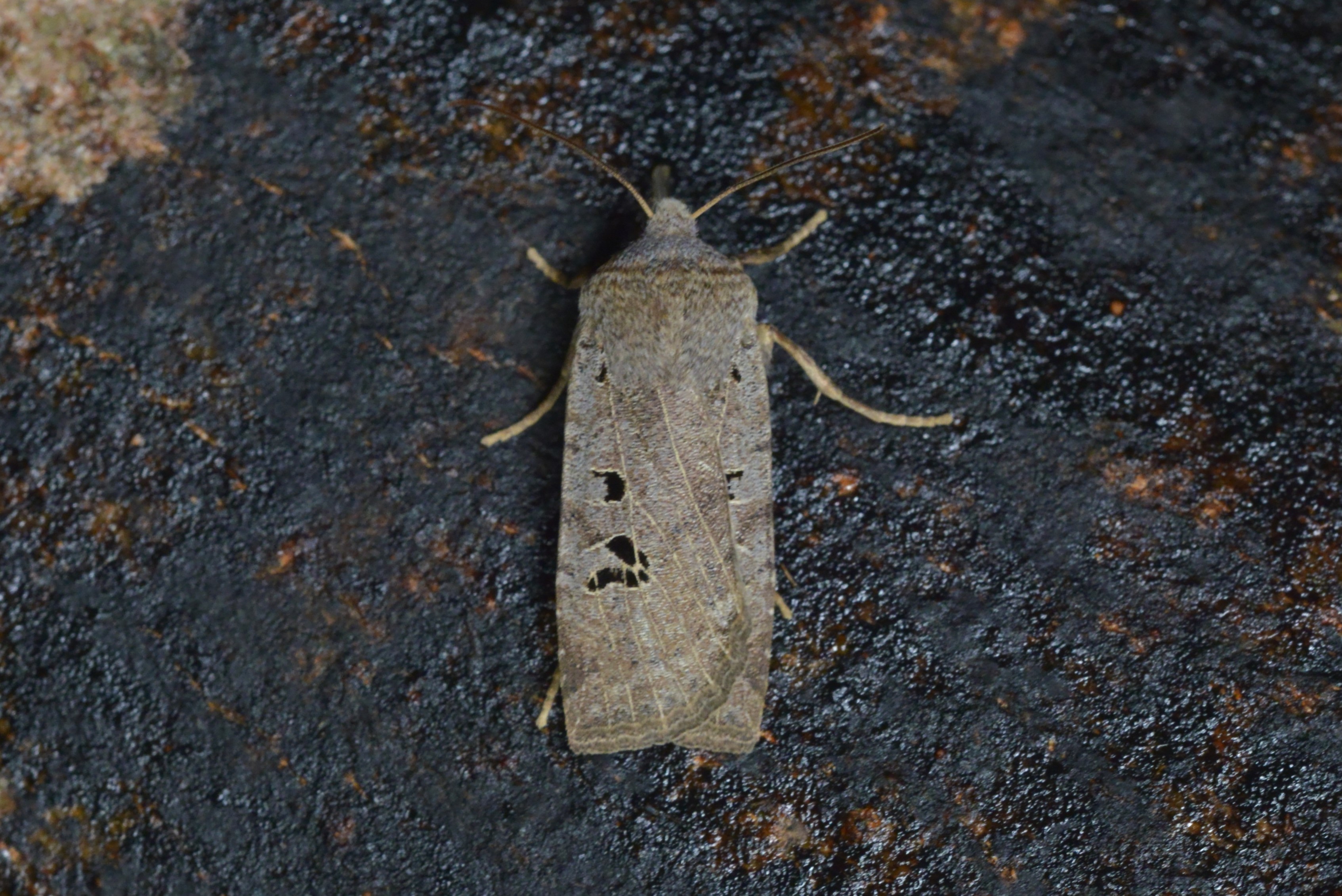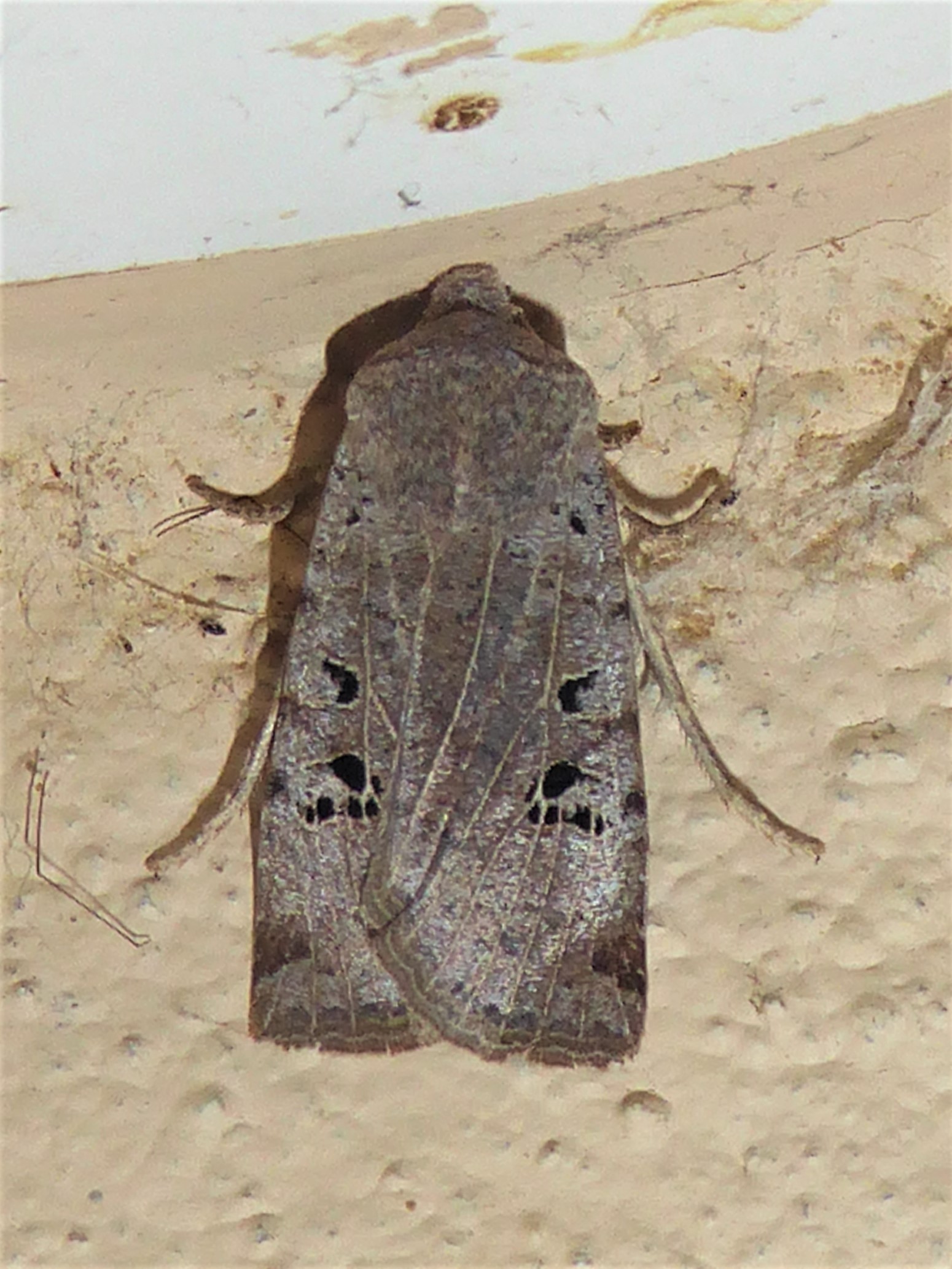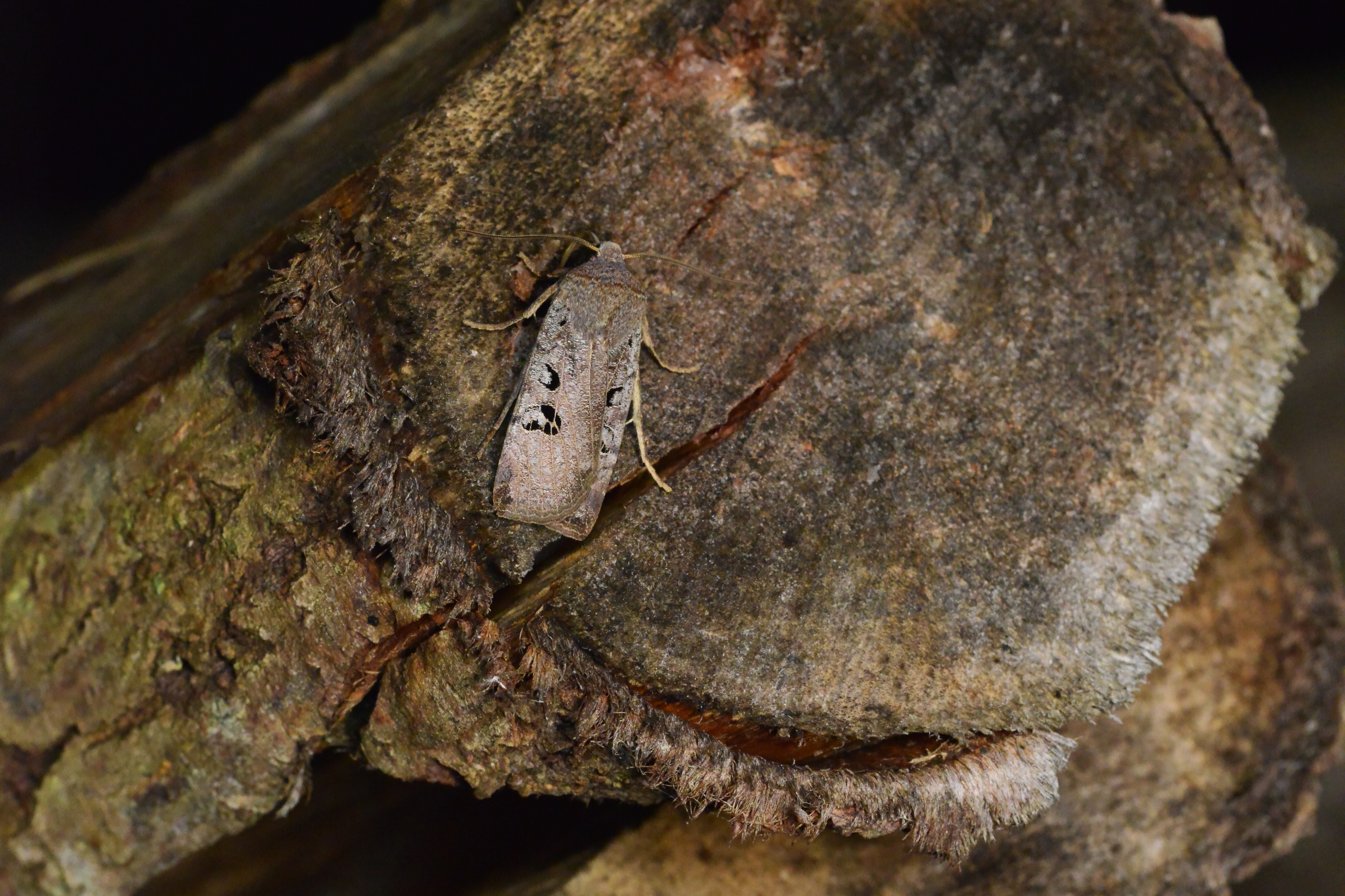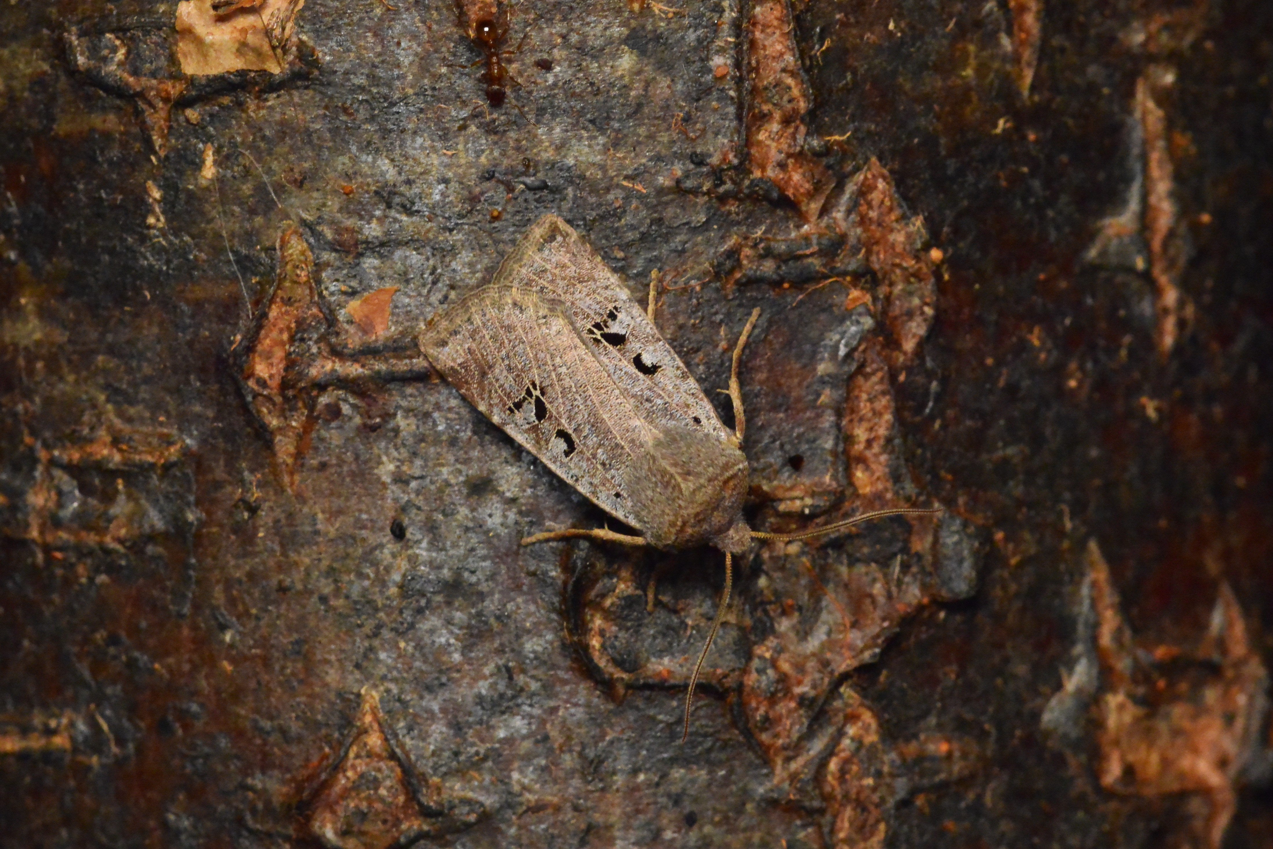 Schwarzgefleckte Wintereule, Conistra rubiginosa, Ablichtung auf Hausterrasse, Leipzig-Gohlis-Mitte, 06. März 2024