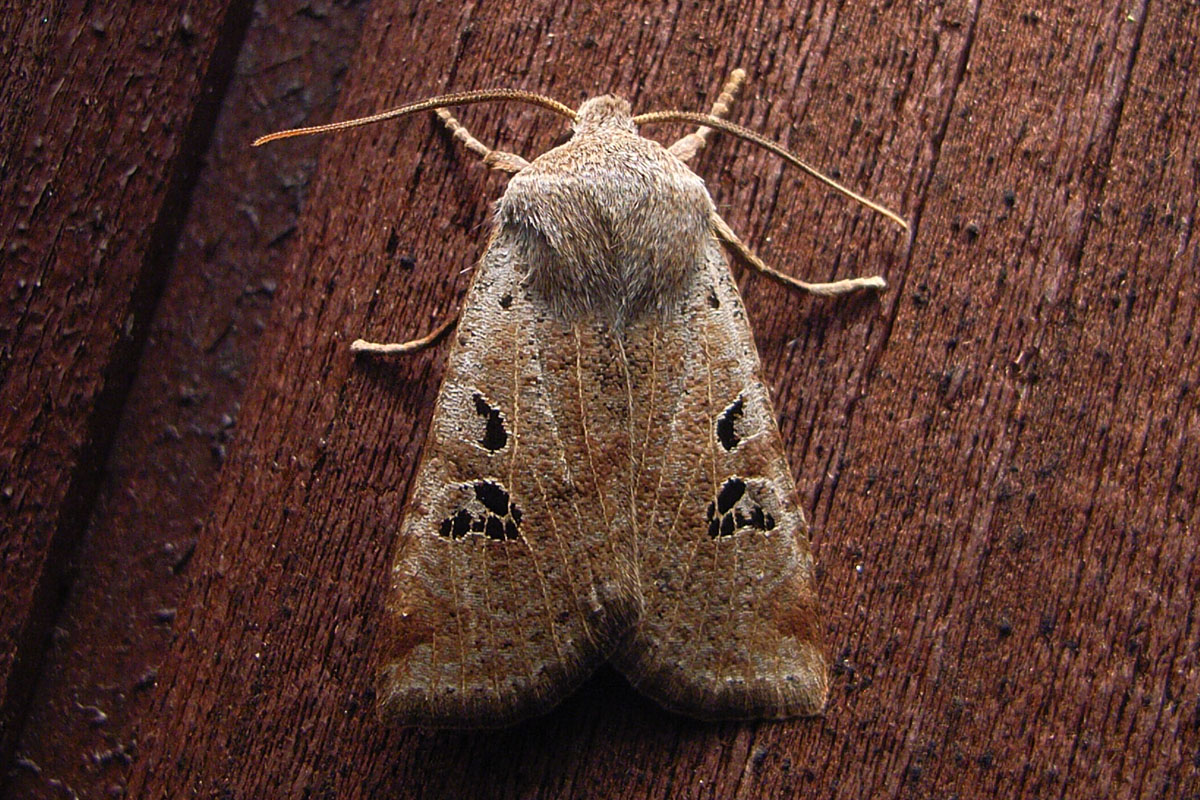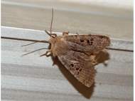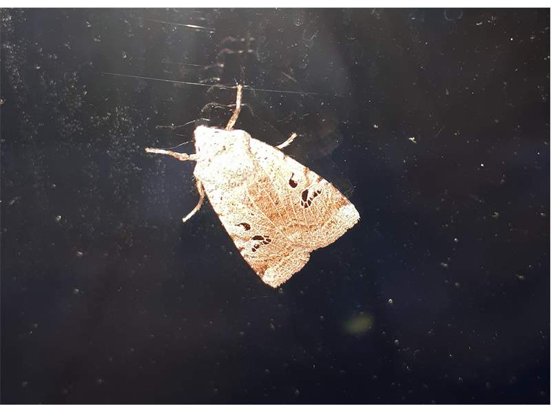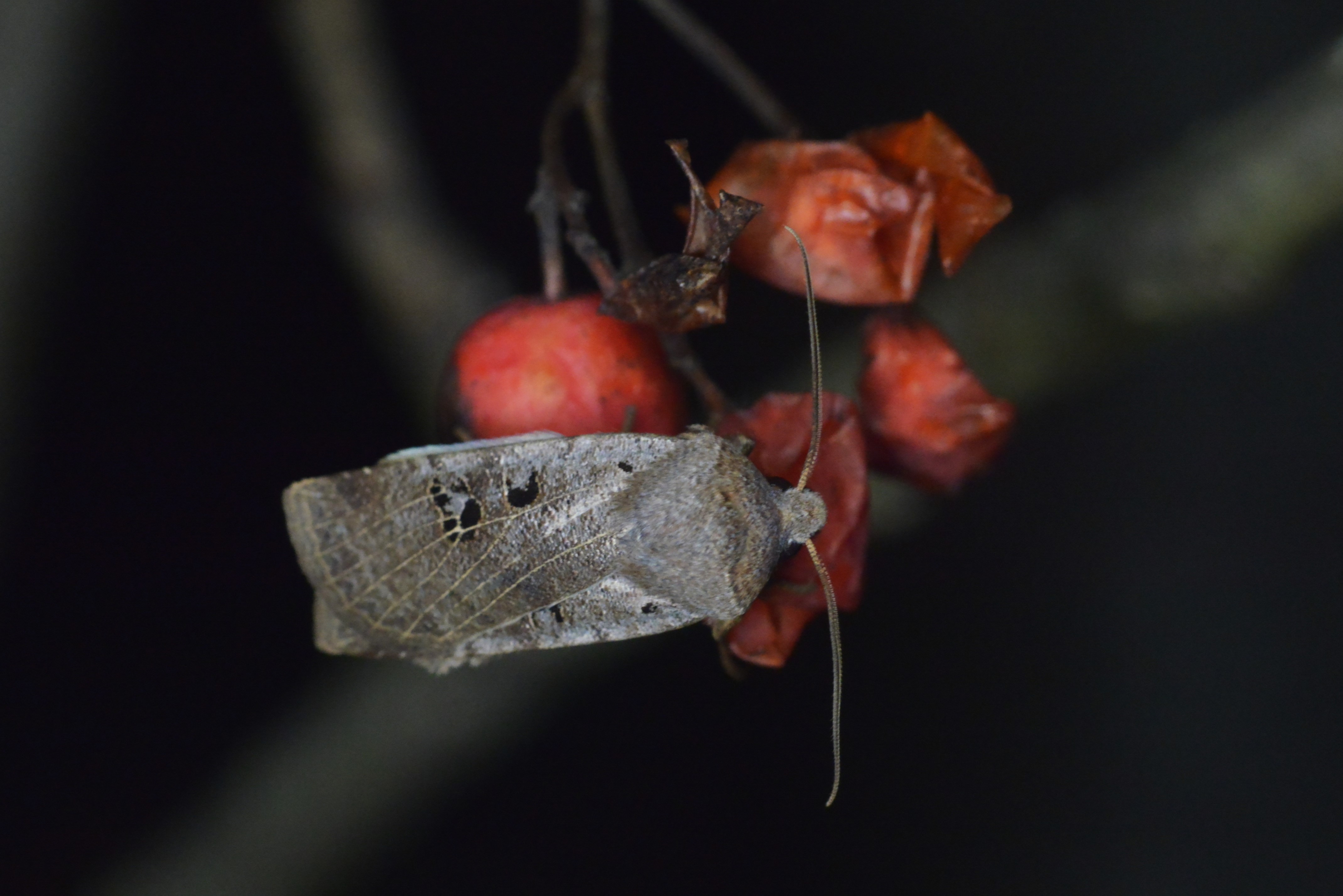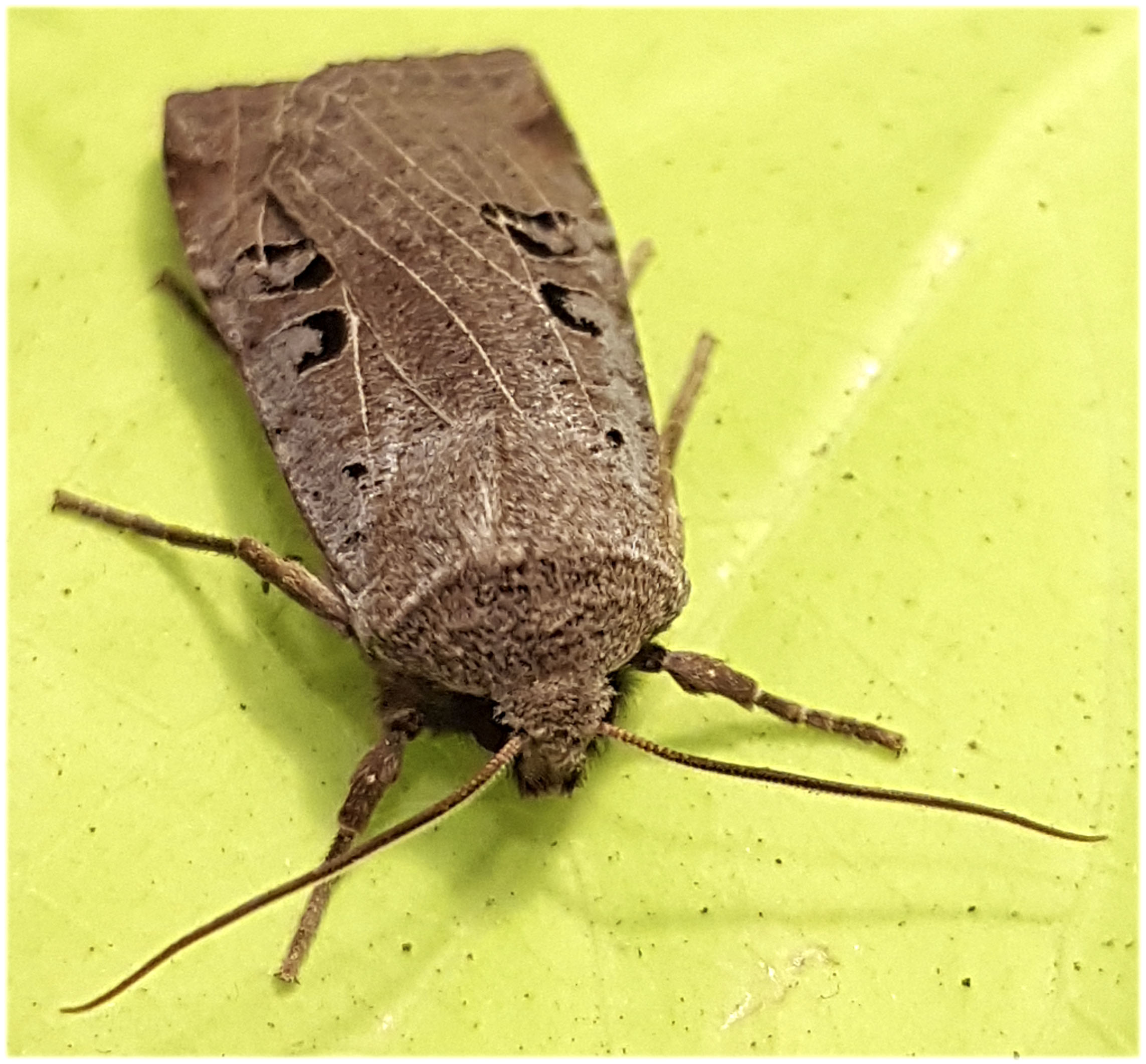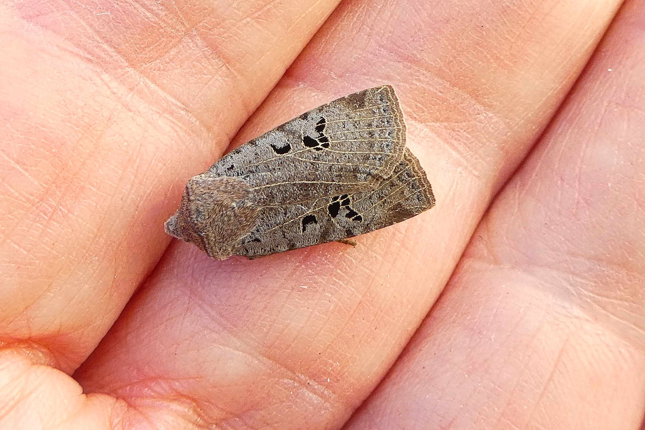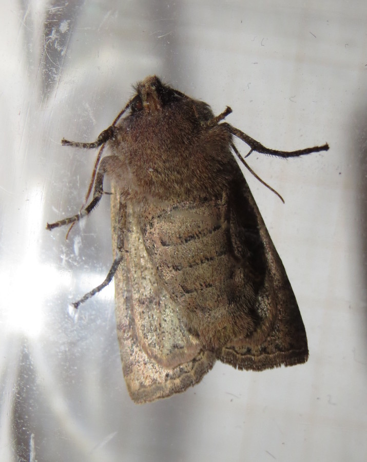 Schwarzgefleckte Wintereule, Conistra rubiginosa, Ablichtung auf Hausterrasse, Leipzig-Gohlis-Mitte, 06. März 2024