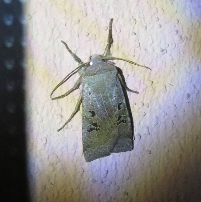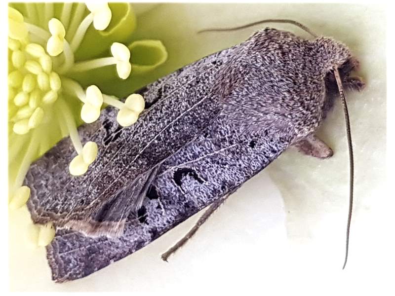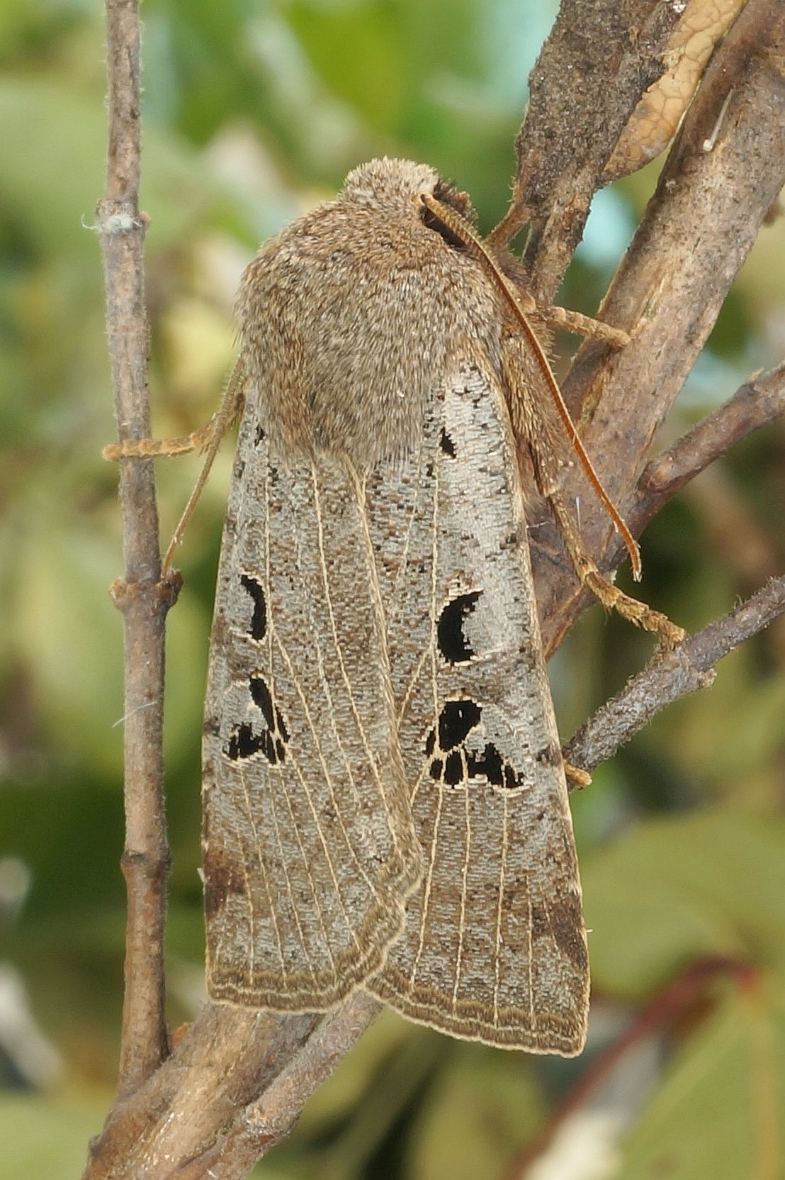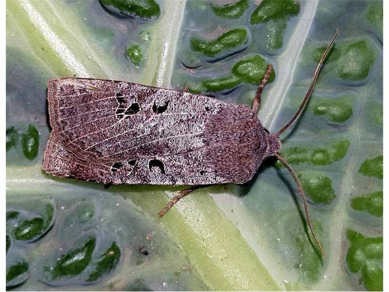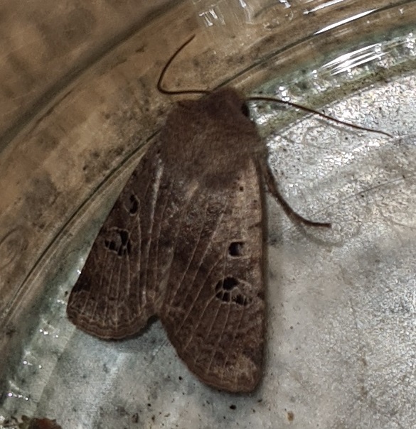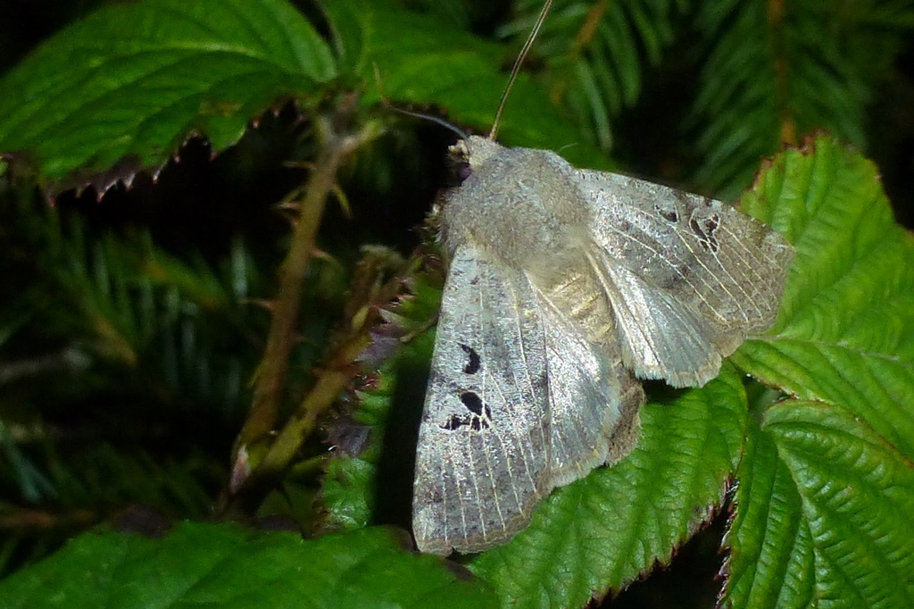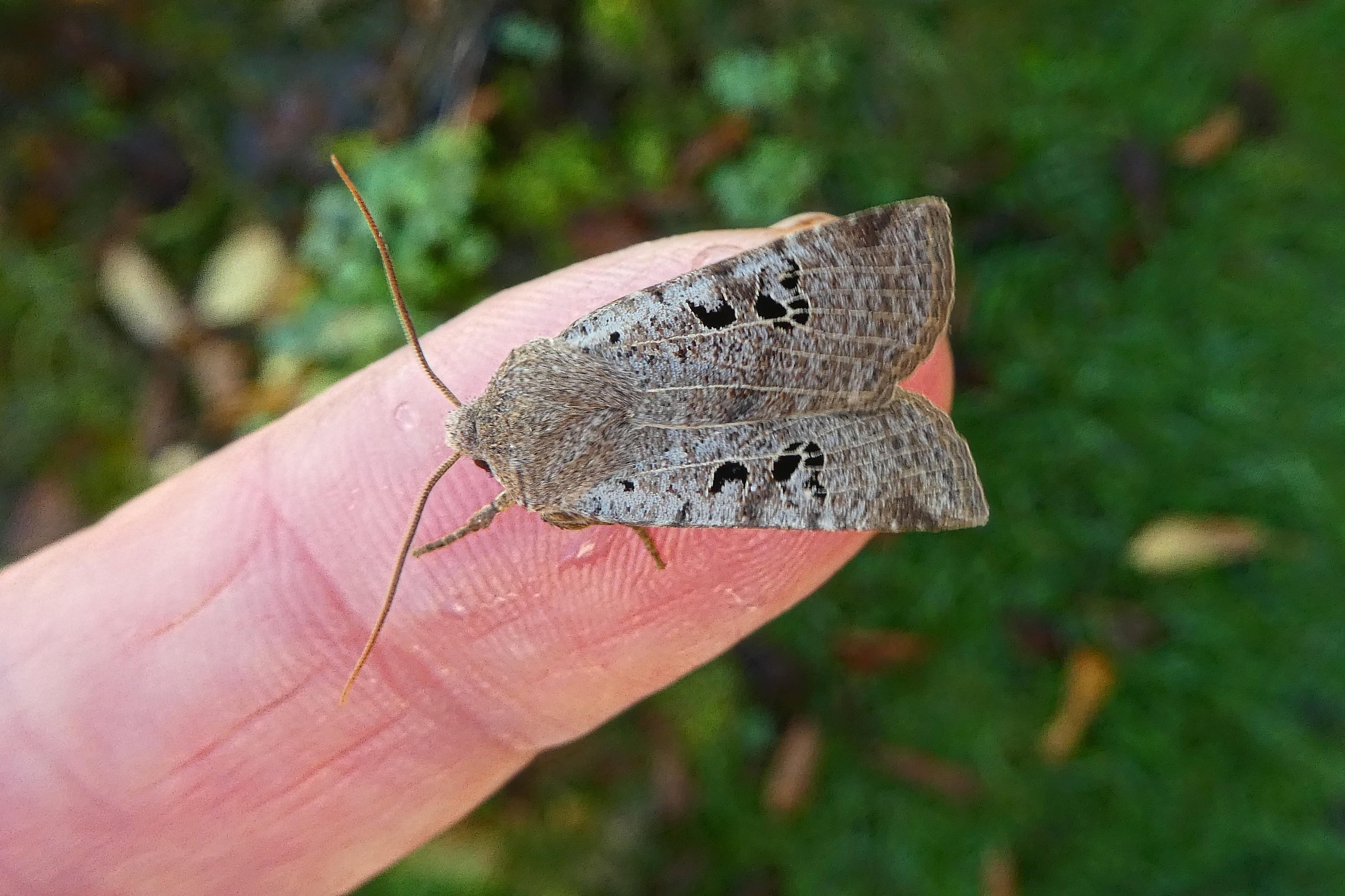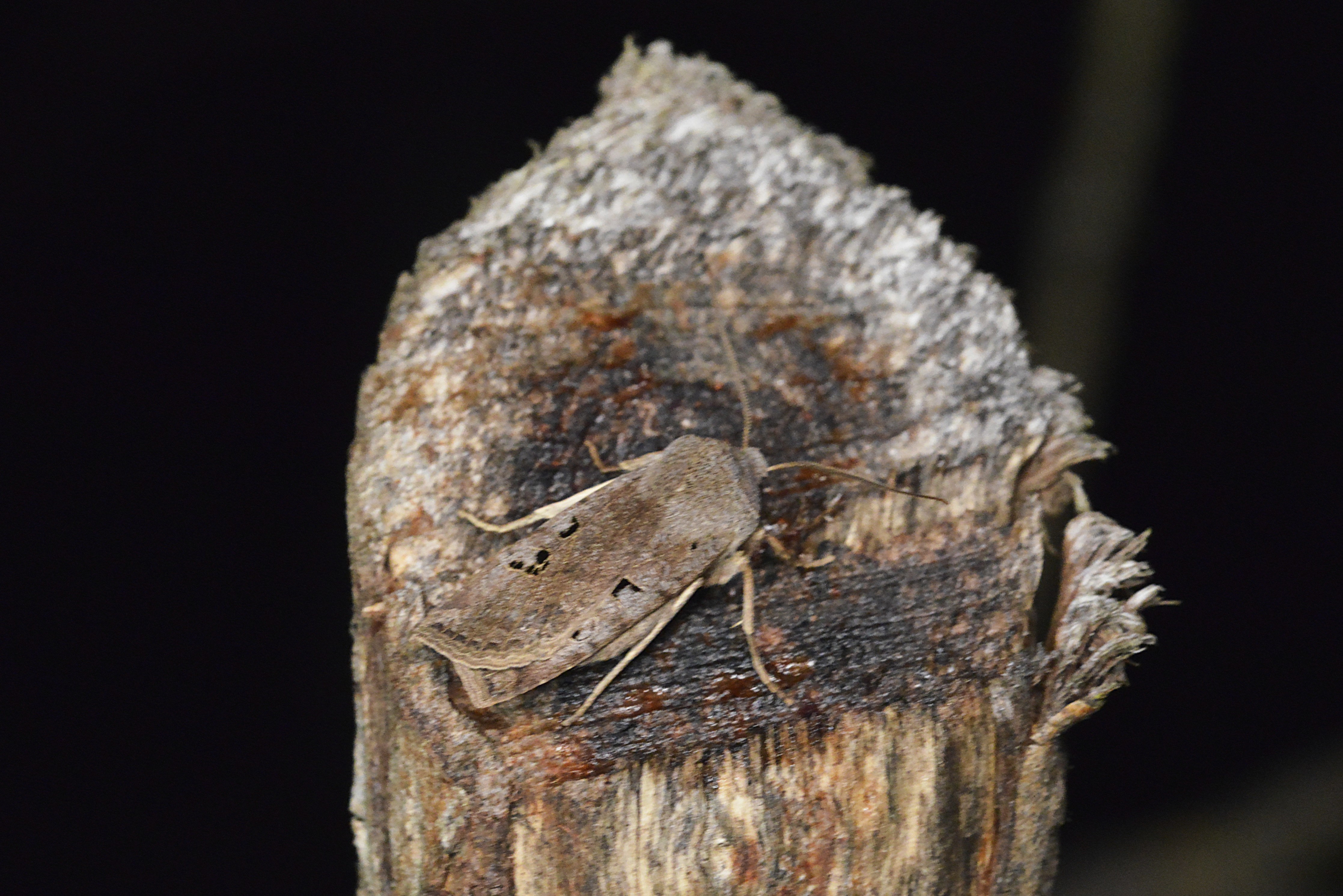 Schwarzgefleckte Wintereule, Conistra rubiginosa, Ablichtung auf Hausterrasse, Leipzig-Gohlis-Mitte, 06. März 2024