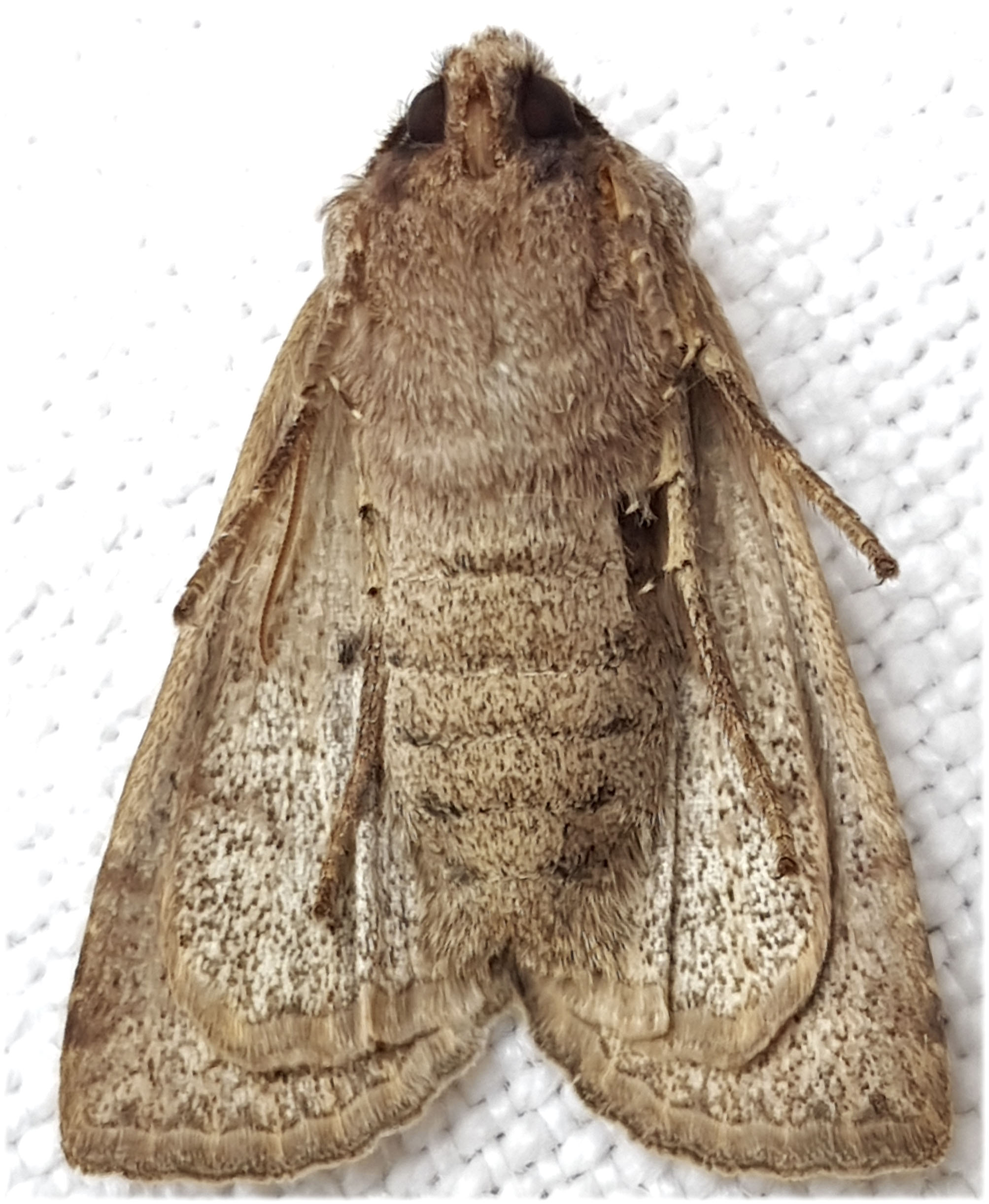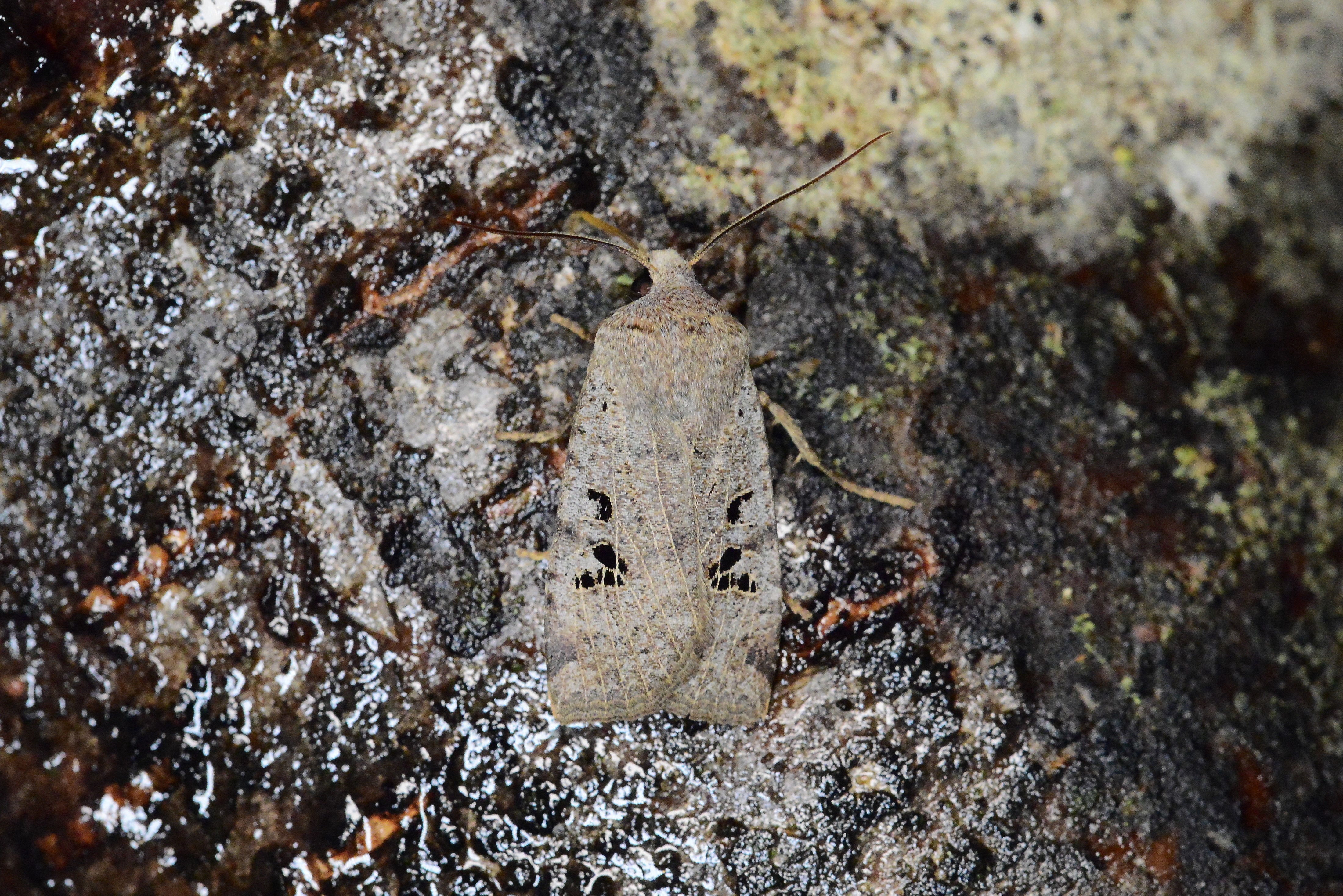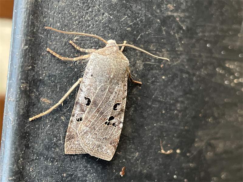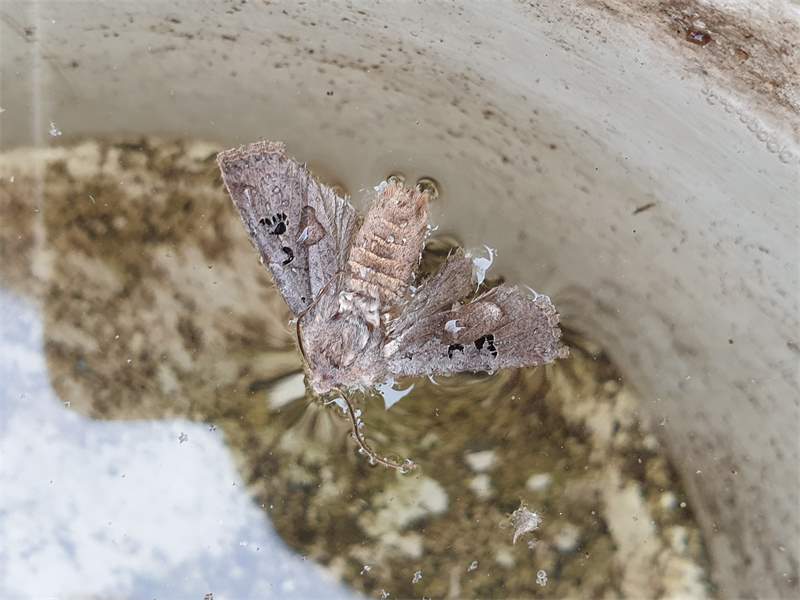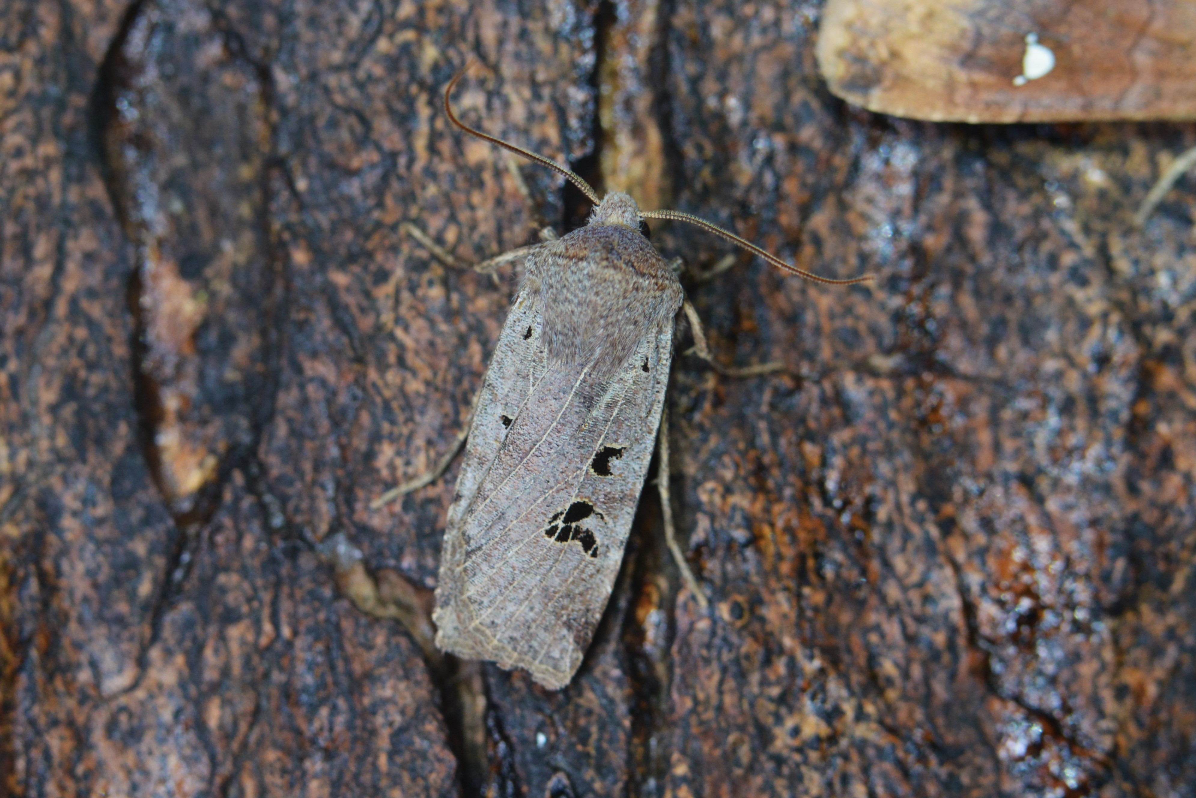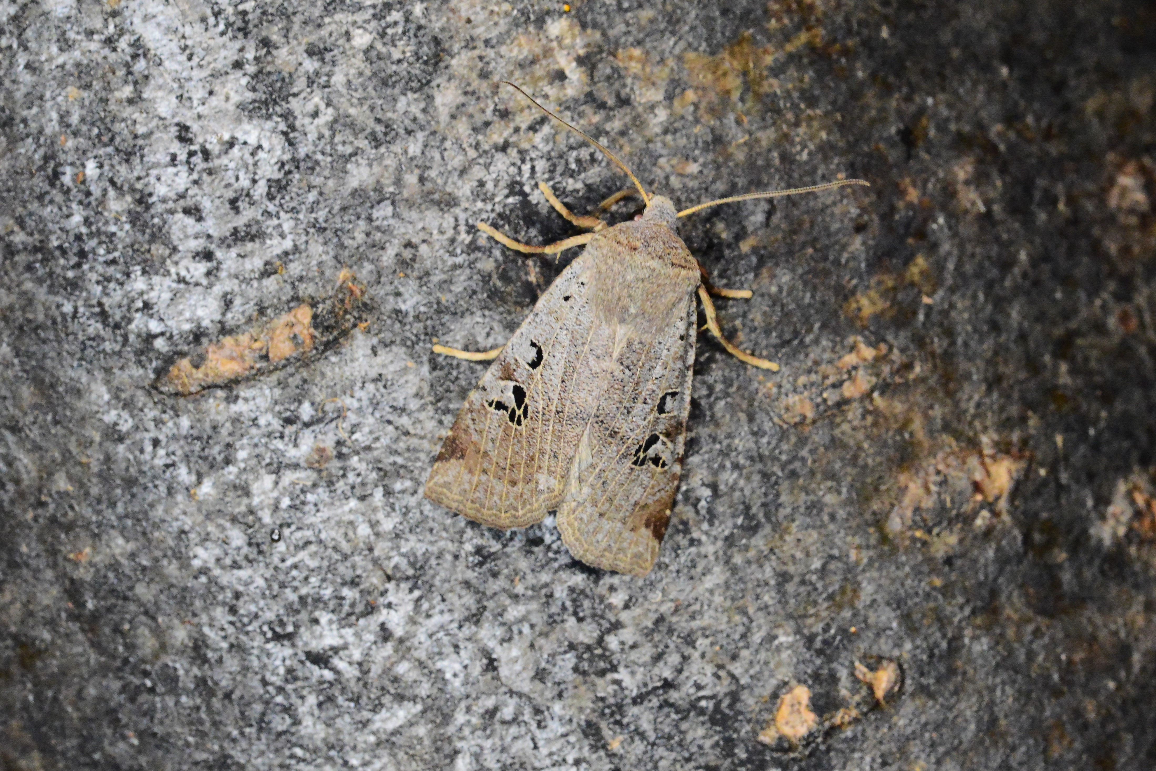 Schwarzgefleckte Wintereule, Conistra rubiginosa, Ablichtung auf Hausterrasse, Leipzig-Gohlis-Mitte, 06. März 2024