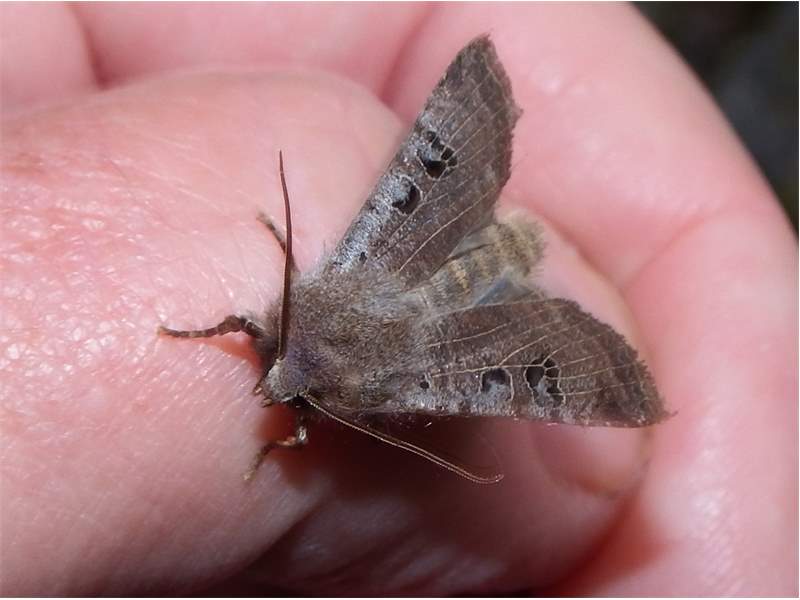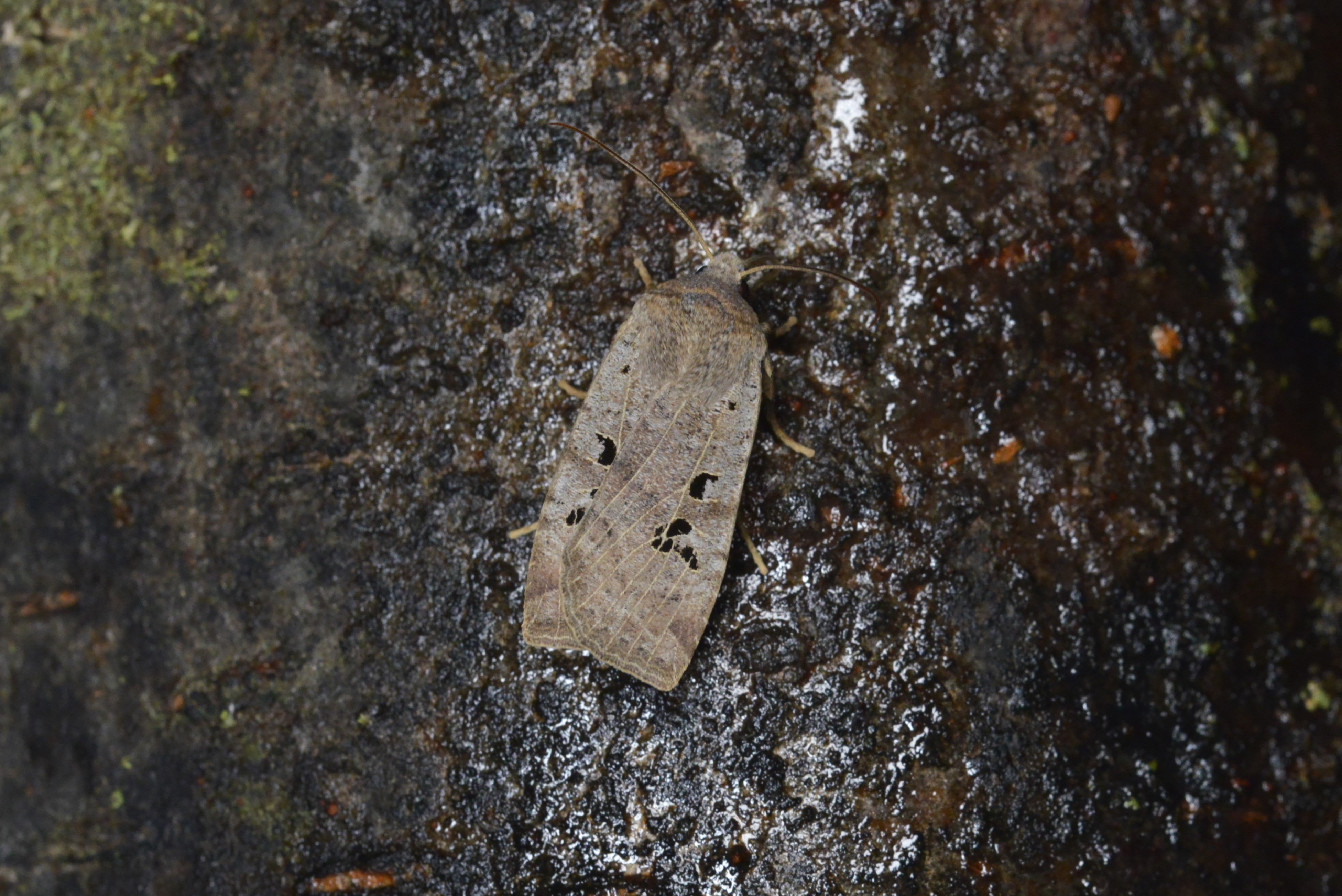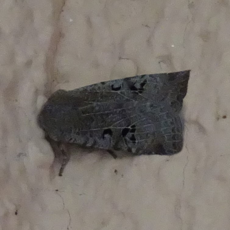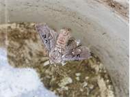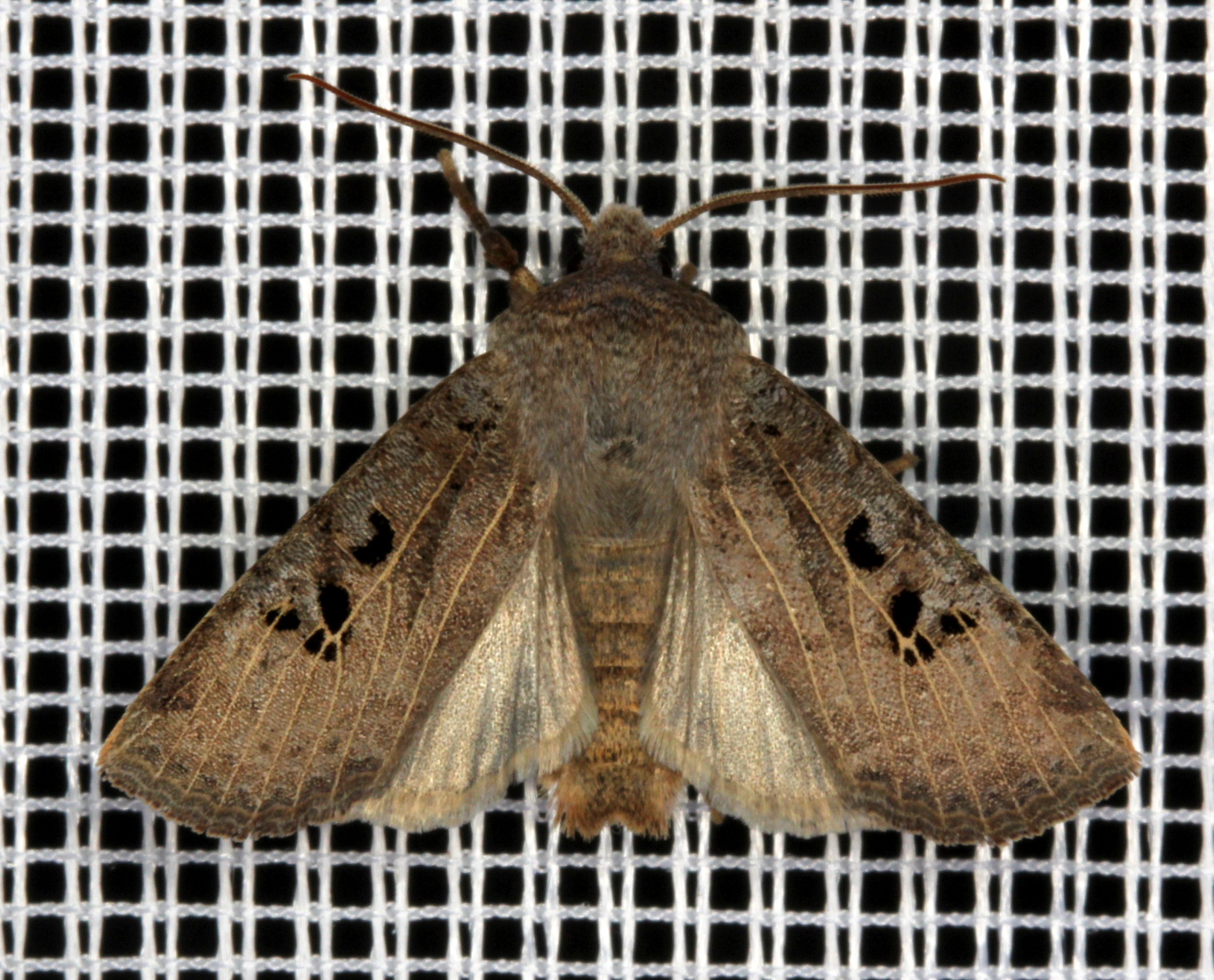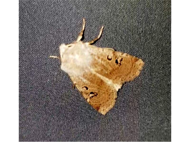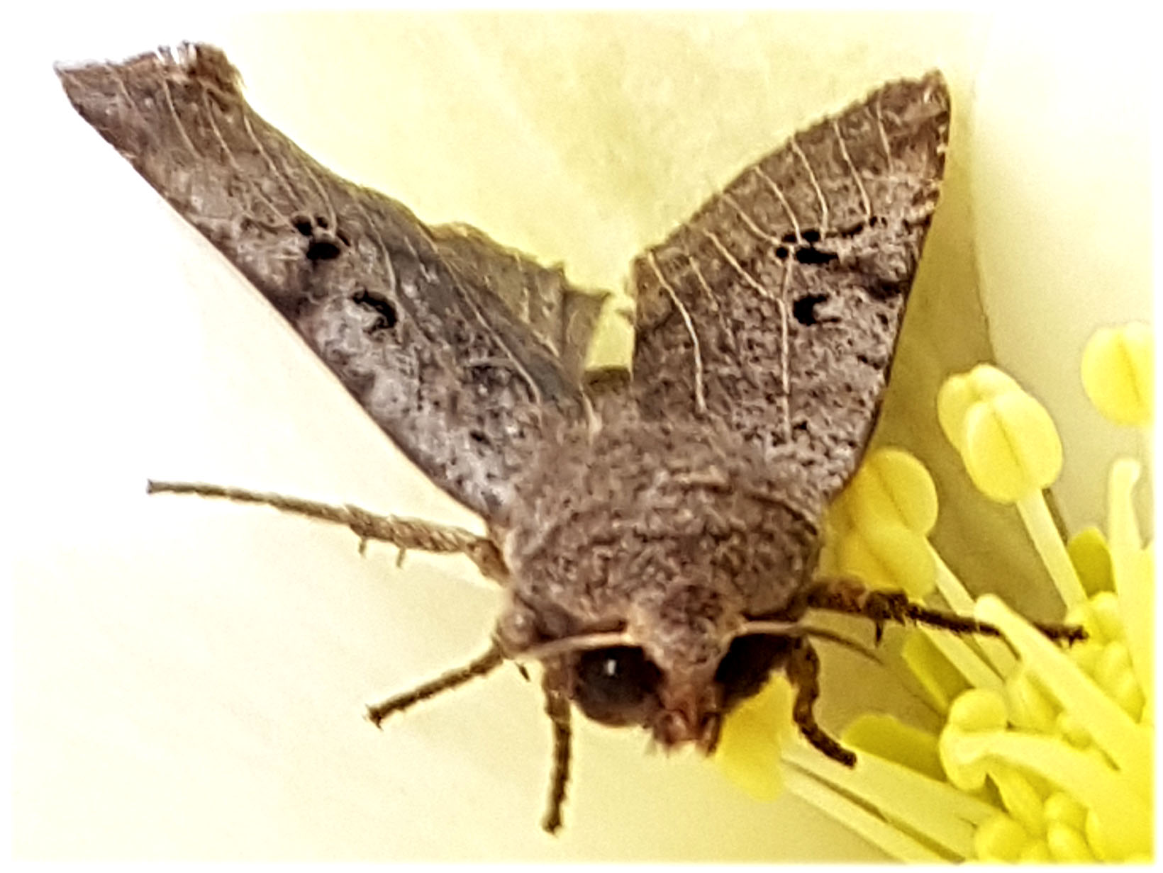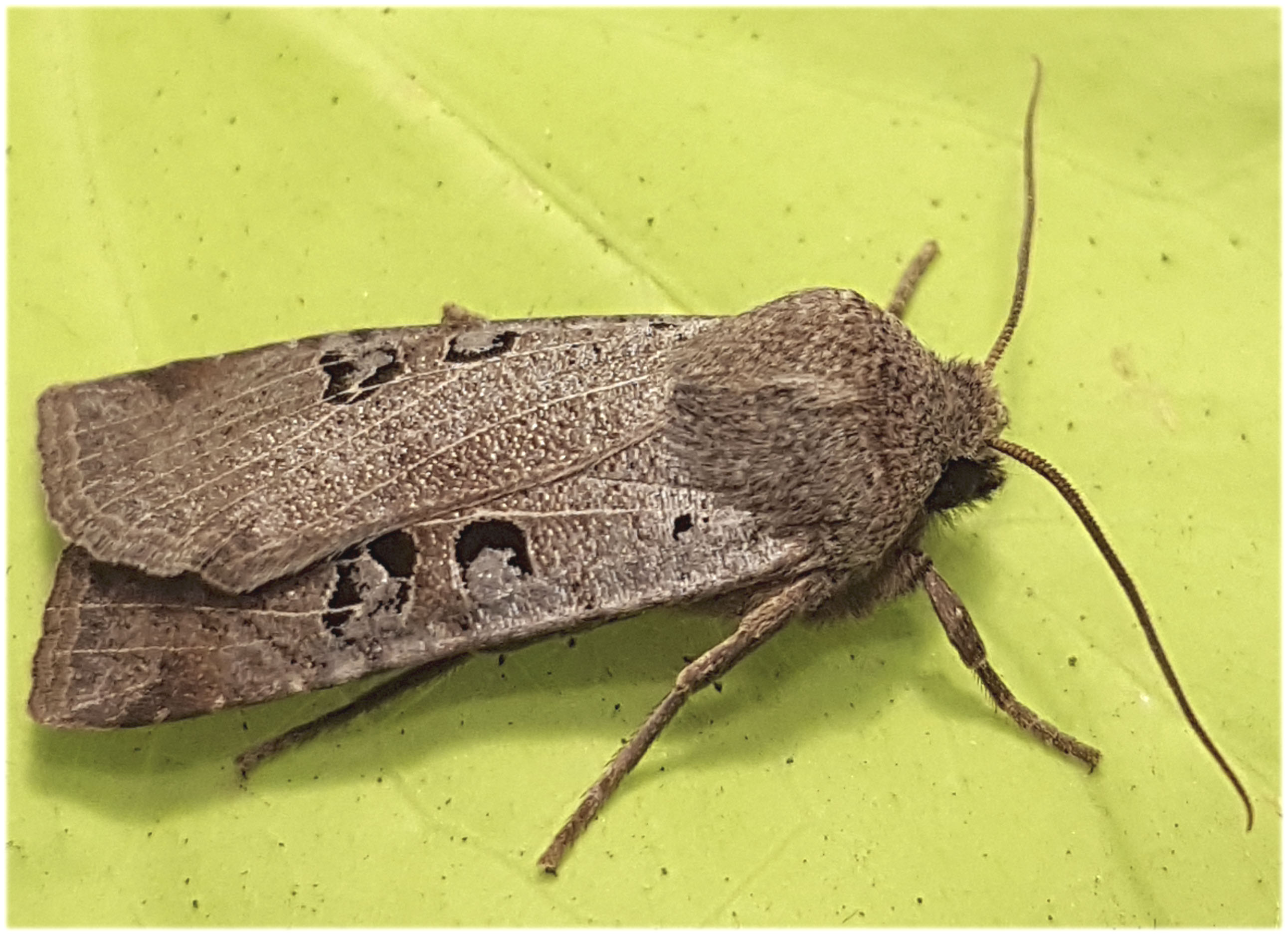 Schwarzgefleckte Wintereule, Conistra rubiginosa, Ablichtung auf Hausterrasse, Leipzig-Gohlis-Mitte, 06. März 2024