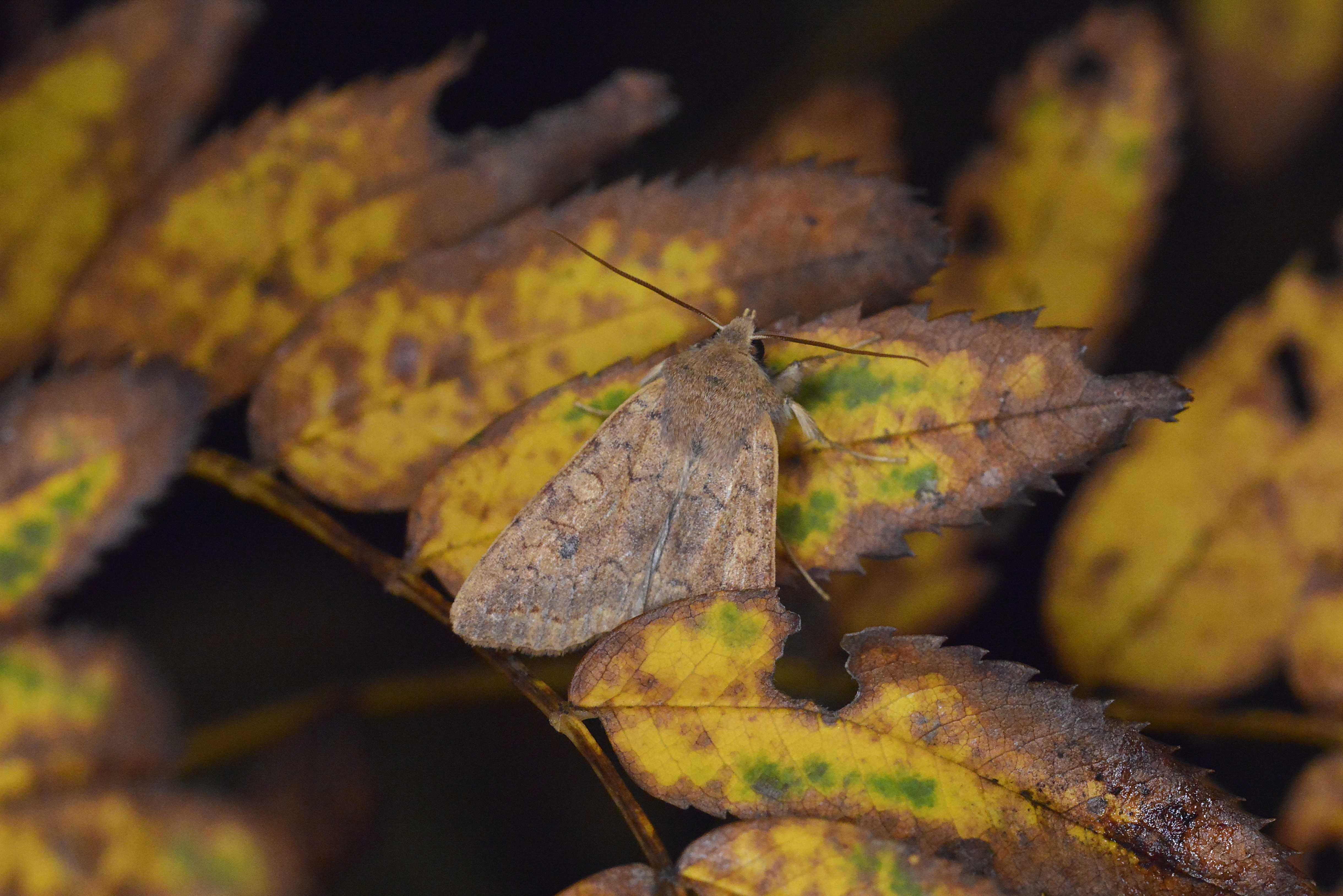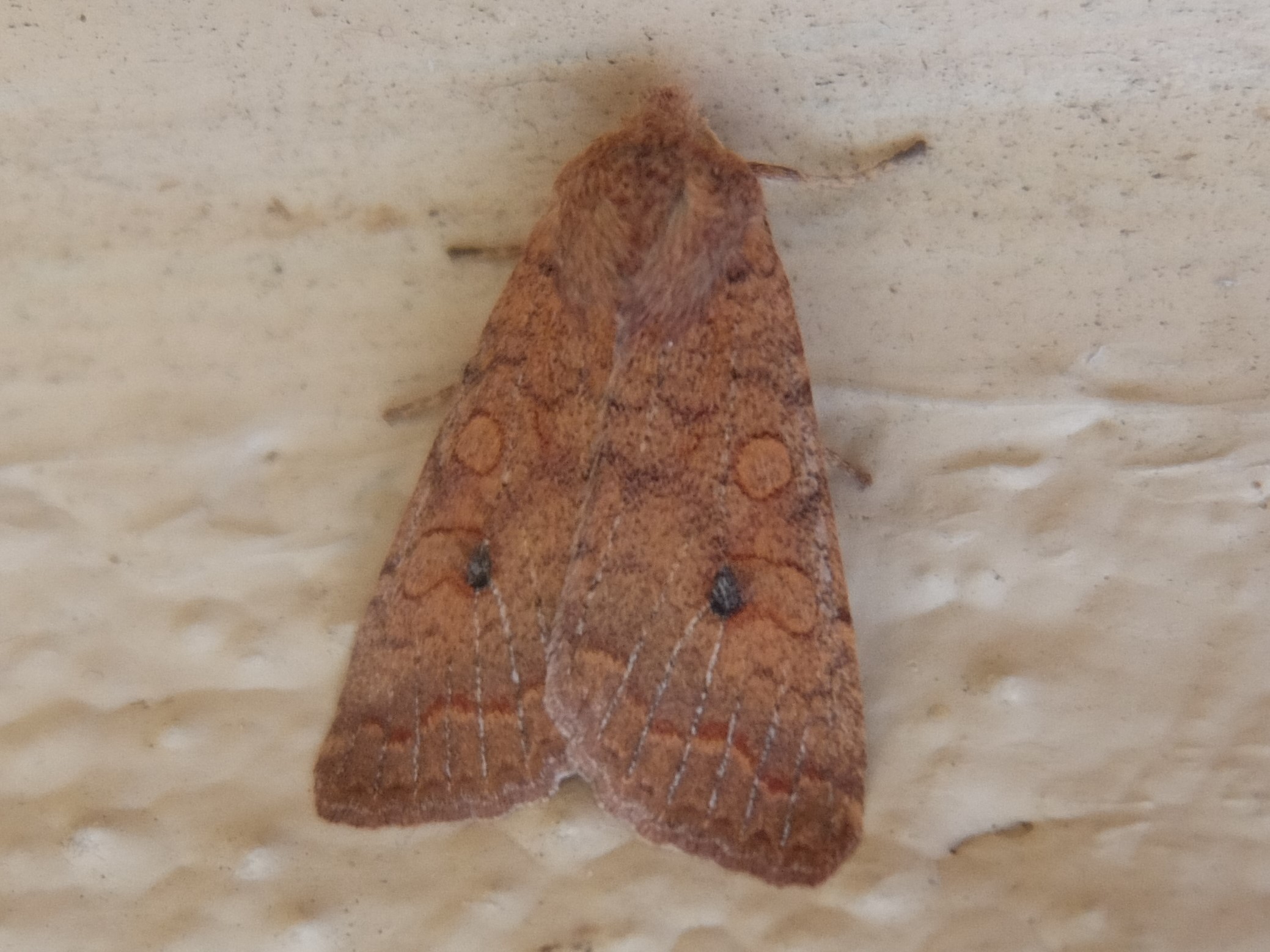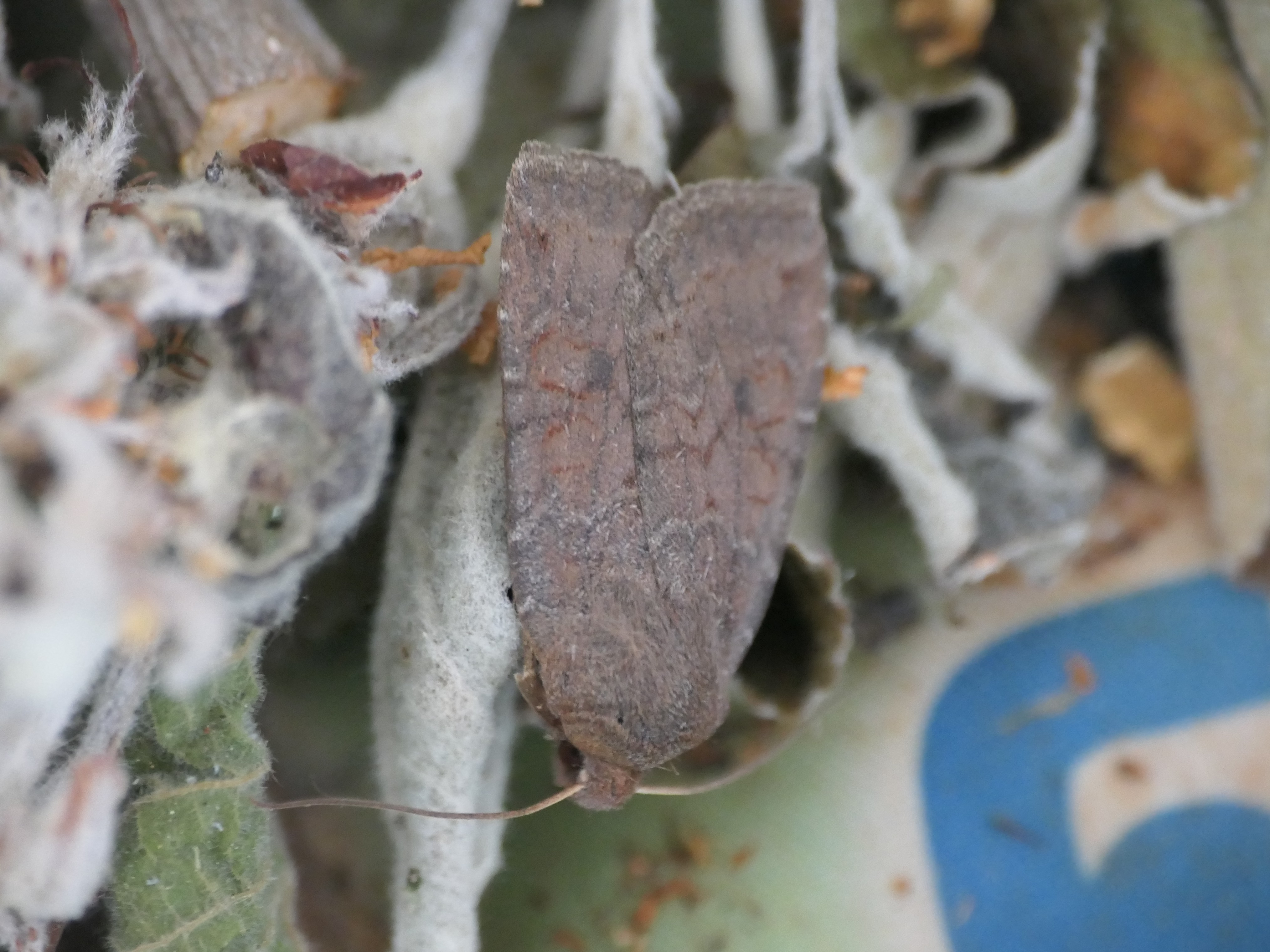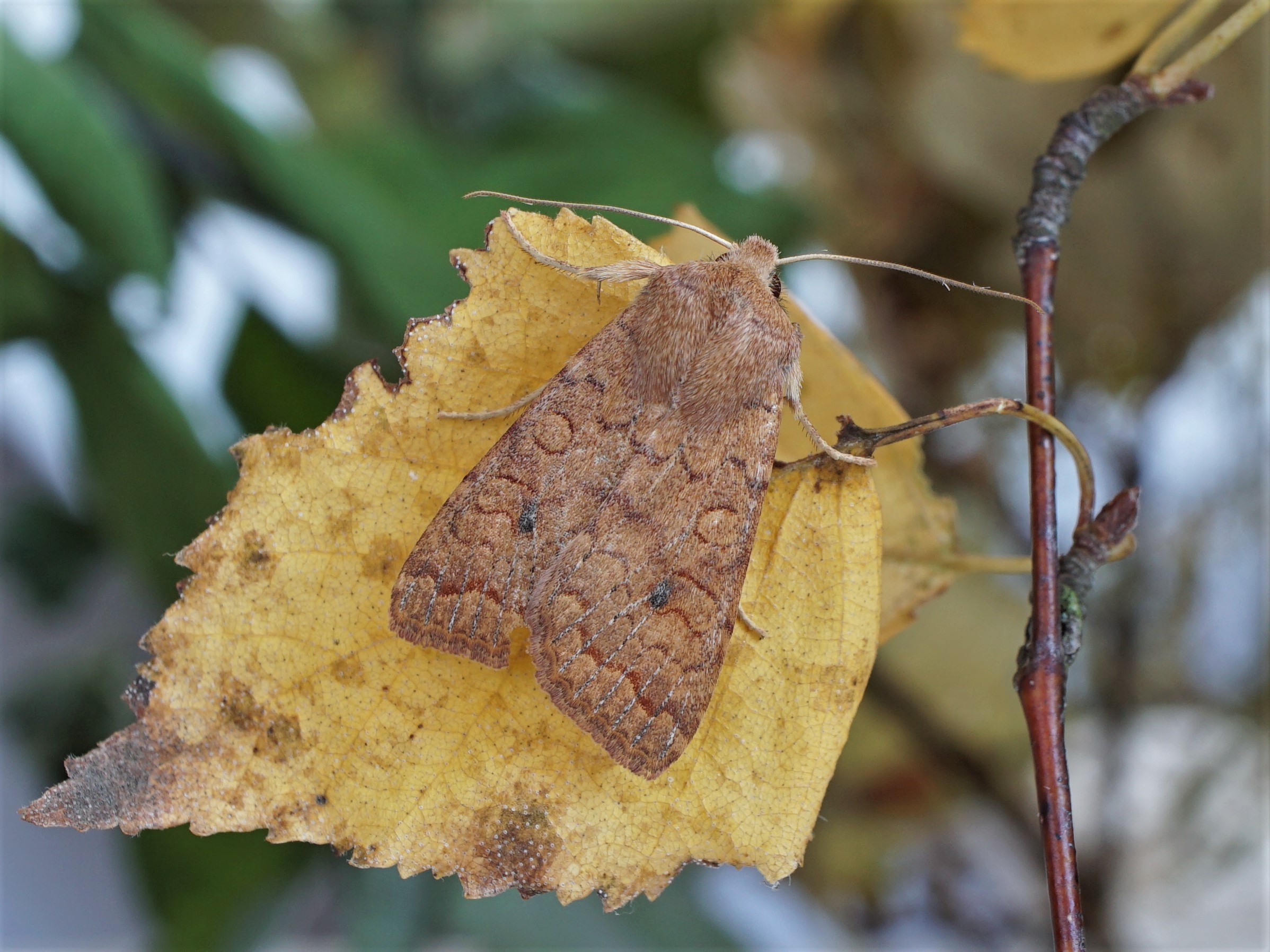 Ulmen-Herbsteule (Agrochola circellaris (Hufnagel, 1766)), Chemnitz Zeisigwald-Planitzwiese, am Gebäude, 17.10.2018, sitzt ca. 6 Tage Ortstreu am Gebäude