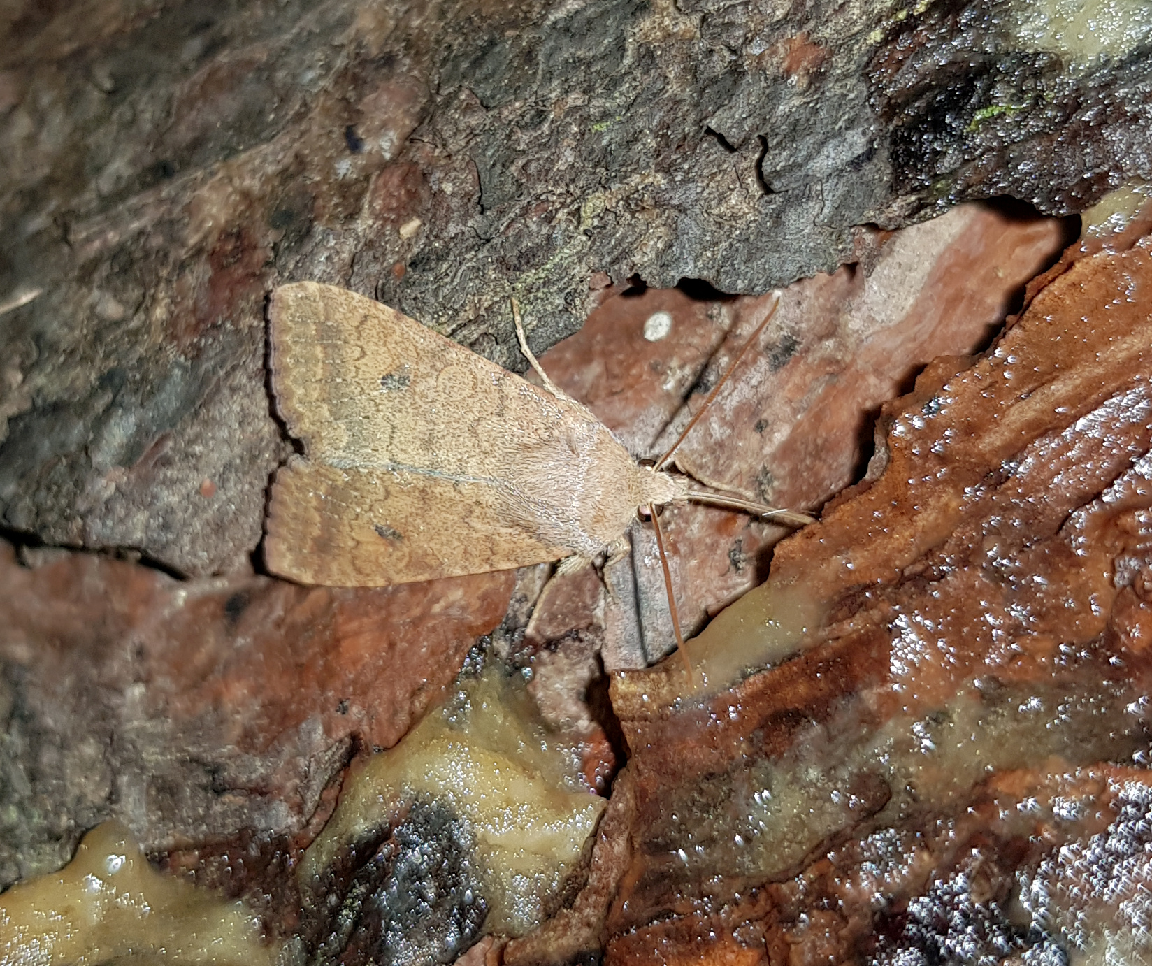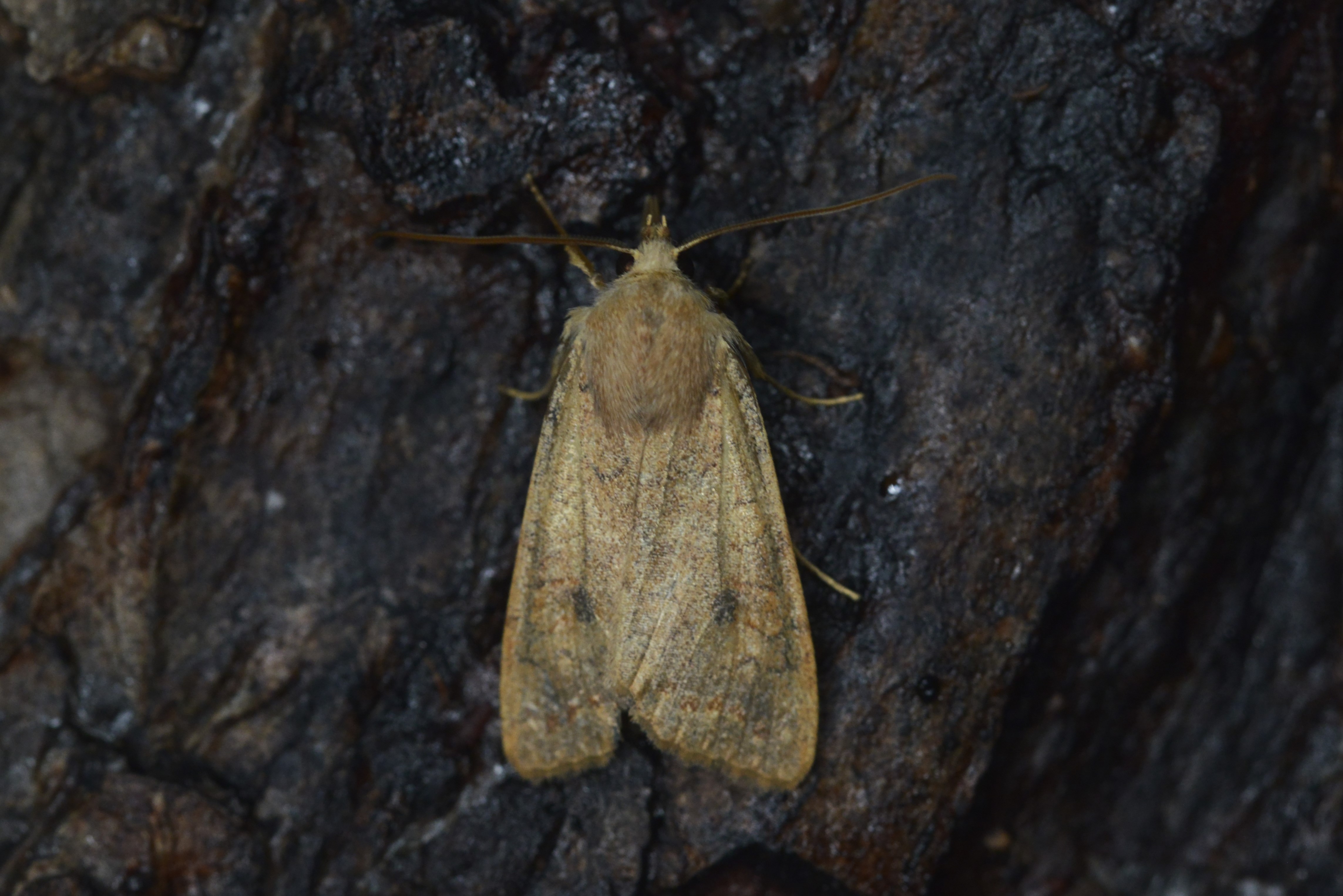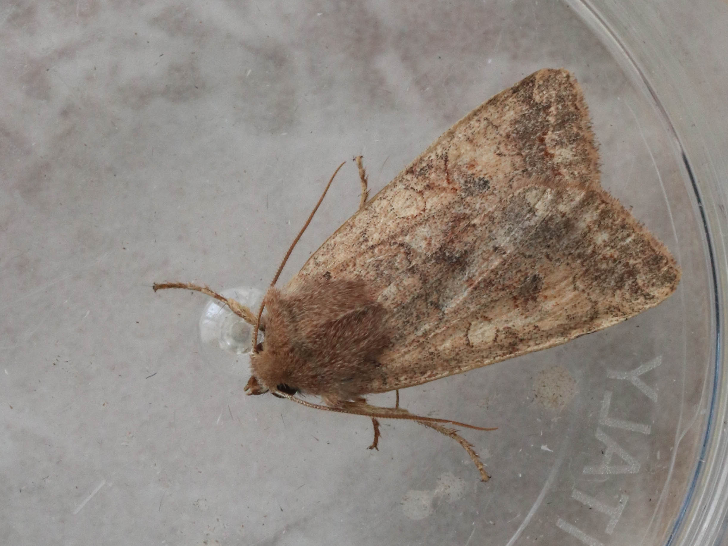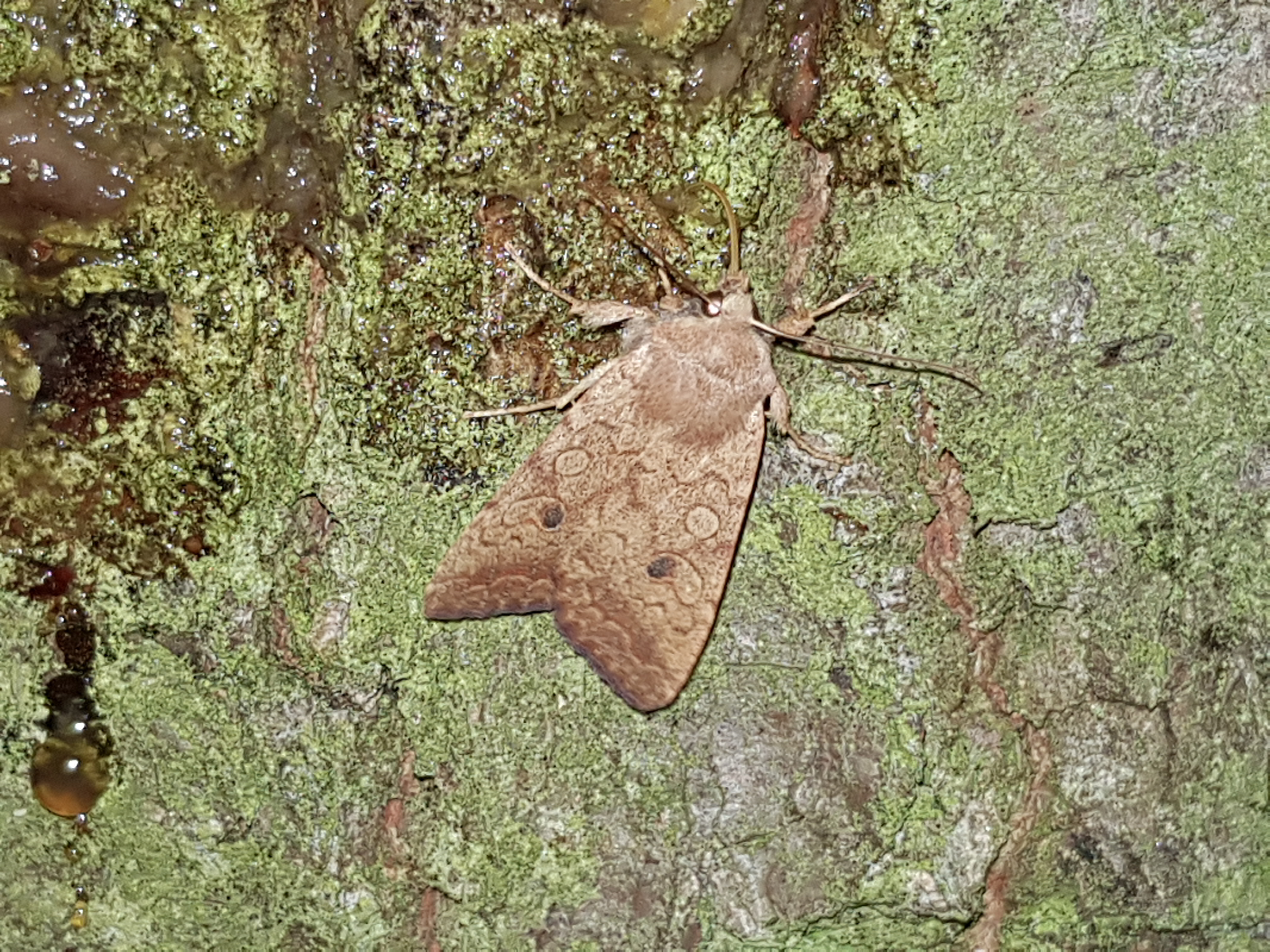 Ulmen-Herbsteule (Agrochola circellaris (Hufnagel, 1766)), Chemnitz Zeisigwald-Planitzwiese, am Gebäude, 17.10.2018, sitzt ca. 6 Tage Ortstreu am Gebäude