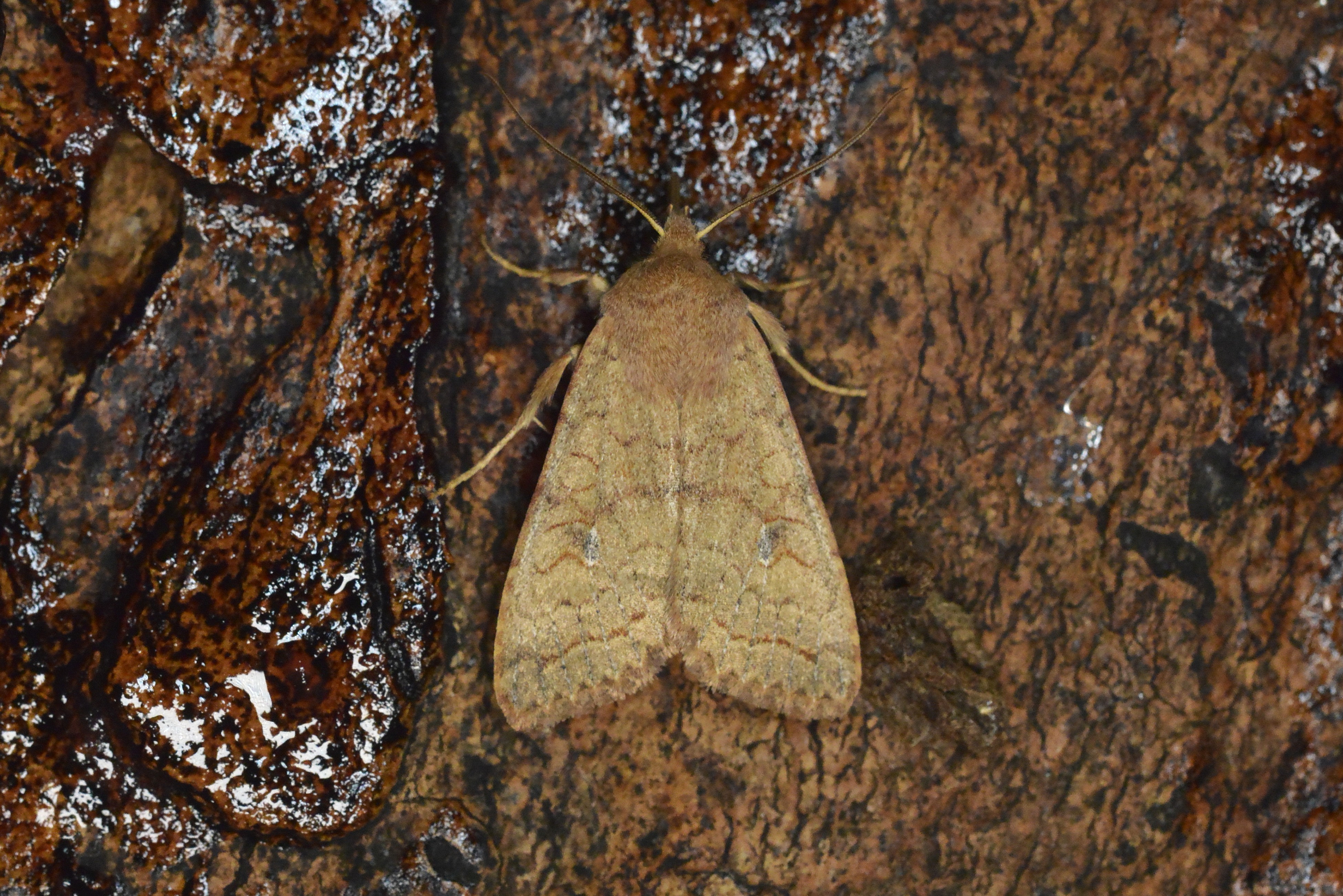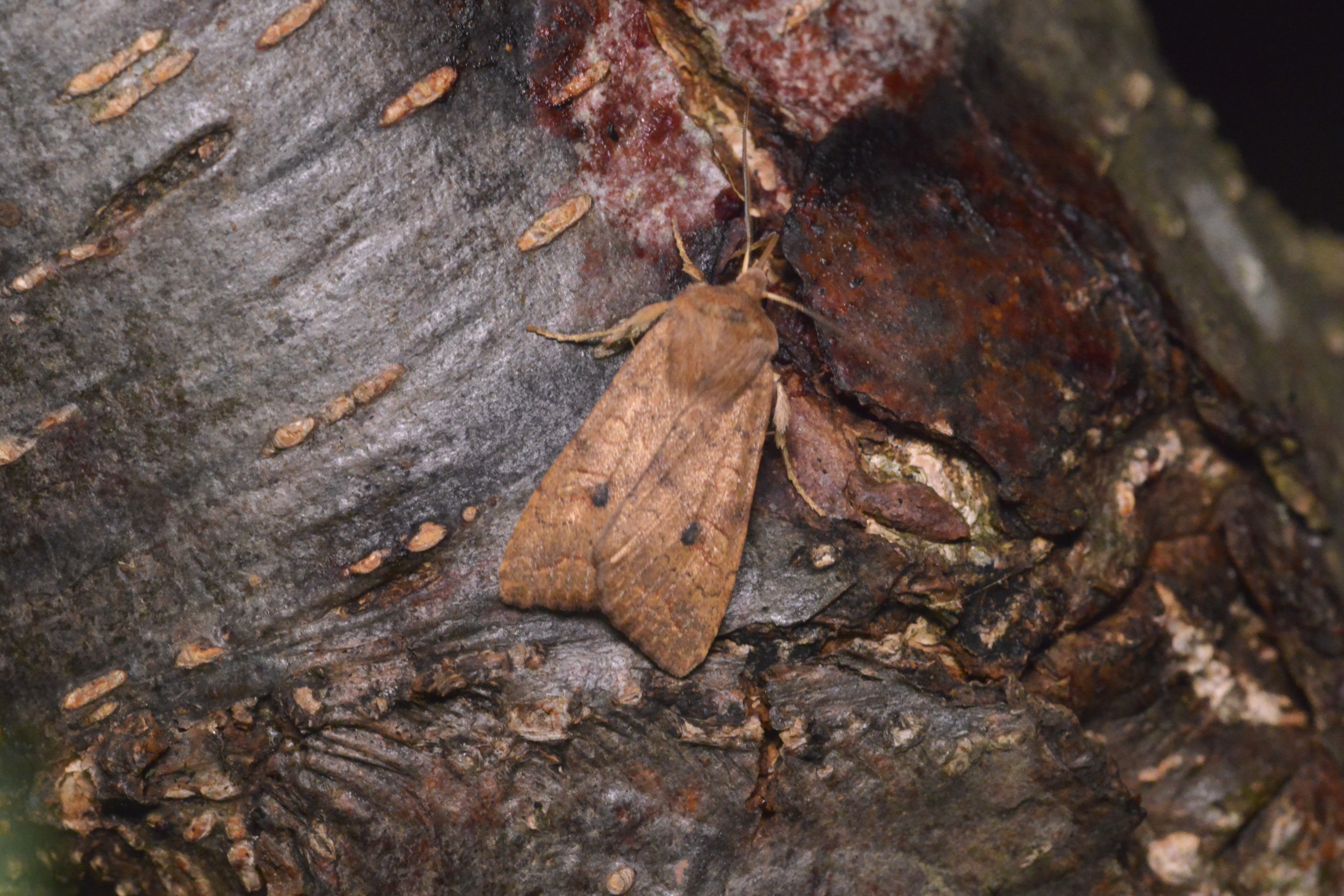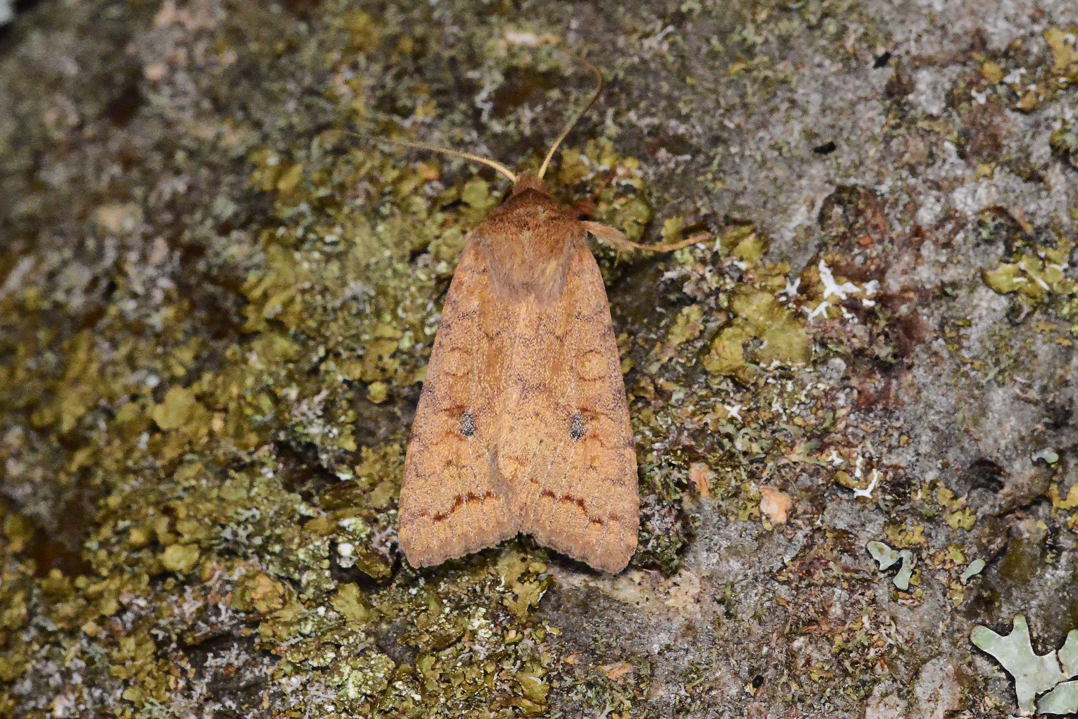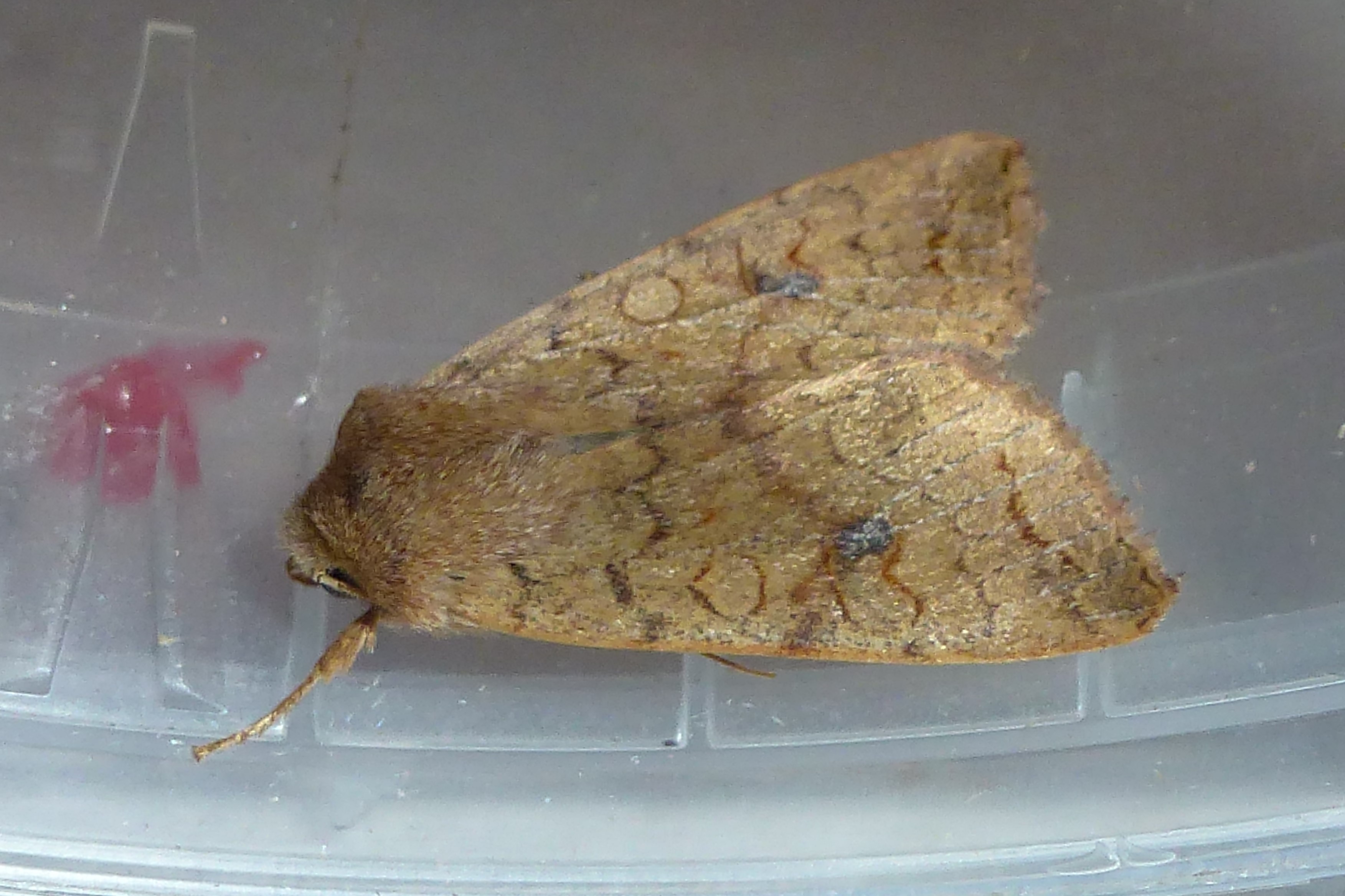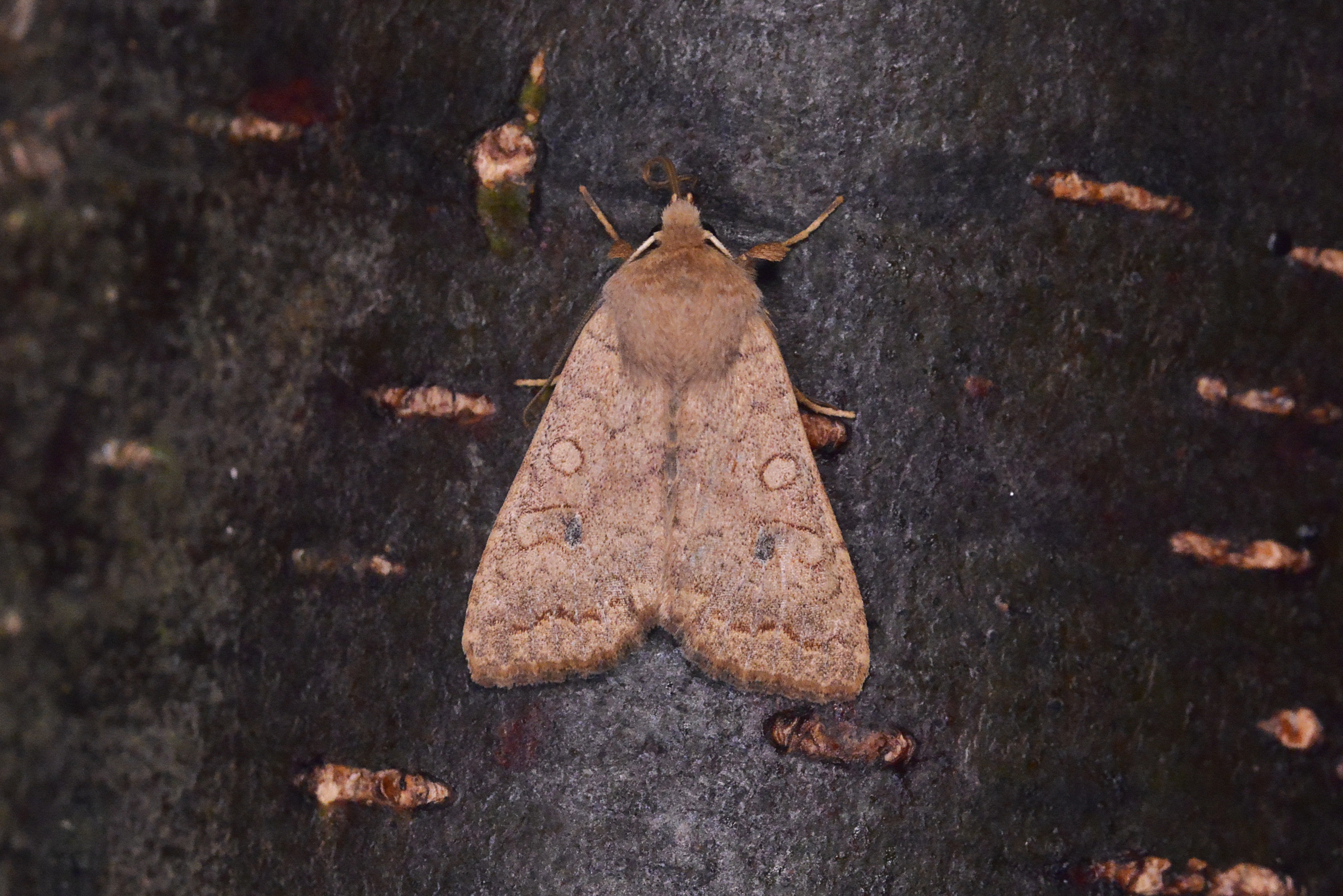 Ulmen-Herbsteule (Agrochola circellaris (Hufnagel, 1766)), Chemnitz Zeisigwald-Planitzwiese, am Gebäude, 17.10.2018, sitzt ca. 6 Tage Ortstreu am Gebäude (© Lutz Böttger )( Bild vergrößern)
