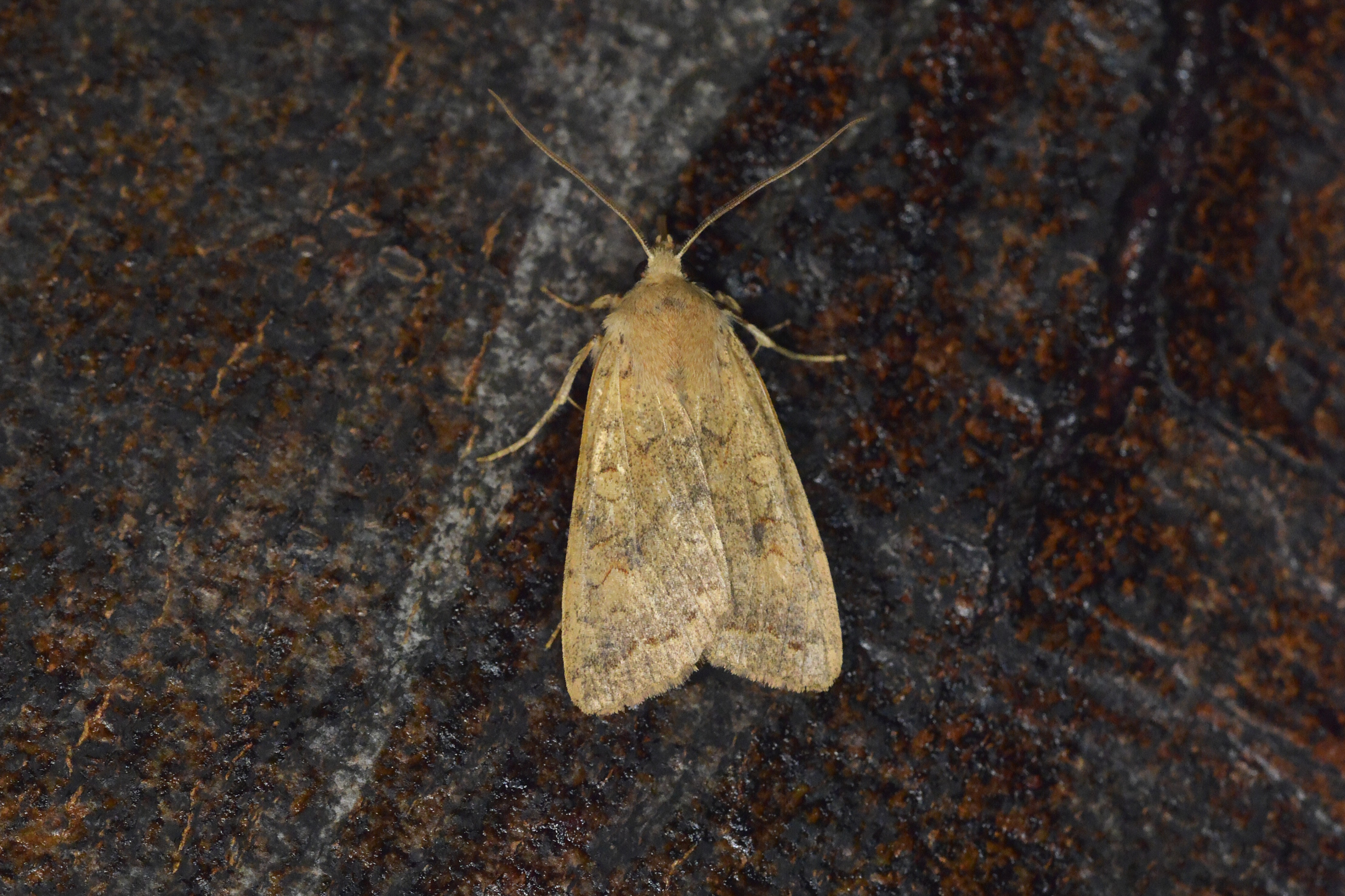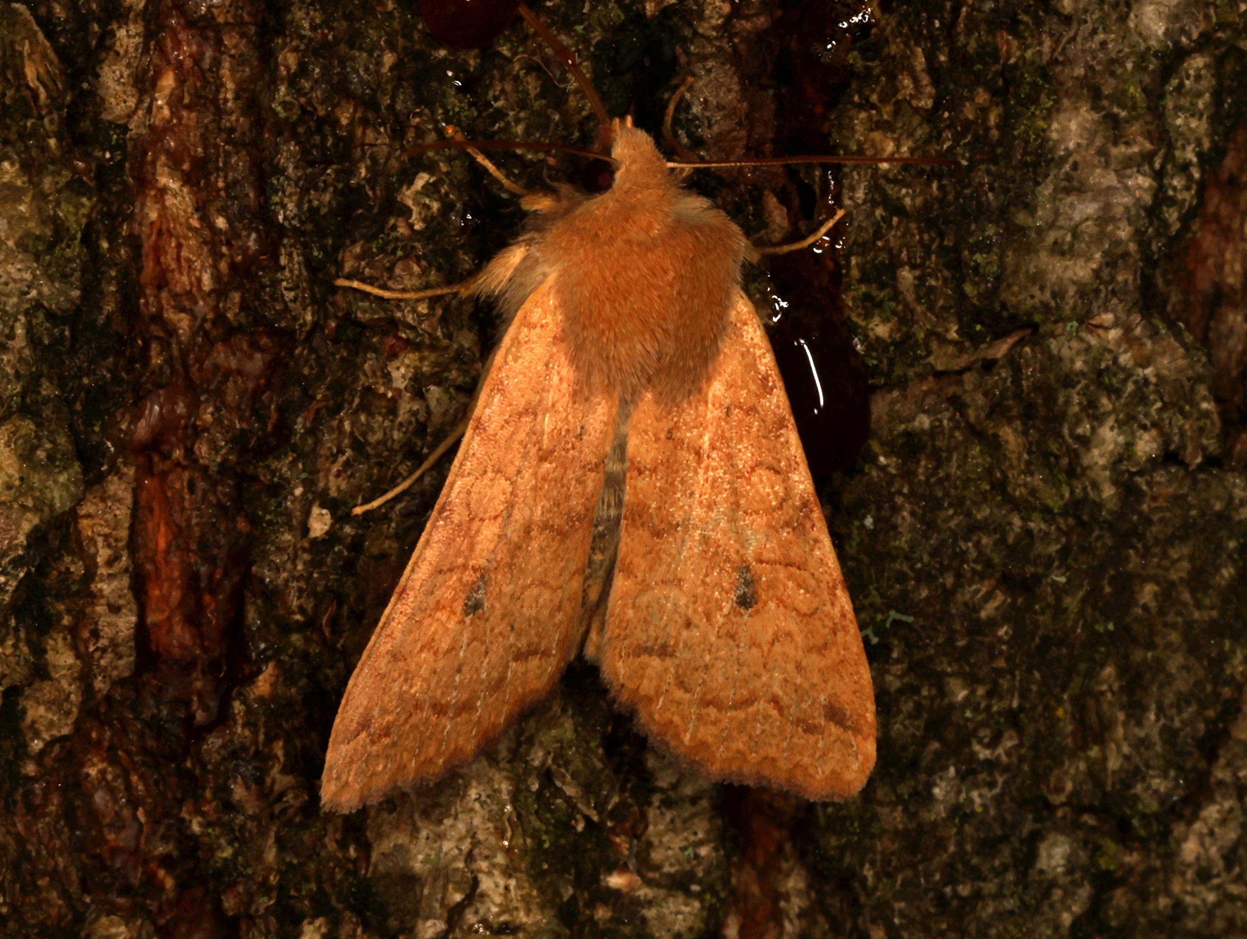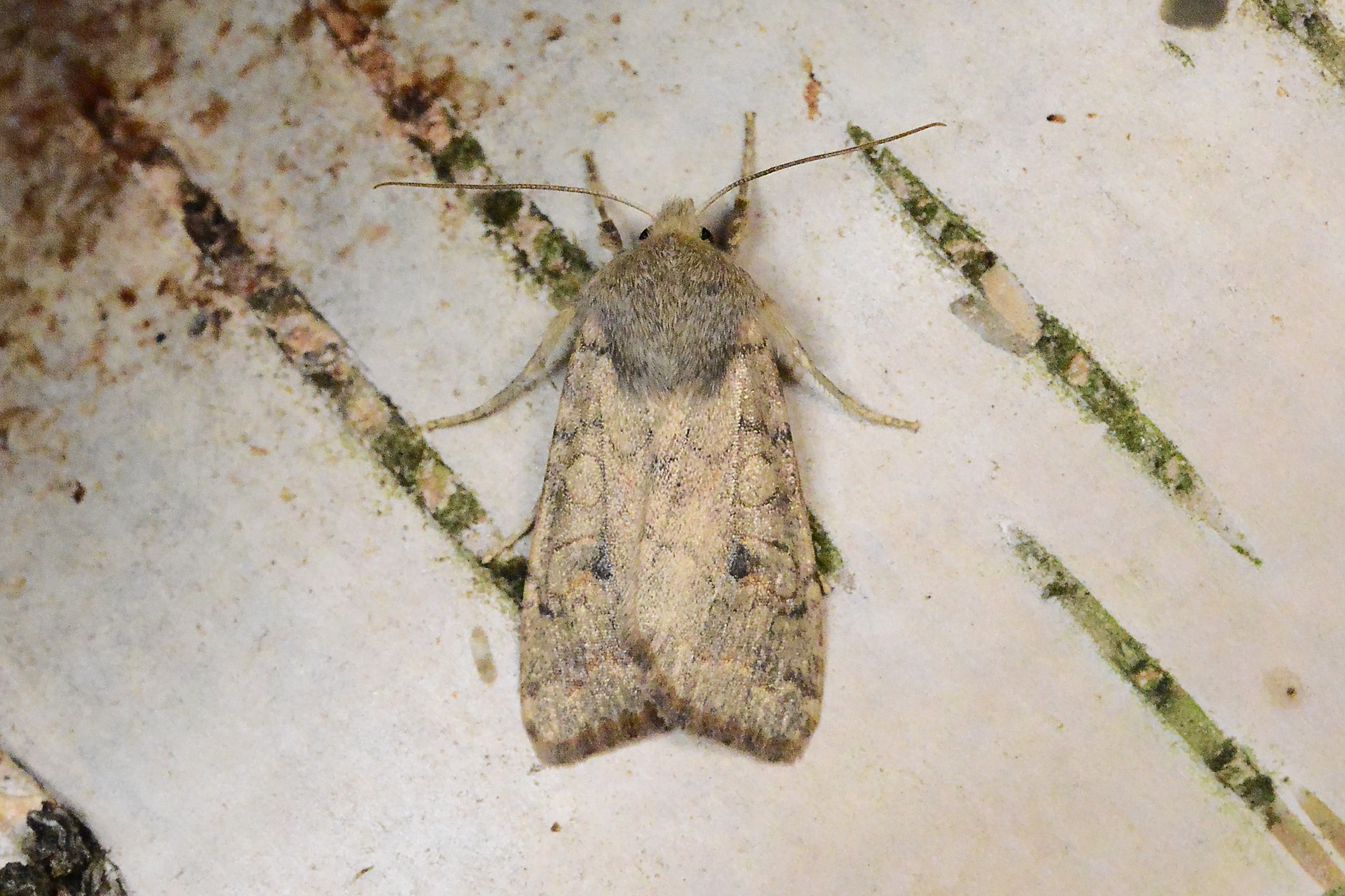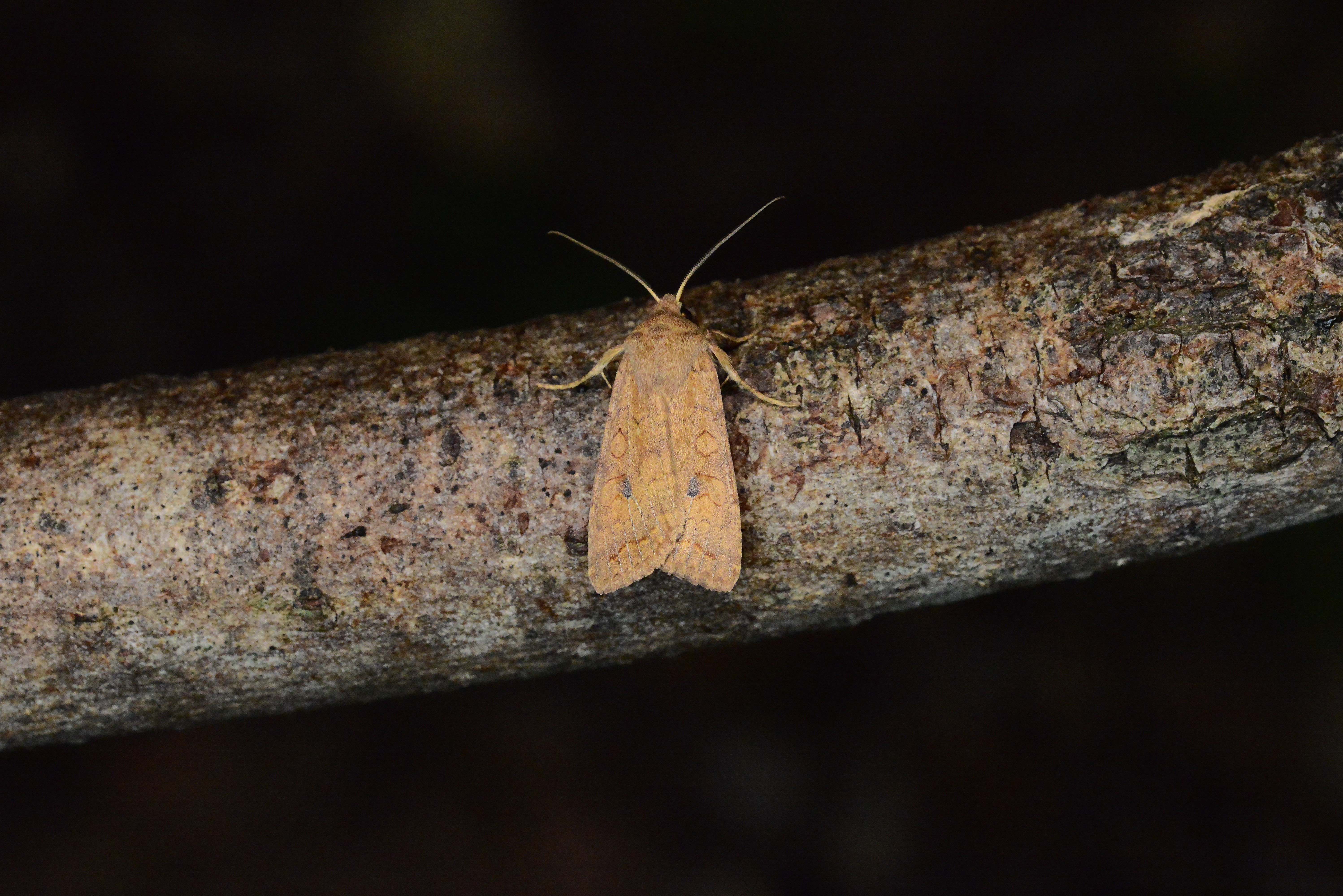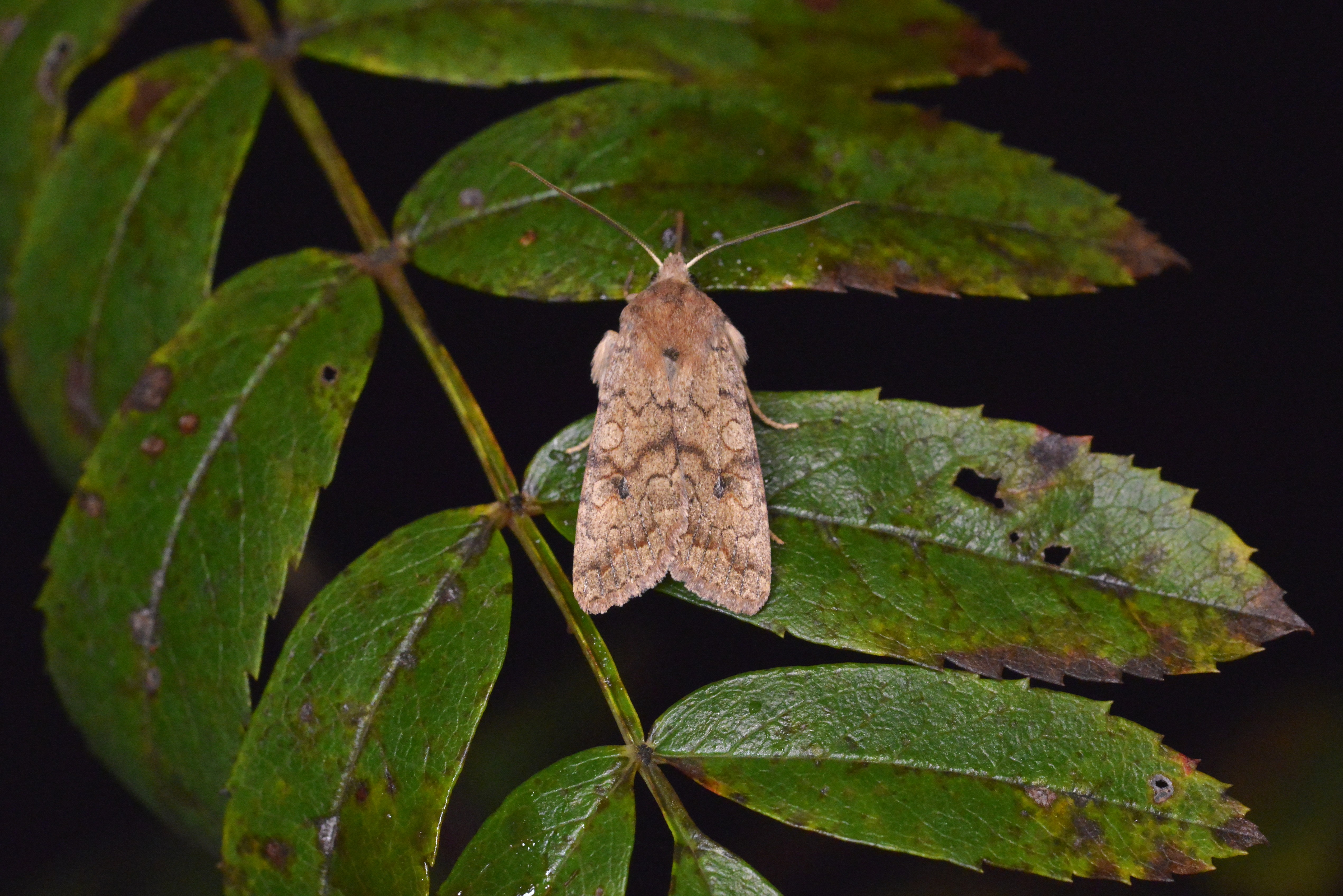 Ulmen-Herbsteule (Agrochola circellaris (Hufnagel, 1766)), Chemnitz Zeisigwald-Planitzwiese, am Gebäude, 17.10.2018, sitzt ca. 6 Tage Ortstreu am Gebäude (© Lutz Böttger )( Bild vergrößern)