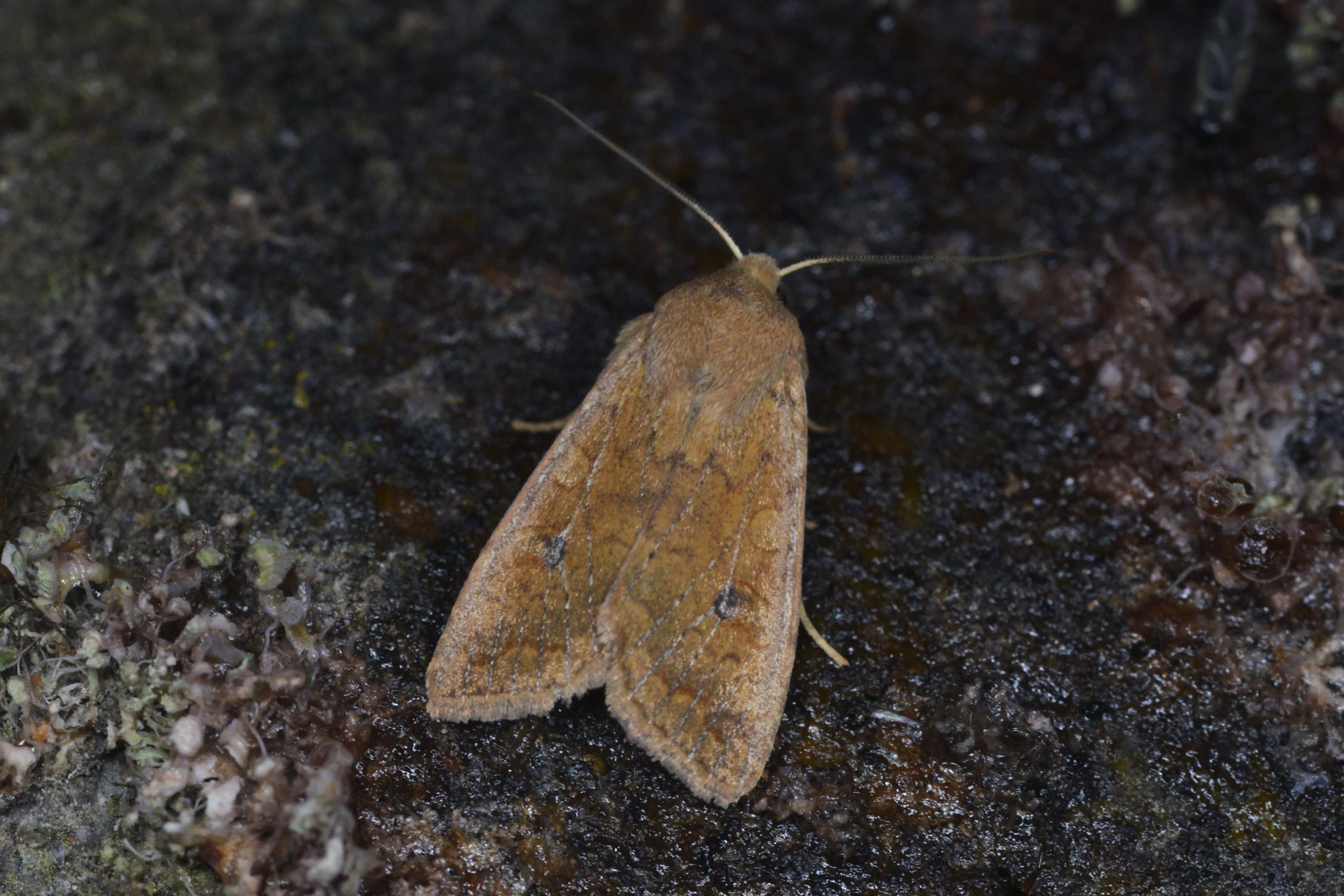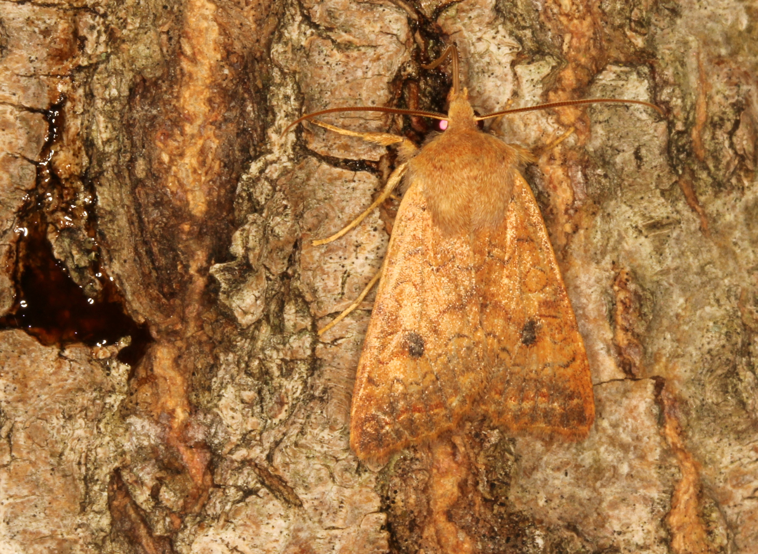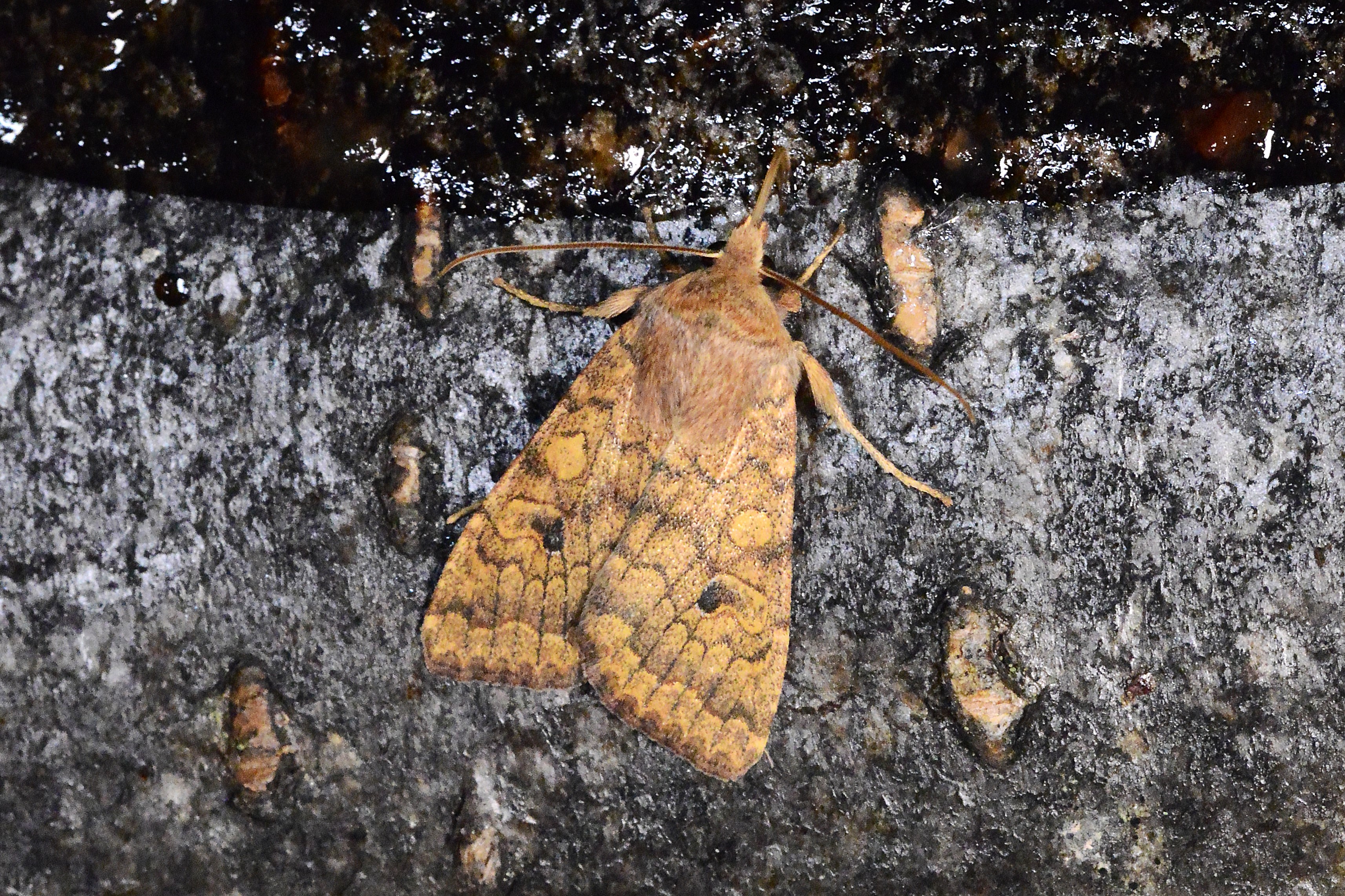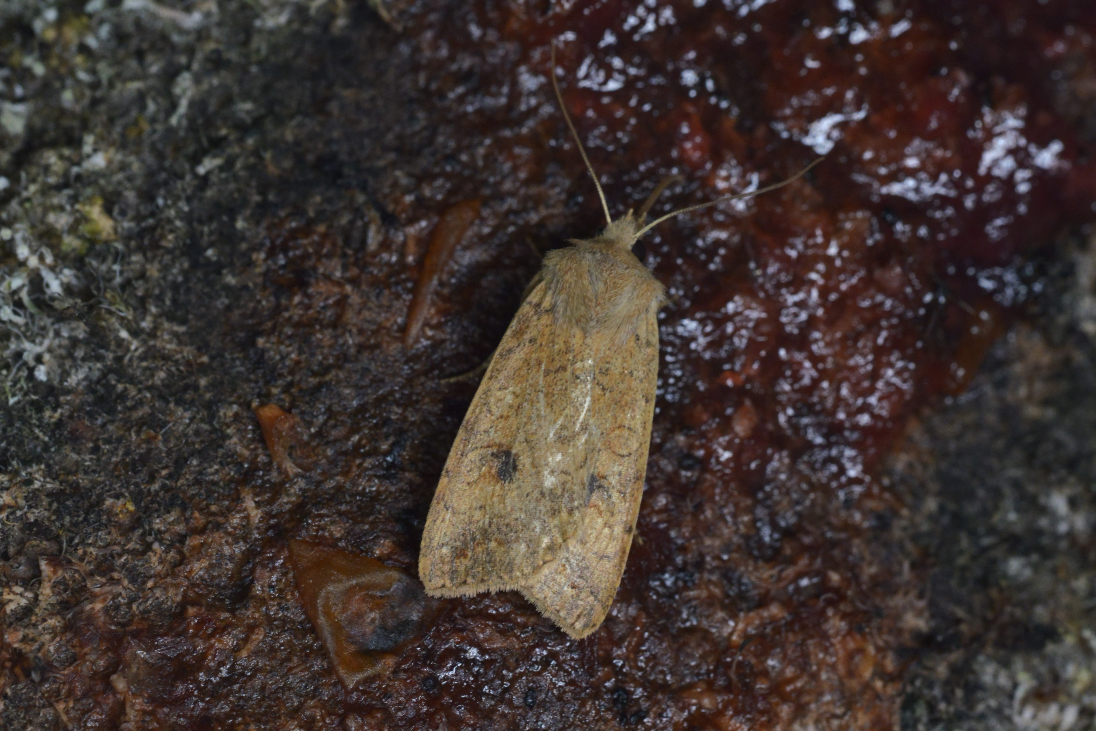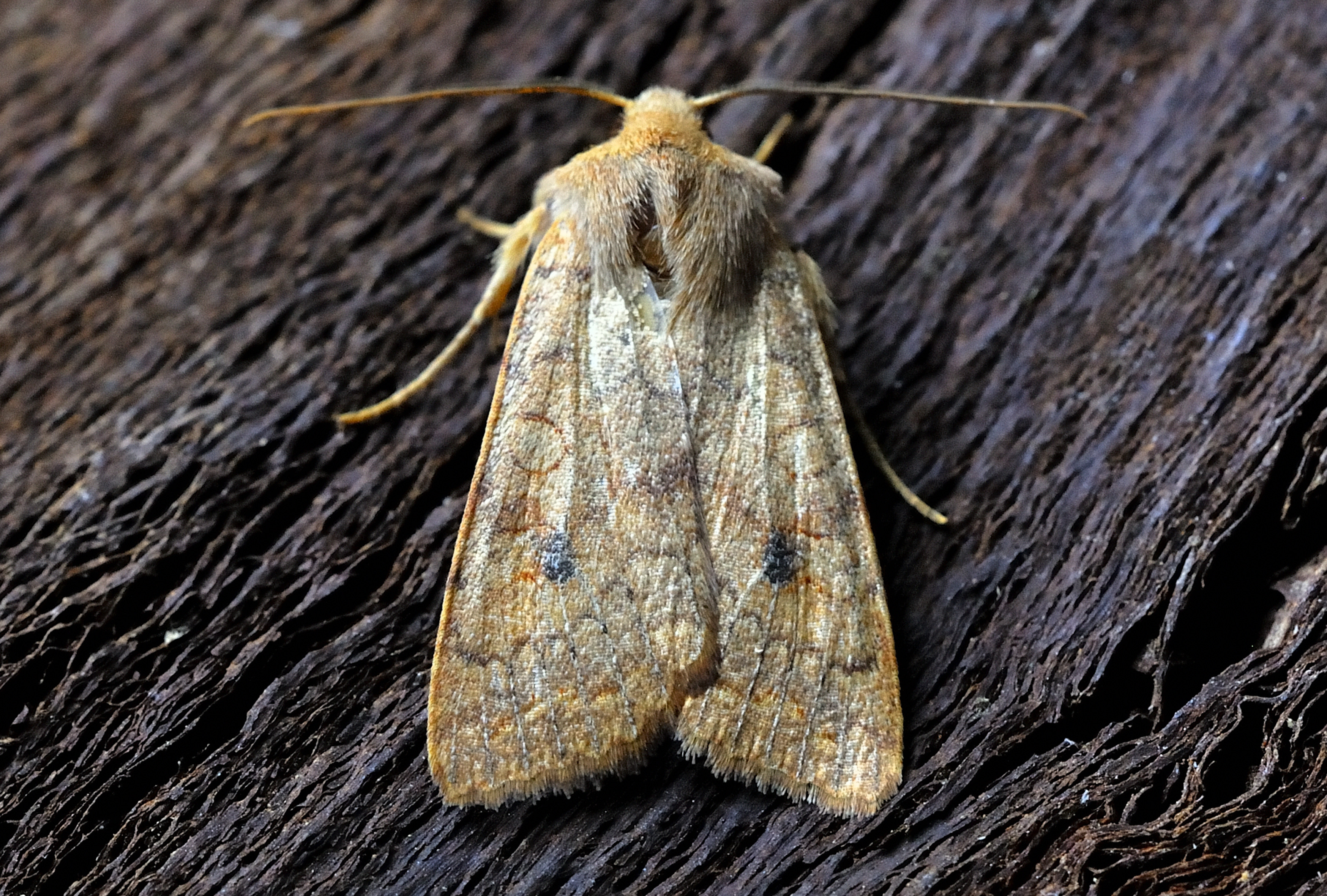 Ulmen-Herbsteule (Agrochola circellaris (Hufnagel, 1766)), Chemnitz Zeisigwald-Planitzwiese, am Gebäude, 17.10.2018, sitzt ca. 6 Tage Ortstreu am Gebäude (© Lutz Böttger )( Bild vergrößern)