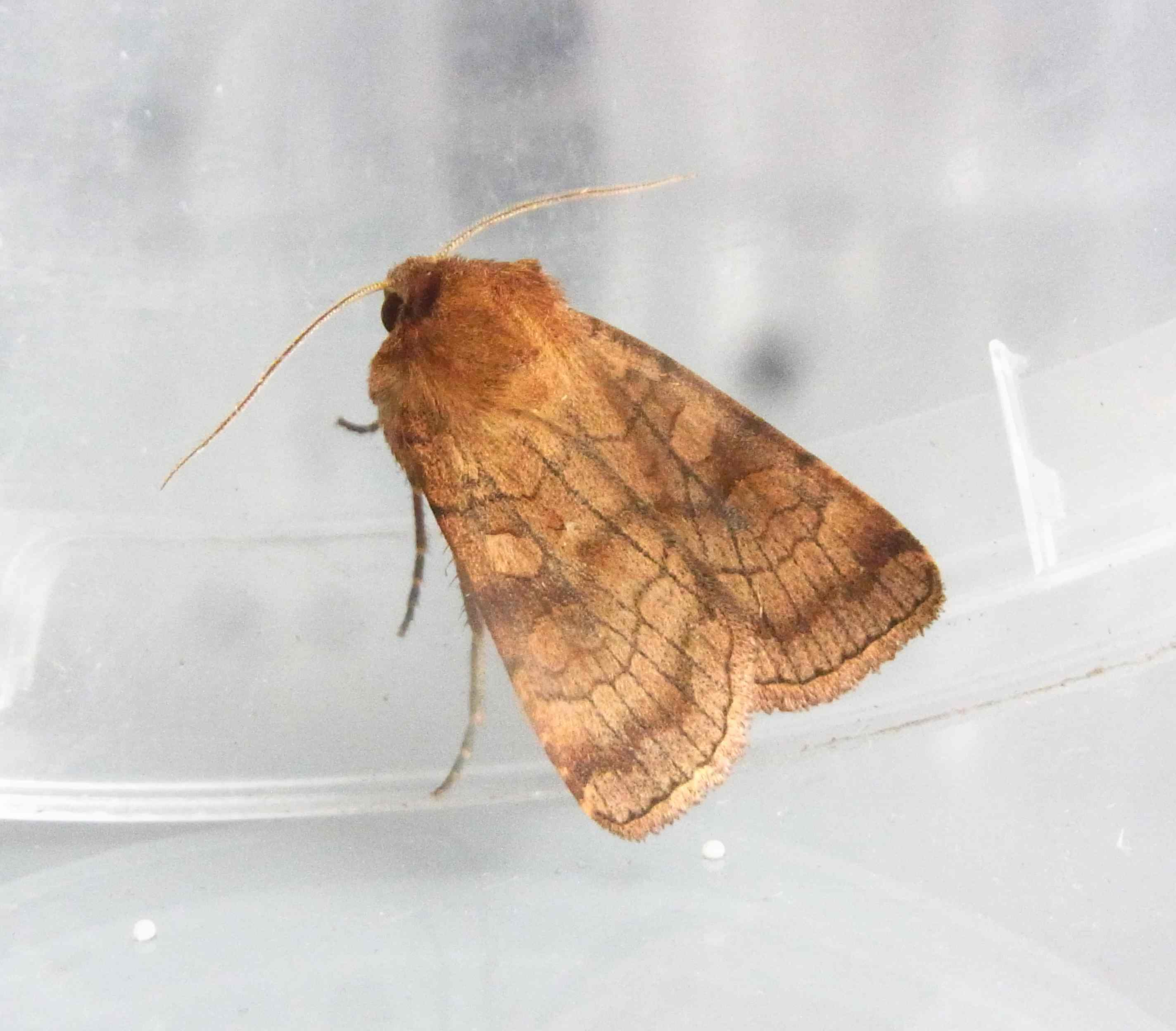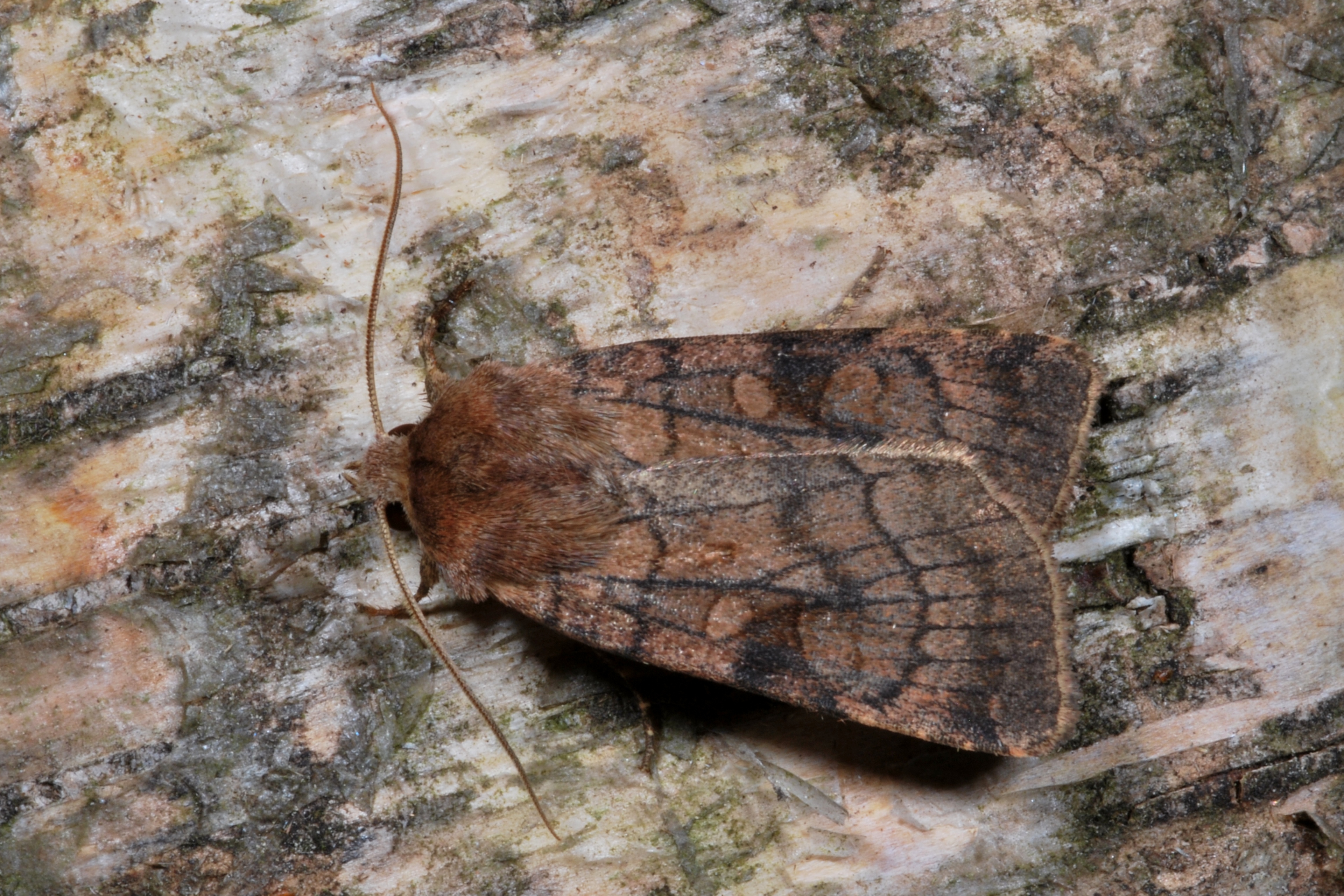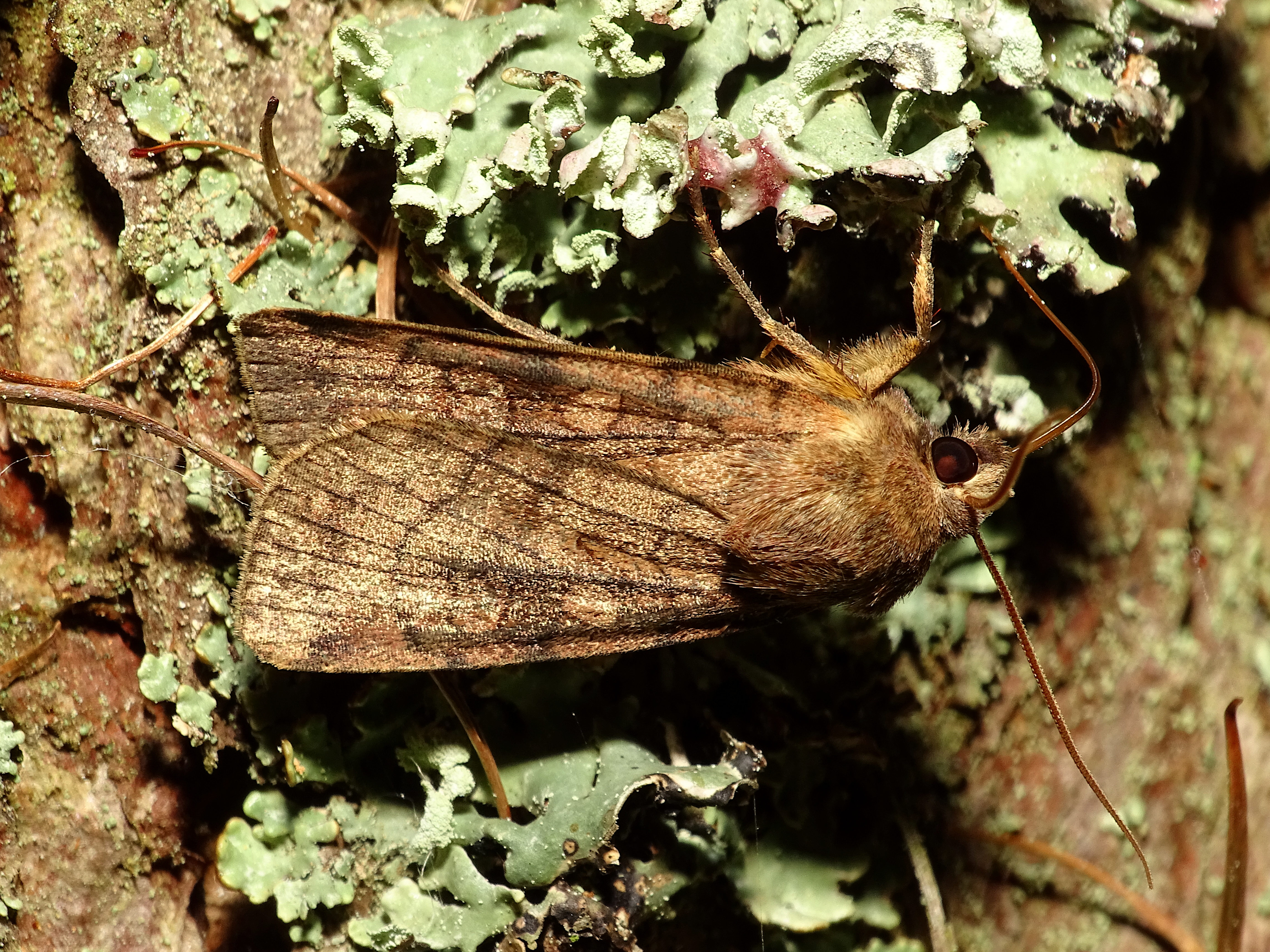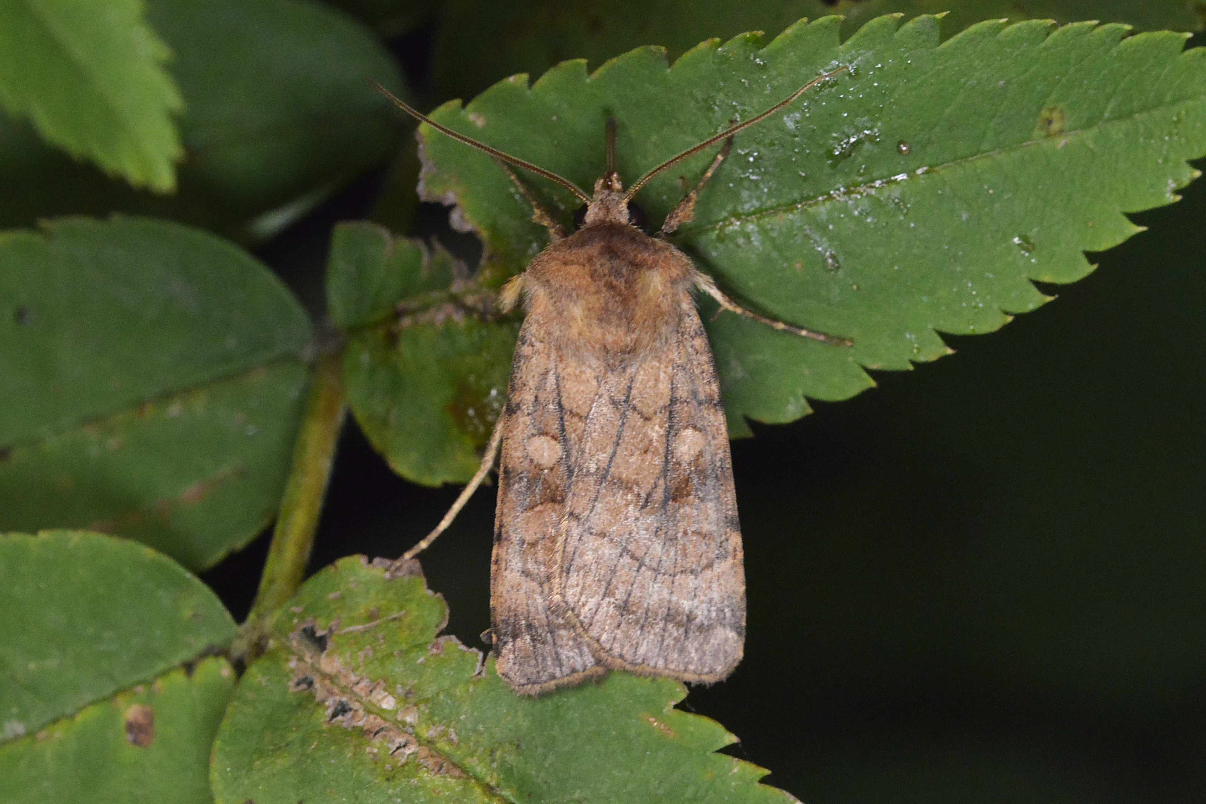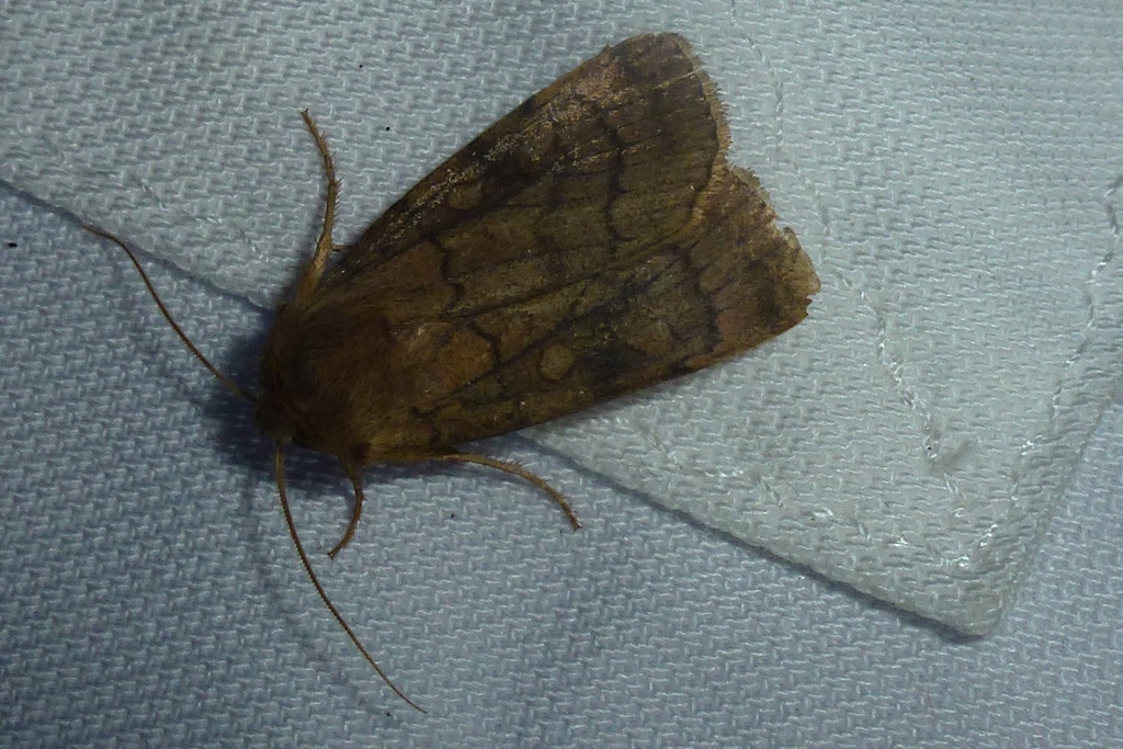 Sechslinien-Bodeneule (Xestia sexstrigata (Haworth, 1809)), Chemnitz Kappel Kirchwiese, 11.8.2018 beim Lichtfang, + 12.8. Fotos beim frei lassen, Falter saß in beiden Fällen unter als 80cm über dem Boden