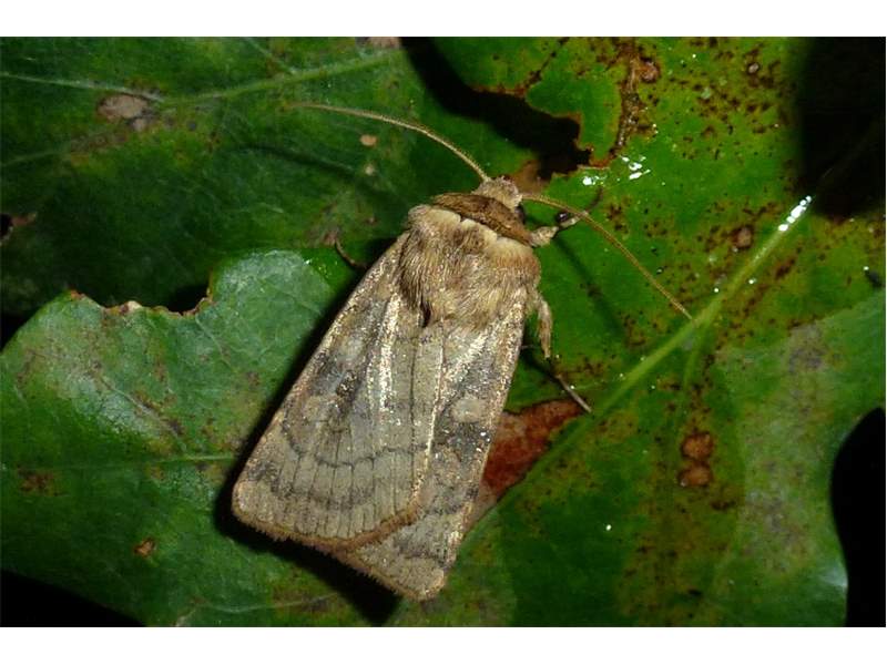 Sechslinien-Bodeneule (Xestia sexstrigata (Haworth, 1809)), Chemnitz Kappel Kirchwiese, 11.8.2018 beim Lichtfang, + 12.8. Fotos beim frei lassen, Falter saß in beiden Fällen unter als 80cm über dem Boden (© Lutz Böttger)( Bild vergrößern)