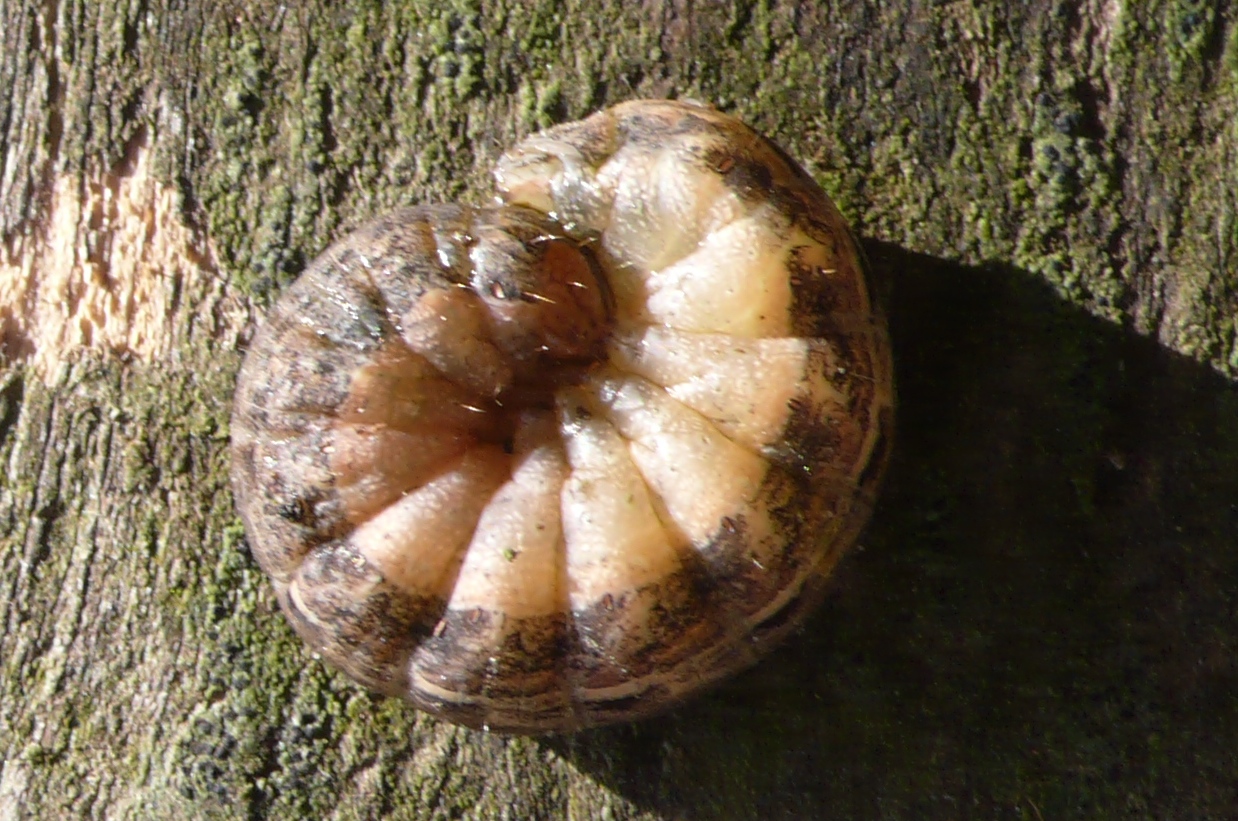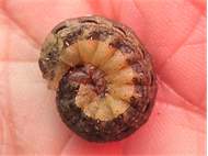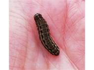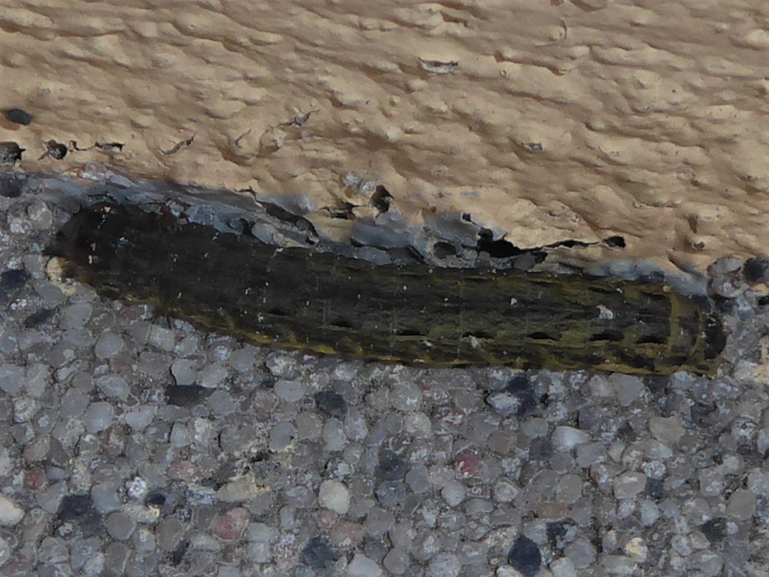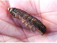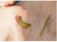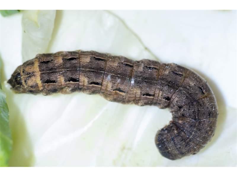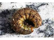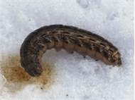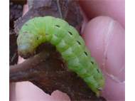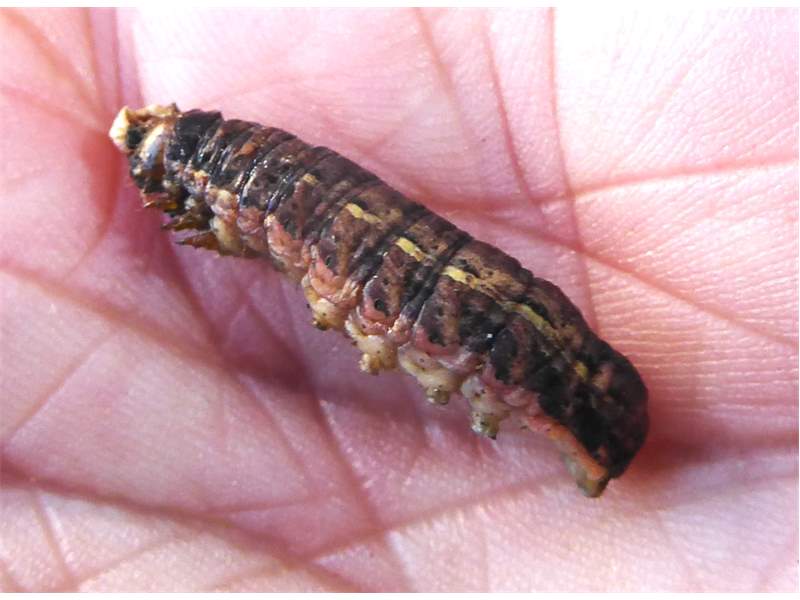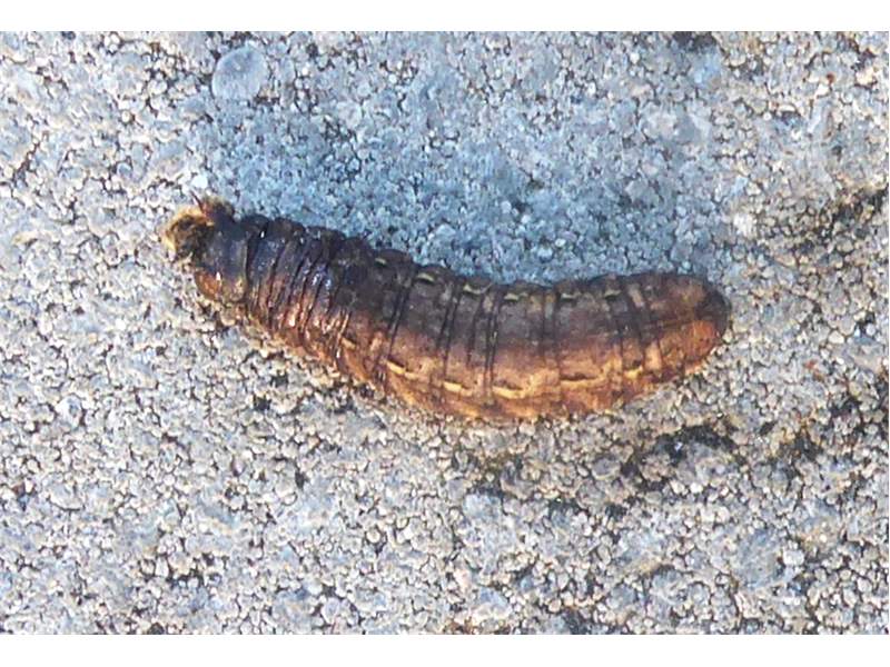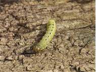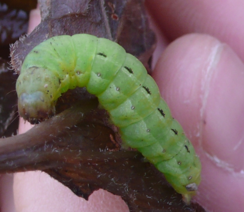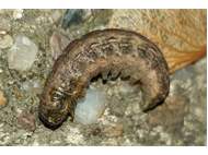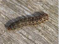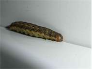 Hausmutter (Noctua pronuba (Linnaeus, 1758)), Larve (grüne Form), die sich frei bewegte, Radeberg, Dezember 2015. (© Udo Lemke)( Bild vergrößern)