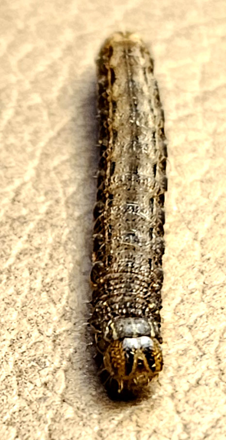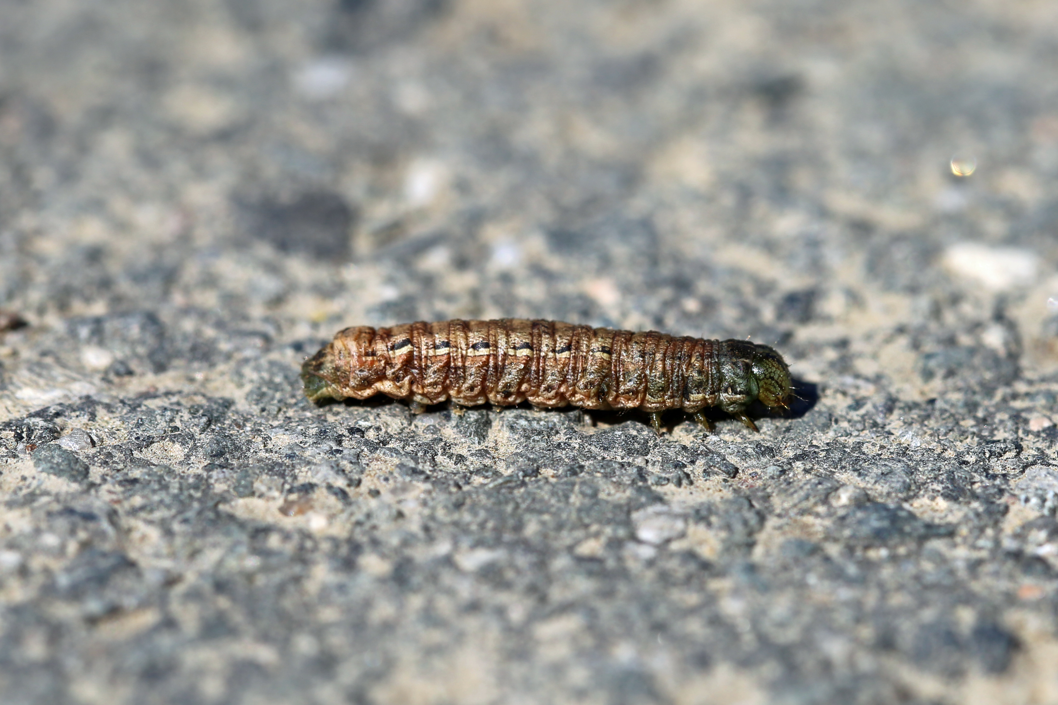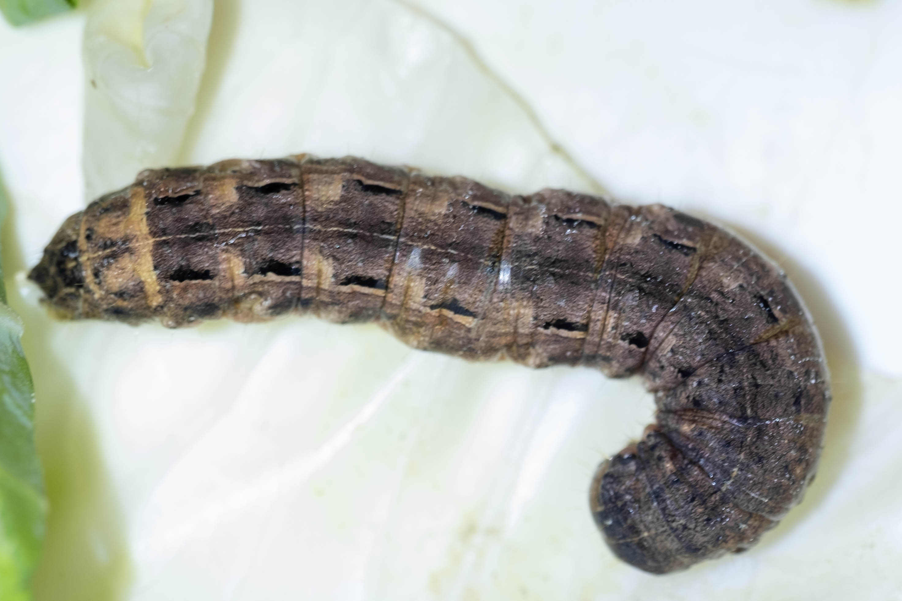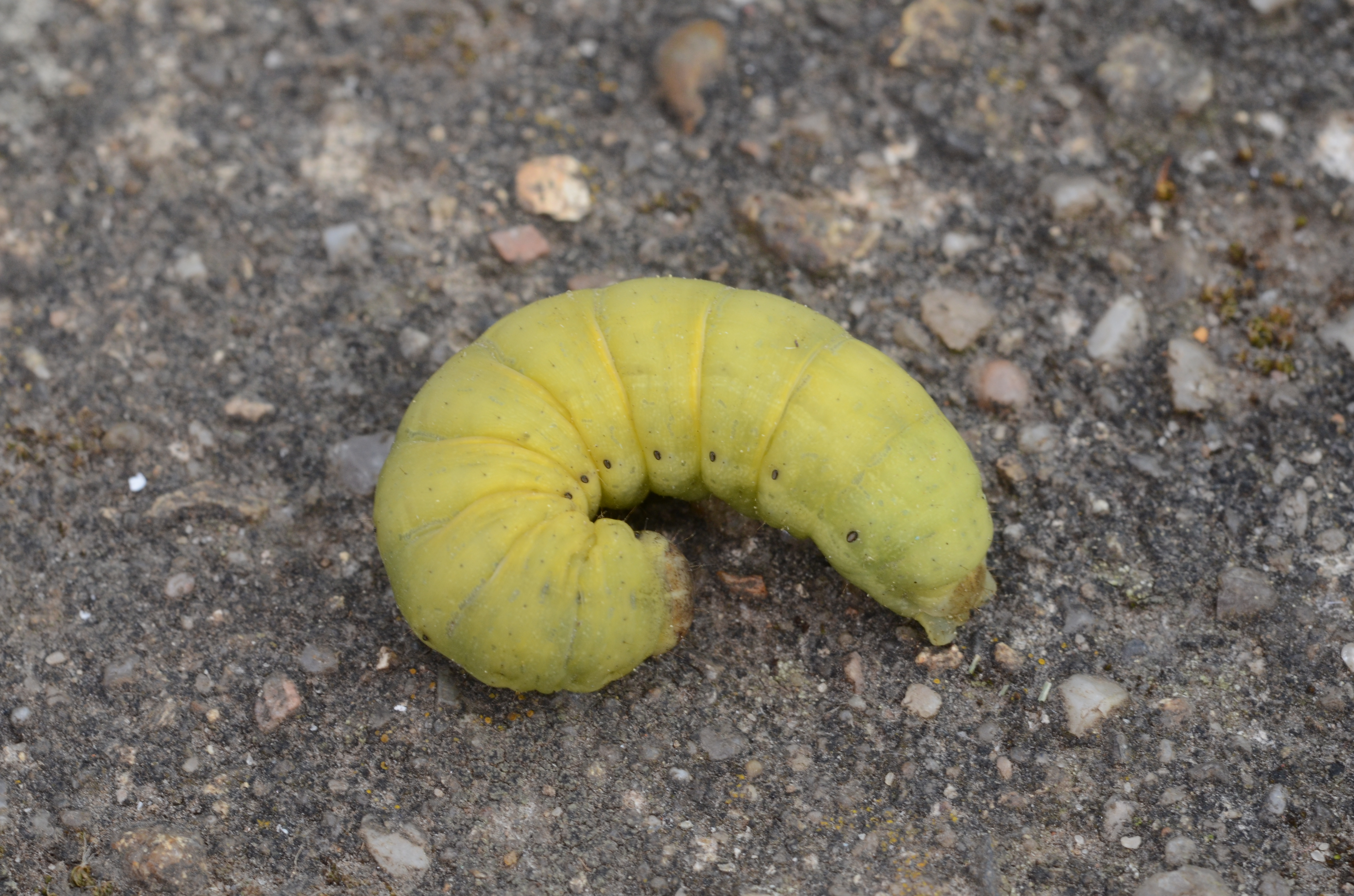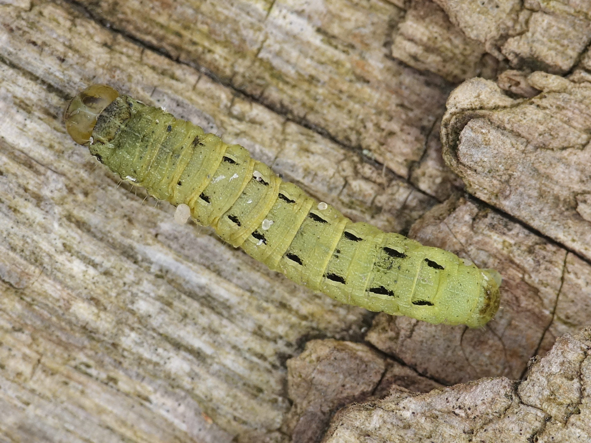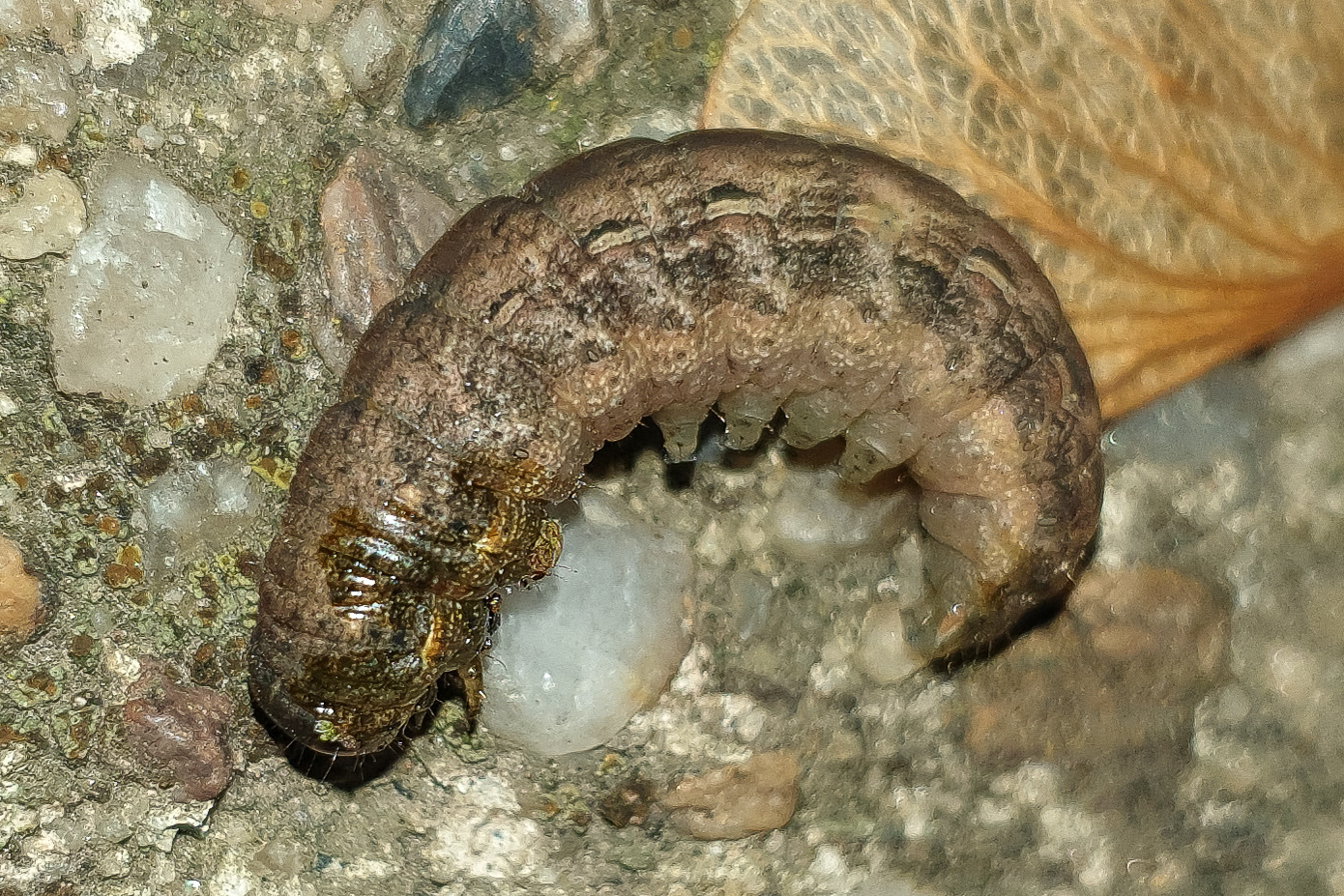 Hausmutter (Noctua pronuba (Linnaeus, 1758)), Larve (grüne Form), die sich frei bewegte, Radeberg, Dezember 2015.