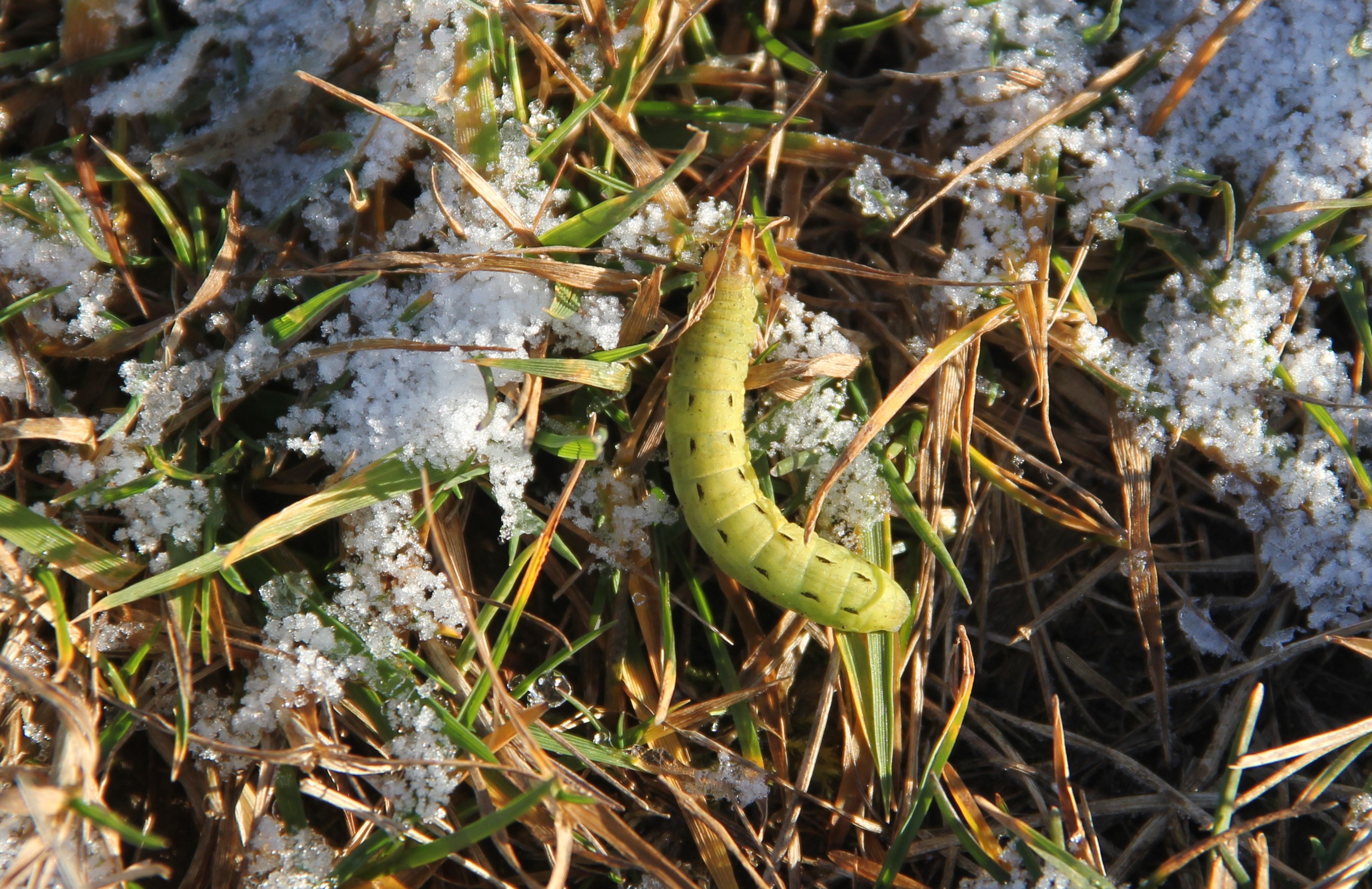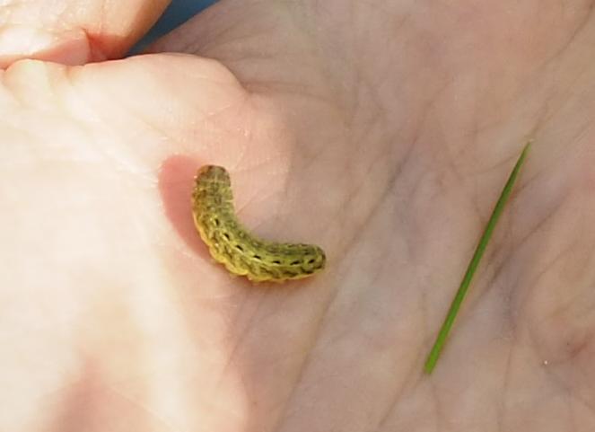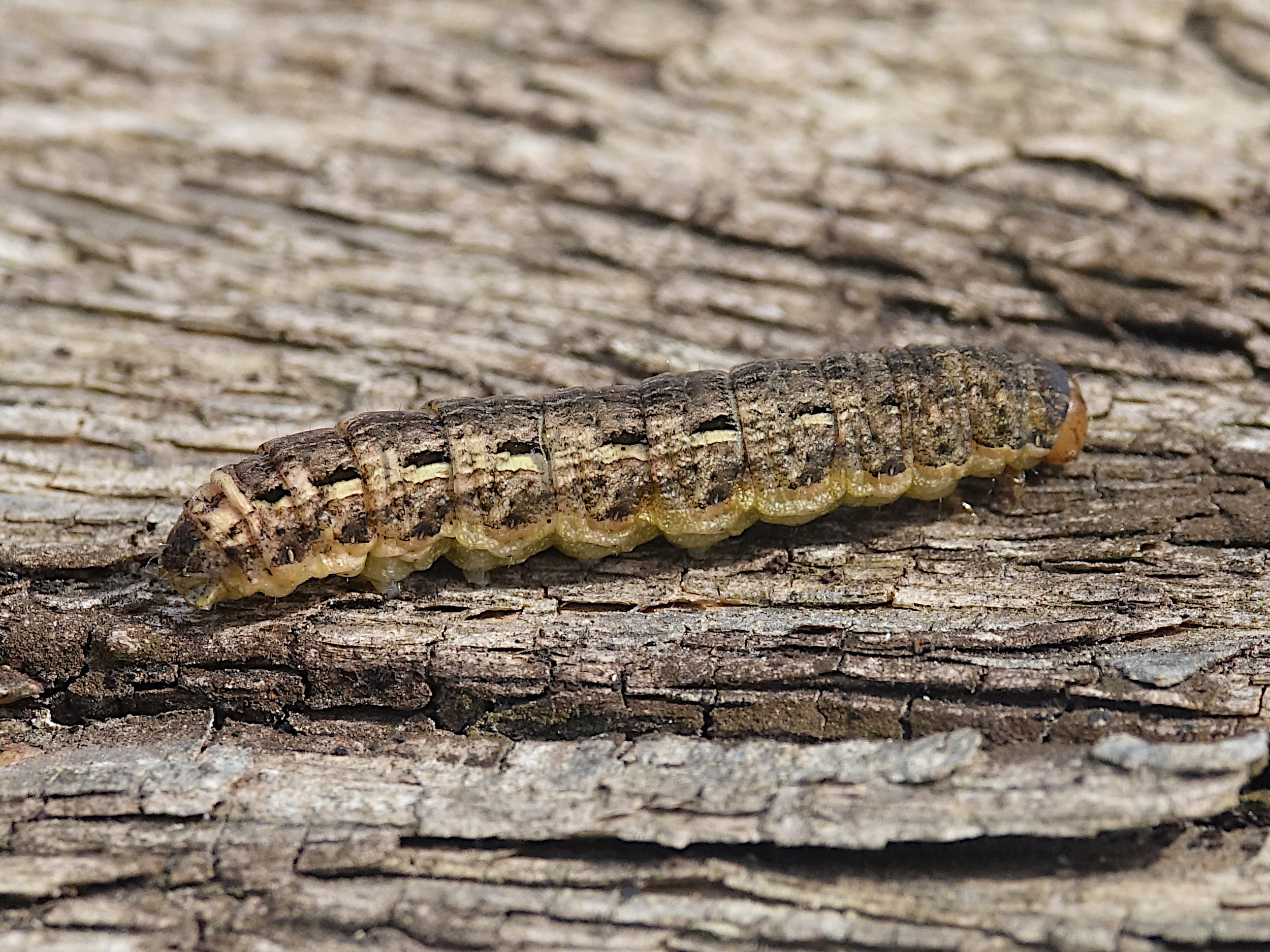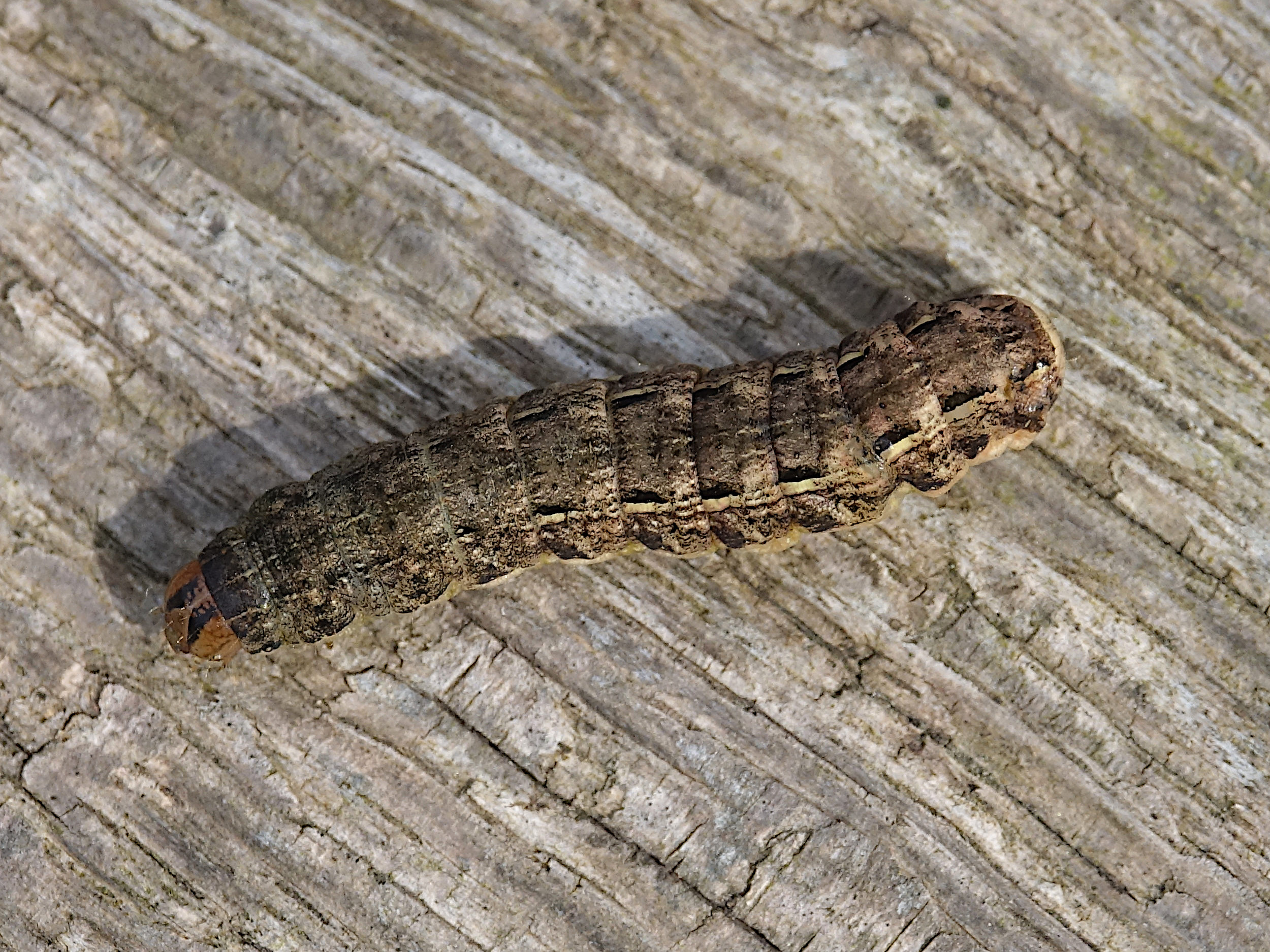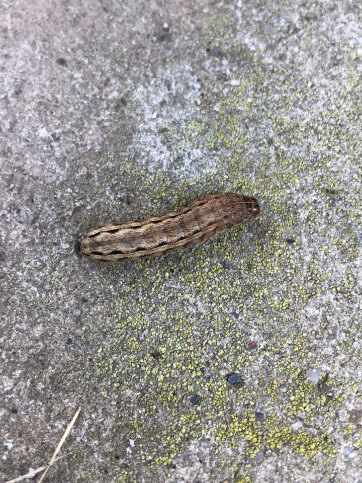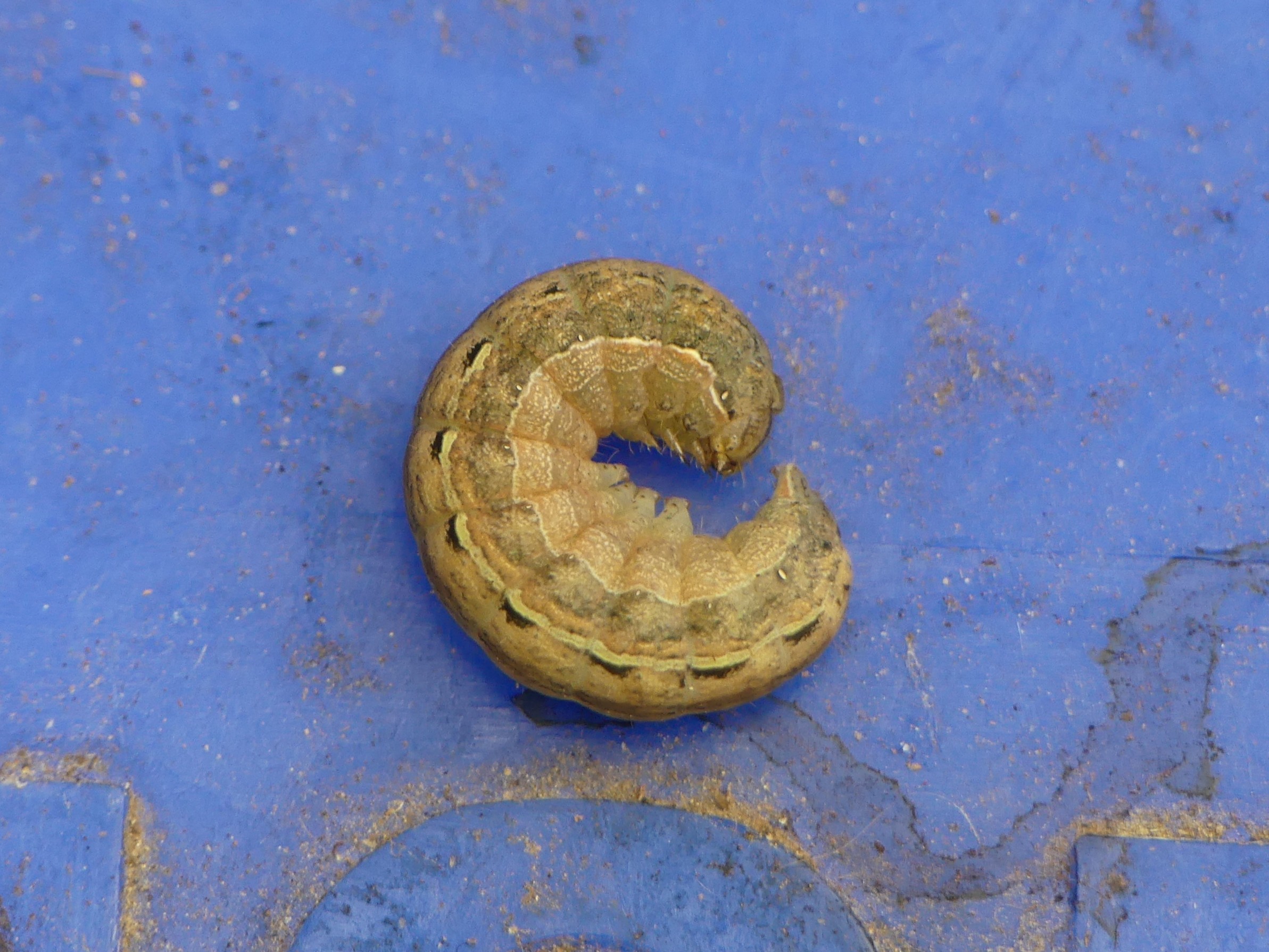 Hausmutter (Noctua pronuba (Linnaeus, 1758)), Larve (grüne Form), die sich frei bewegte, Radeberg, Dezember 2015.