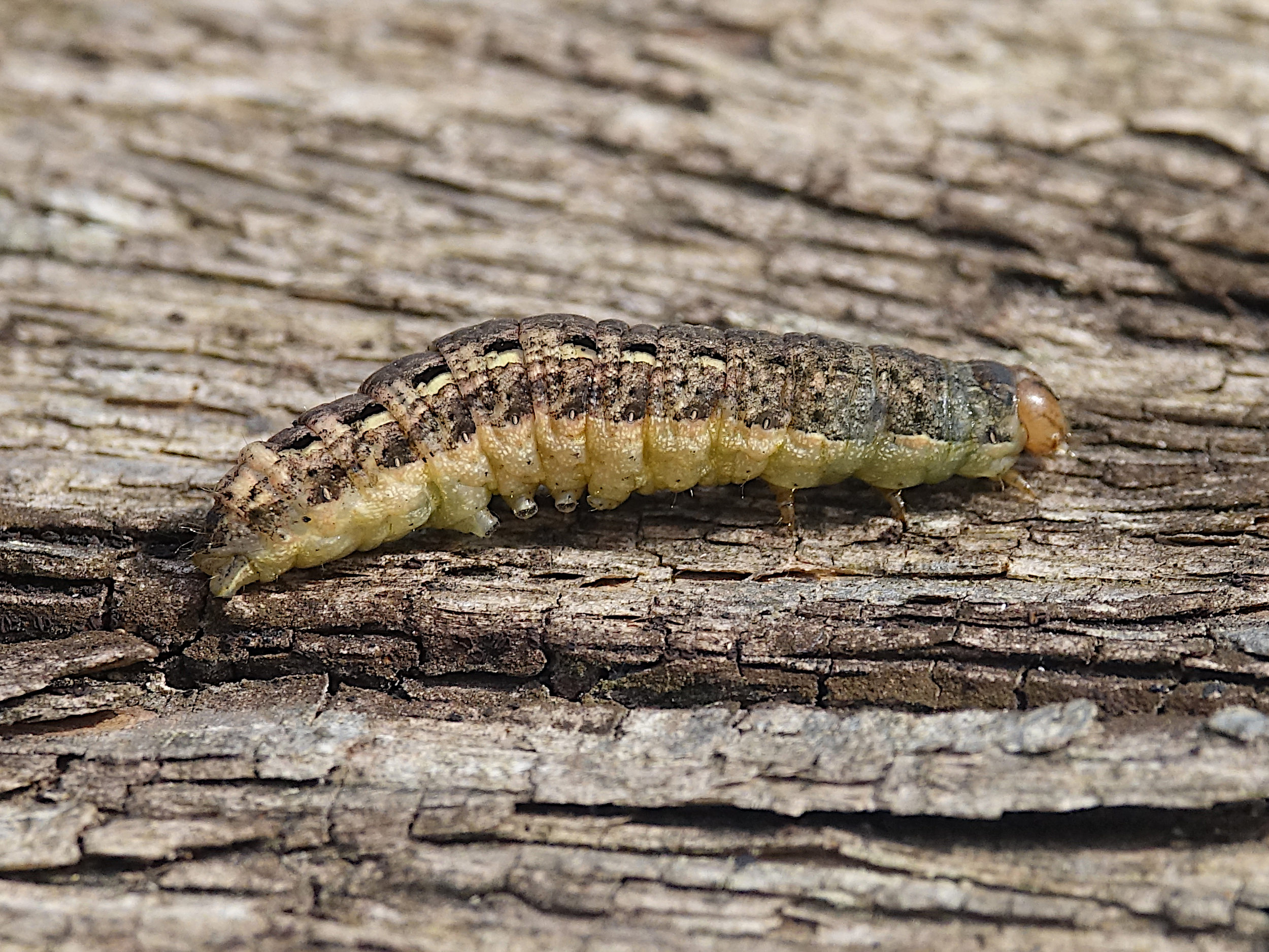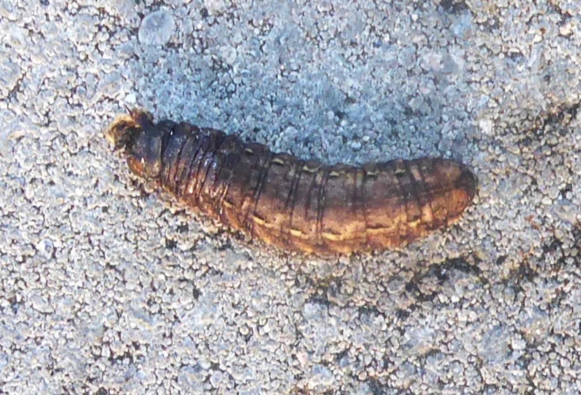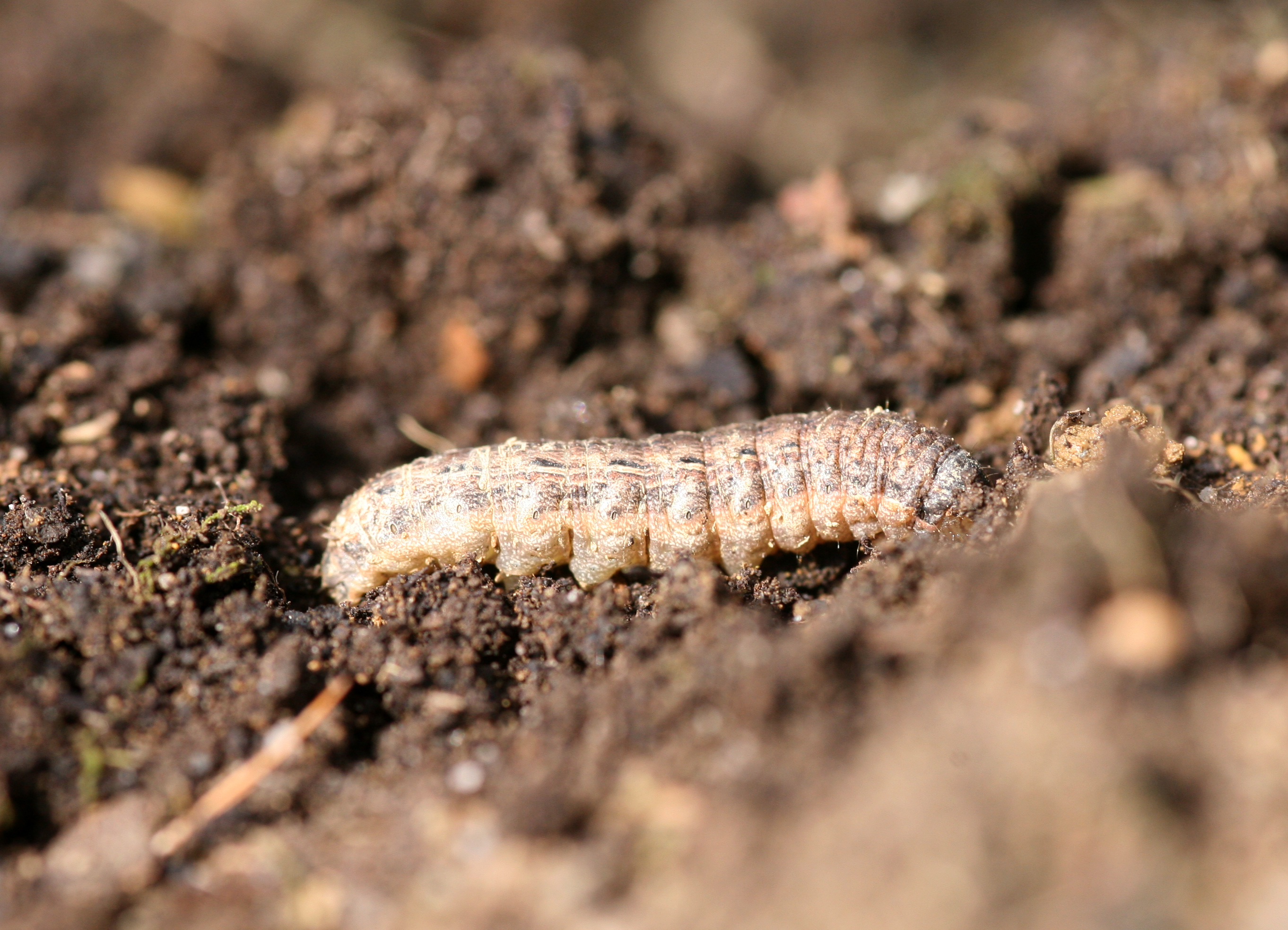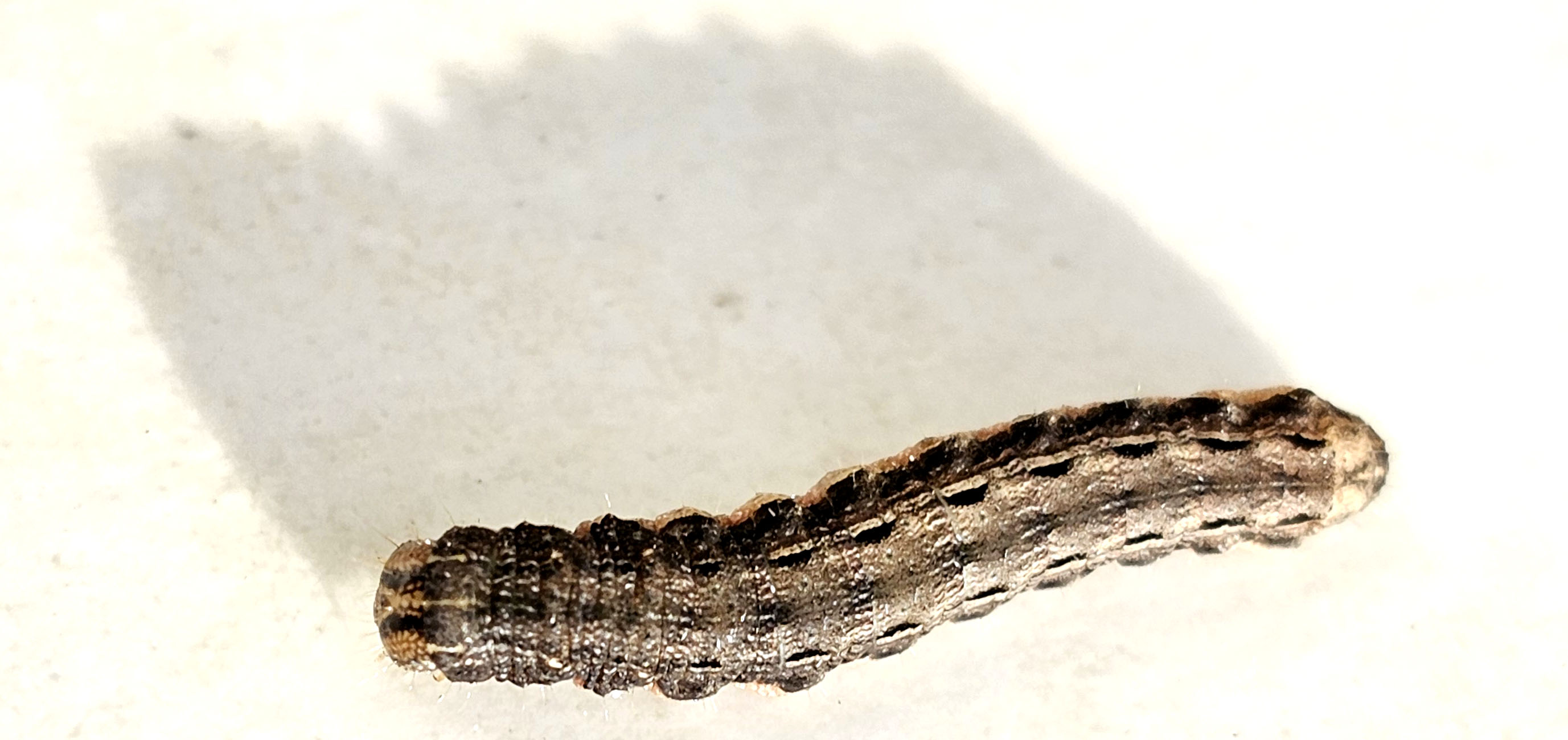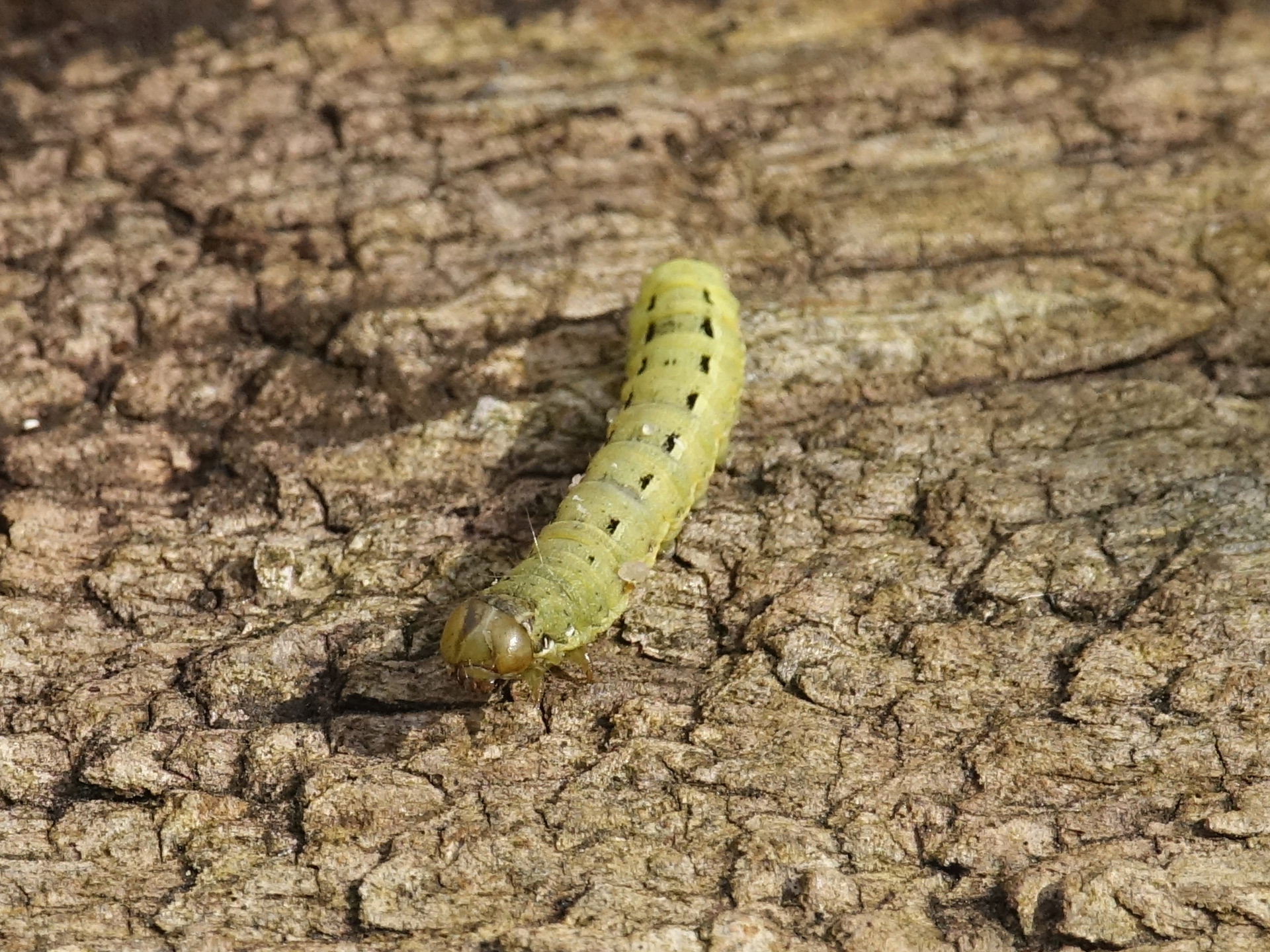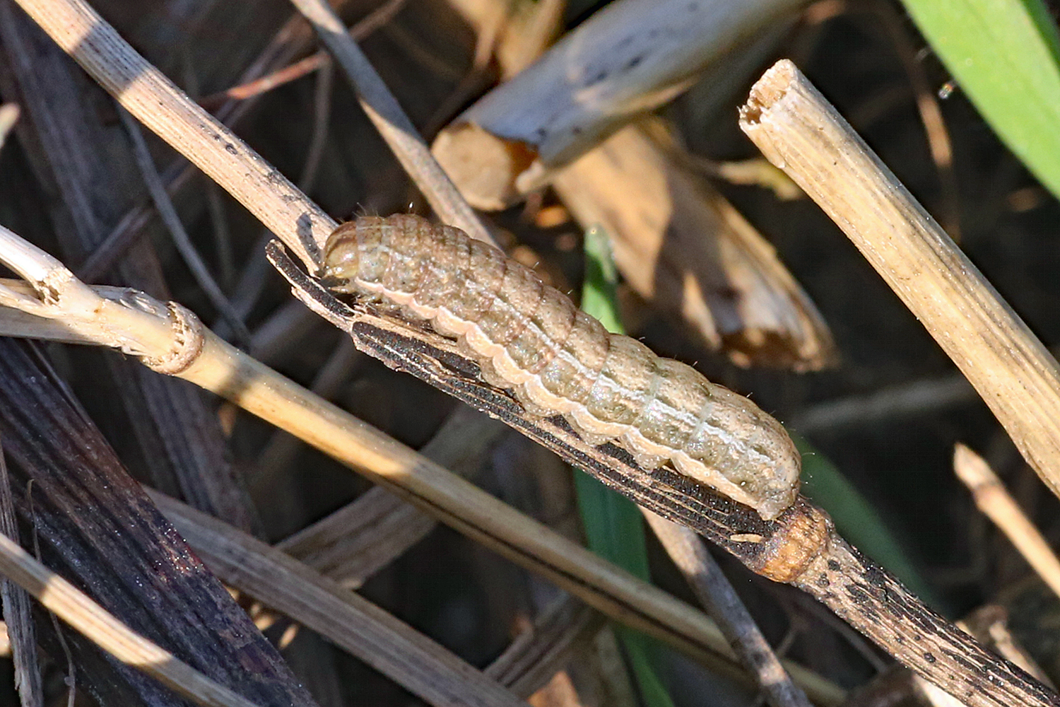 Hausmutter (Noctua pronuba (Linnaeus, 1758)), Larve (grüne Form), die sich frei bewegte, Radeberg, Dezember 2015.