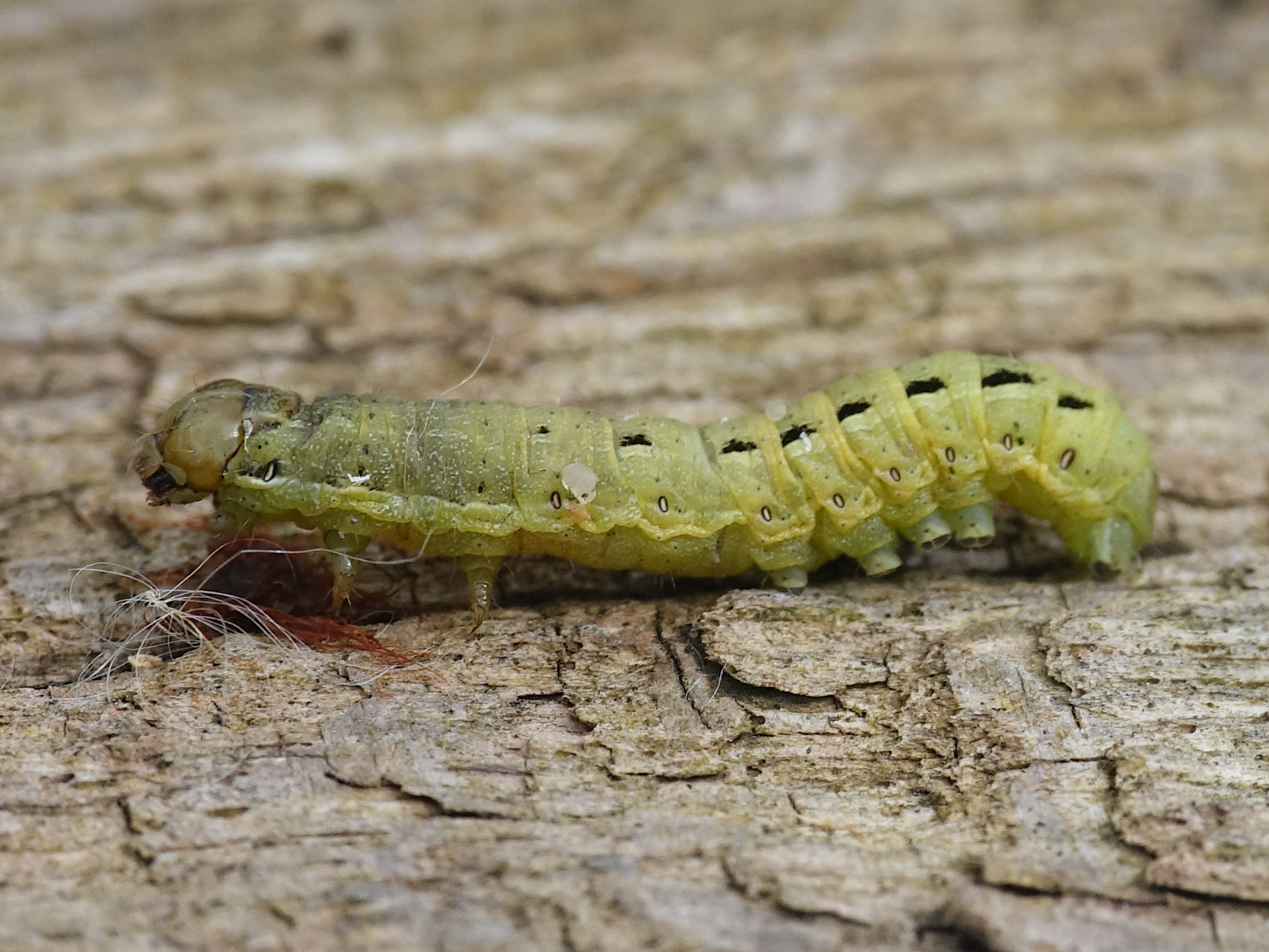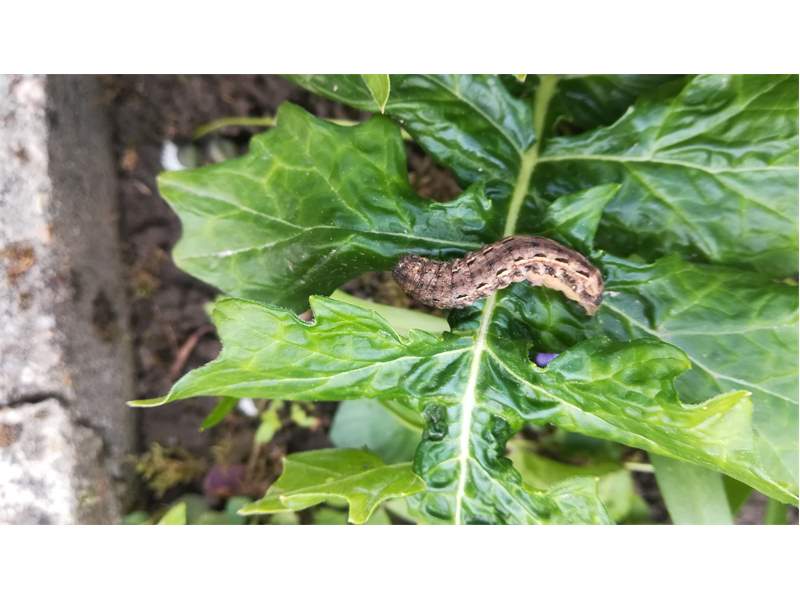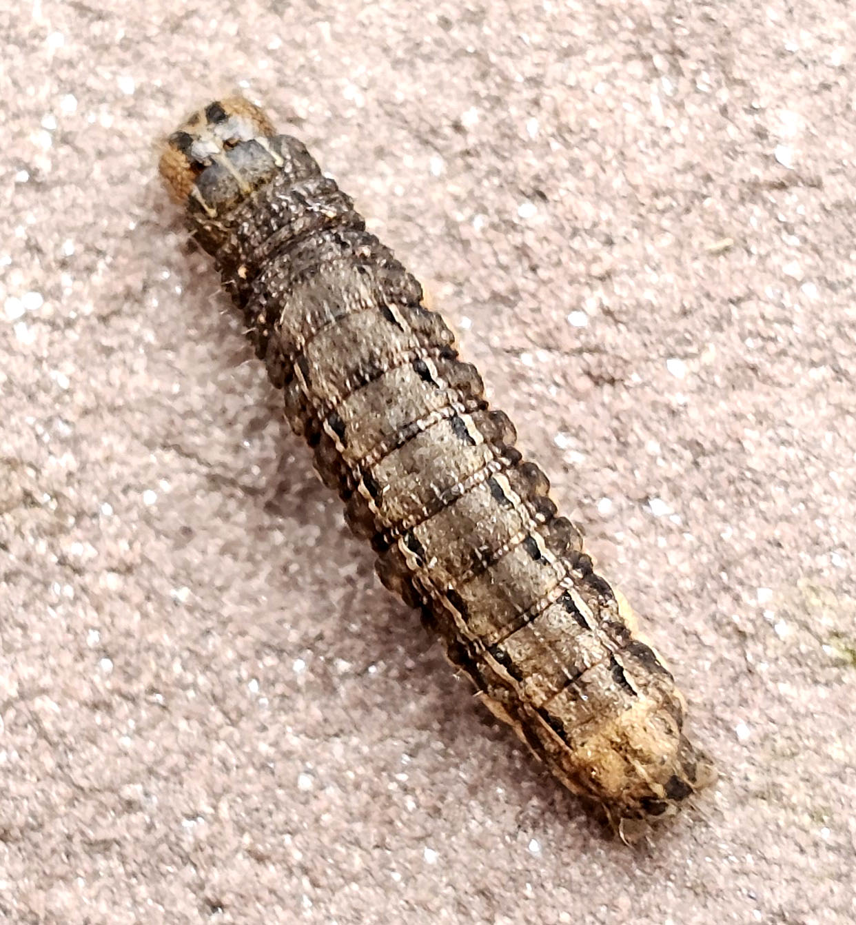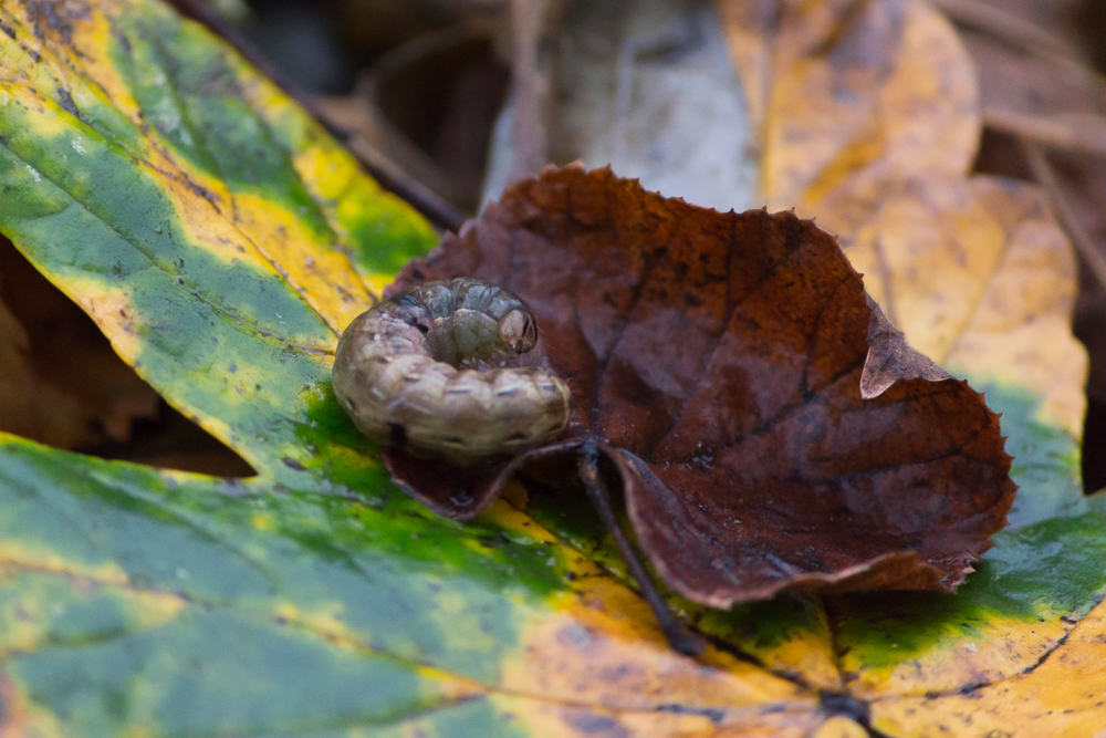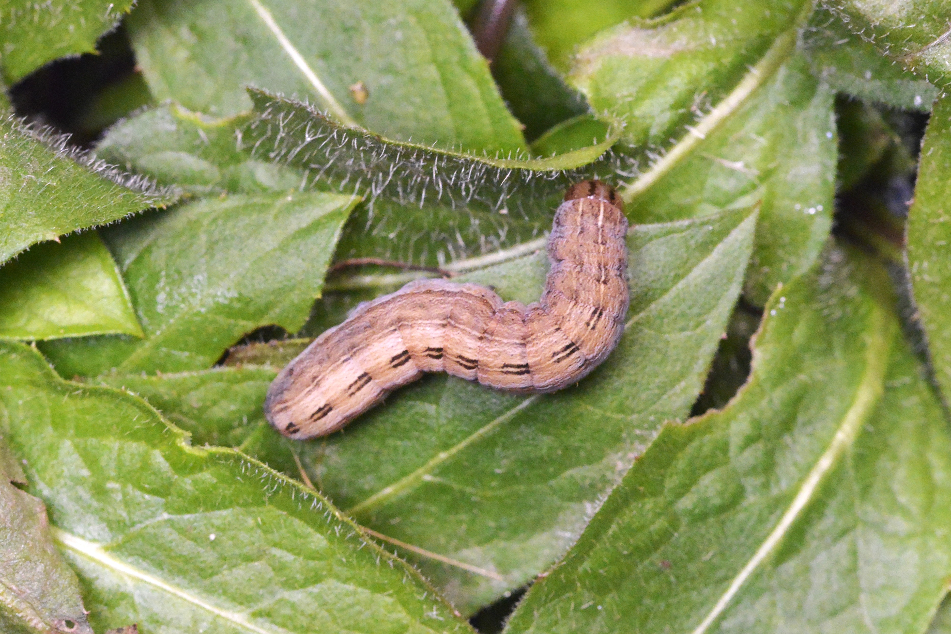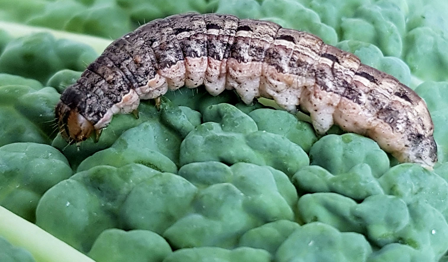 Hausmutter (Noctua pronuba (Linnaeus, 1758)), Larve (grüne Form), die sich frei bewegte, Radeberg, Dezember 2015.