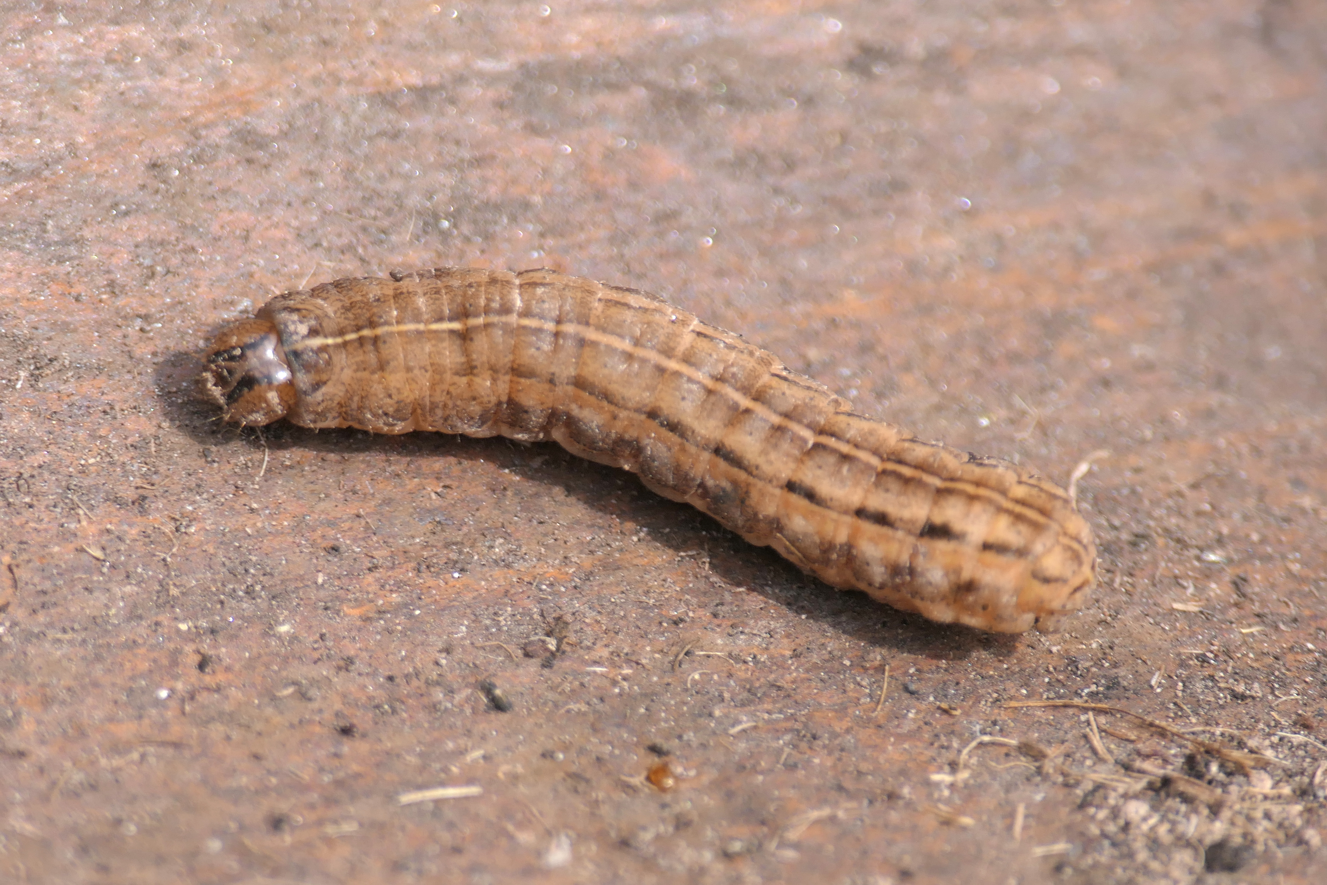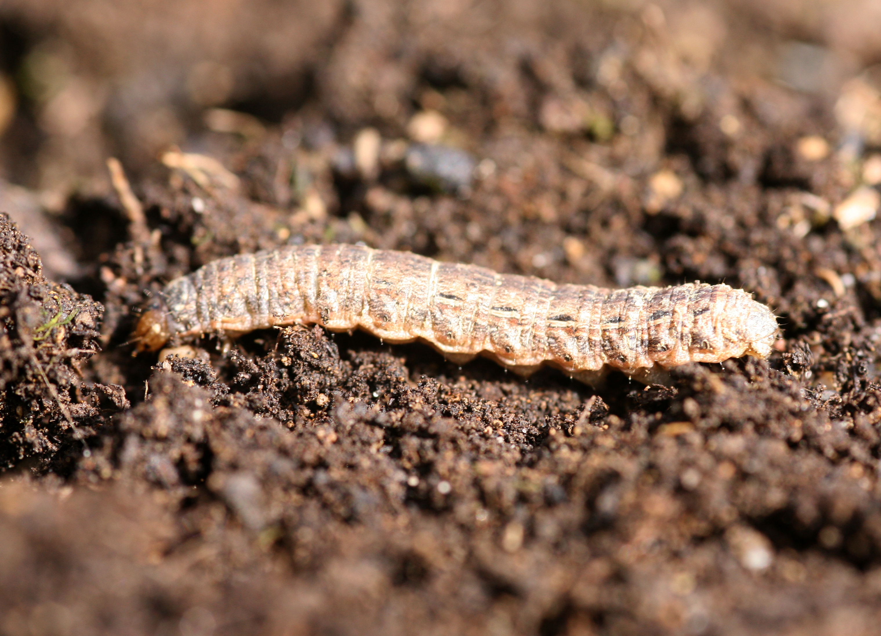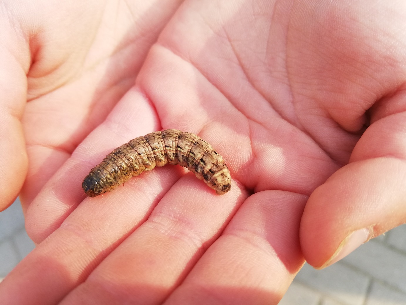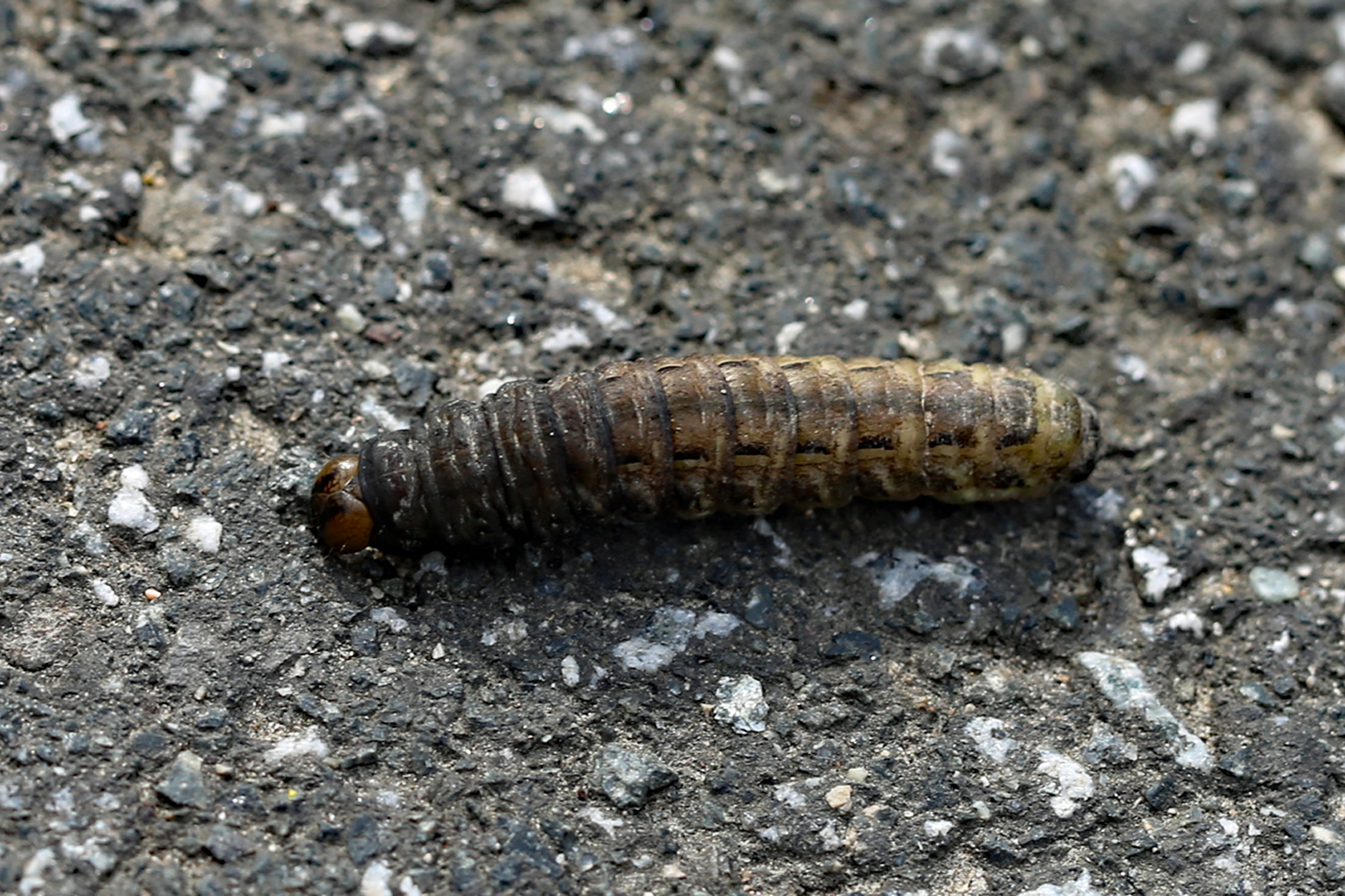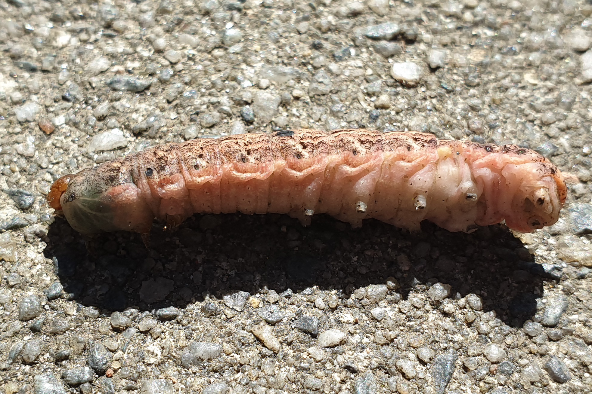 Hausmutter (Noctua pronuba (Linnaeus, 1758)), Larve (grüne Form), die sich frei bewegte, Radeberg, Dezember 2015.