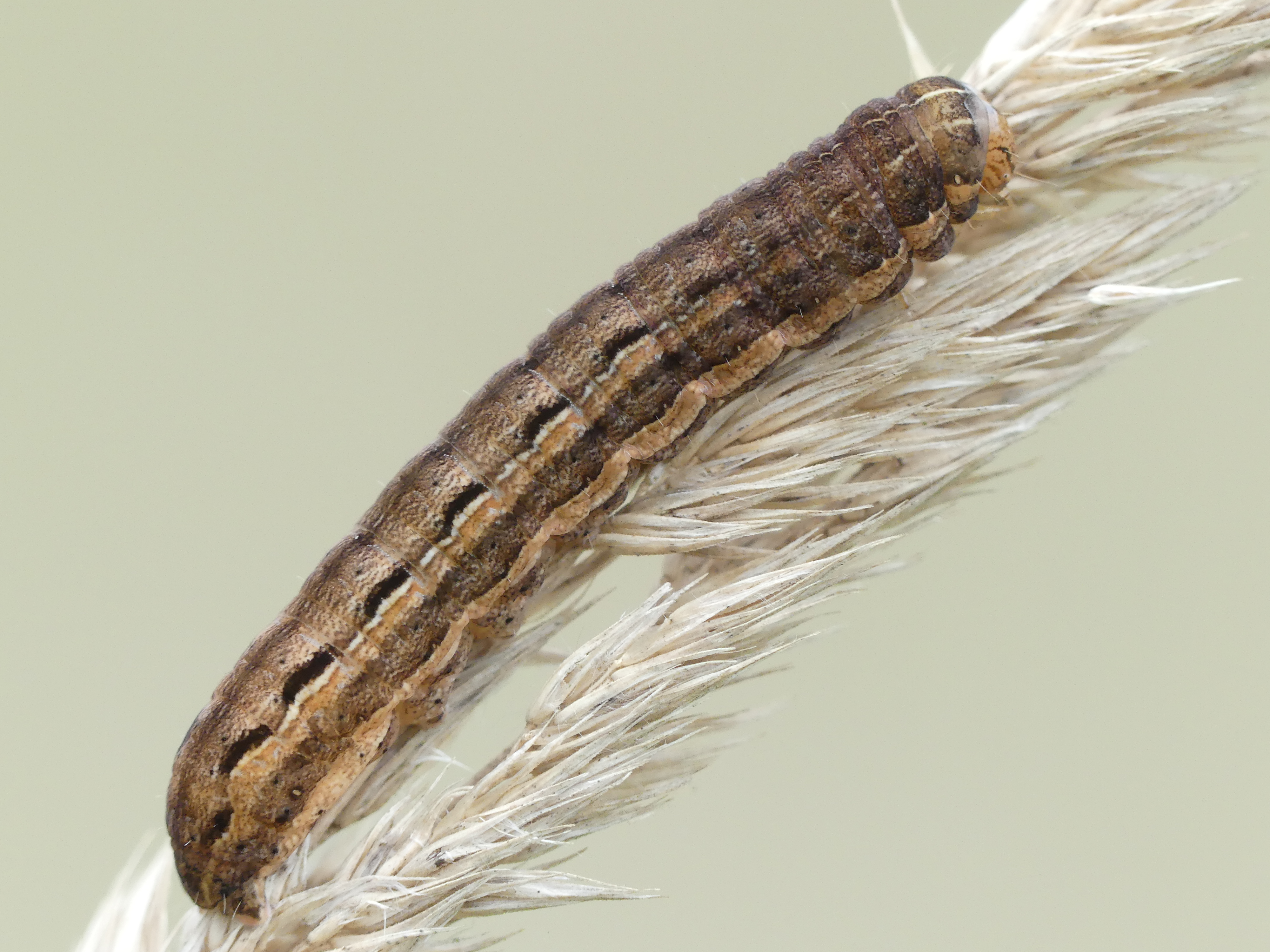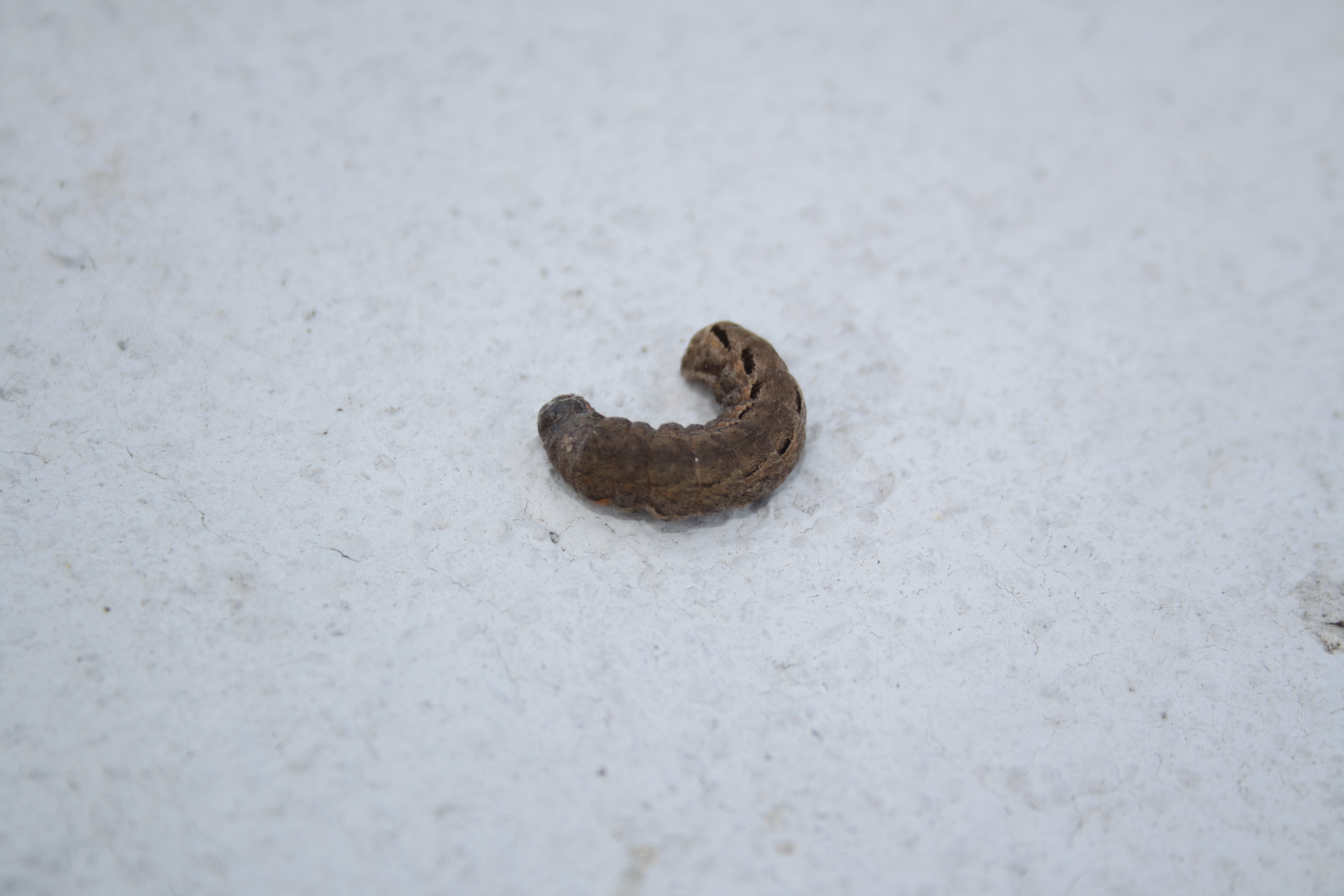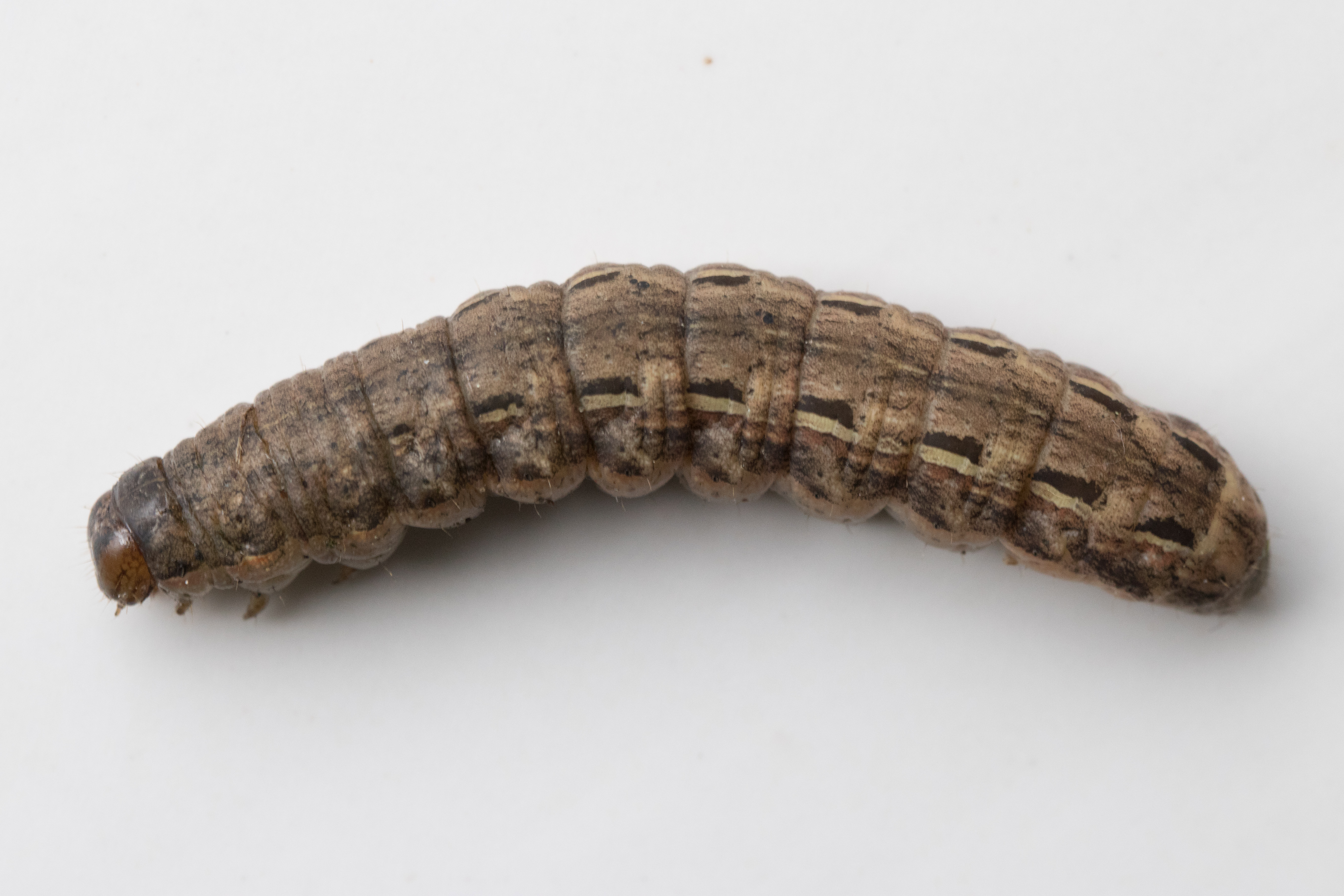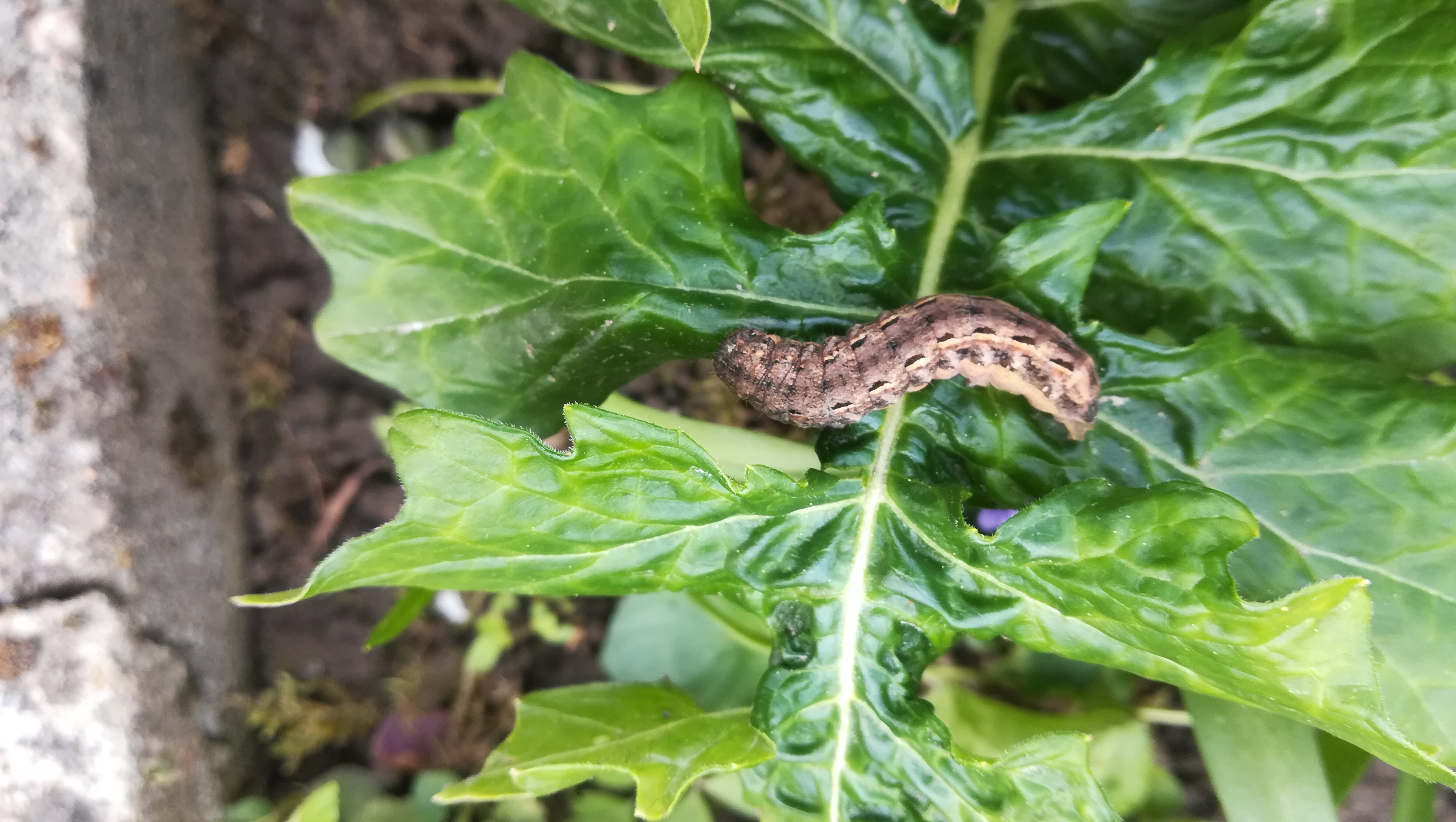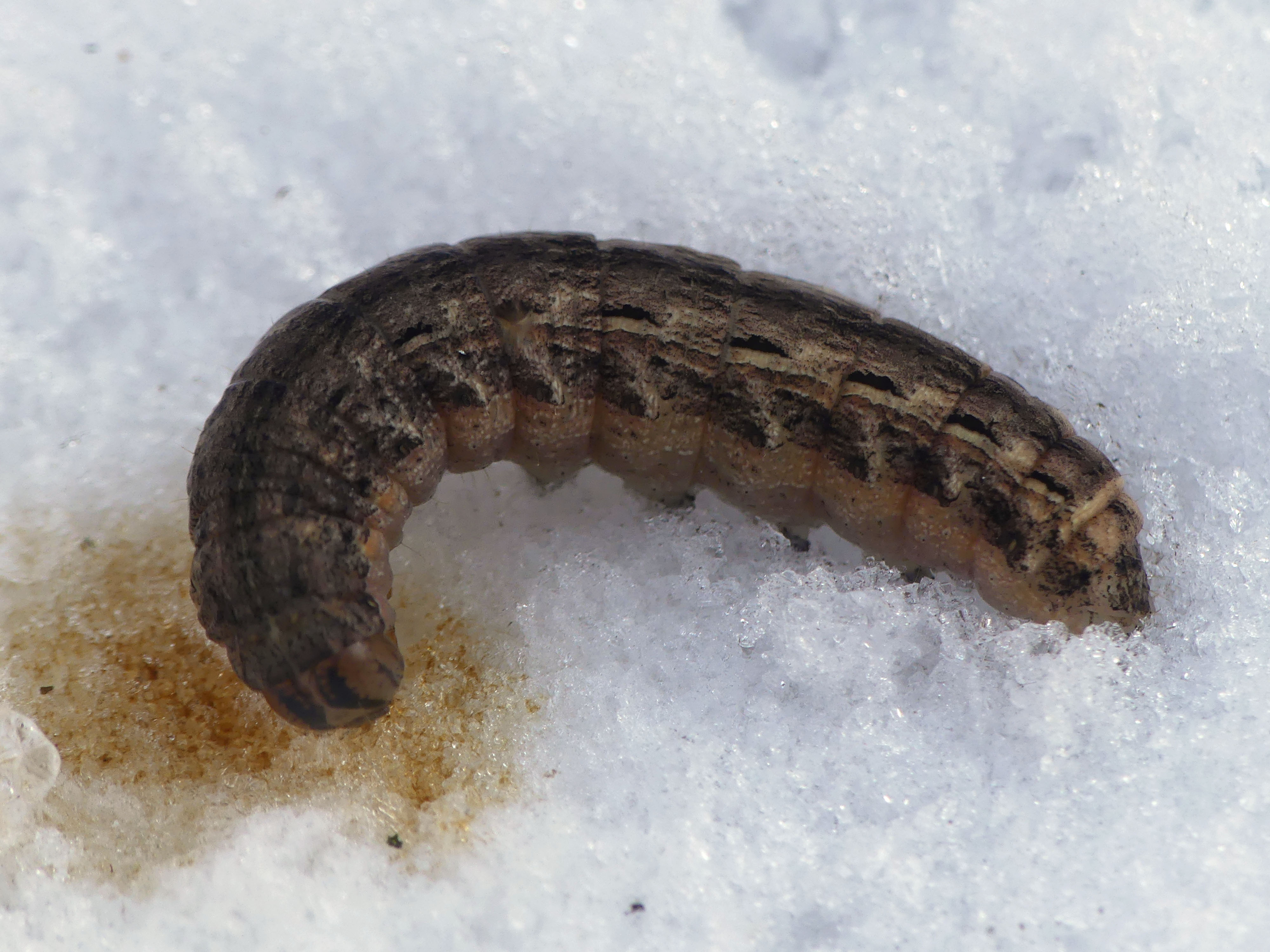 Hausmutter (Noctua pronuba (Linnaeus, 1758)), Larve (grüne Form), die sich frei bewegte, Radeberg, Dezember 2015.