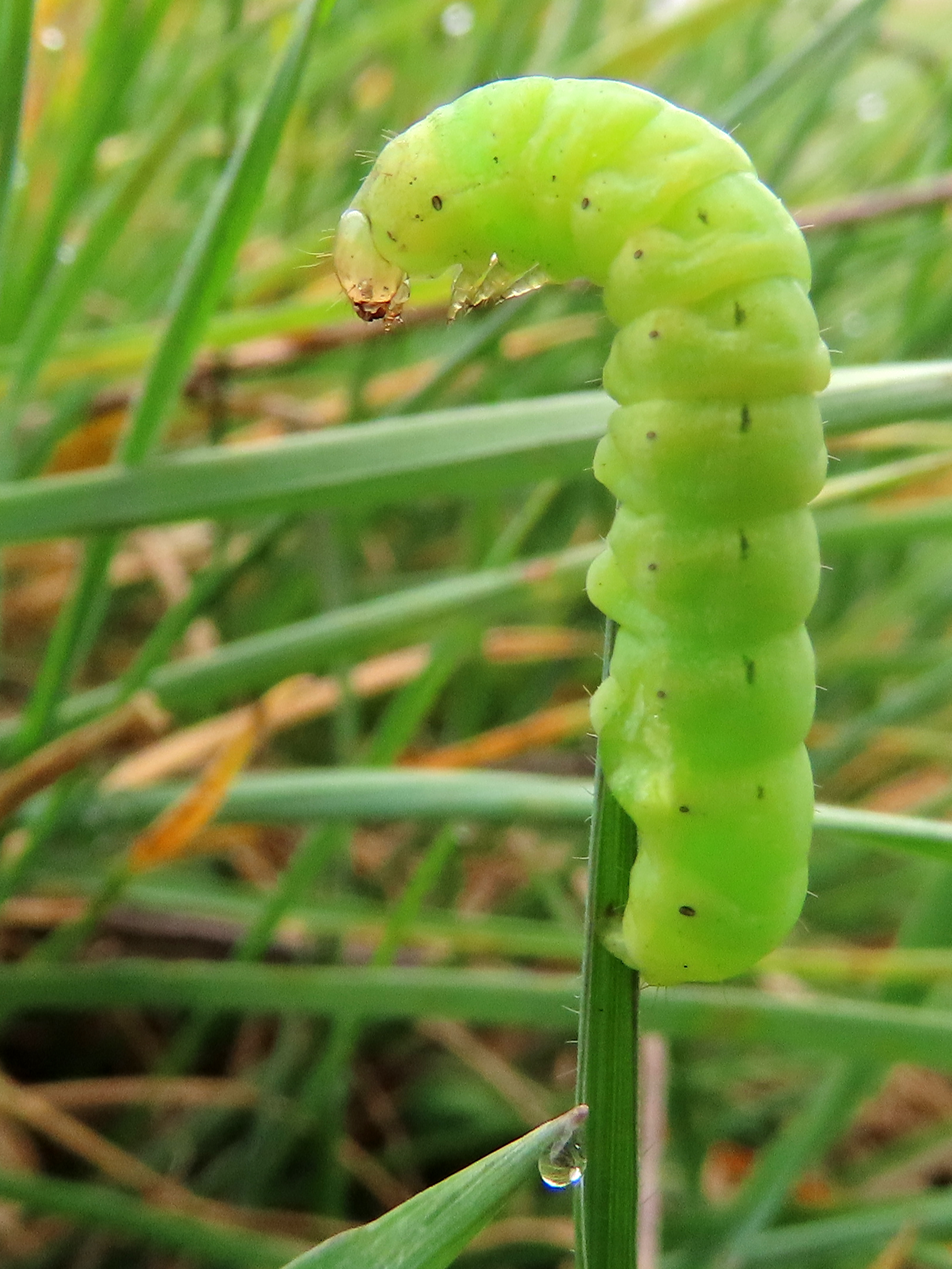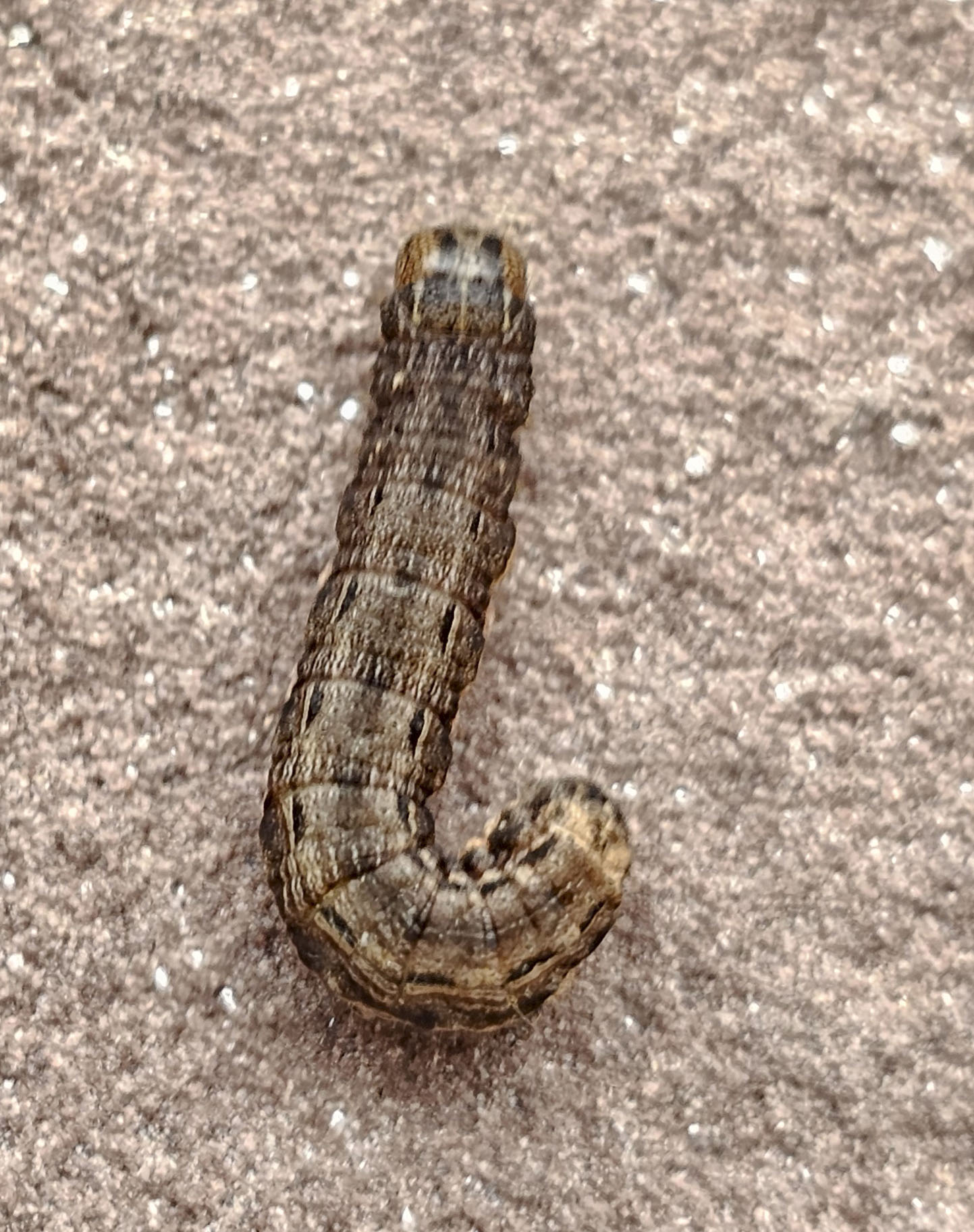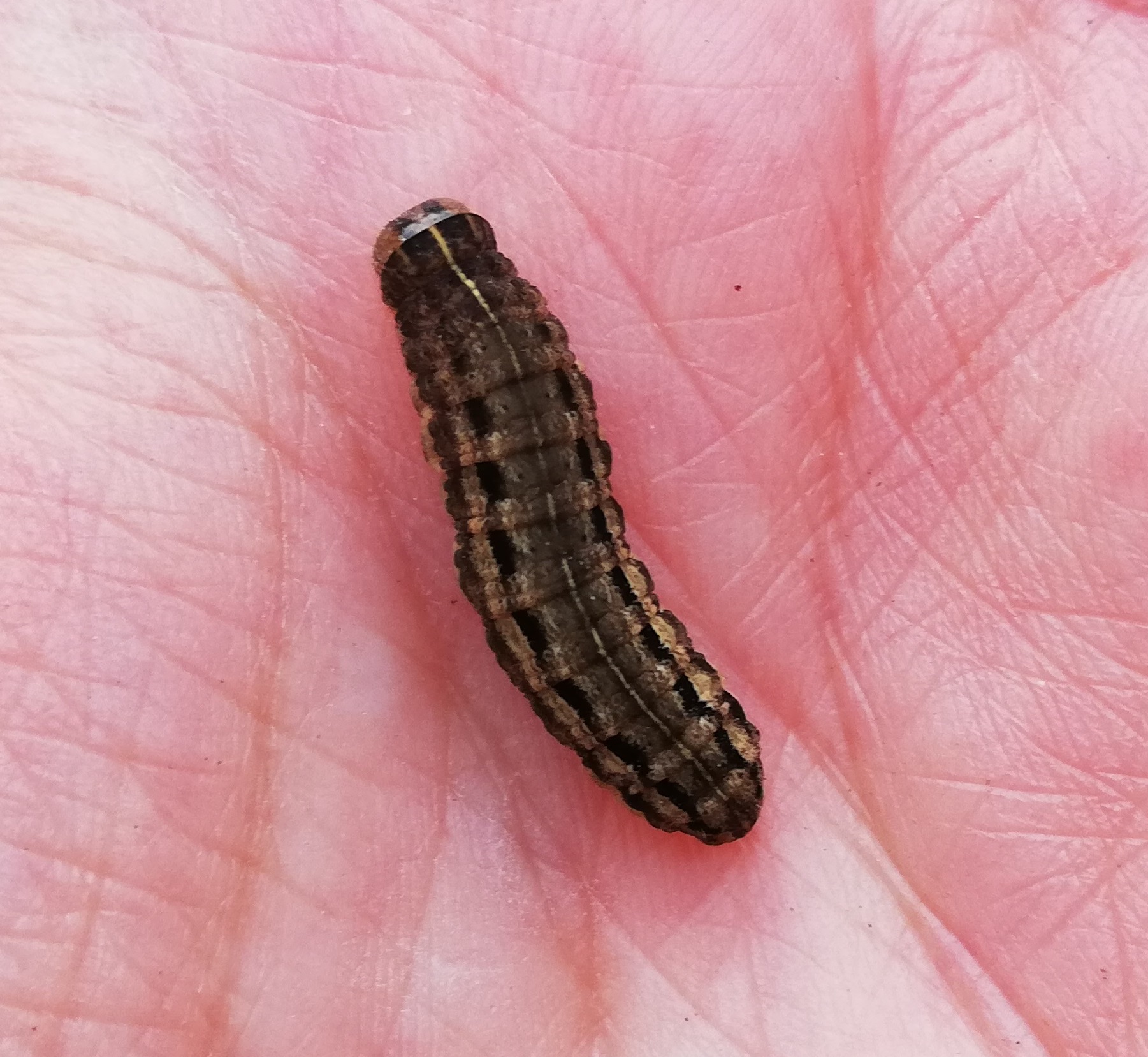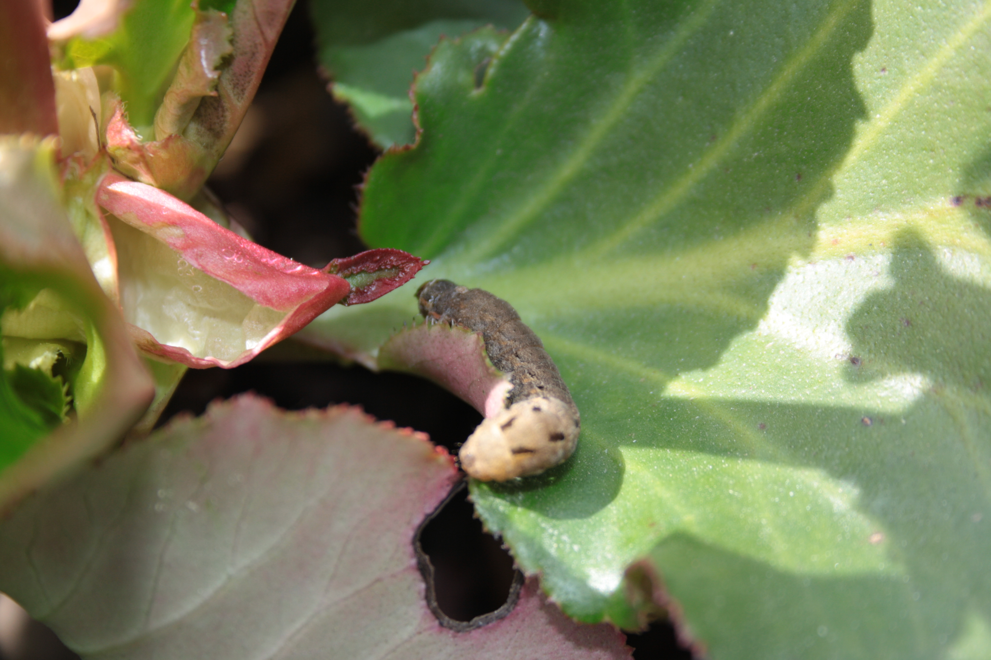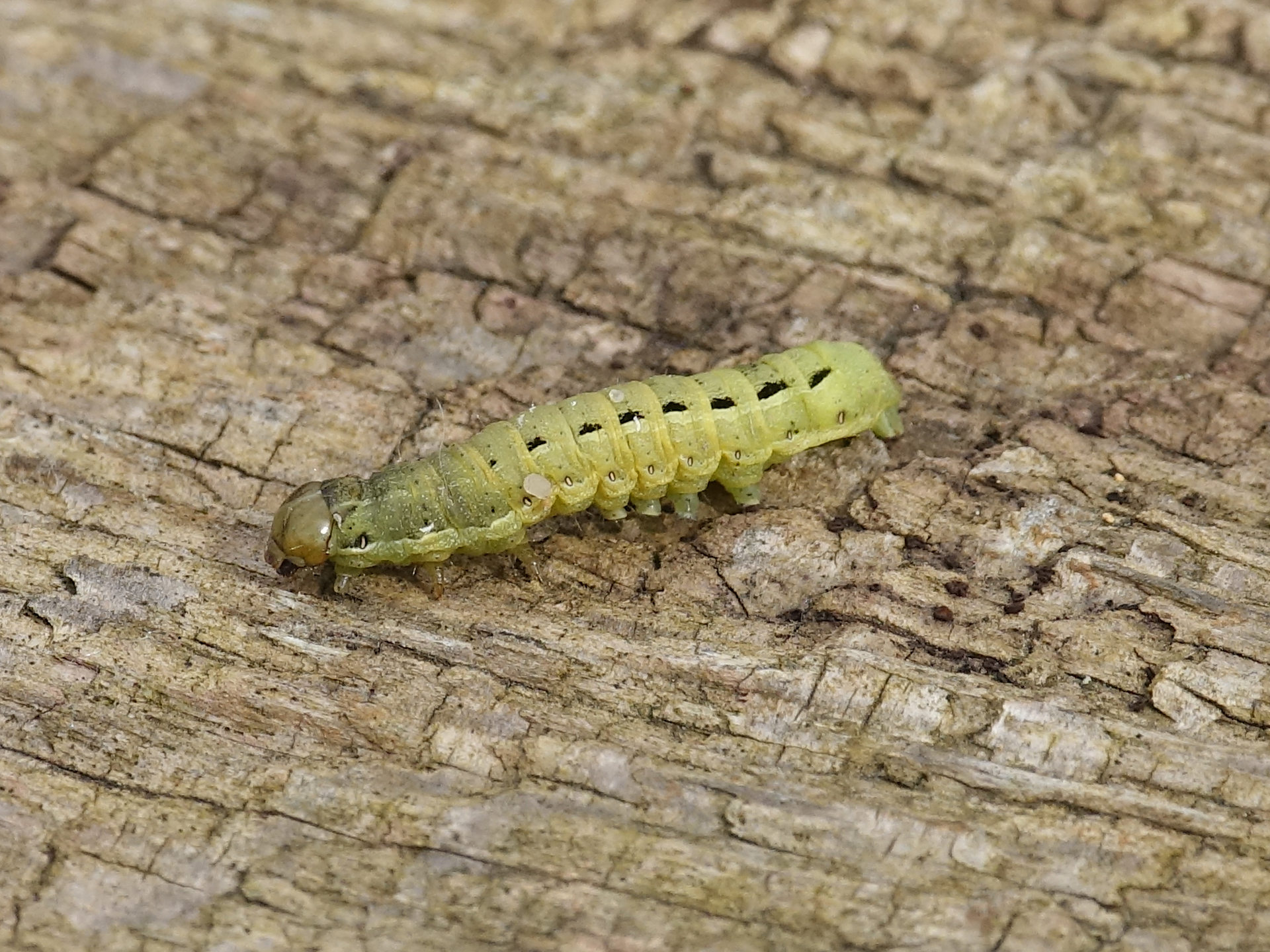 Hausmutter (Noctua pronuba (Linnaeus, 1758)), Larve (grüne Form), die sich frei bewegte, Radeberg, Dezember 2015.