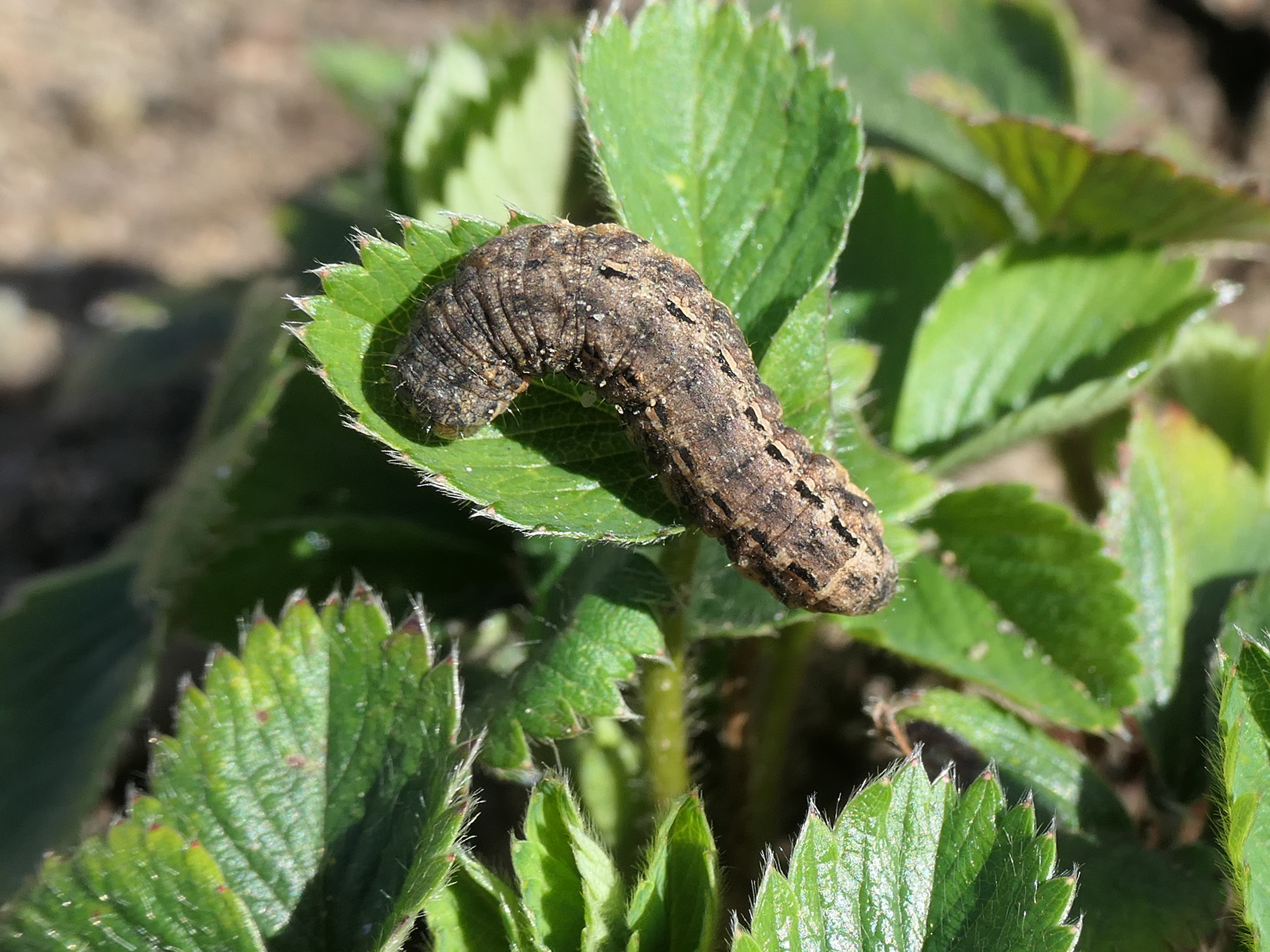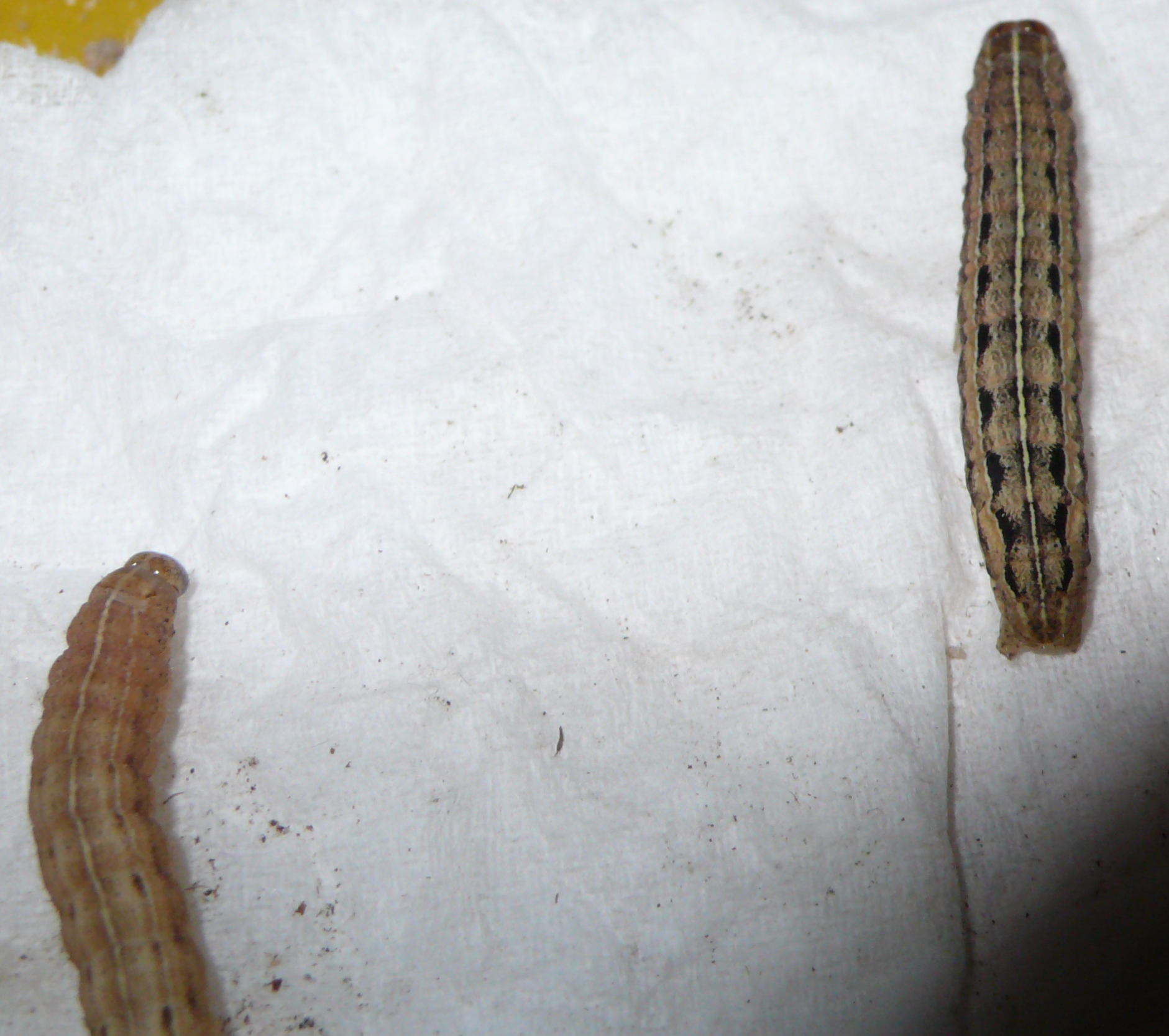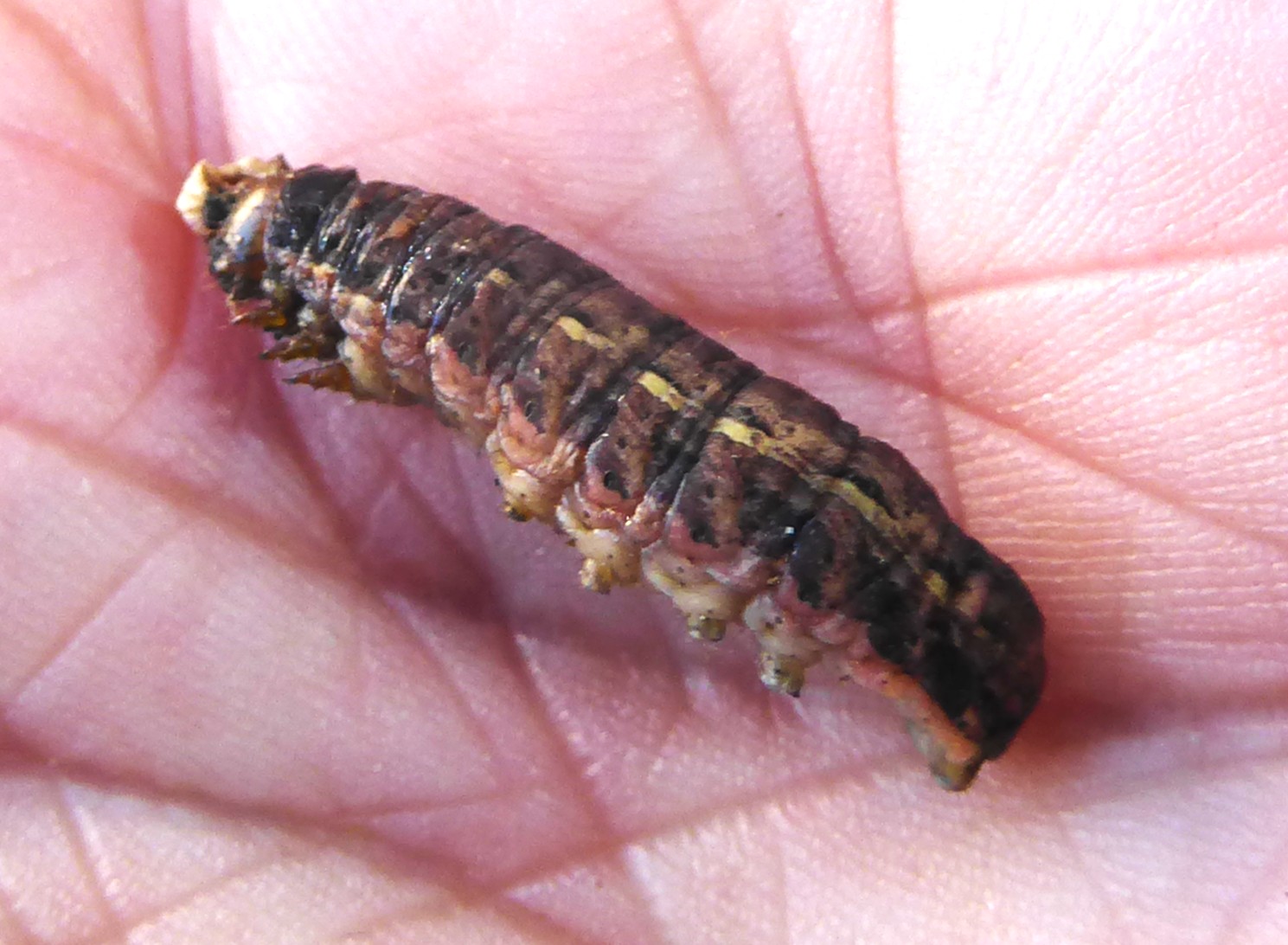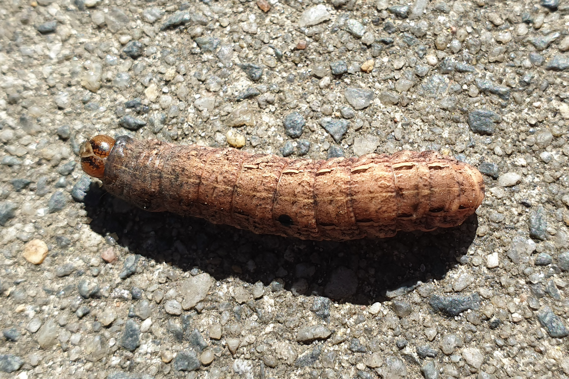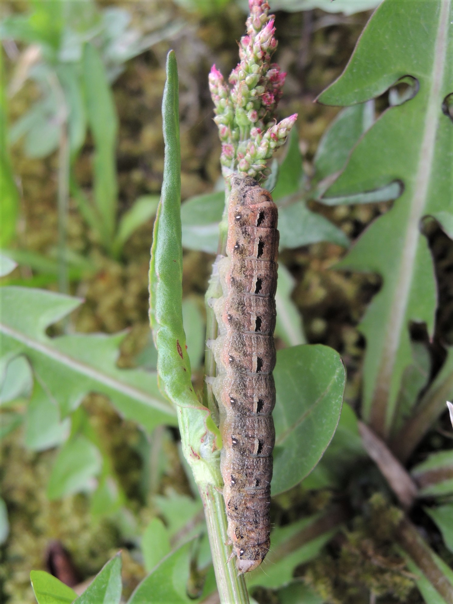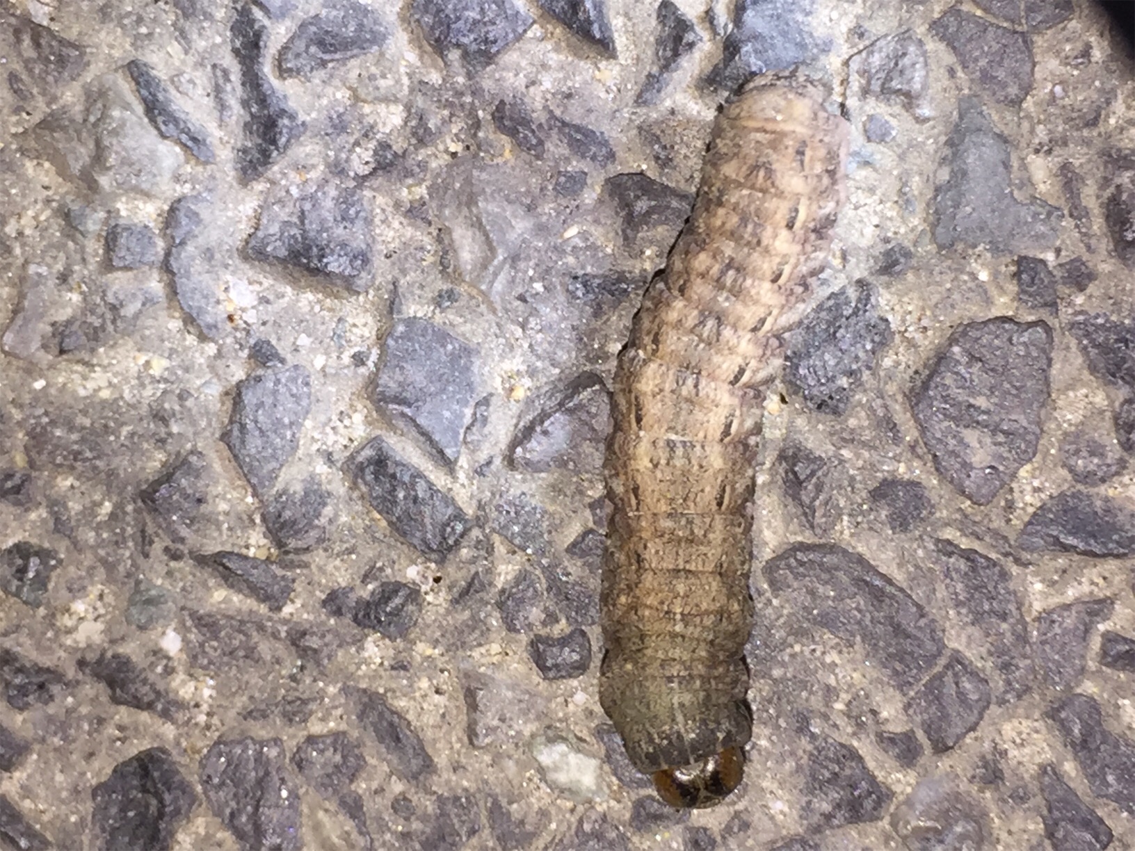 Hausmutter (Noctua pronuba (Linnaeus, 1758)), Larve (grüne Form), die sich frei bewegte, Radeberg, Dezember 2015.