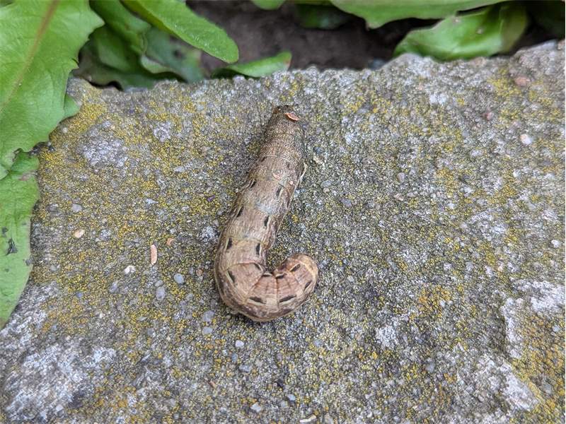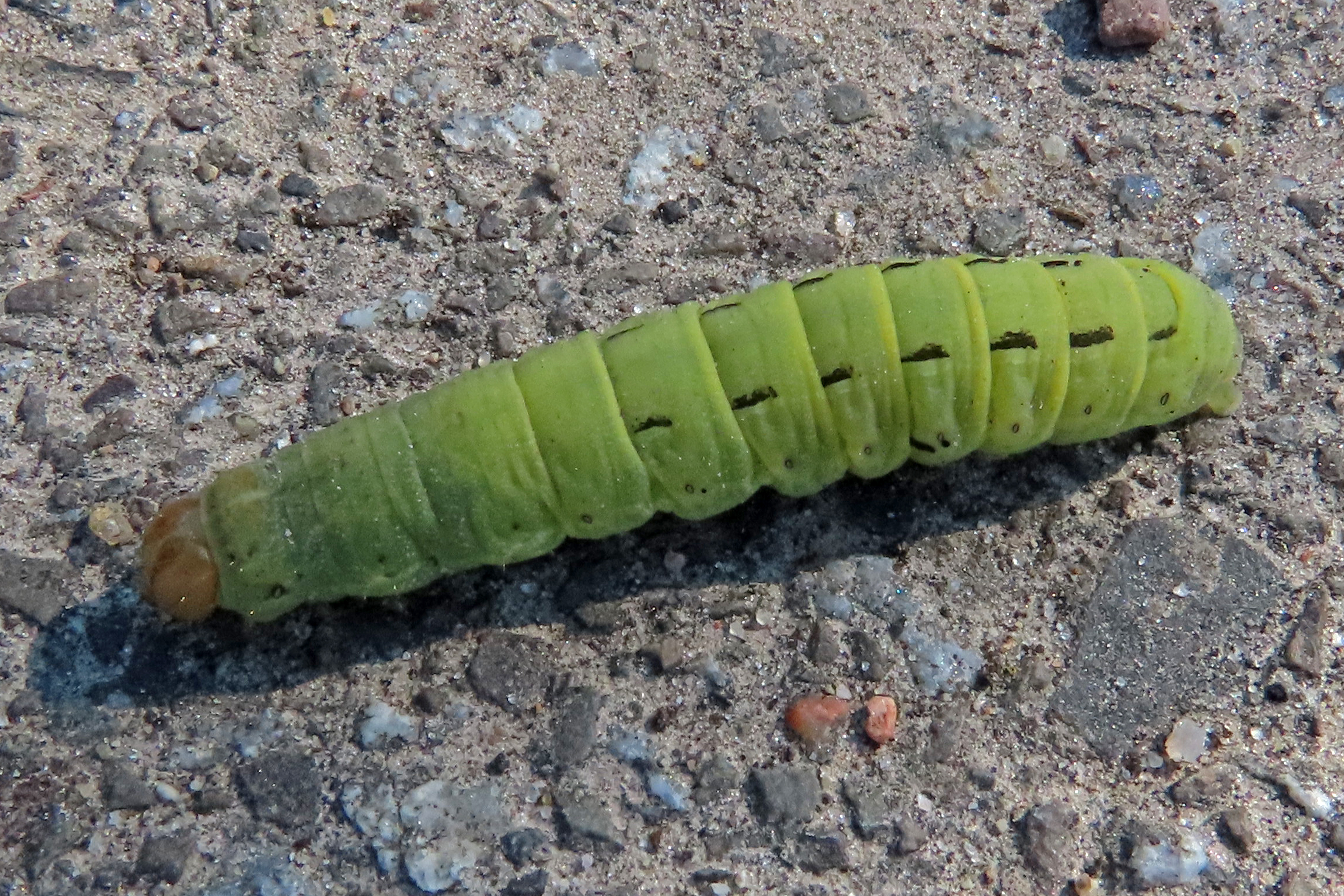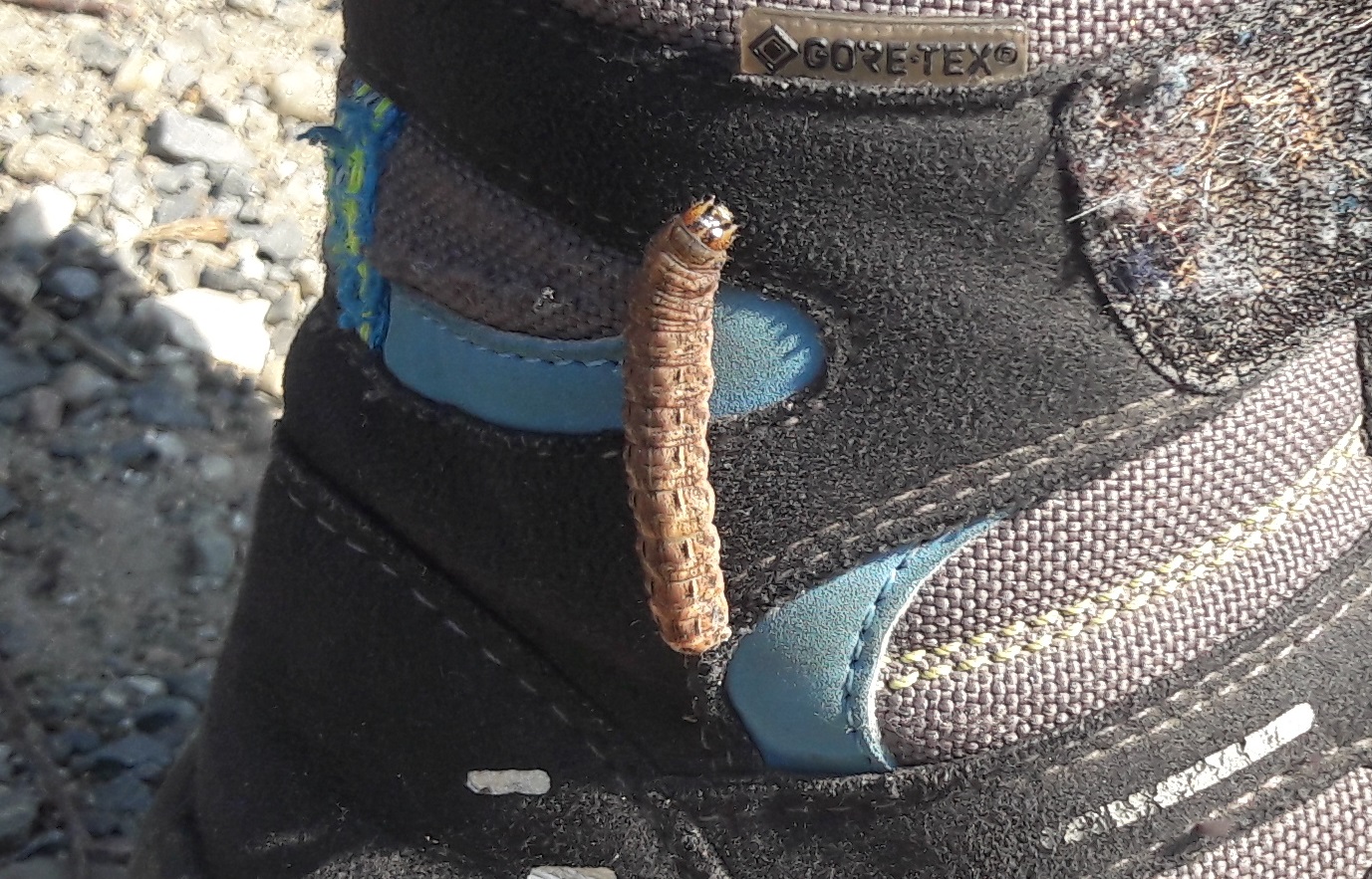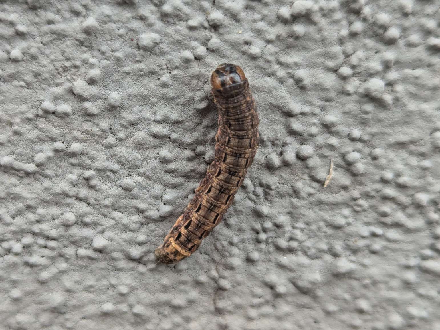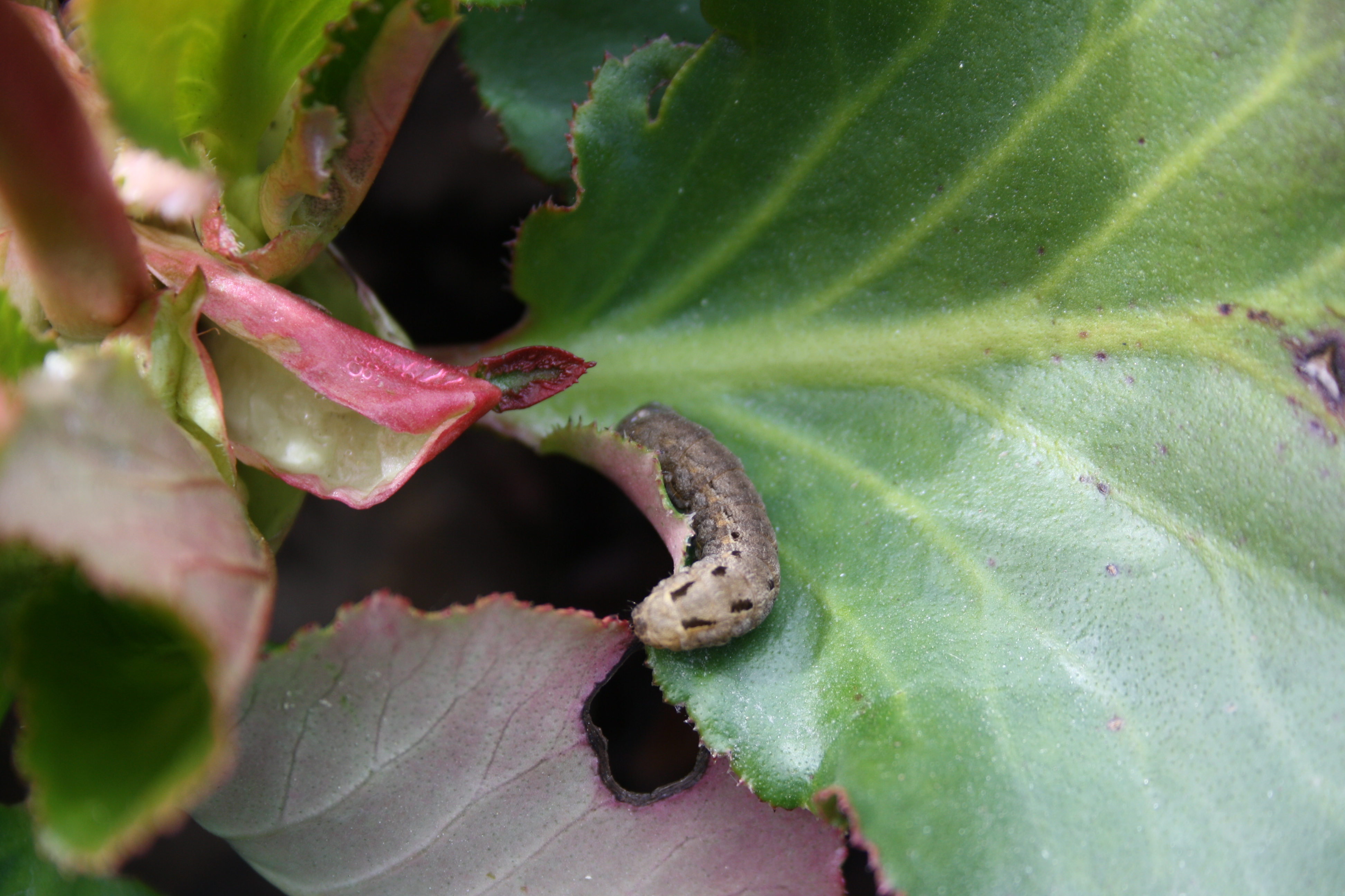 Hausmutter (Noctua pronuba (Linnaeus, 1758)), Larve (grüne Form), die sich frei bewegte, Radeberg, Dezember 2015.