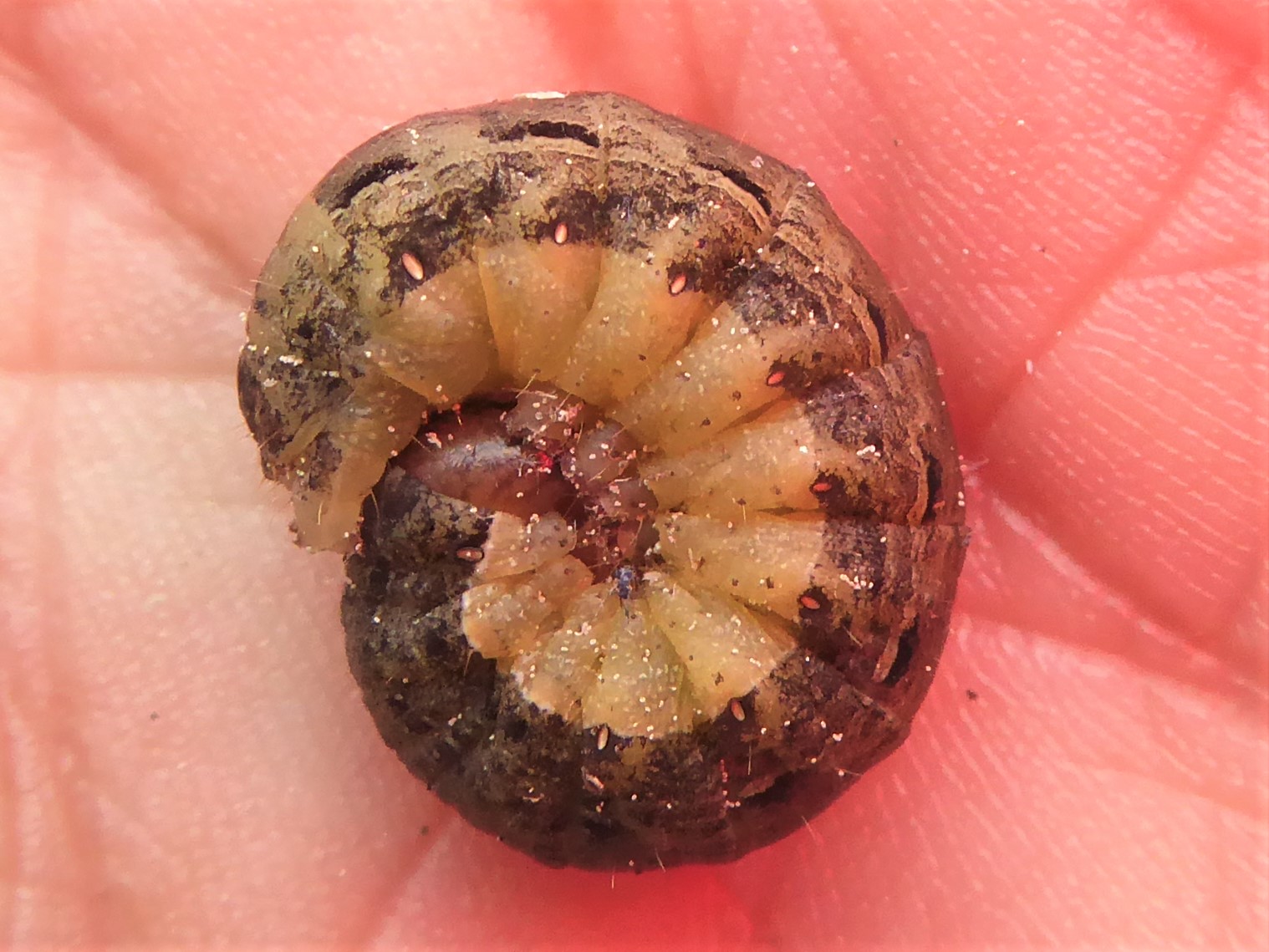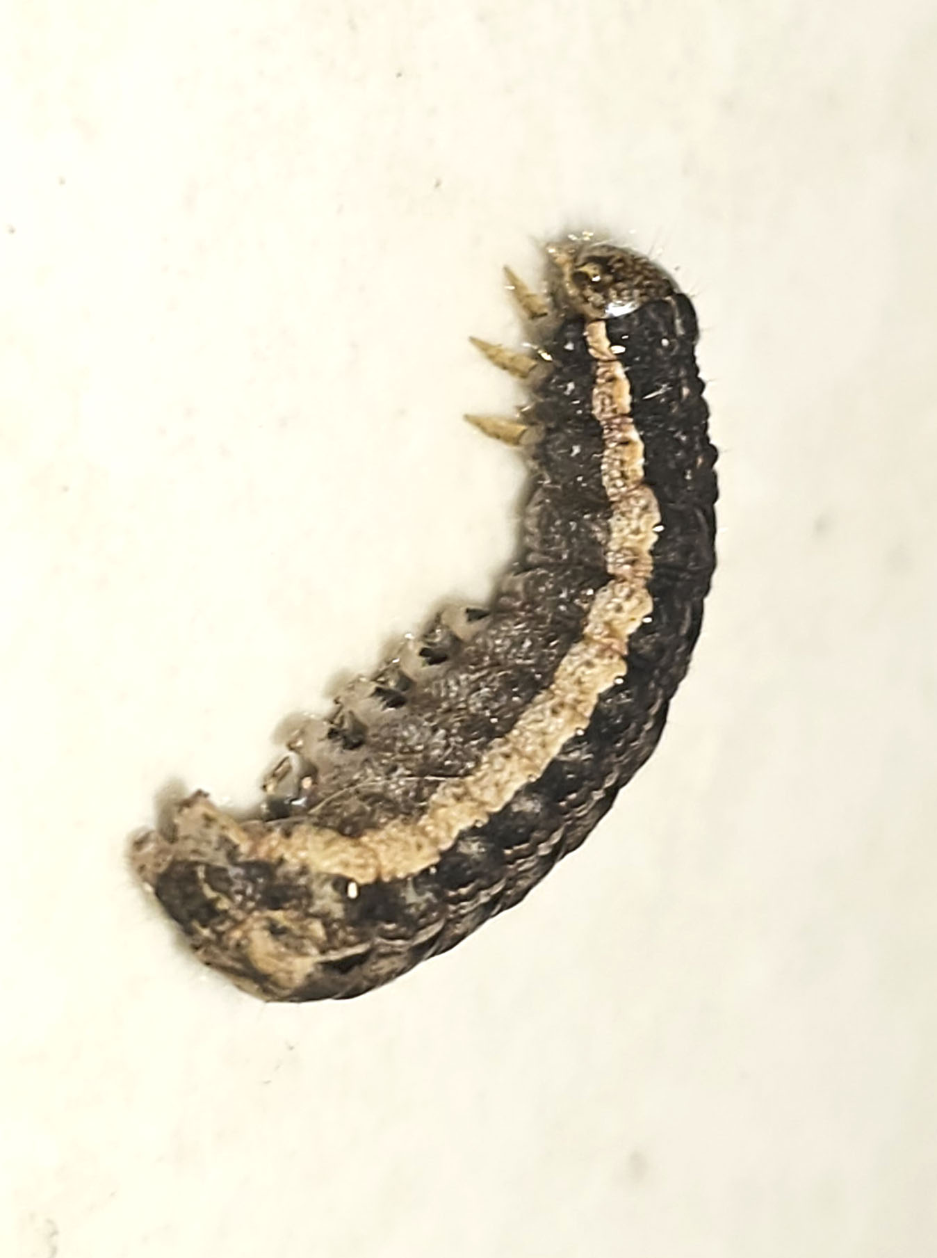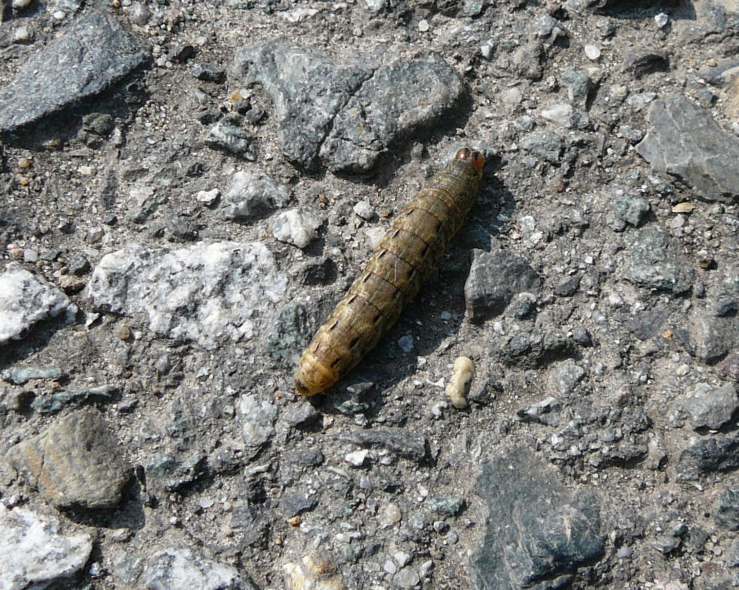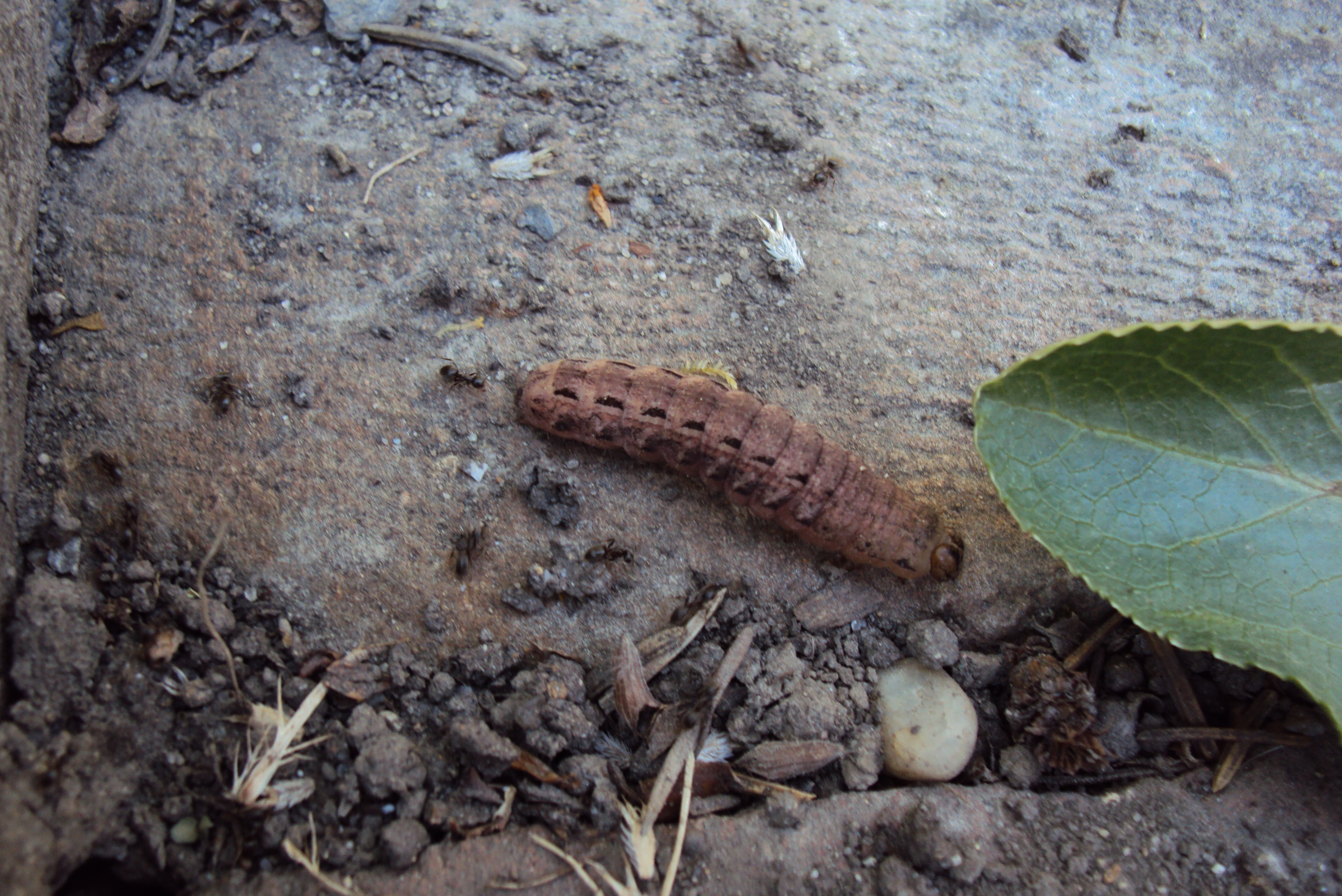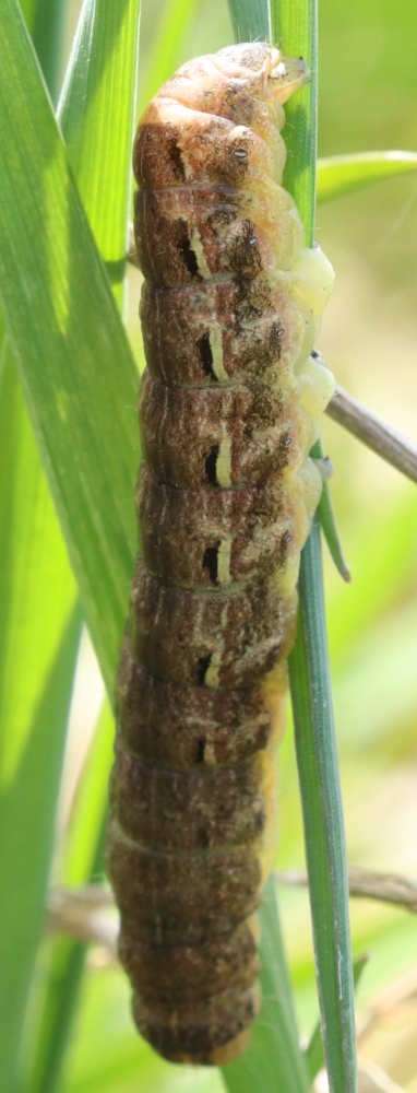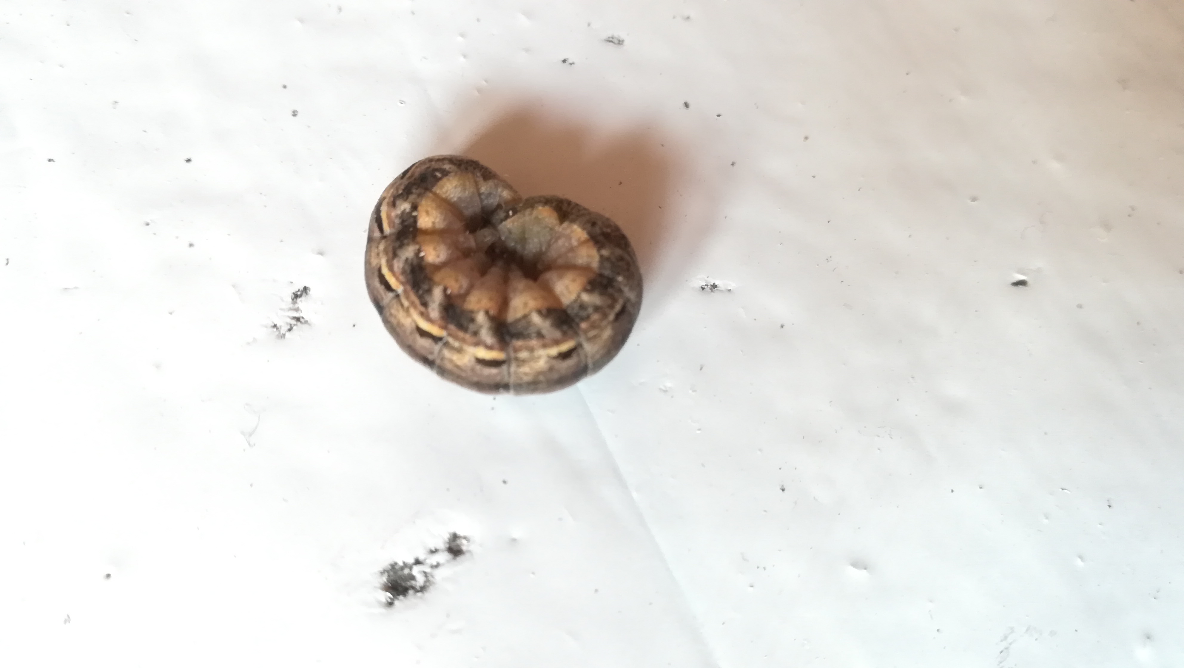 Hausmutter (Noctua pronuba (Linnaeus, 1758)), Larve (grüne Form), die sich frei bewegte, Radeberg, Dezember 2015.