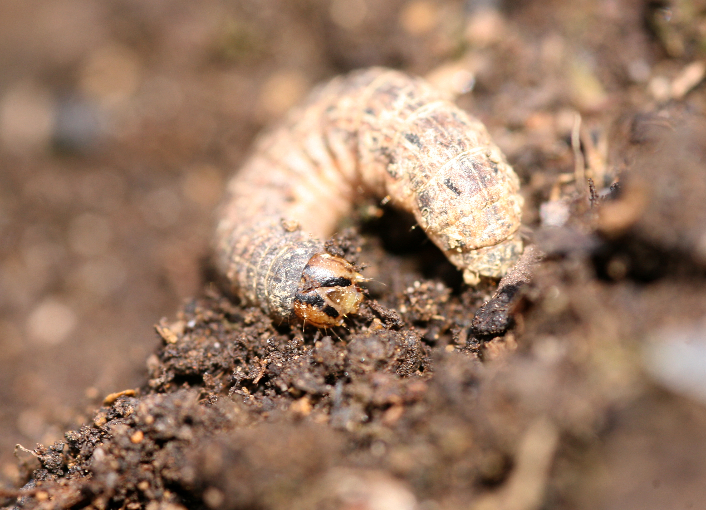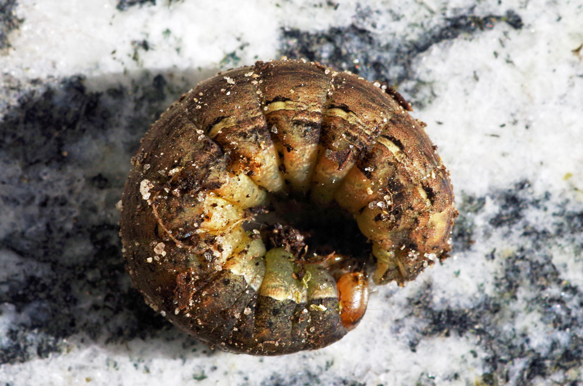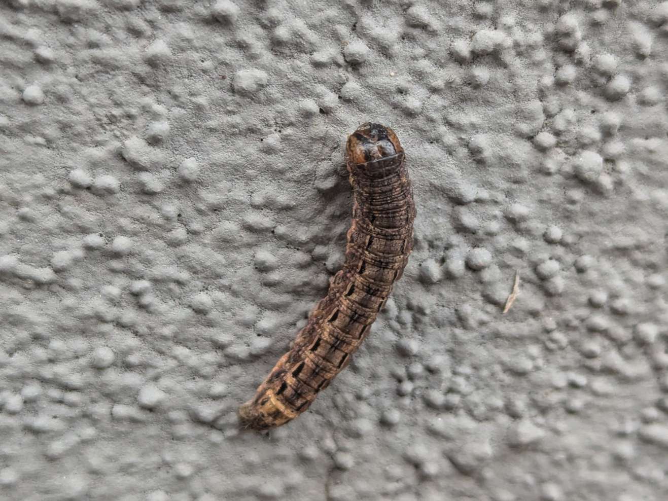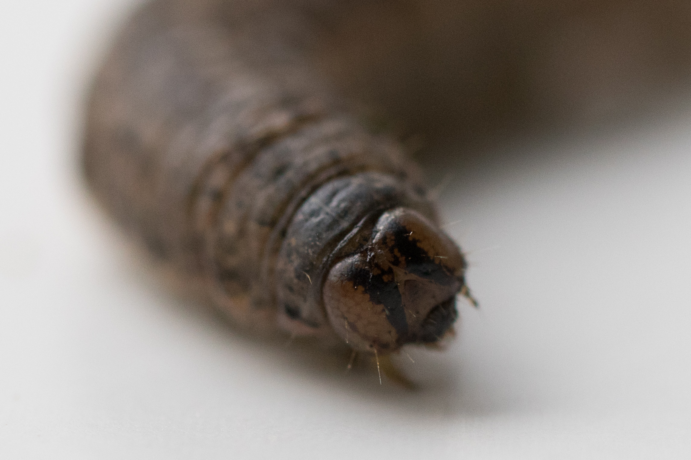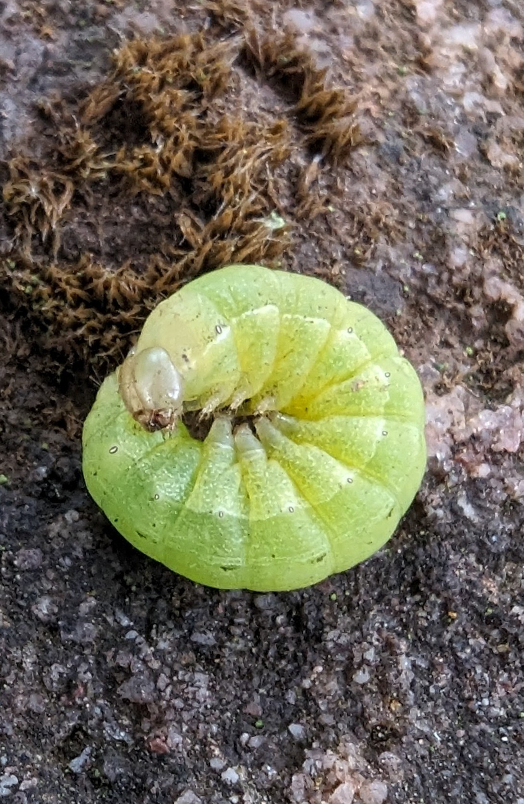 Hausmutter (Noctua pronuba (Linnaeus, 1758)), Larve (grüne Form), die sich frei bewegte, Radeberg, Dezember 2015.