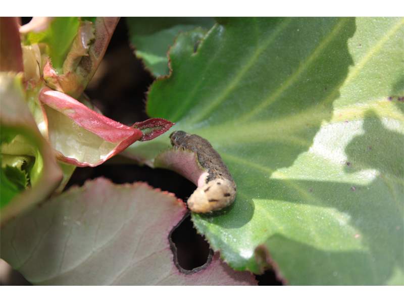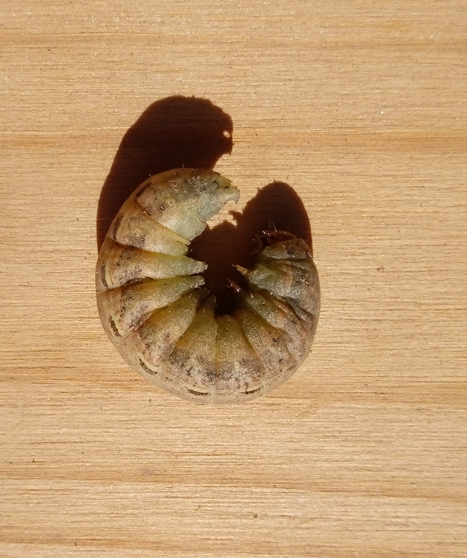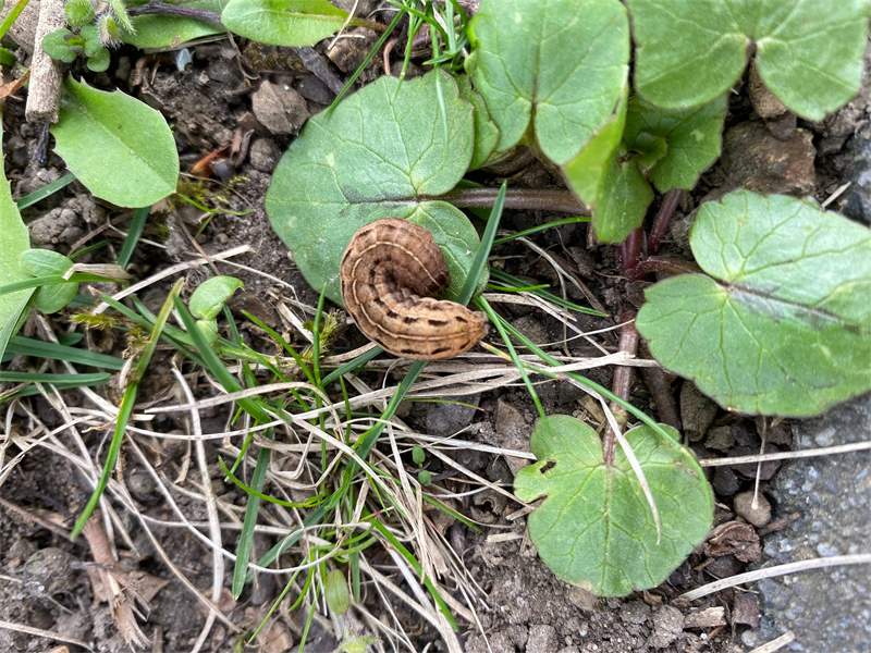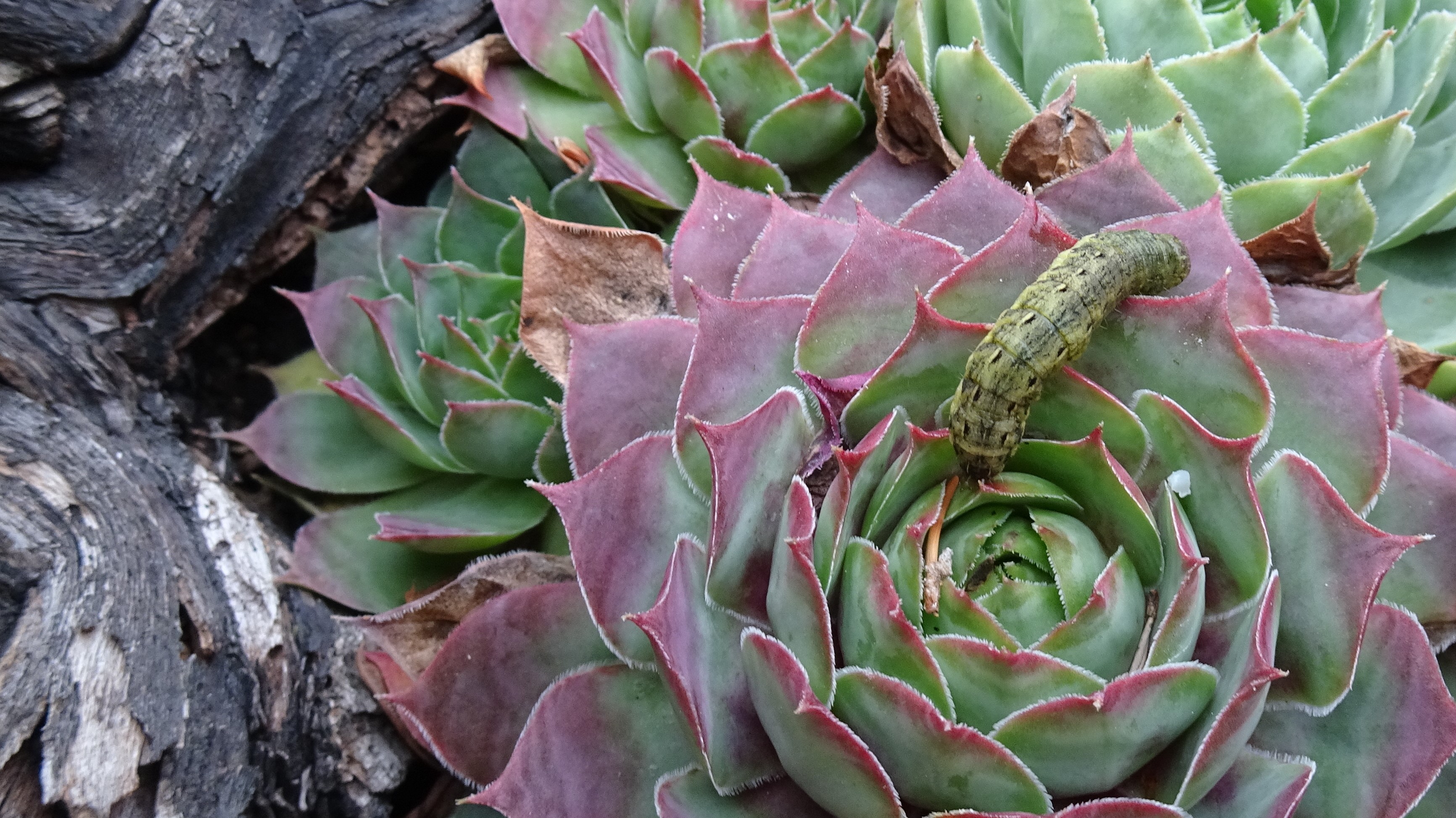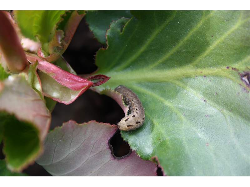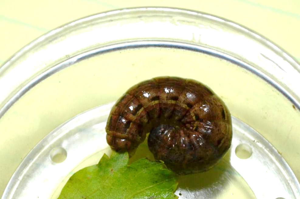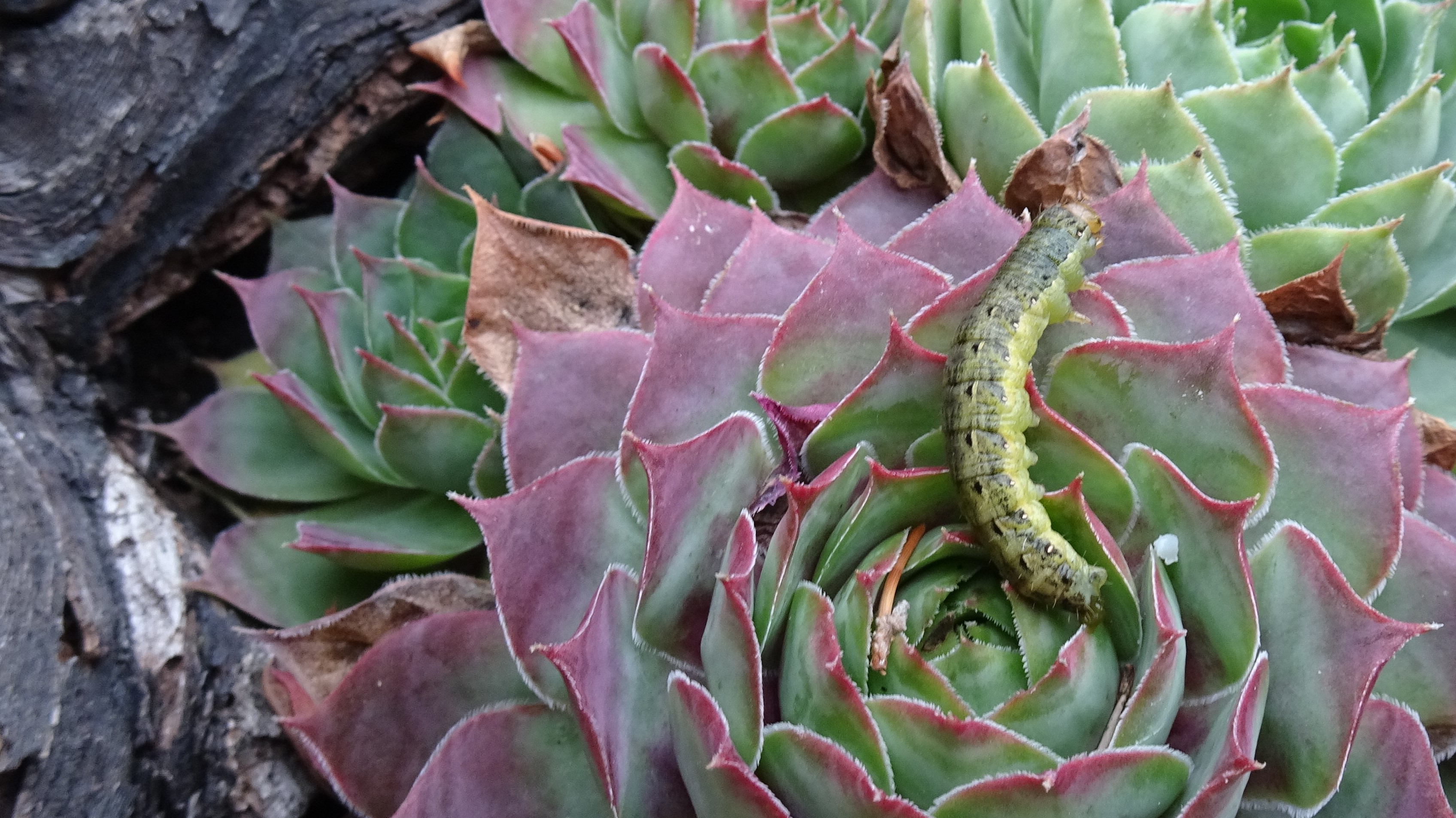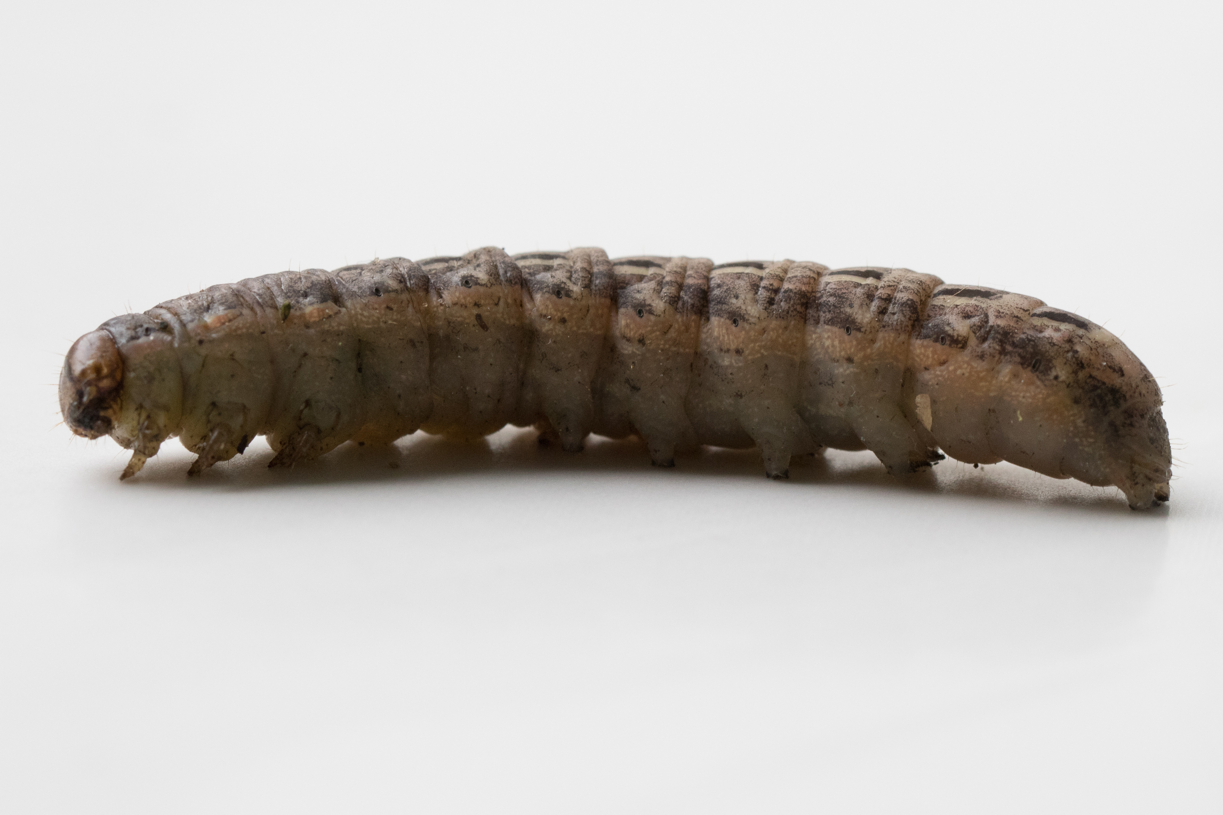 Hausmutter (Noctua pronuba (Linnaeus, 1758)), Larve (grüne Form), die sich frei bewegte, Radeberg, Dezember 2015.