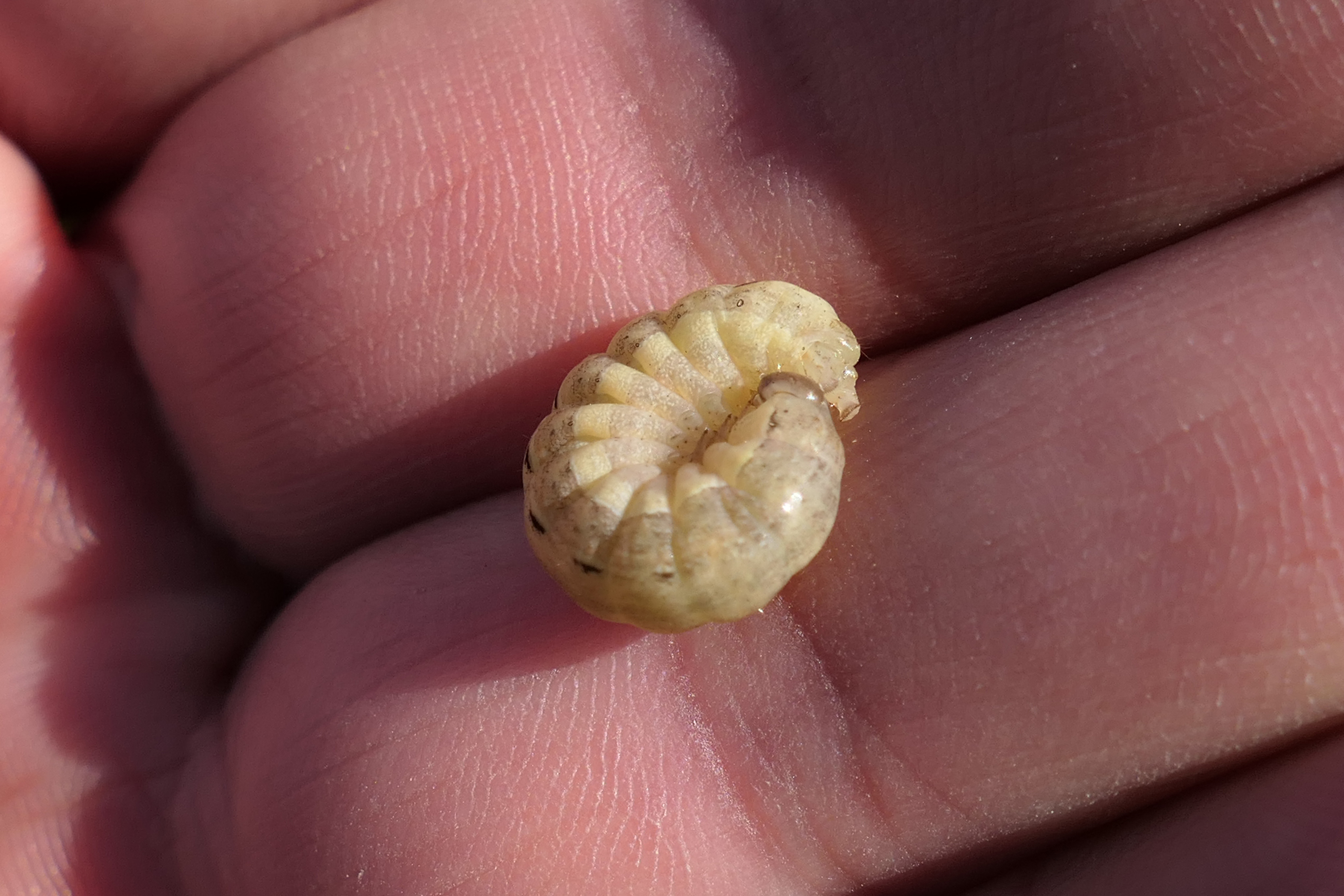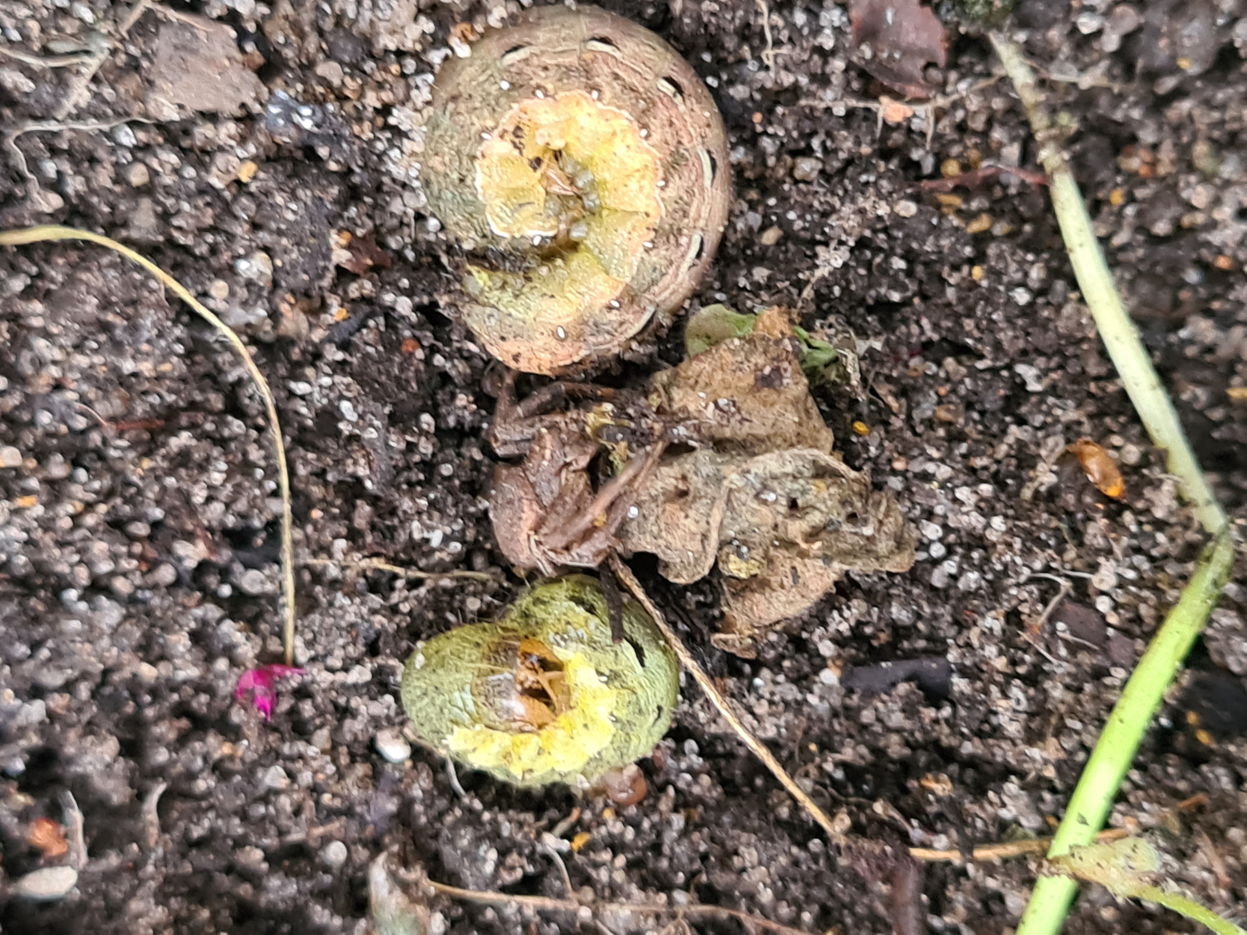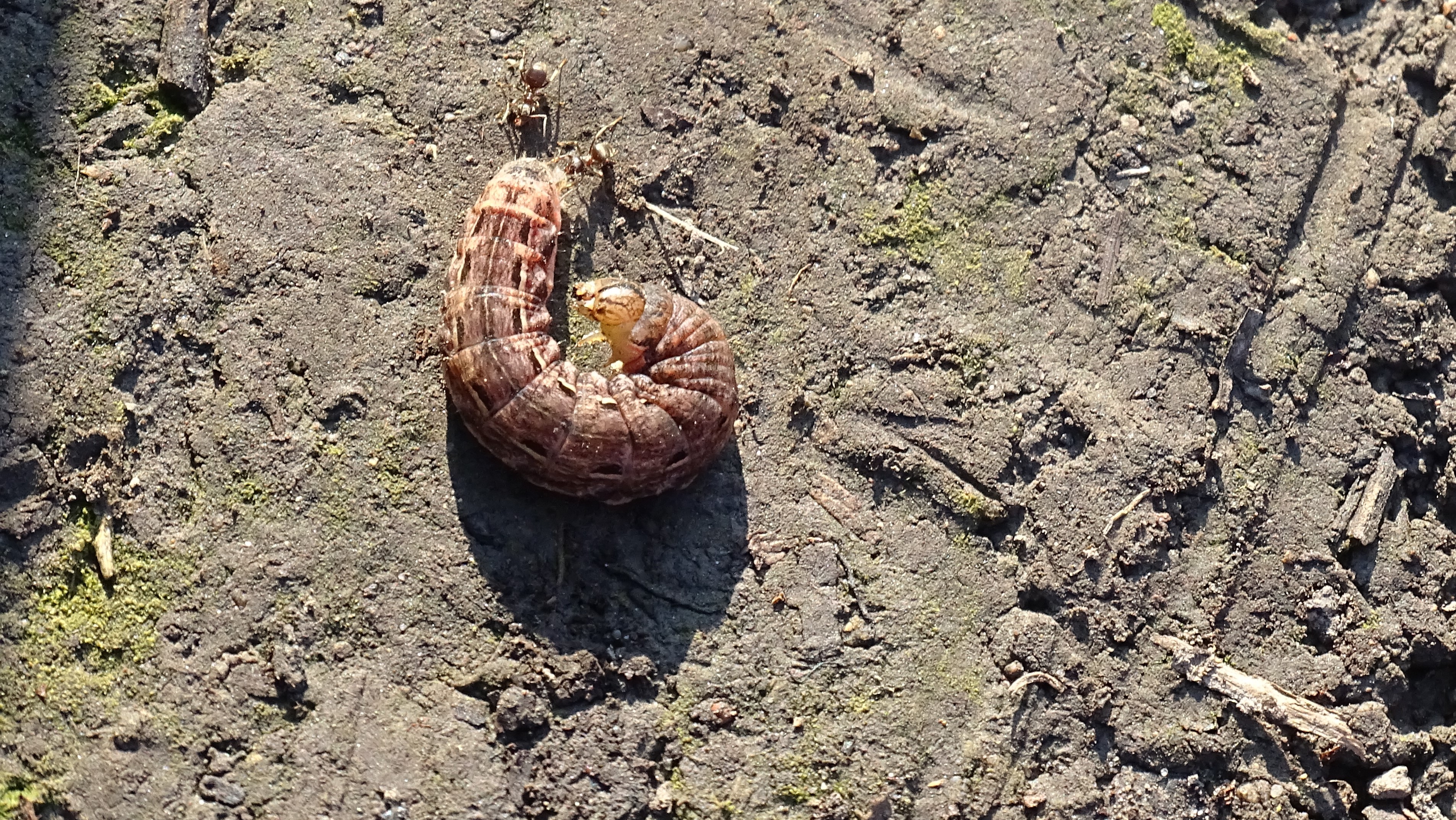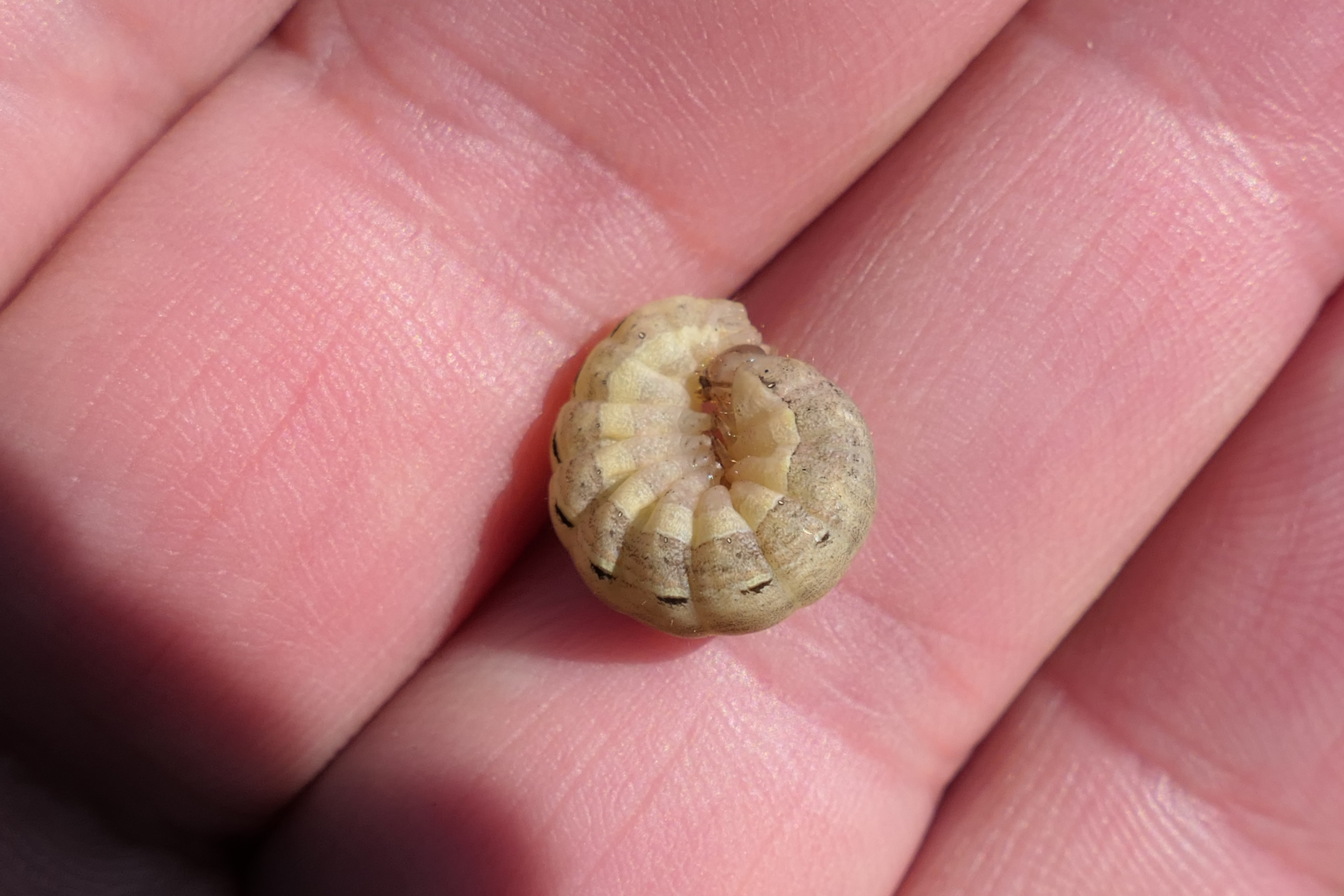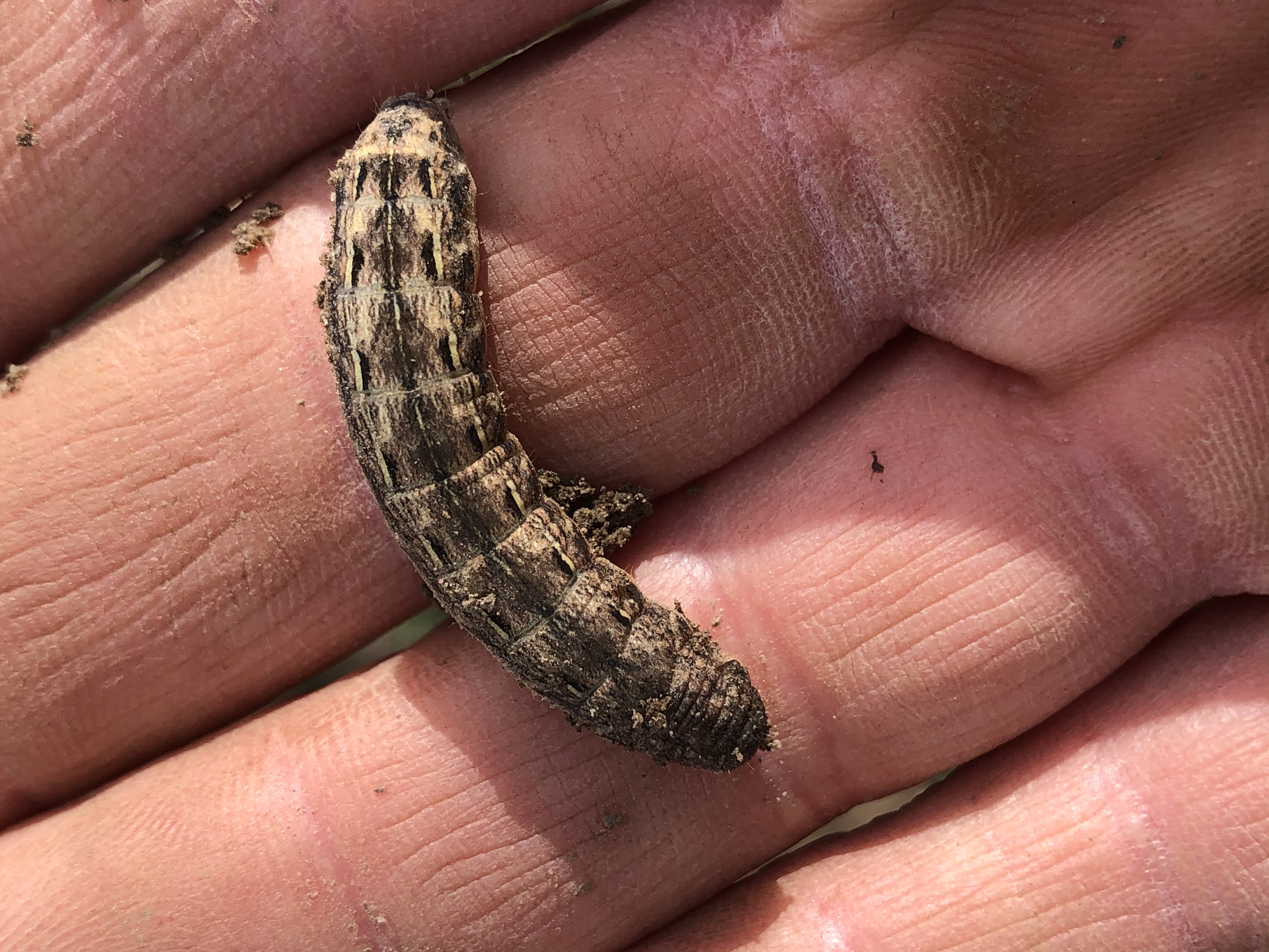 Hausmutter (Noctua pronuba (Linnaeus, 1758)), Larve (grüne Form), die sich frei bewegte, Radeberg, Dezember 2015.