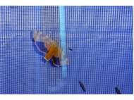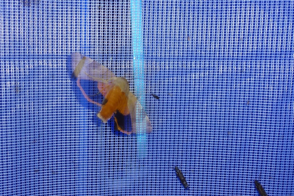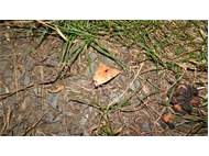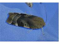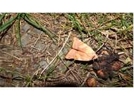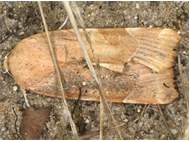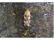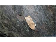 Fledermausfraßplatz mit Überresten von 38 Tag- und Nachtfalterarten, darunter auch N. fimbriata, Neustadt in Sachsen, Januar 2015