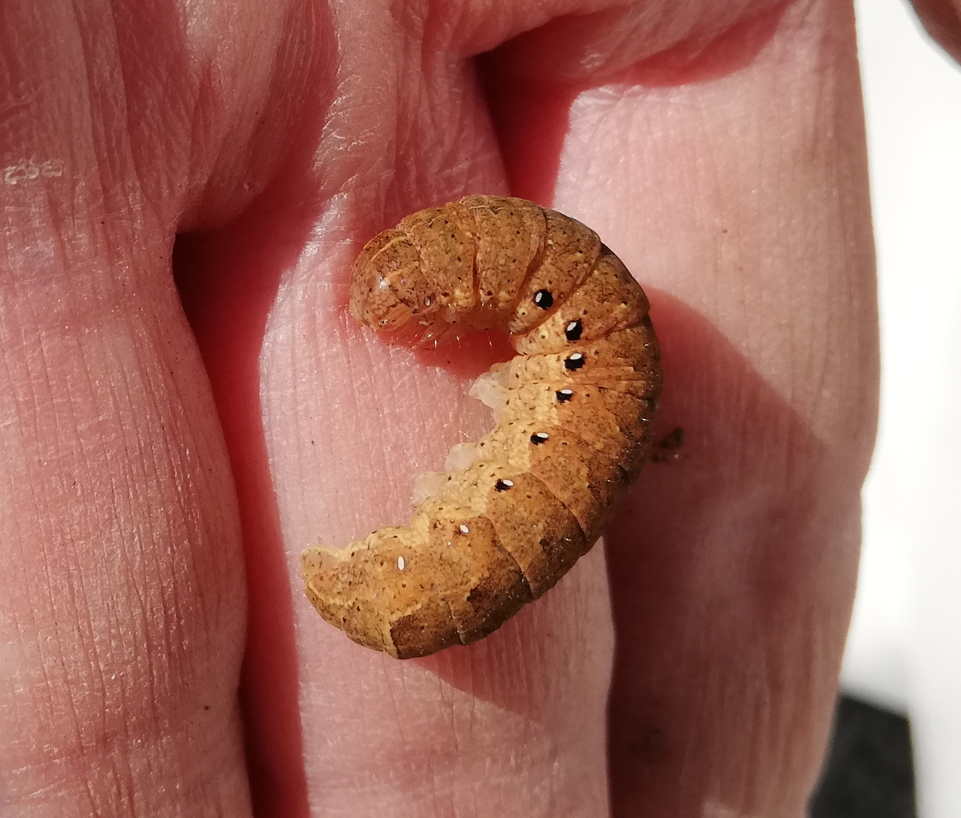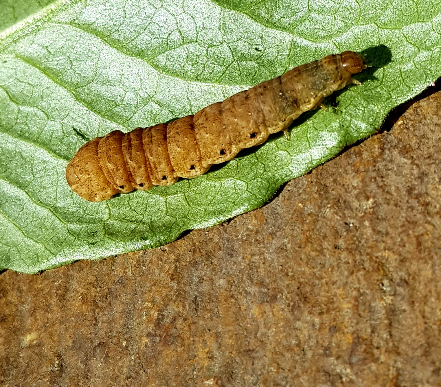 Raupe der Gelben Bandeule (Noctua fimbriata (Schreber, 1759)) in Dresden-Weixdorf, 19.04.2020