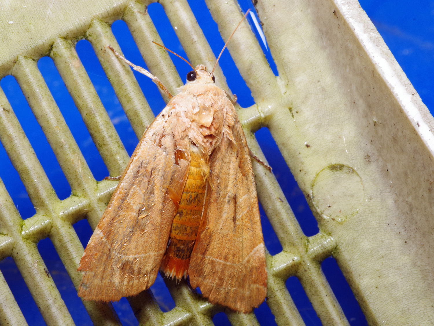Gelbe Bandeule im August 2015, Nachts bei Kunstlicht, Radeberg