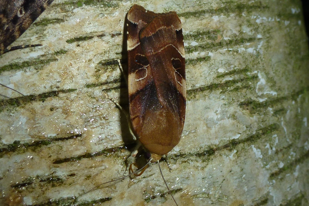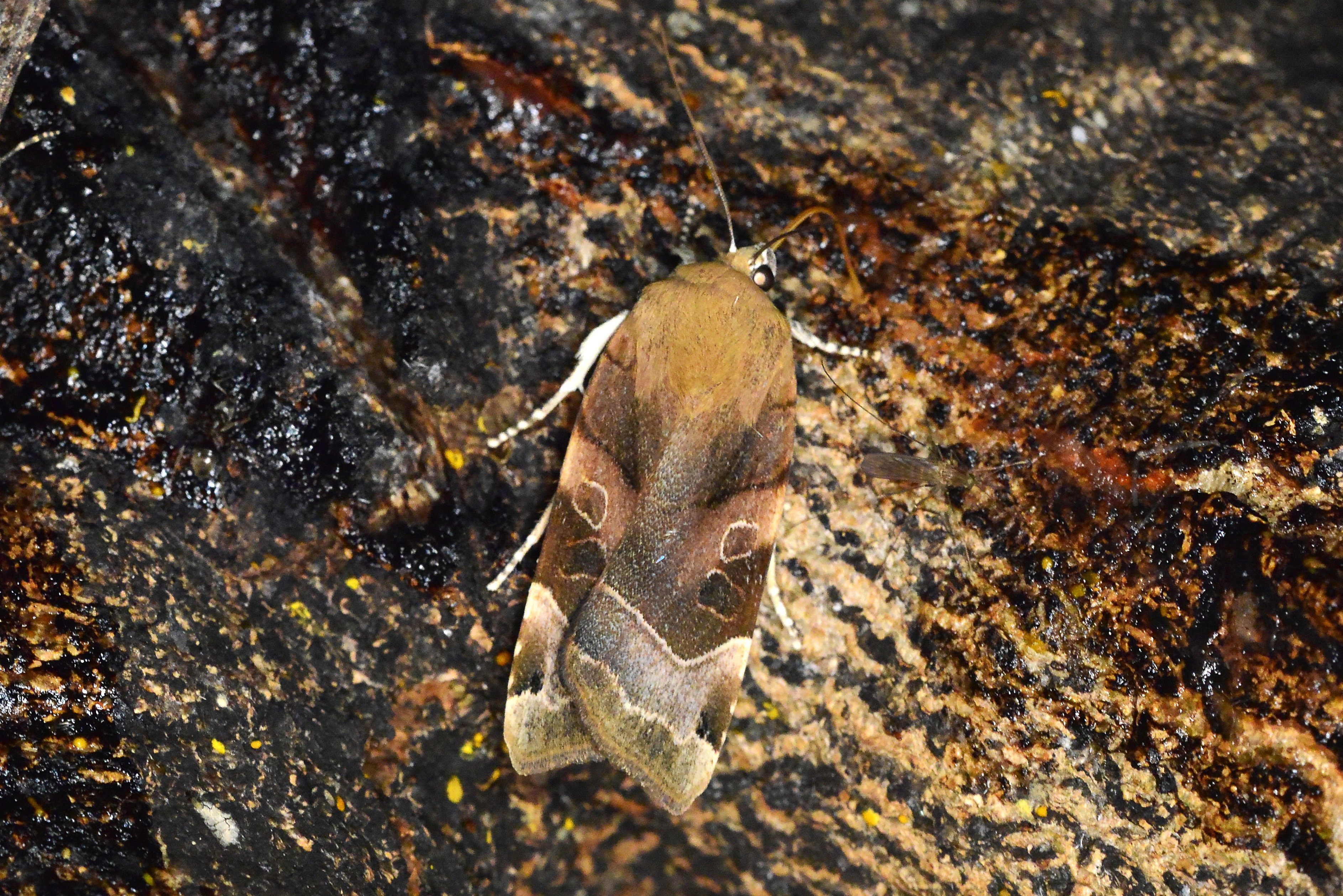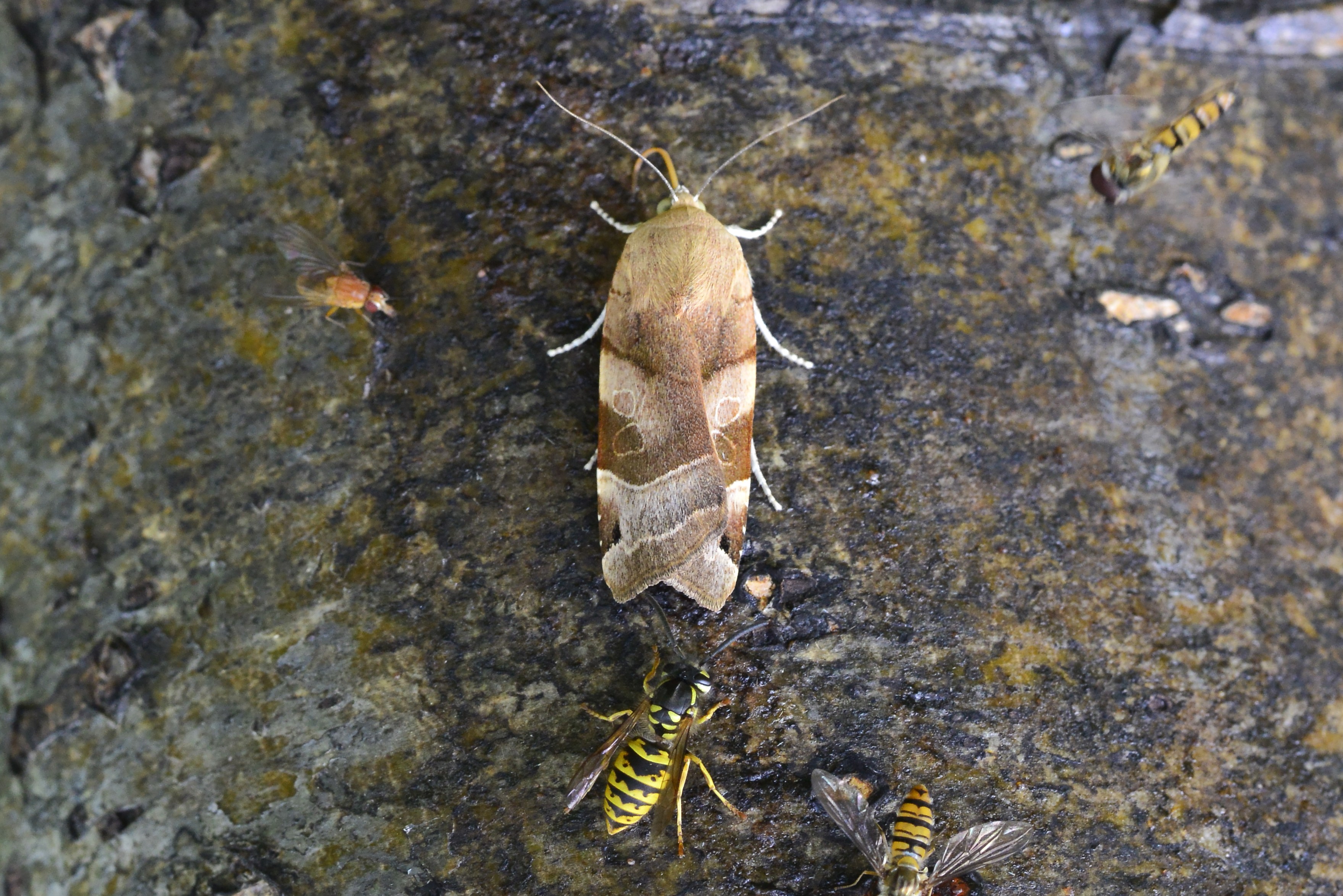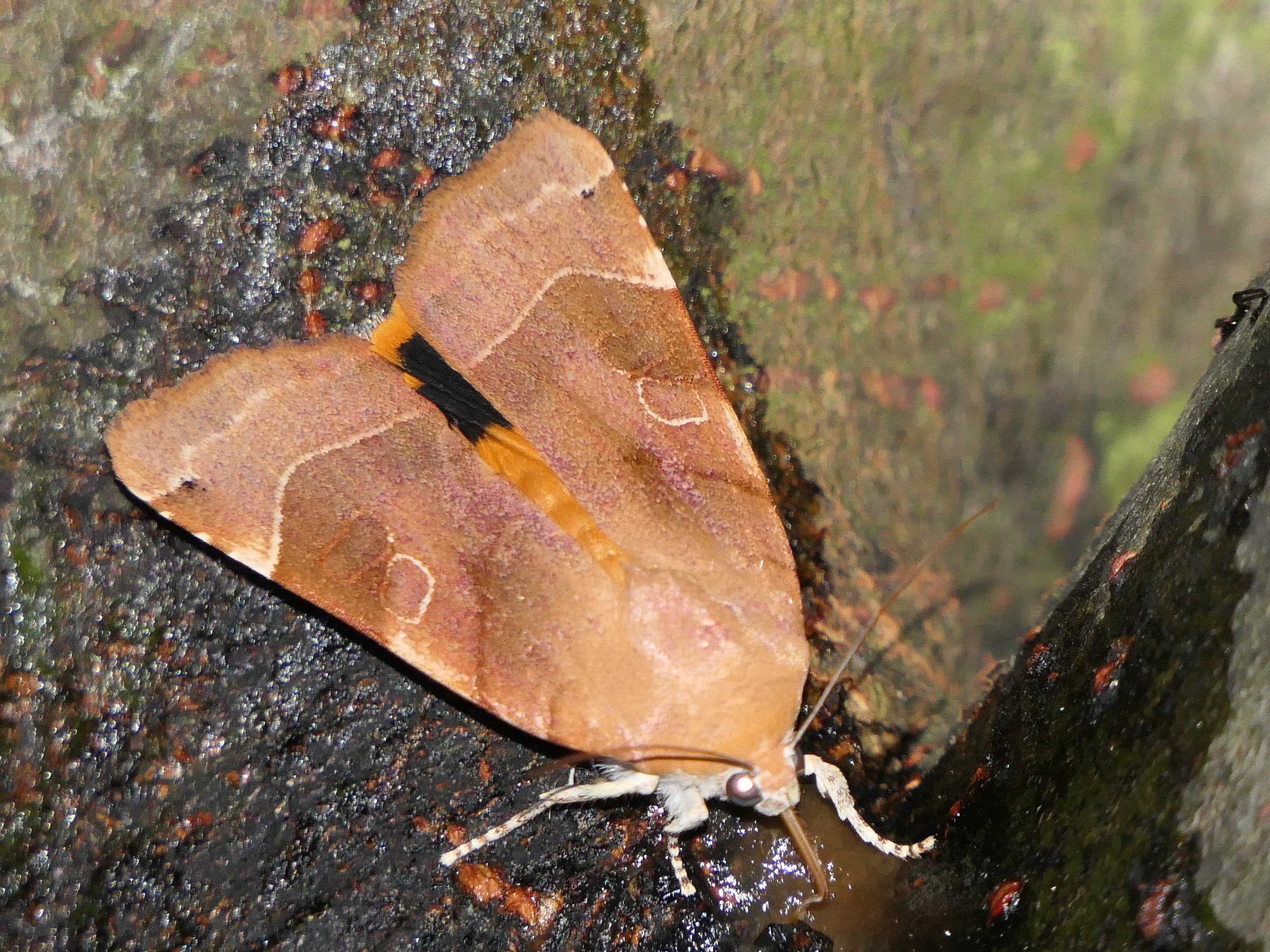 Gelbe Bandeule (Noctua fimbriata (Schreber, 1759)) am Köder südlich von Radeberg am Karswald, 24.08.2019