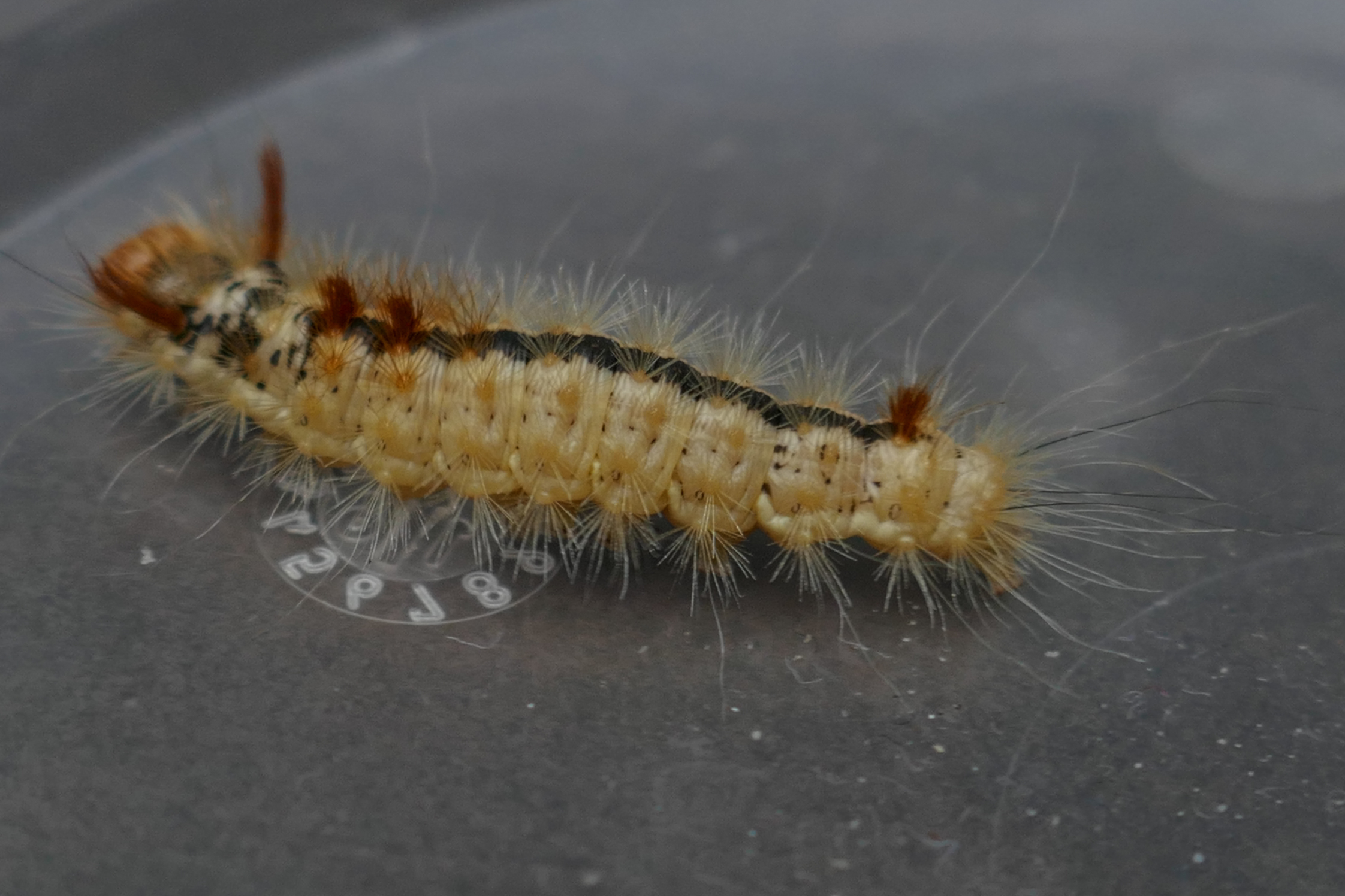 Raupe im vorvorletzten Stadium, gezüchtet aus einem Ei, das am 11.05.2015 in Dresden-Klotzsche gefunden wurde
