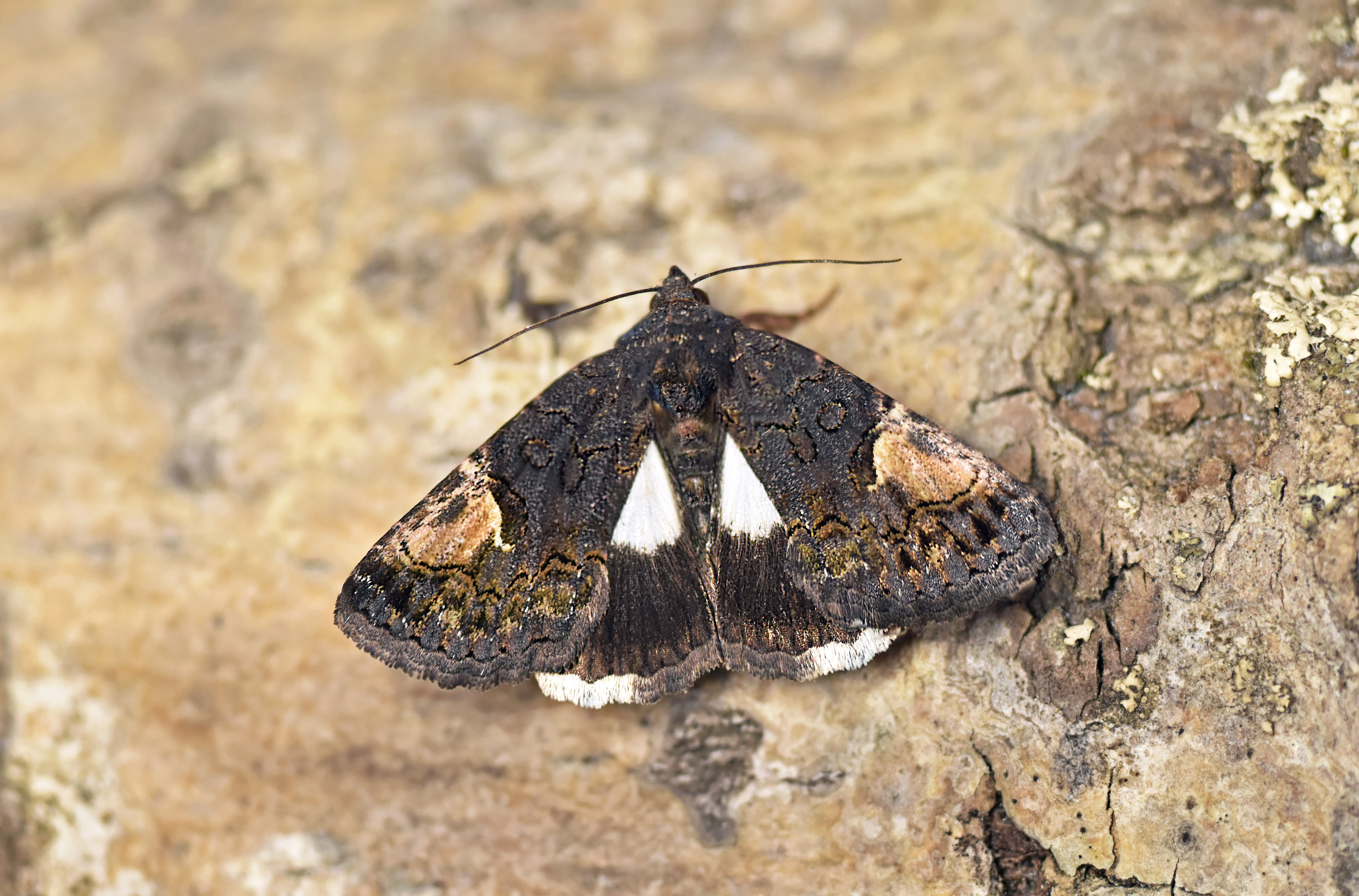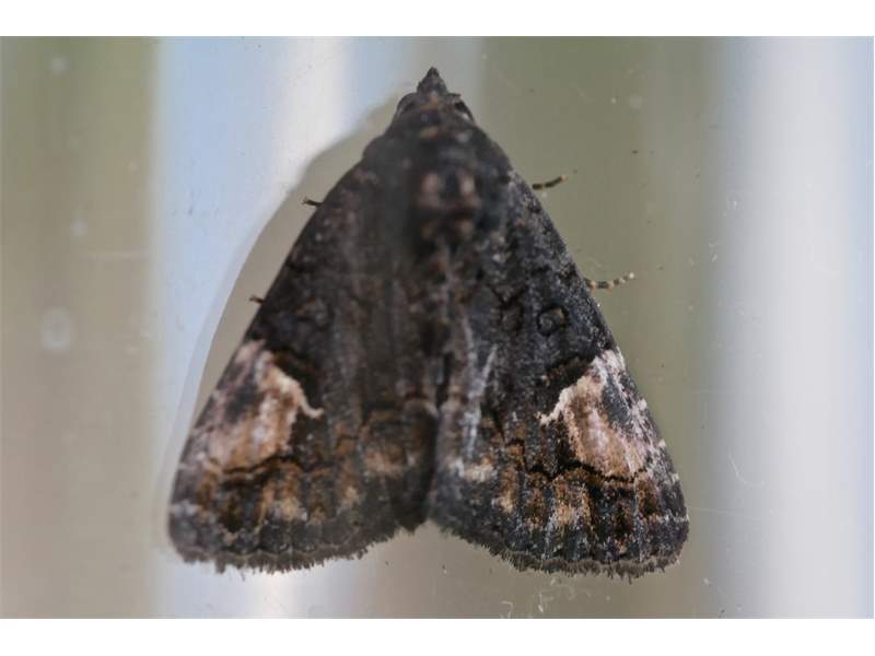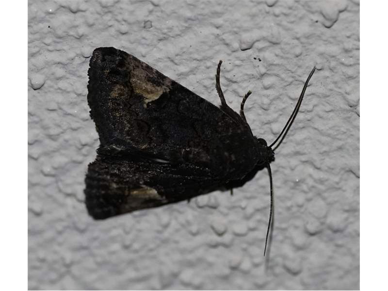 Trauereule (Aedia funesta (Esper, 1786), frisch geschlüpftes Exemplar, aufgenommen am 18.06.2018 im Hausgarten in Hoyerswerda.