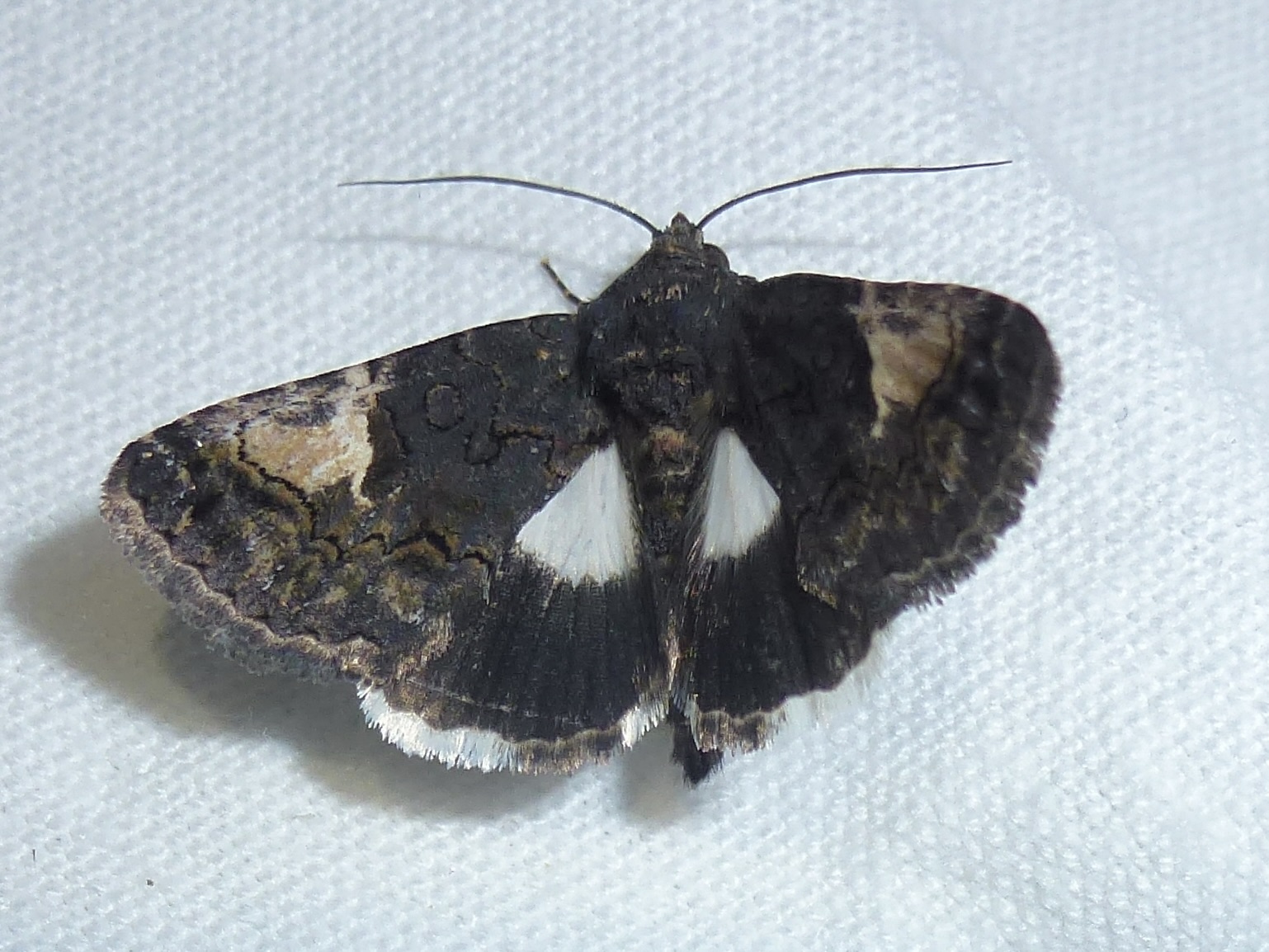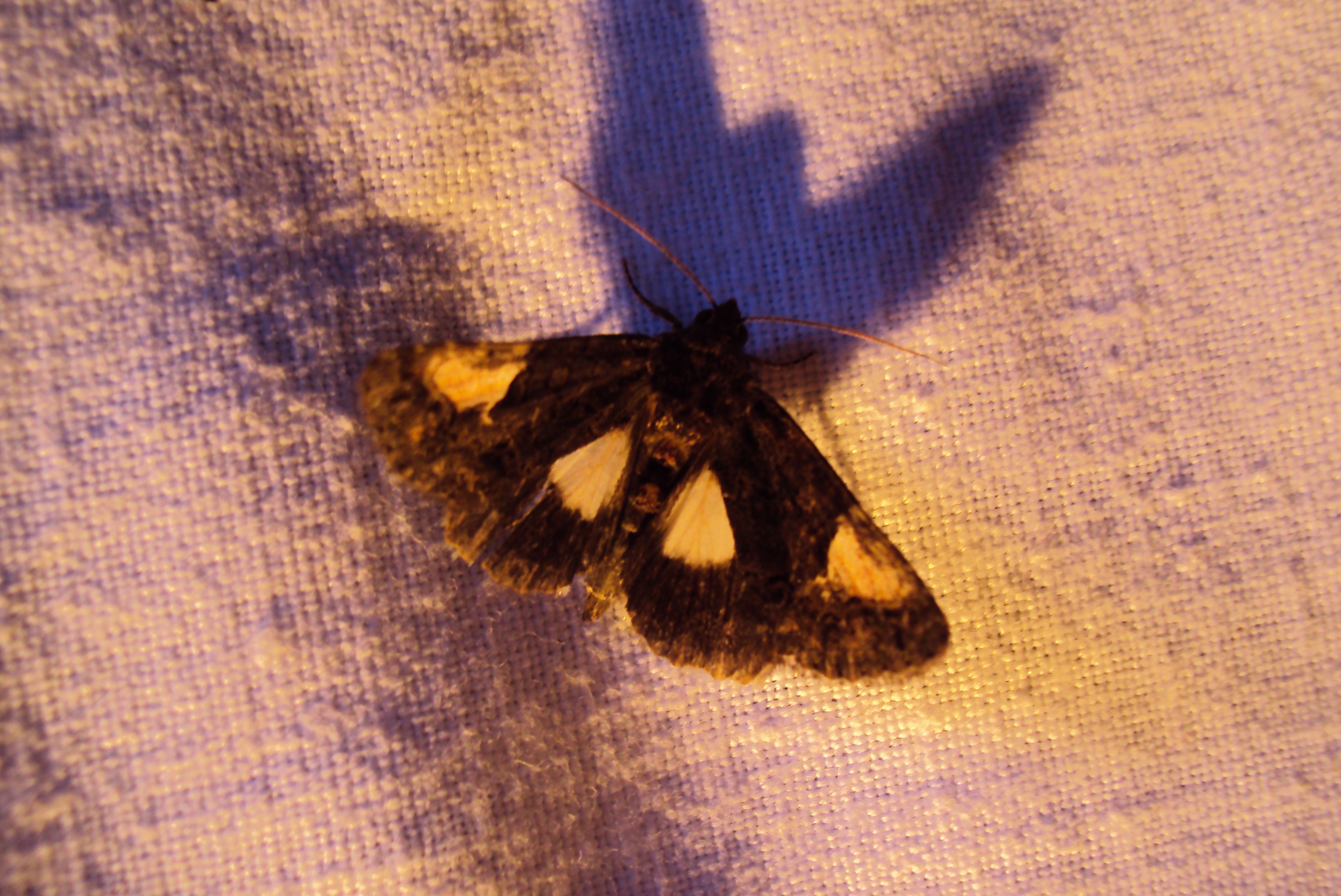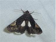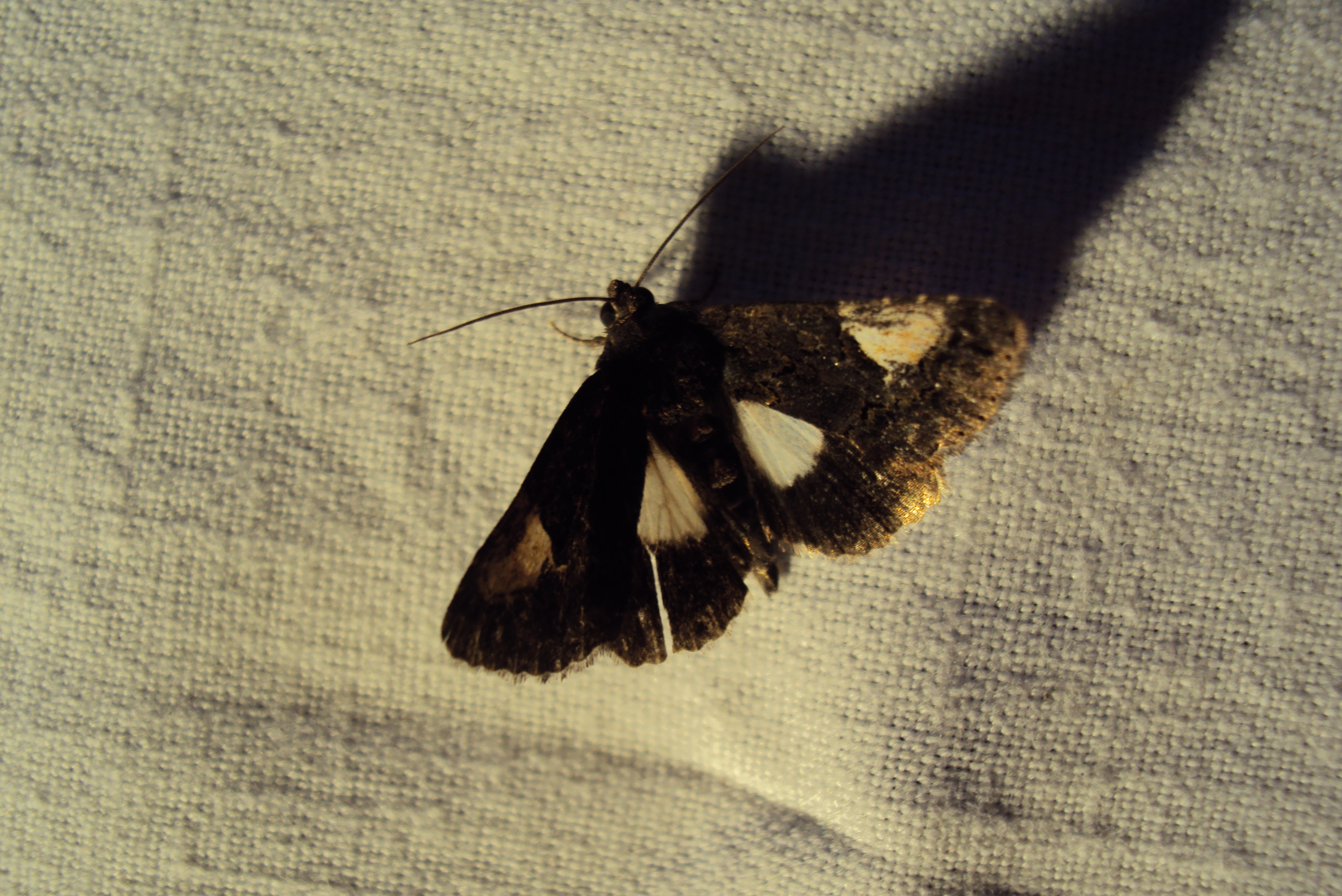 Trauereule (Aedia funesta (Esper, 1786)) Lichtfang, Gartenanlage in Dresden-Mockritz, 03.08.2014