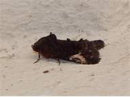 Männchen von Aedia funesta an einer Hauswand ruhend. 14.07.2013