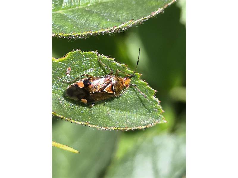 Larve 5.Stadium von Deraeocoris flavilinea, Uhldingen-Mühlhofen, Ortsteil Oberuhldingen, Erlenwäldchen östlich Schnellstraße B31 (Deutschland, Baden-Württemberg, Bodenseekreis), 16.06.2010 (© Michael Münch)( Bild vergrößern)