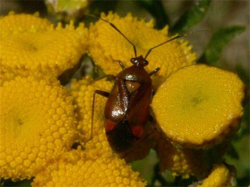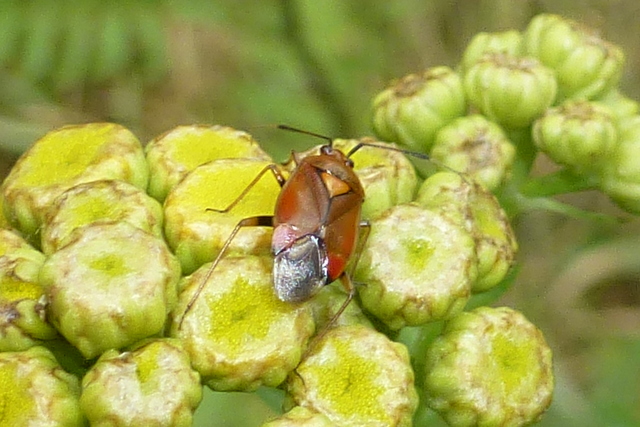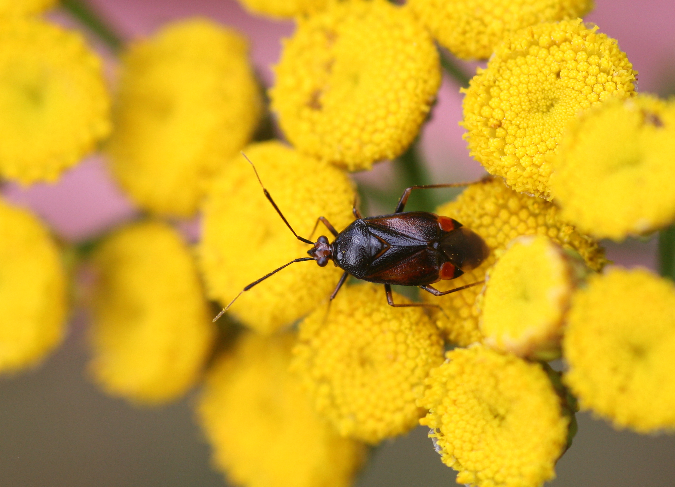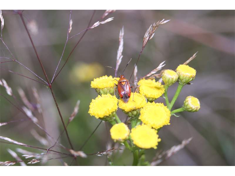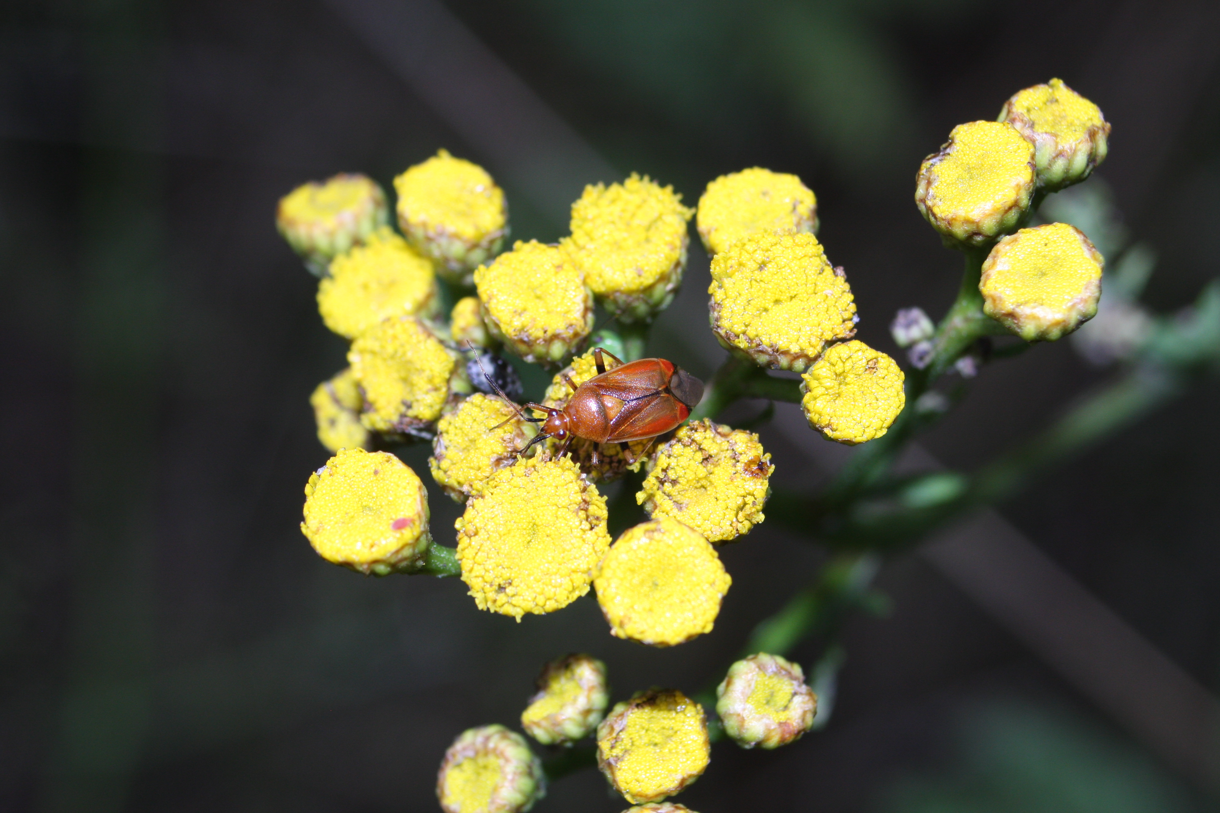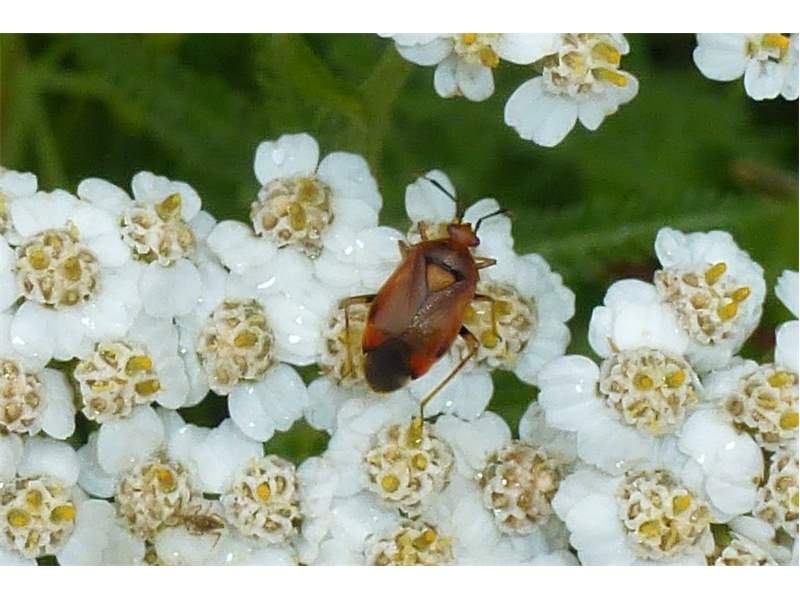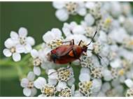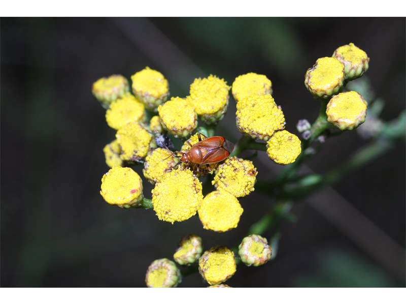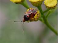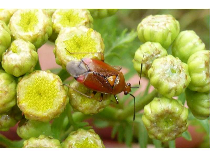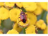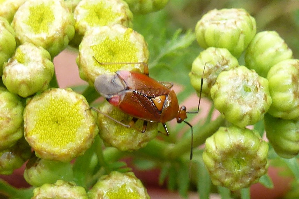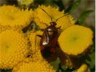 Rote Weichwanze auf Rainfarnblüten (Tanacetum vulgare). Radeberg, Juli 2008