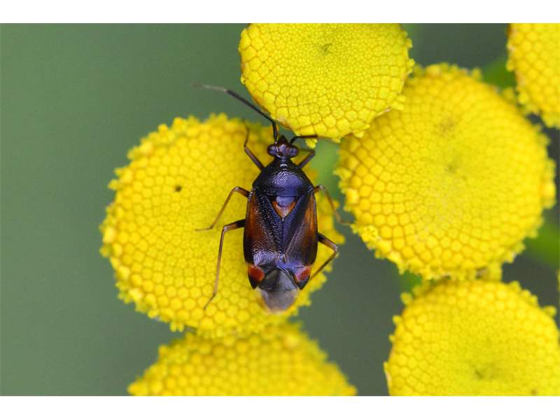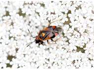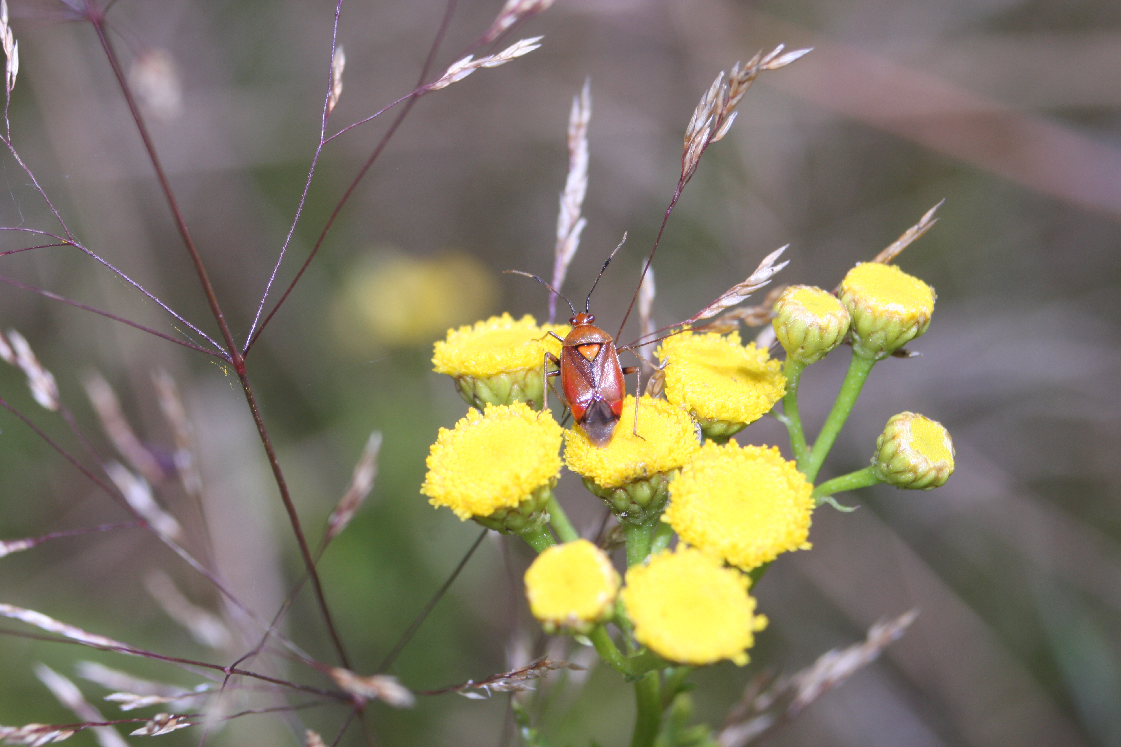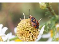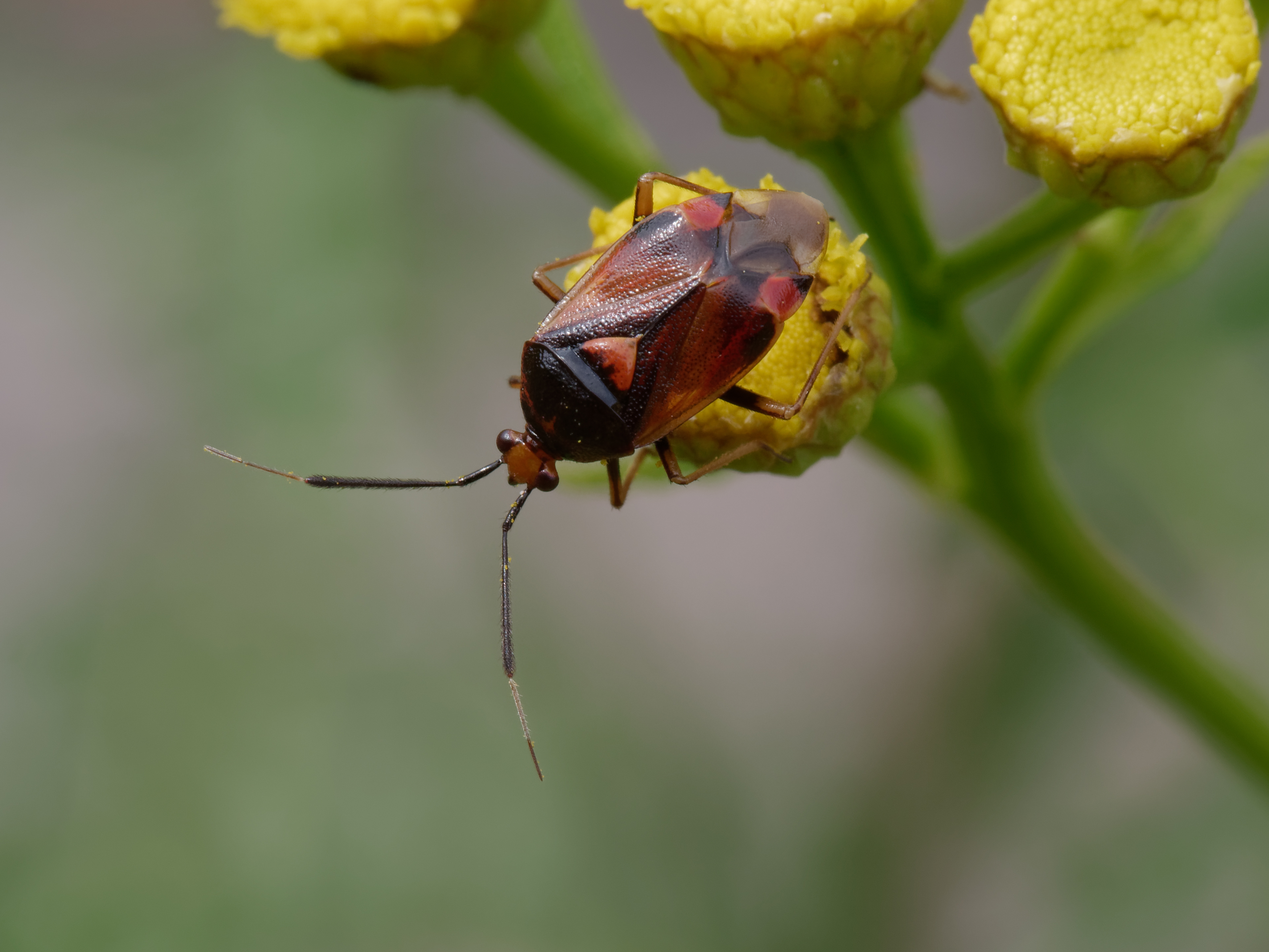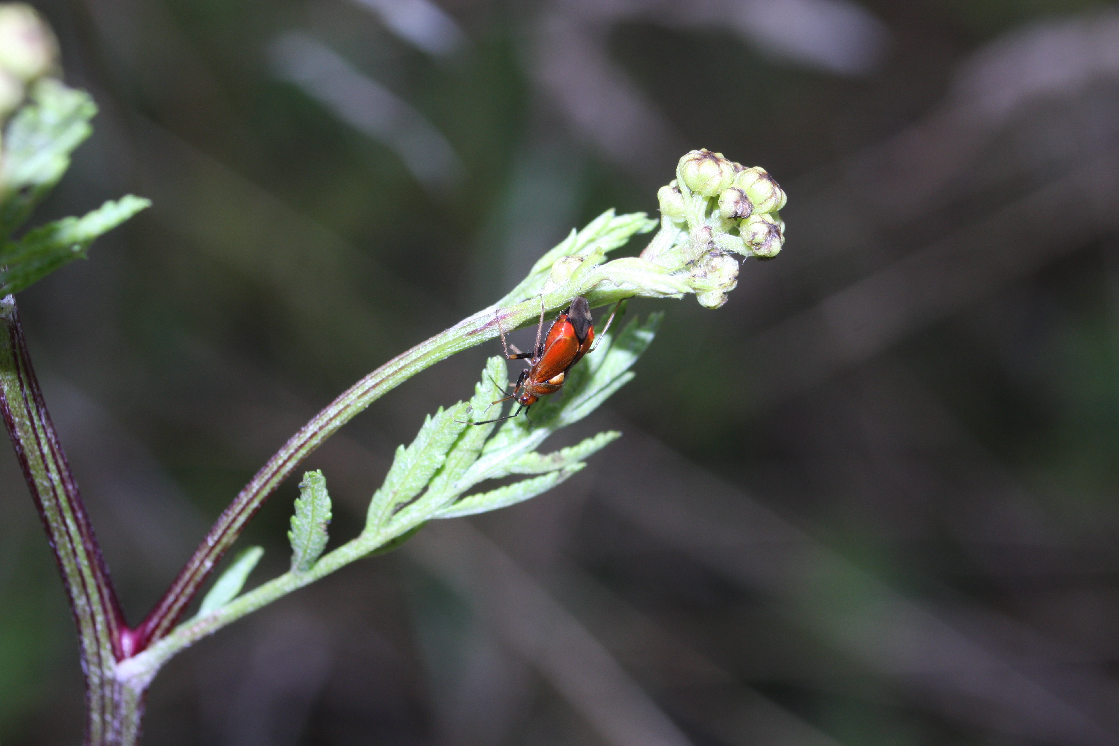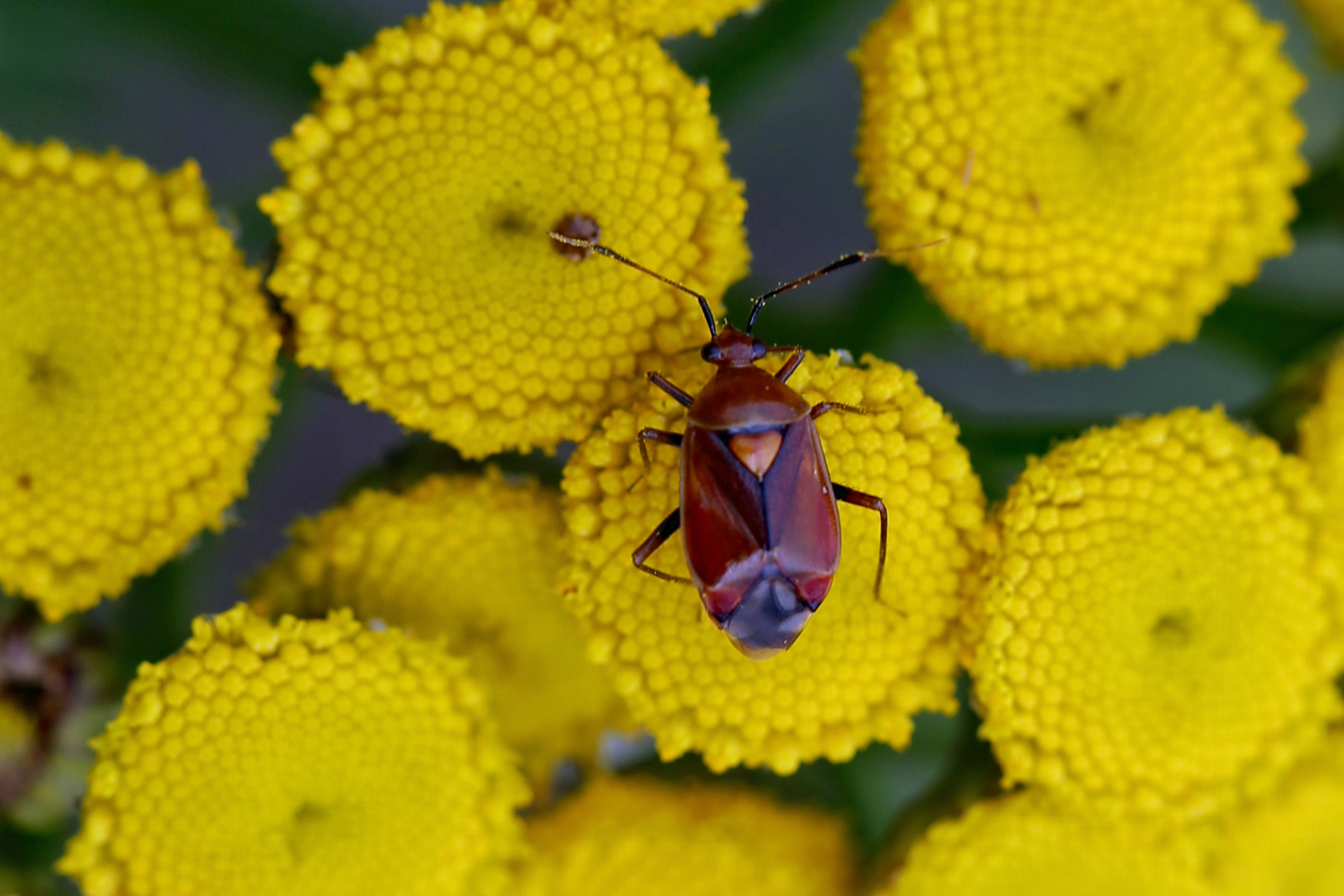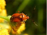 Rote Weichwanze auf Rainfarnblüten (Tanacetum vulgare). Radeberg, Juli 2008