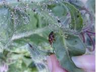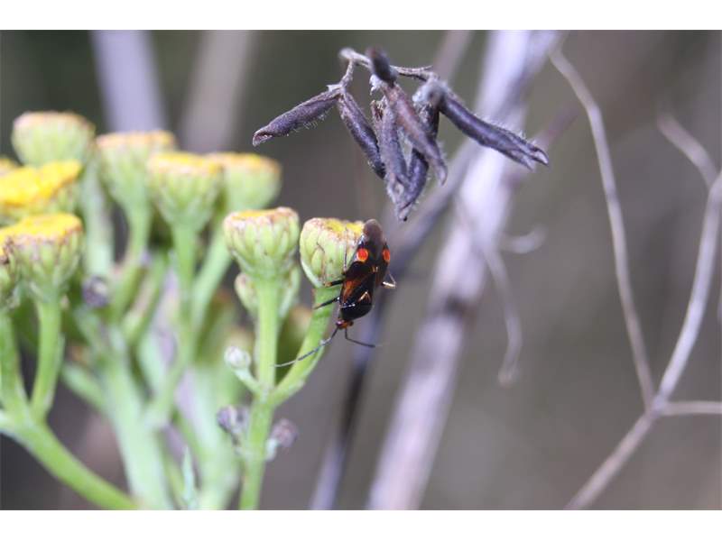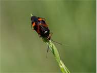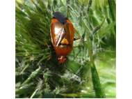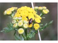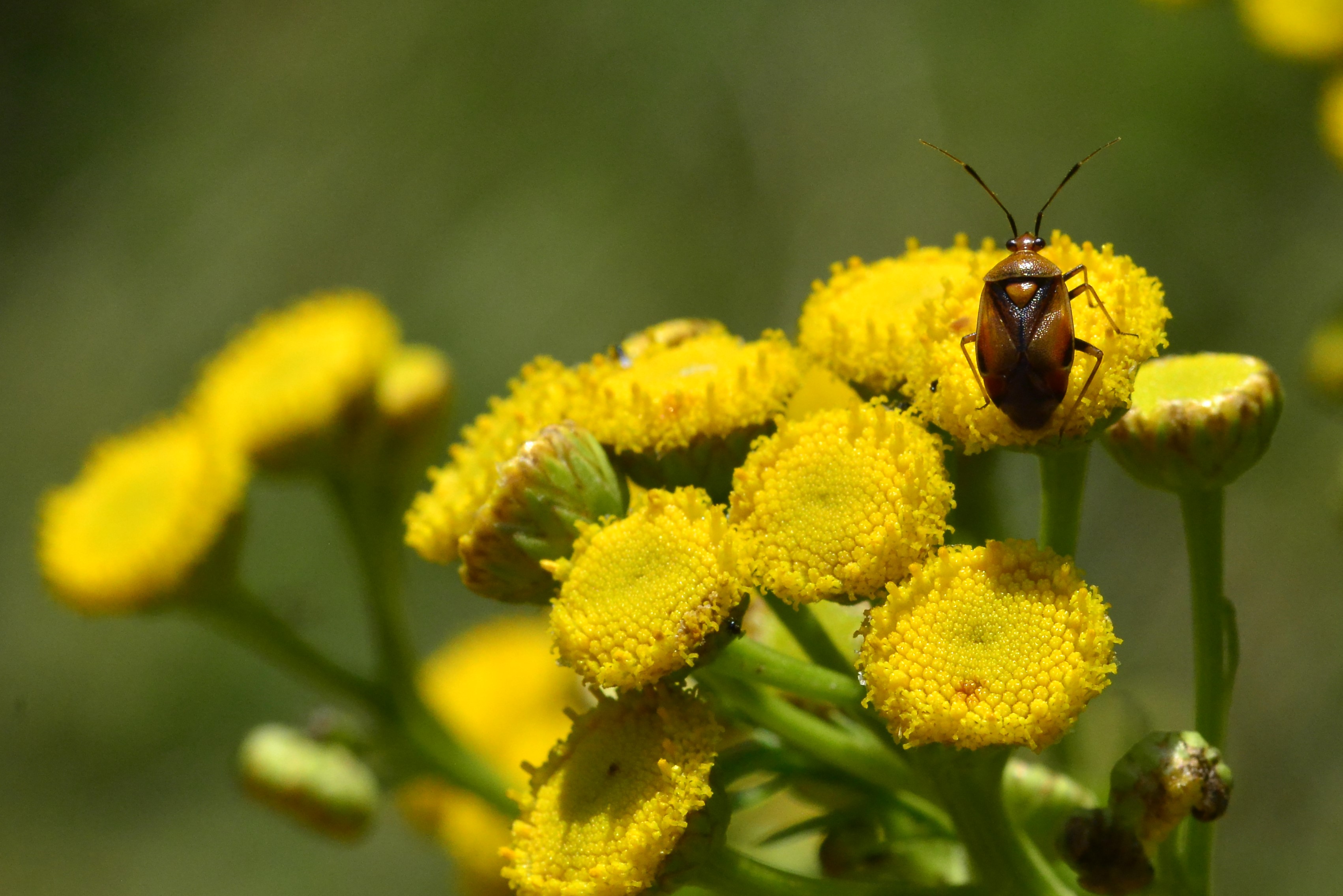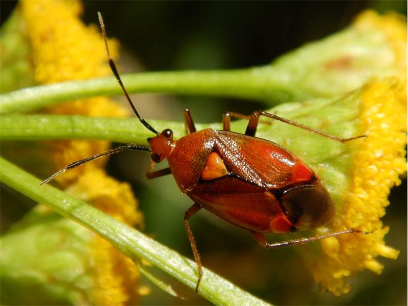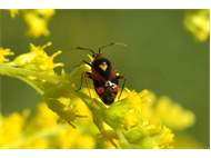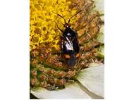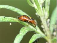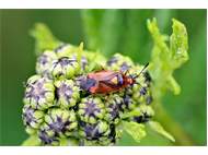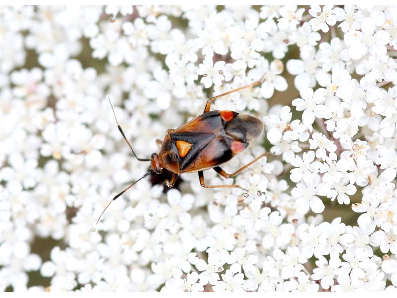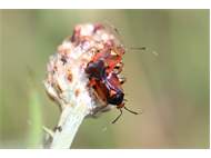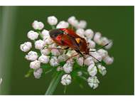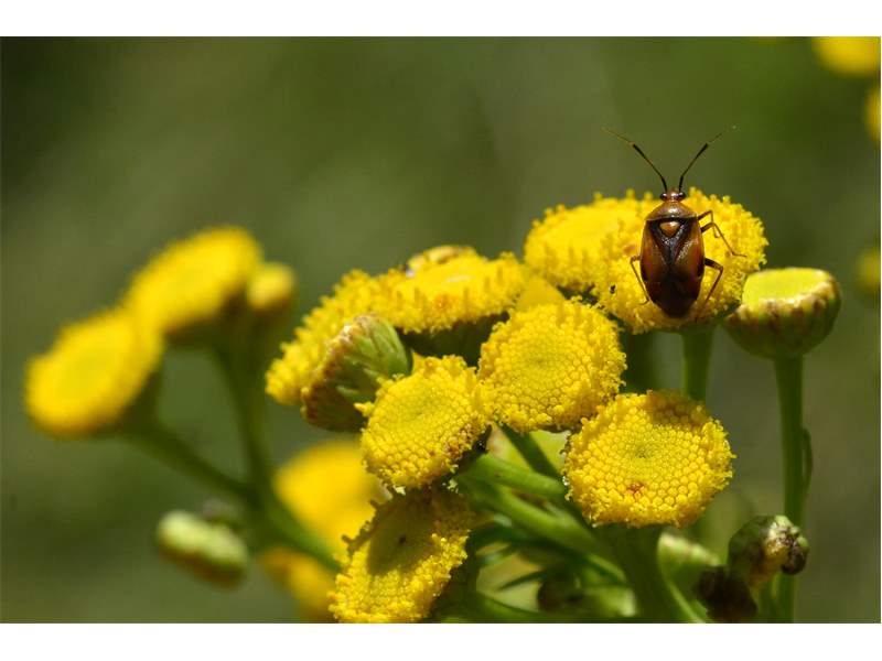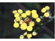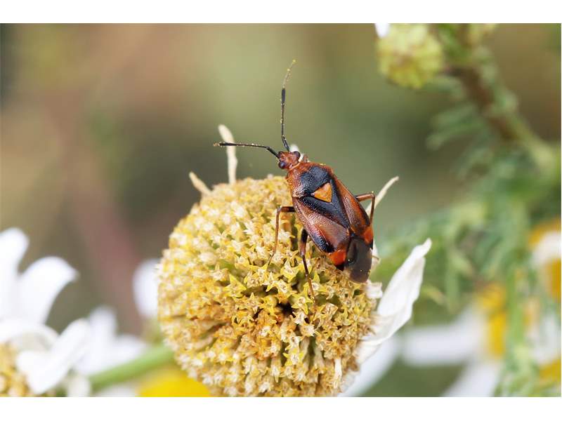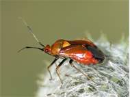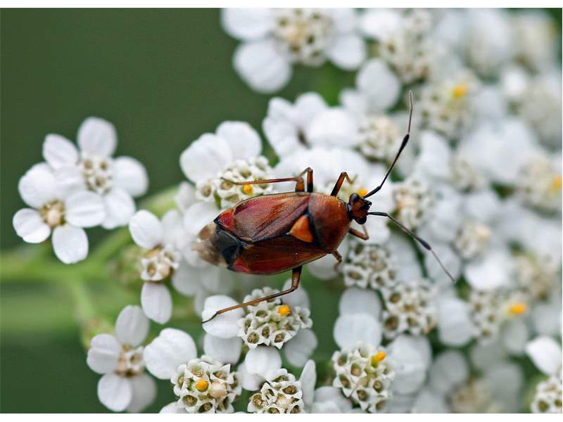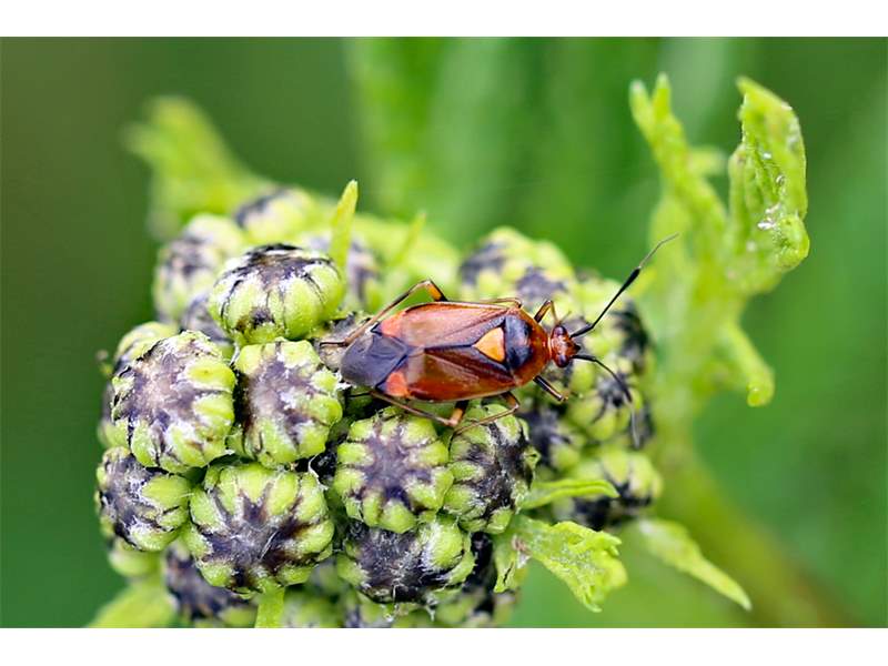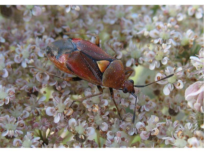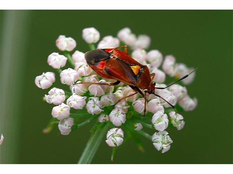 Rote Weichwanze auf Rainfarnblüten (Tanacetum vulgare). Radeberg, Juli 2008