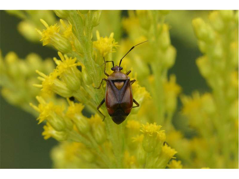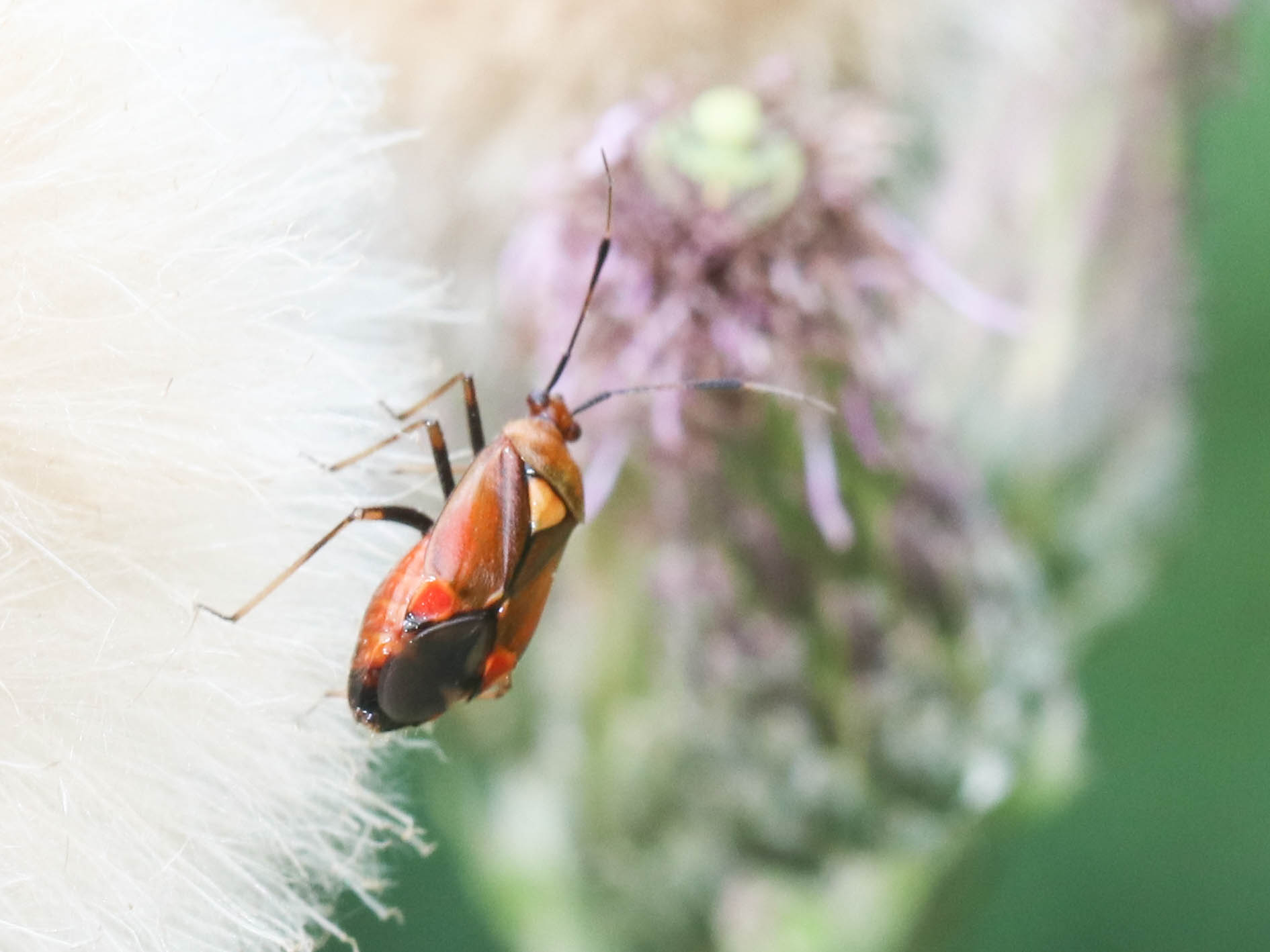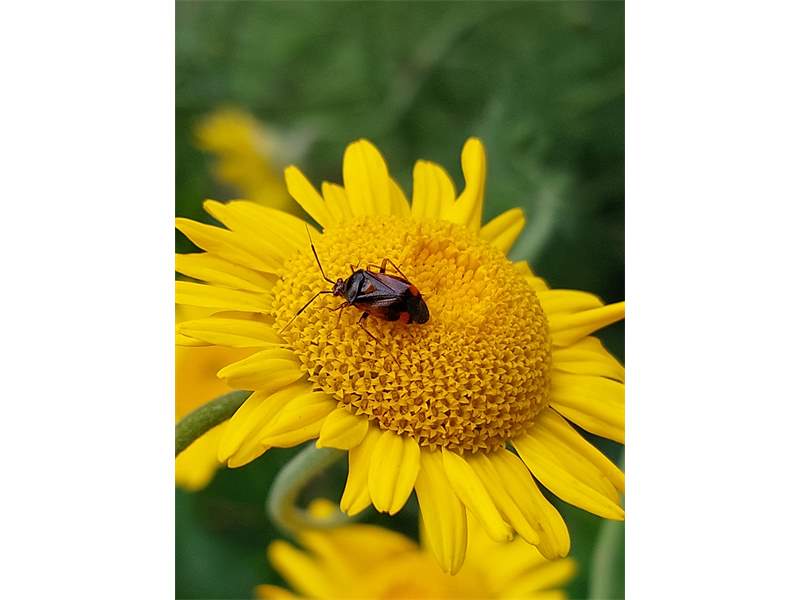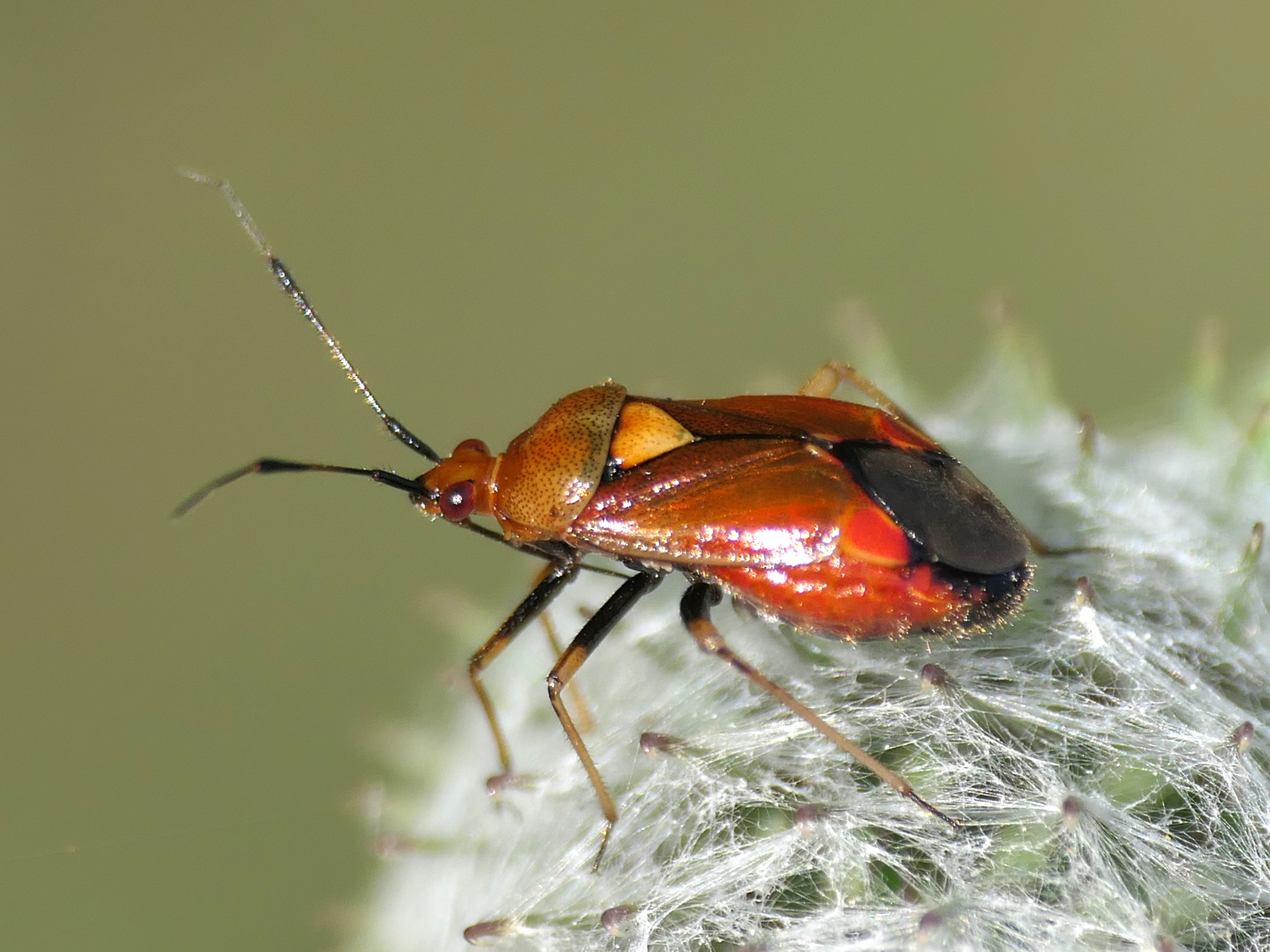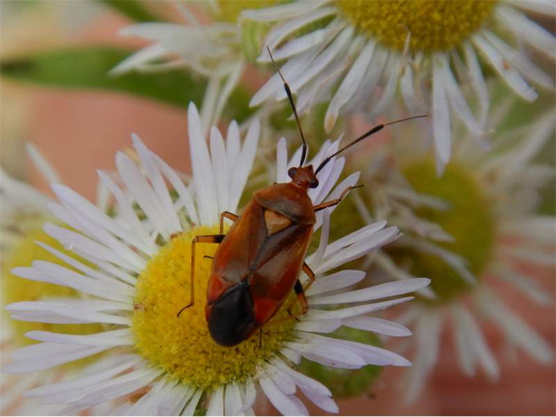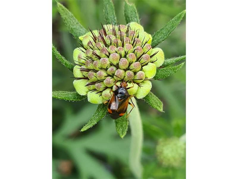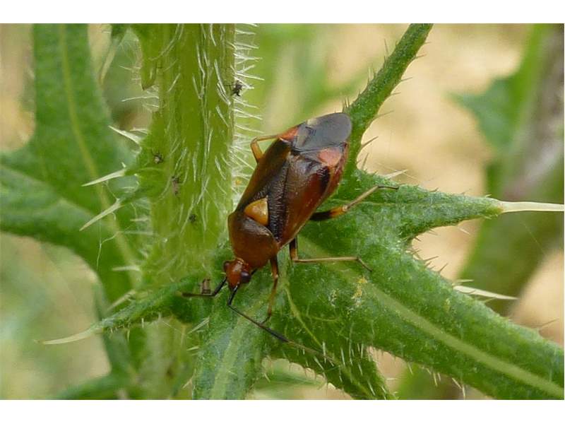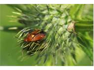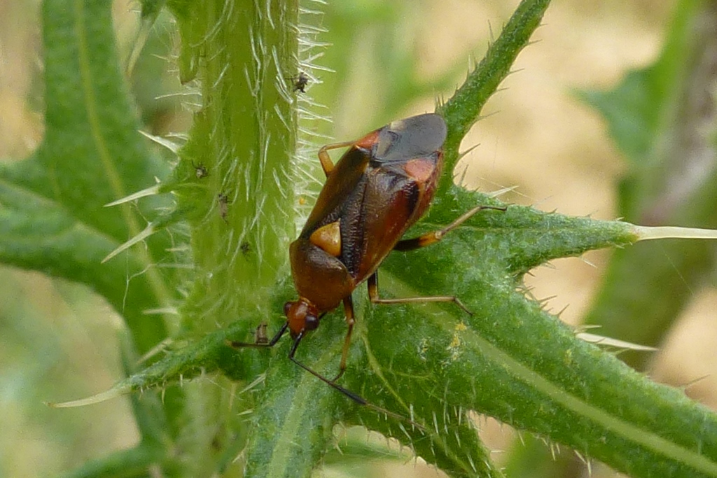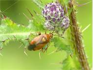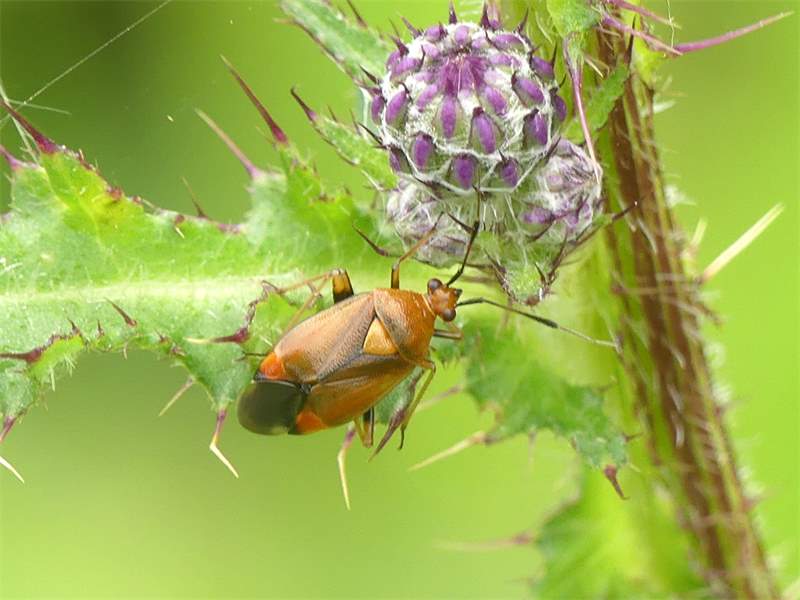 Deraeocoris ruber an der Blüte einer Golddistel, Hochhalde Trages bei Espenhain im August 2013